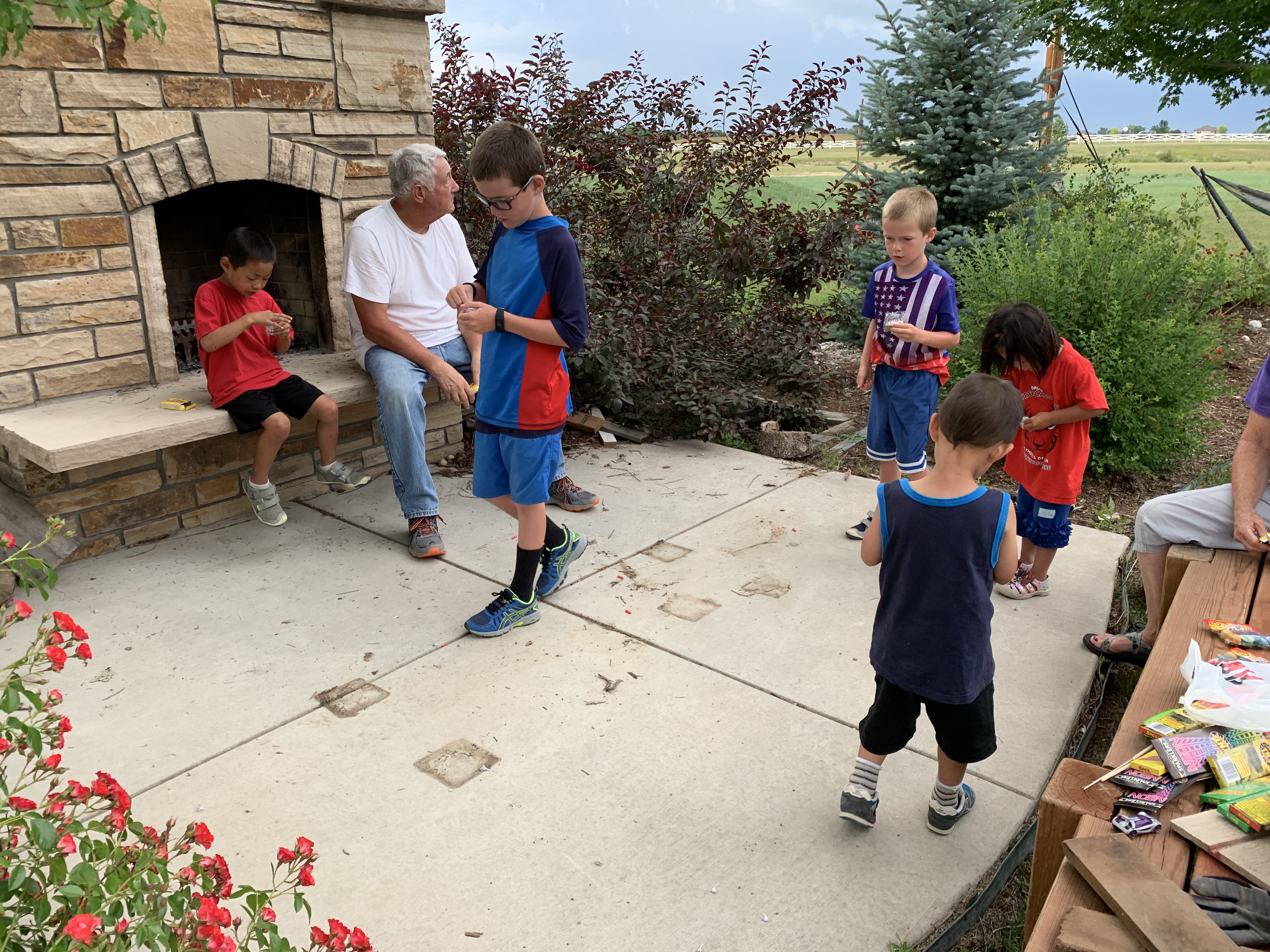 The night of the 4th we ended up having a grill out in our fire of hot dogs and then doing a few fireworks. Our fireworks were limited because a huge storm moved in, but the kids enjoyed what we did anyway.
