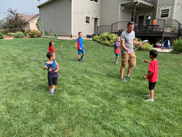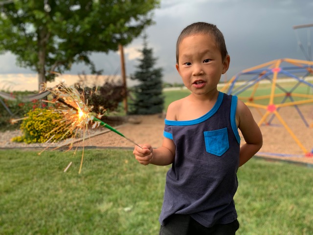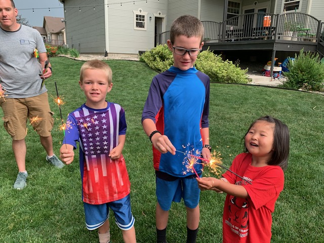 That evening we had our annual 4th of July neighborhood picnic at one of the neighbors. The kids played in the pool, on the swing set, with the air hockey table and with water balloons. All the grown up neighbors sat and talked and caught up. Our neighbor fosters kittens and I think Caedmon spent the majority of his time in the kitten room loving on the baby kittens. He definitely wanted to adopt a couple more. I left before the sun went down with the two littles because it was past their bed times, but Clint stayed with the older 3 and did fireworks. Everyone brought some fireworks to set off and the kids talked about it for days.