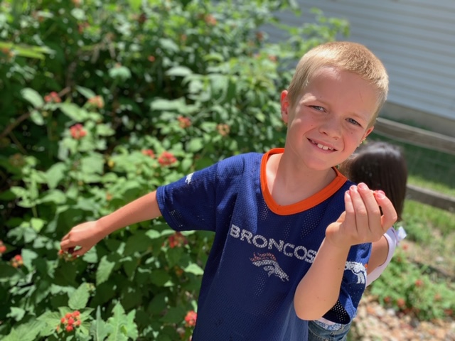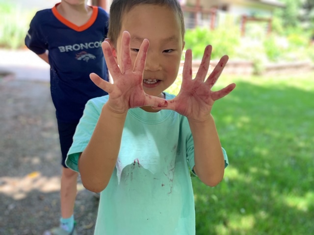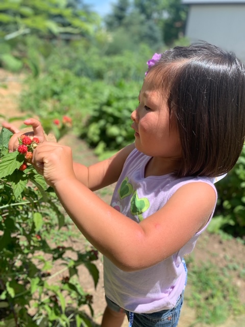 And finally we made it to Sunday. After church we headed to my parents house for lunch with my brother Josh and his wife Heidi. My parents black raspberries are just getting ripe and the kids had a blast picking some. Coppelia picked a number that weren’t ripe yet, but that was ok. After lunch Josh and Heidi confirmed what I had suspected that they are expecting their first. They are due around Christmas and then they had a big present with colored balloons in it to reveal what gender. The kids opened the box and learned that they are going to have a baby girl cousin! I think they were more excited about the balloons and the big box then the actual news, but what do you expect?