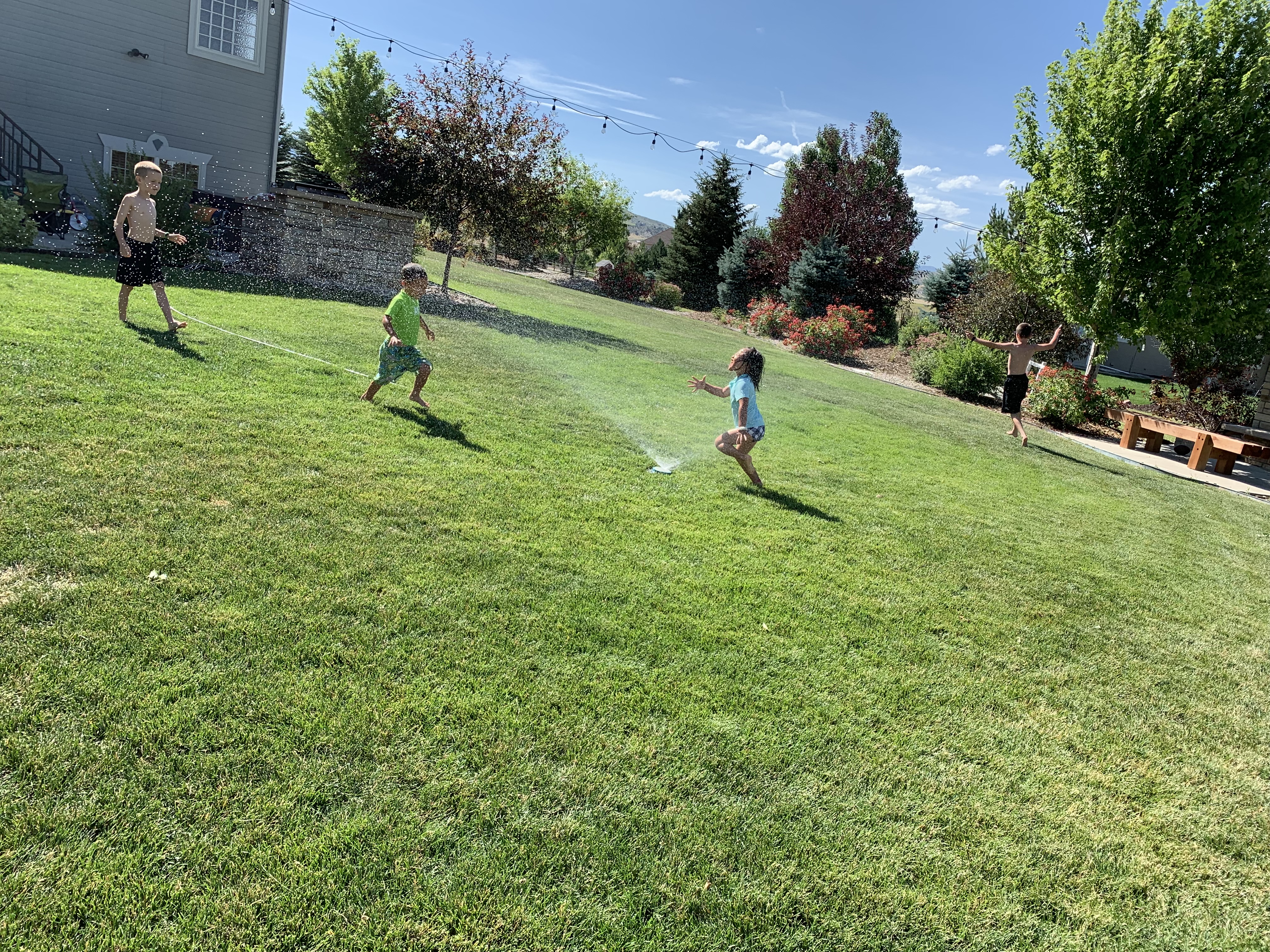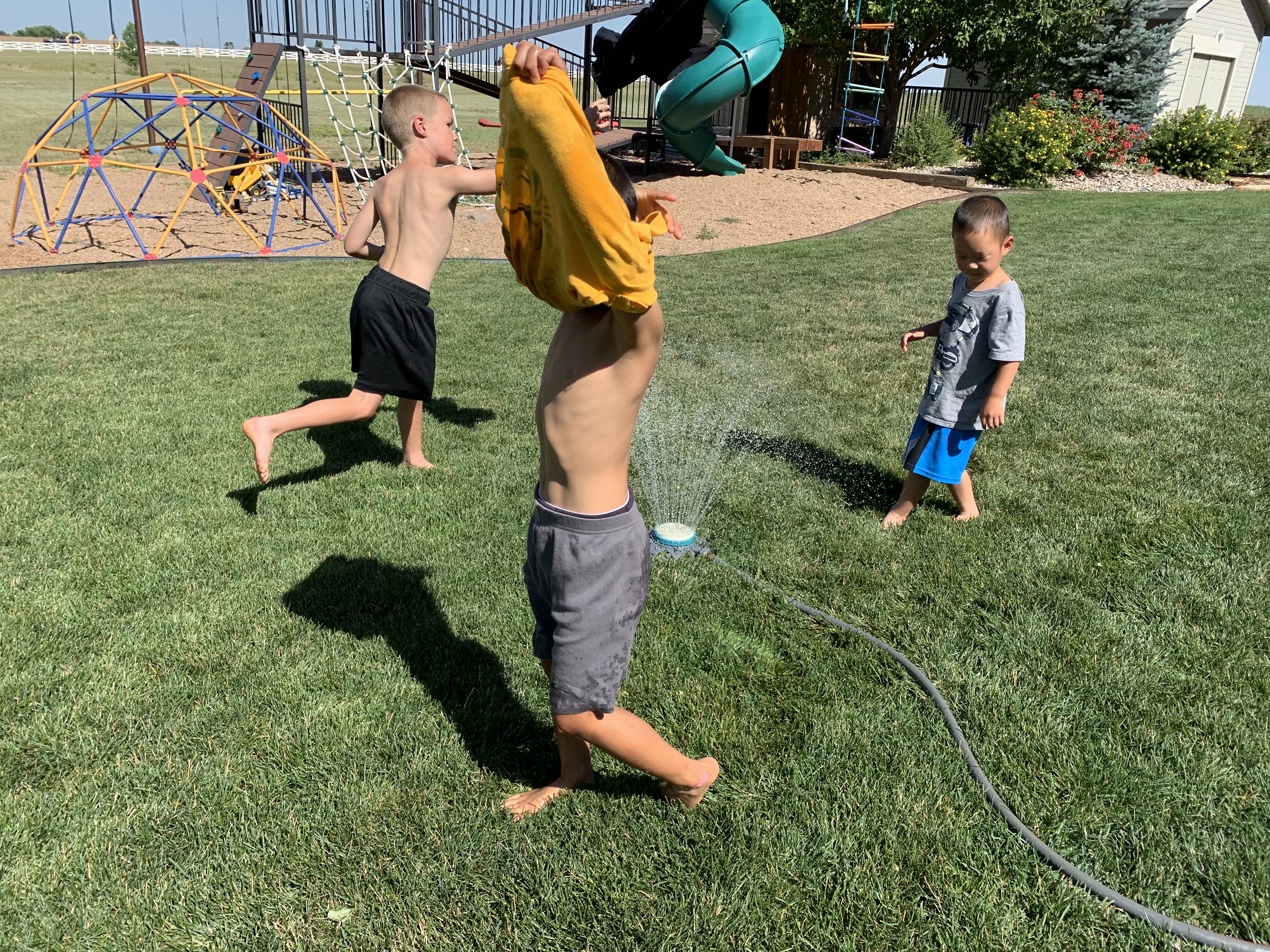 Last weekend Clint’s parents came for a visit. It was really hot all weekend long but we had a good time despite the weather. There was a lot of playing in the water and running through the sprinklers. The kids had fun playing Legos, reading books and playing games with Mimi and Papa as well. It was a really fun weekend!