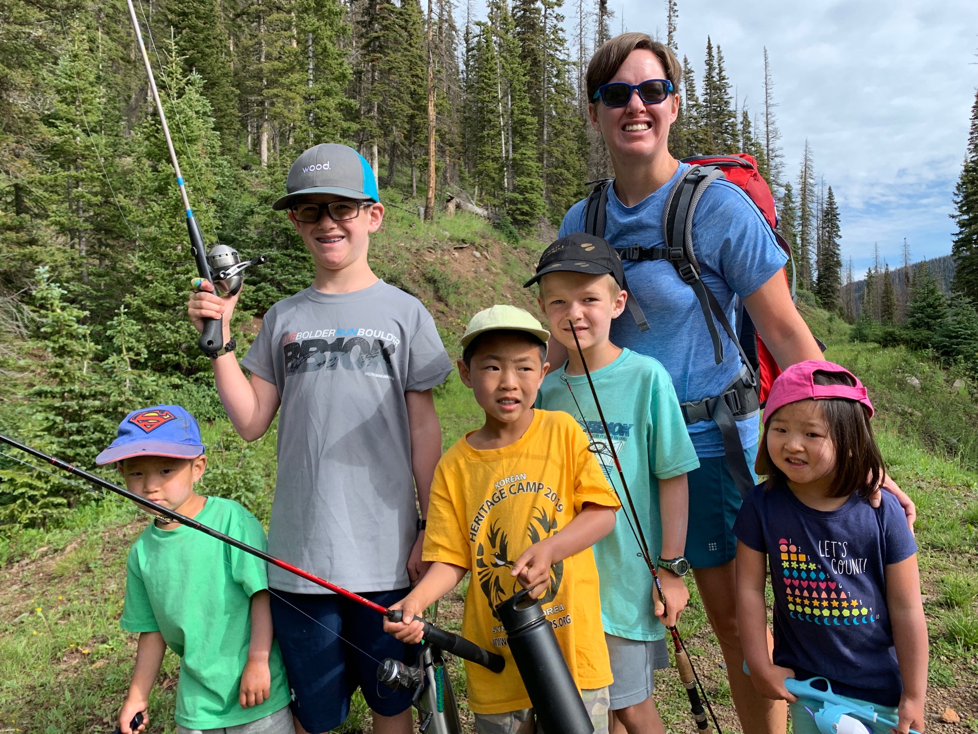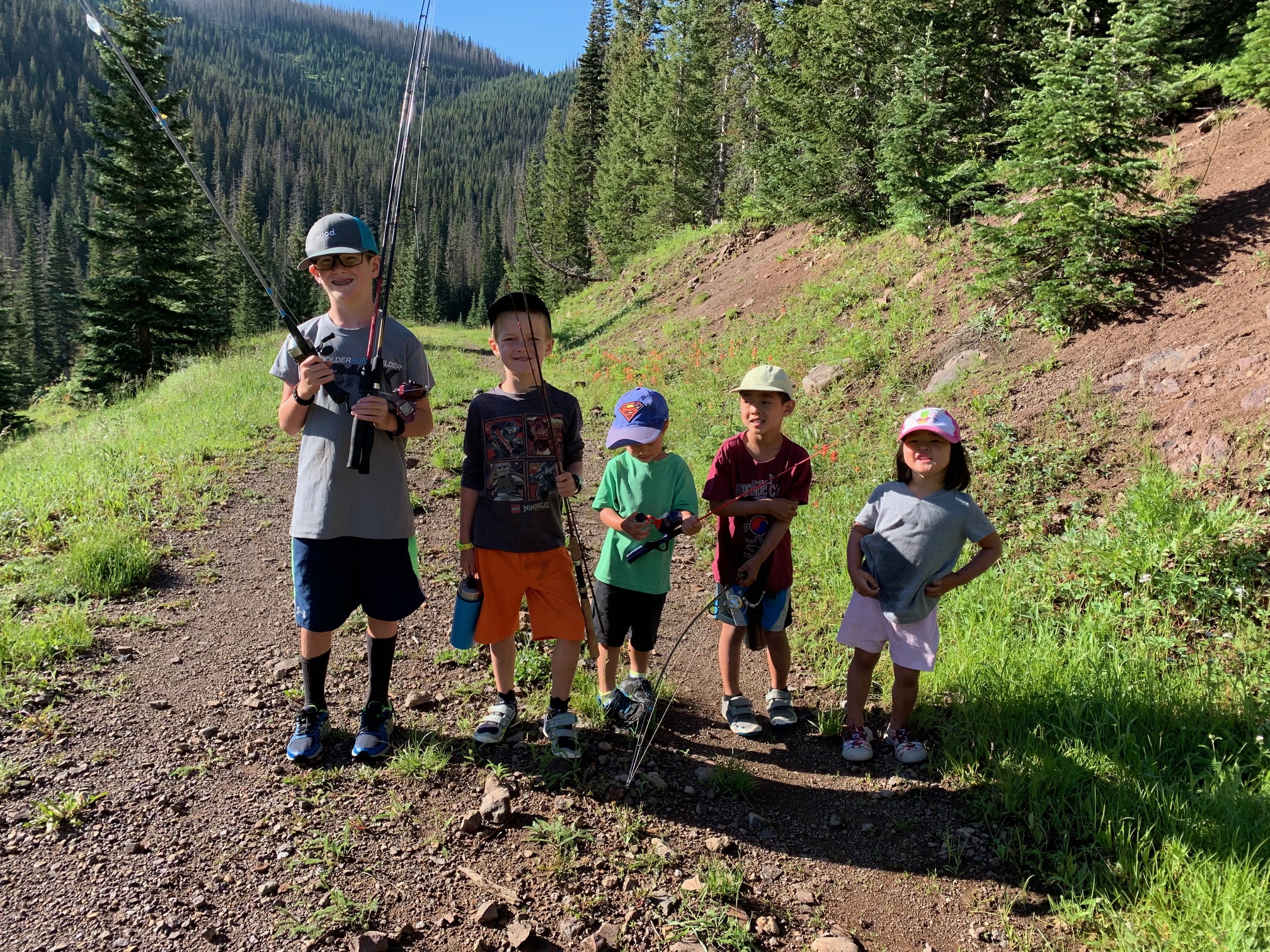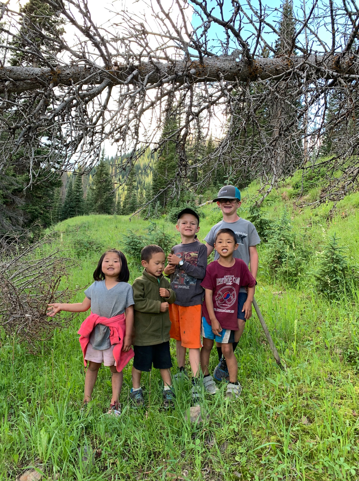 Last week we went on a 4 day 3 night backpacking trip and I think it was one of the highlights of our summer. In true fashion for our backpacking trips we had some rain, but all in all we had a great time. We went backpacking down in south/central Colorado and backpacked in a little over a mile to Pass Creek Yurt. It was the best scenario because to try and backpack in two tents it would have been impossible because the kids are still quite little and limited in the amount that they can carry in their backpacks. Paxton weighs all of 28 pounds so pretty much he’s maxed out at his backpack and pjs. So the yurt was perfect because it meant that we didn’t have to pack as much. We were pretty much isolated from everyone and everybody. There were fresh wild strawberries growing and we hiked on the second day about 2 miles farther in to a lake and went fishing. On the 3rd day we actually hiked back out to the car and drove about 3 miles down the mountain and fished at some ponds there. The other really cool thing on the 3rd day was that we met up with one of my college professors and his wife and they hiked back in to our yurt with us and spent a few hours hanging out. I had been texting his wife who is a good friend earlier in the week and we discovered we were going to be in the same area and so it worked out great. Clint read to all of us from Lord of the Rings each night (I think I fell asleep before he was done most of the nights) and everyone had fun gathering and pumping/filtering our water and they fought over who got to wash the dishes after each meal. I think the boy’s favorite part was the large dirt hill across from the yurt, they ran up it, slid down it, climbed it, and everything in between, we brought home so much dirt ground into their clothes. Coppelia’s favorite part was the outhouse. Because they get so much snow in the area it is built way up high and she loved having an excuse to climb up and down the ladder. We had a really good time and on the final day when we got back to the car and loaded everyone back up, Paxton actually started crying and said “I miss the yurt and want to go back”. I think I know where we might be headed next summer!