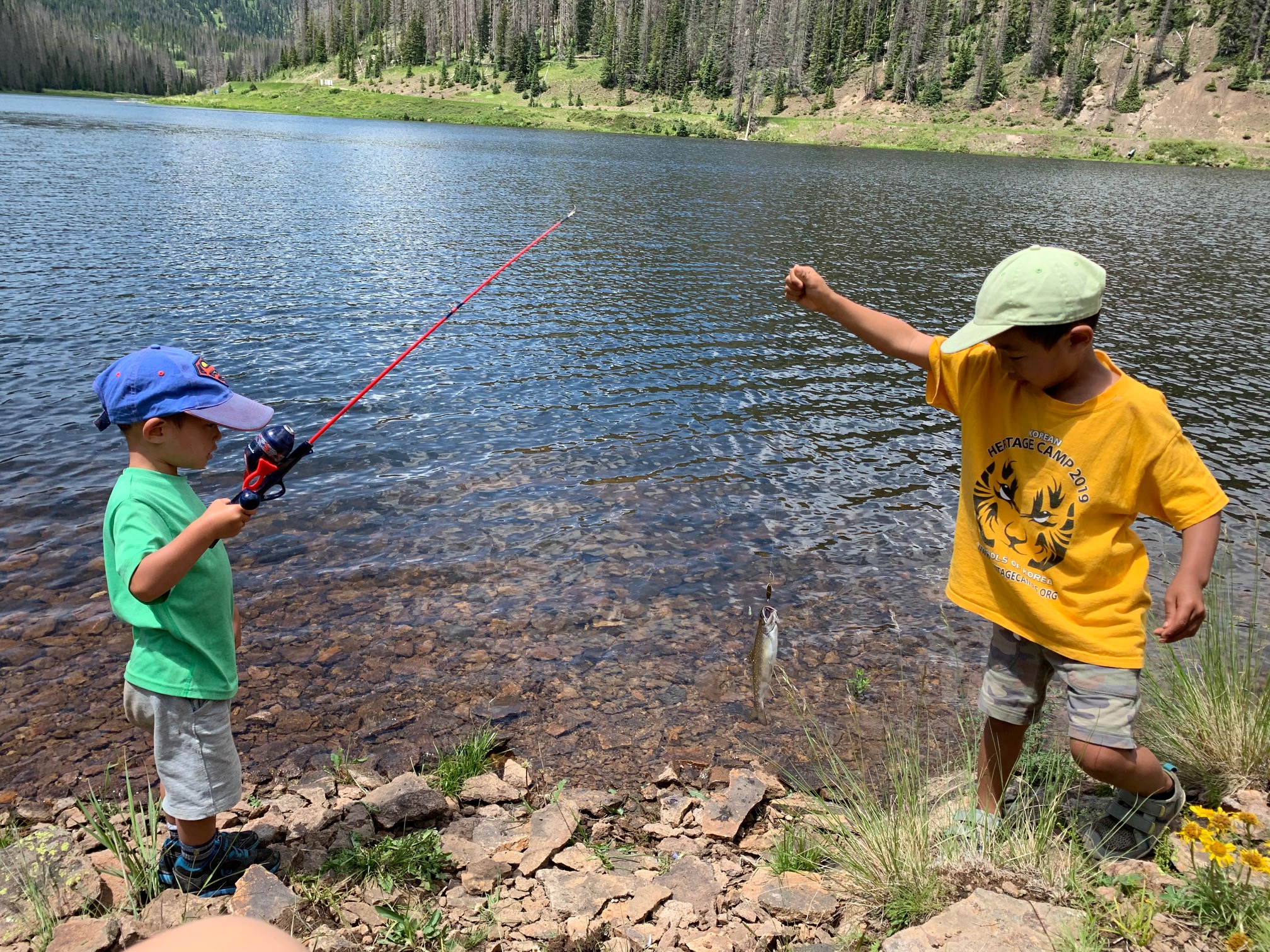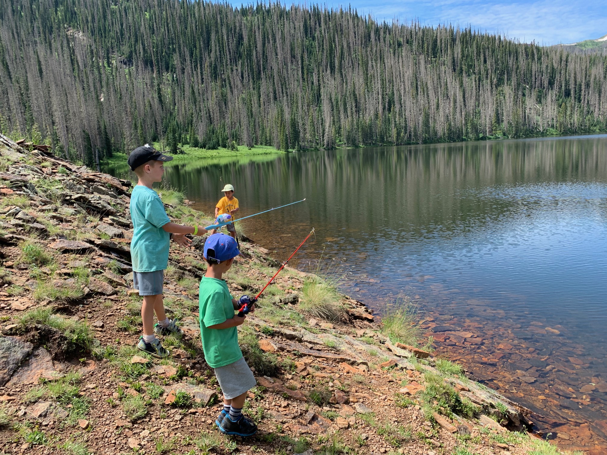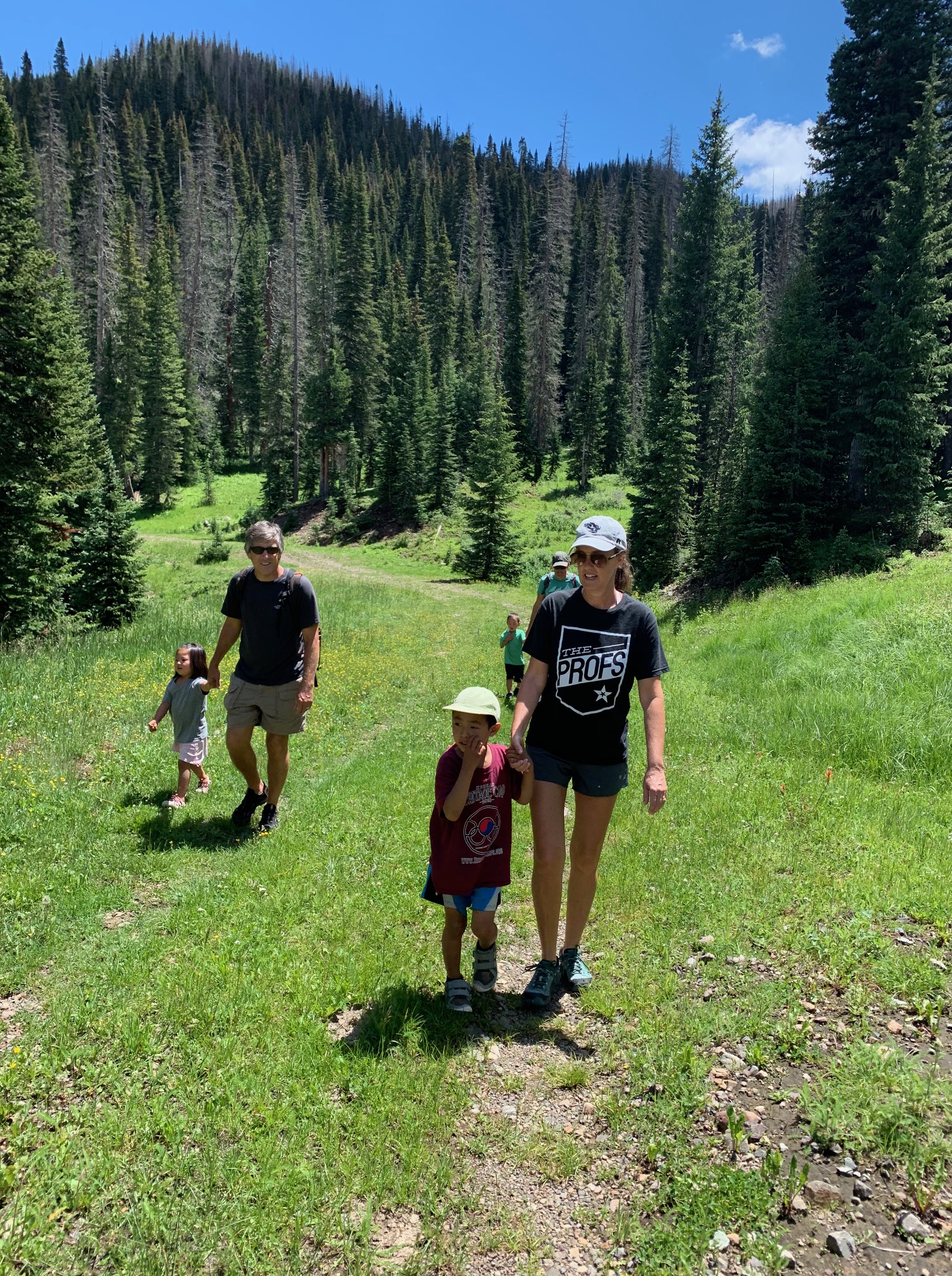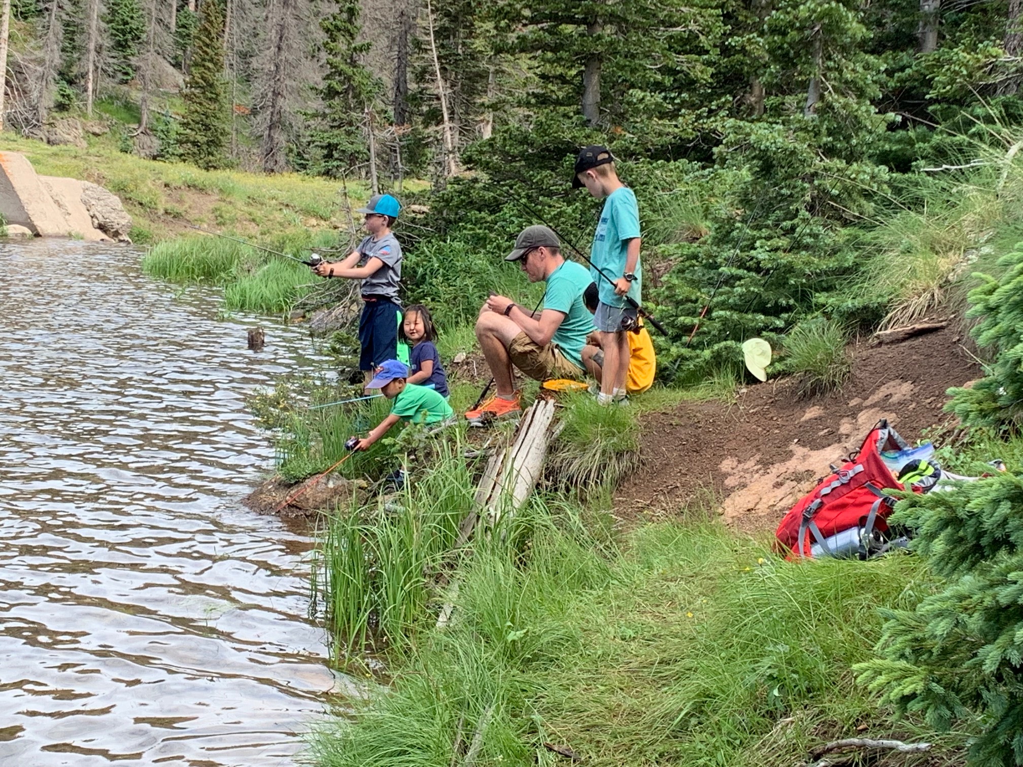 Last week we went on a 4 day 3 night backpacking trip and I think it was one of the highlights of our summer. In true fashion for our backpacking trips we had some rain, but all in all we had a great time. We went backpacking down in south/central Colorado and backpacked in a little over a mile to Pass Creek Yurt. It was the best scenario because to try and backpack in two tents it would have been impossible because the kids are still quite little and limited in the amount that they can carry in their backpacks. Paxton weighs all of 28 pounds so pretty much he’s maxed out at his backpack and pjs. So the yurt was perfect because it meant that we didn’t have to pack as much. We were pretty much isolated from everyone and everybody. There were fresh wild strawberries growing and we hiked on the second day about 2 miles farther in to a lake and went fishing. On the 3rd day we actually hiked back out to the car and drove about 3 miles down the mountain and fished at some ponds there. The other really cool thing on the 3rd day was that we met up with one of my college professors and his wife and they hiked back in to our yurt with us and spent a few hours hanging out. I had been texting his wife who is a good friend earlier in the week and we discovered we were going to be in the same area and so it worked out great. Clint read to all of us from Lord of the Rings each night (I think I fell asleep before he was done most of the nights) and everyone had fun gathering and pumping/filtering our water and they fought over who got to wash the dishes after each meal. I think the boy’s favorite part was the large dirt hill across from the yurt, they ran up it, slid down it, climbed it, and everything in between, we brought home so much dirt ground into their clothes. Coppelia’s favorite part was the outhouse. Because they get so much snow in the area it is built way up high and she loved having an excuse to climb up and down the ladder. We had a really good time and on the final day when we got back to the car and loaded everyone back up, Paxton actually started crying and said “I miss the yurt and want to go back”. I think I know where we might be headed next summer!