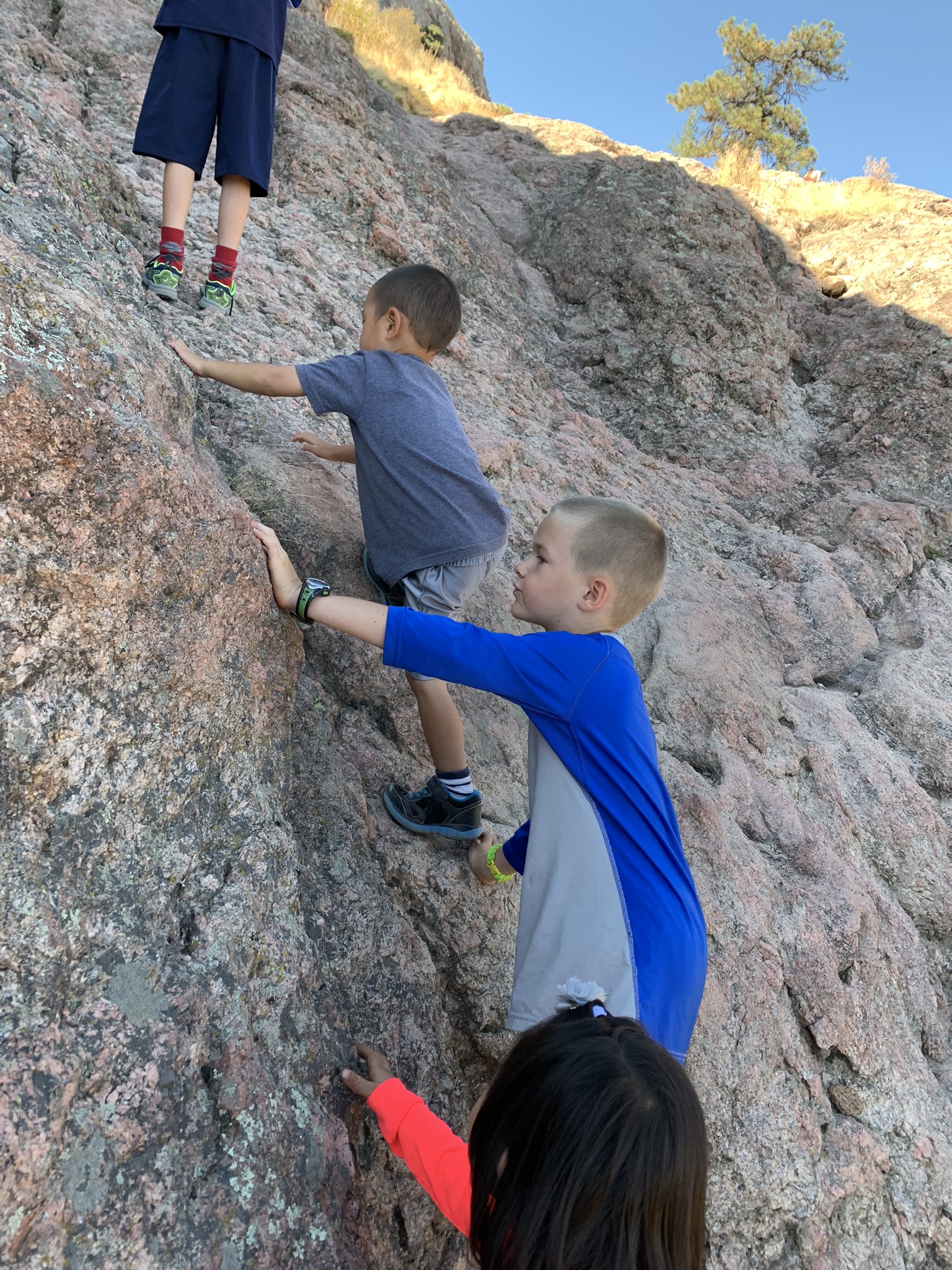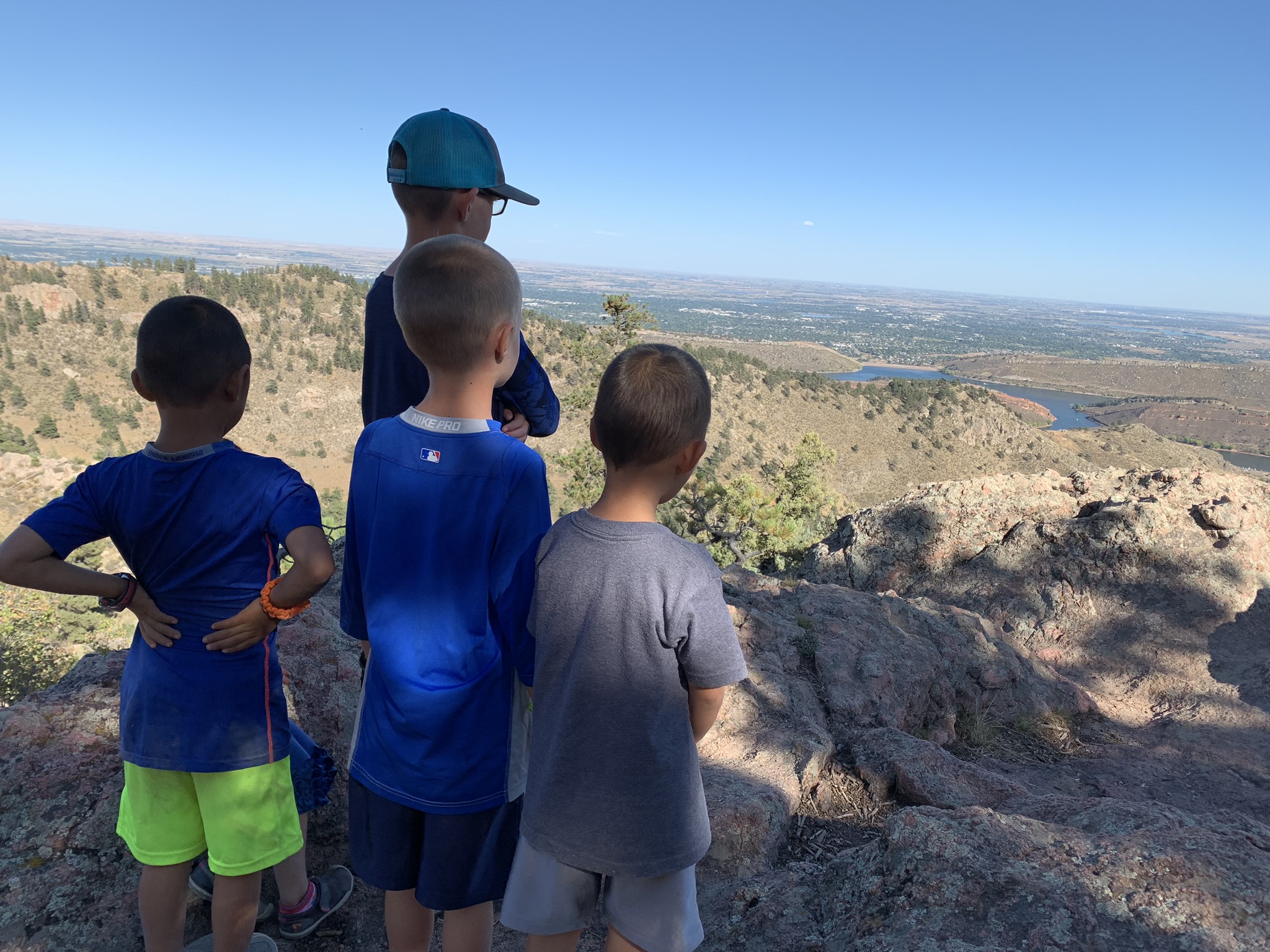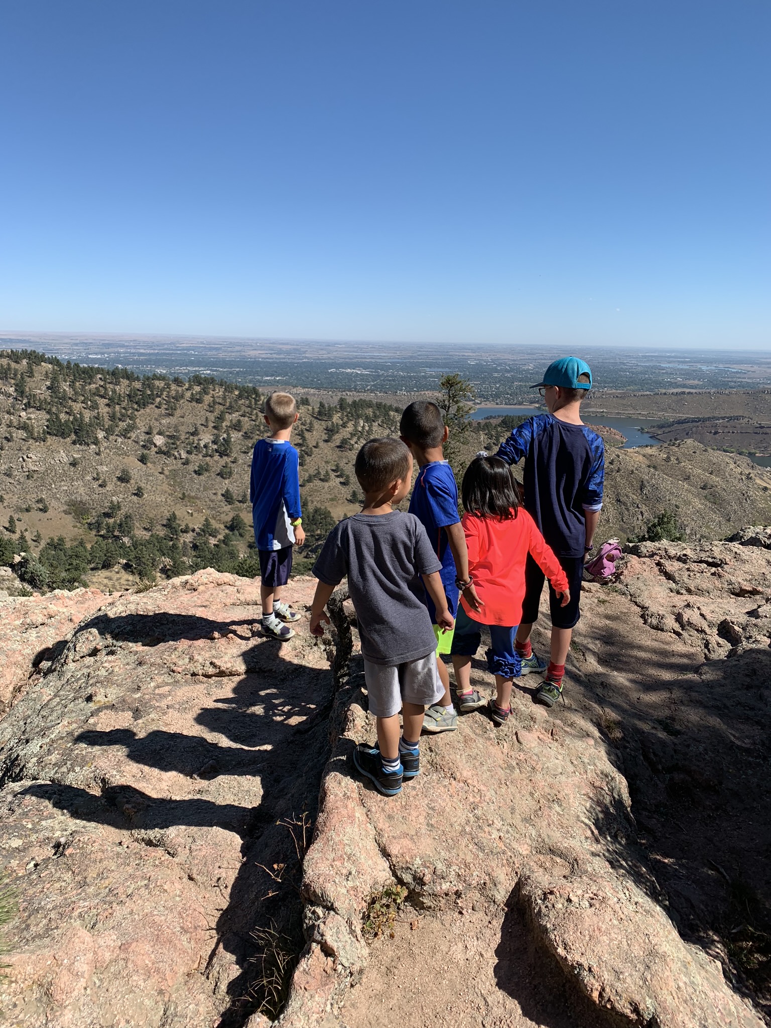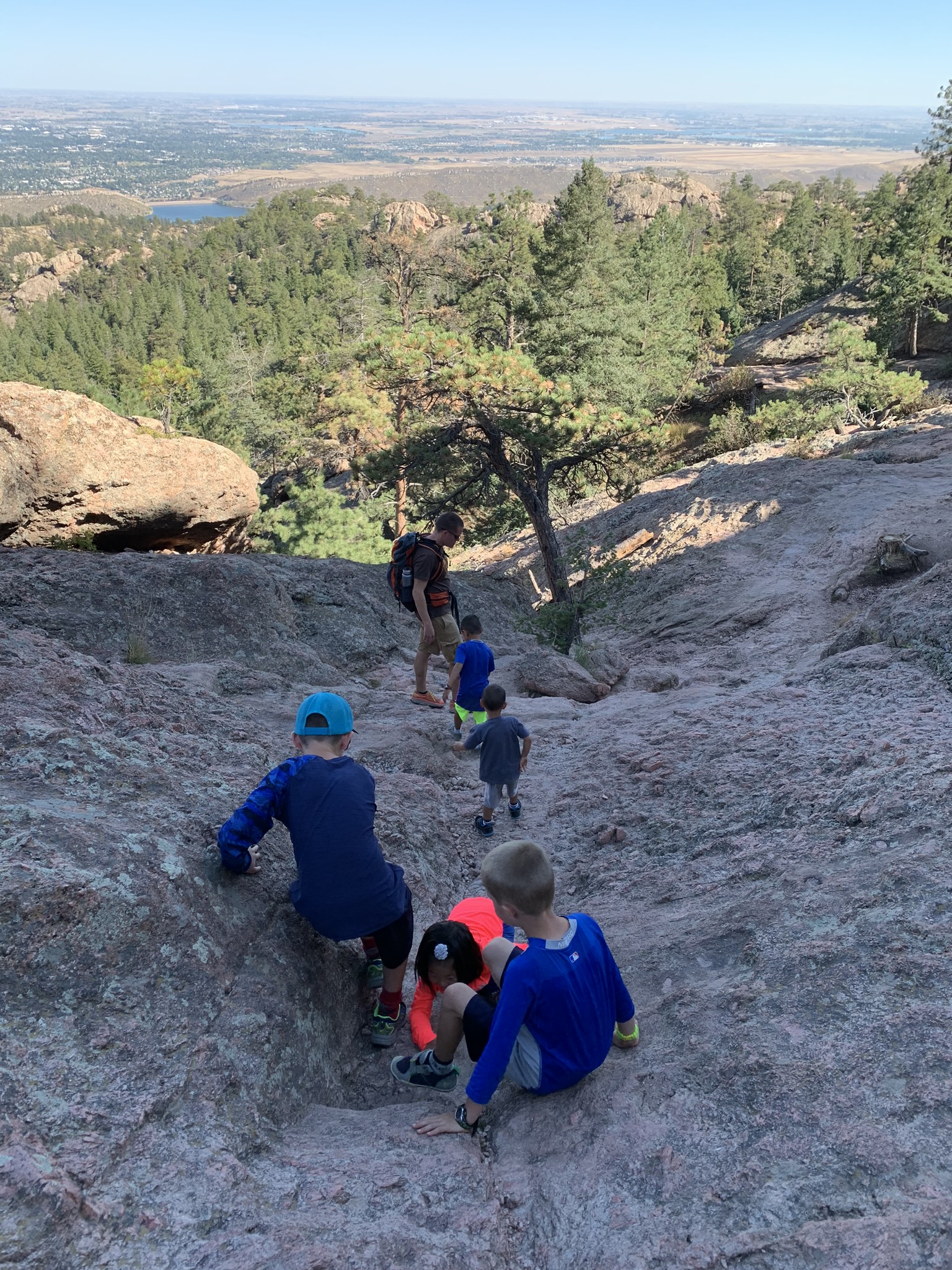 On Sunday we decided to hike Horsetooth Rock. It is close to our church and it was going to be part of our family celebration for completing and paying off my med school loan. We packed our lunches to eat in the car on the way to the trail head and a change of clothes for everyone after church. The day was beautiful and it was a tough hike. It is about 2.5 miles one way with about 1450 feet of elevation gain. It is a tough hike but everyone stuck with it really well. We all started with poor attitudes but partway through we had a good break and talk and hugs and then everyone seemed better. The kids are good little rock climbers and there was some definite scrambling near the top going up and down. We celebrated the hike with ice cream and pizza back at home and everyone slept REALLY REALLY well Sunday night.