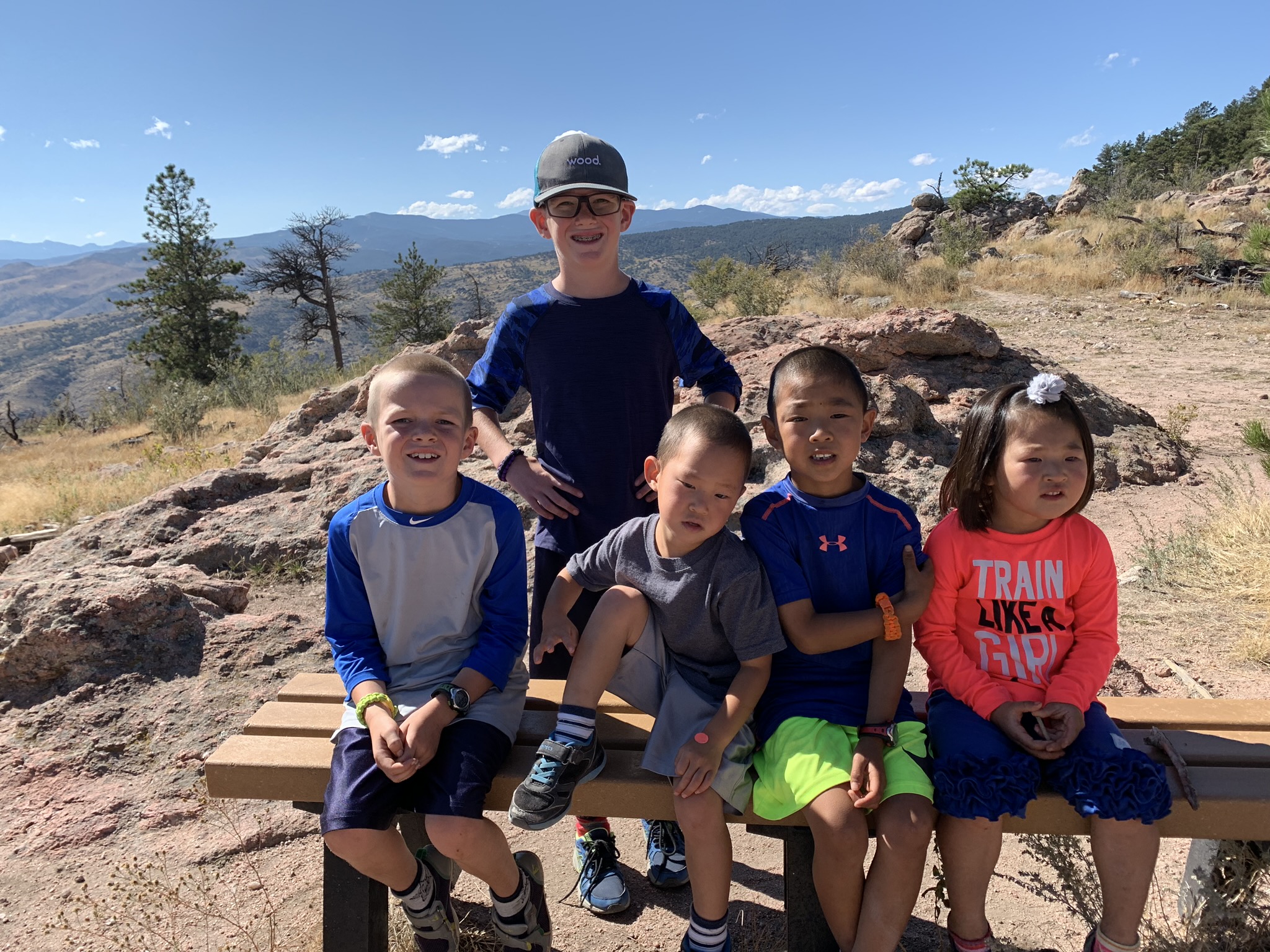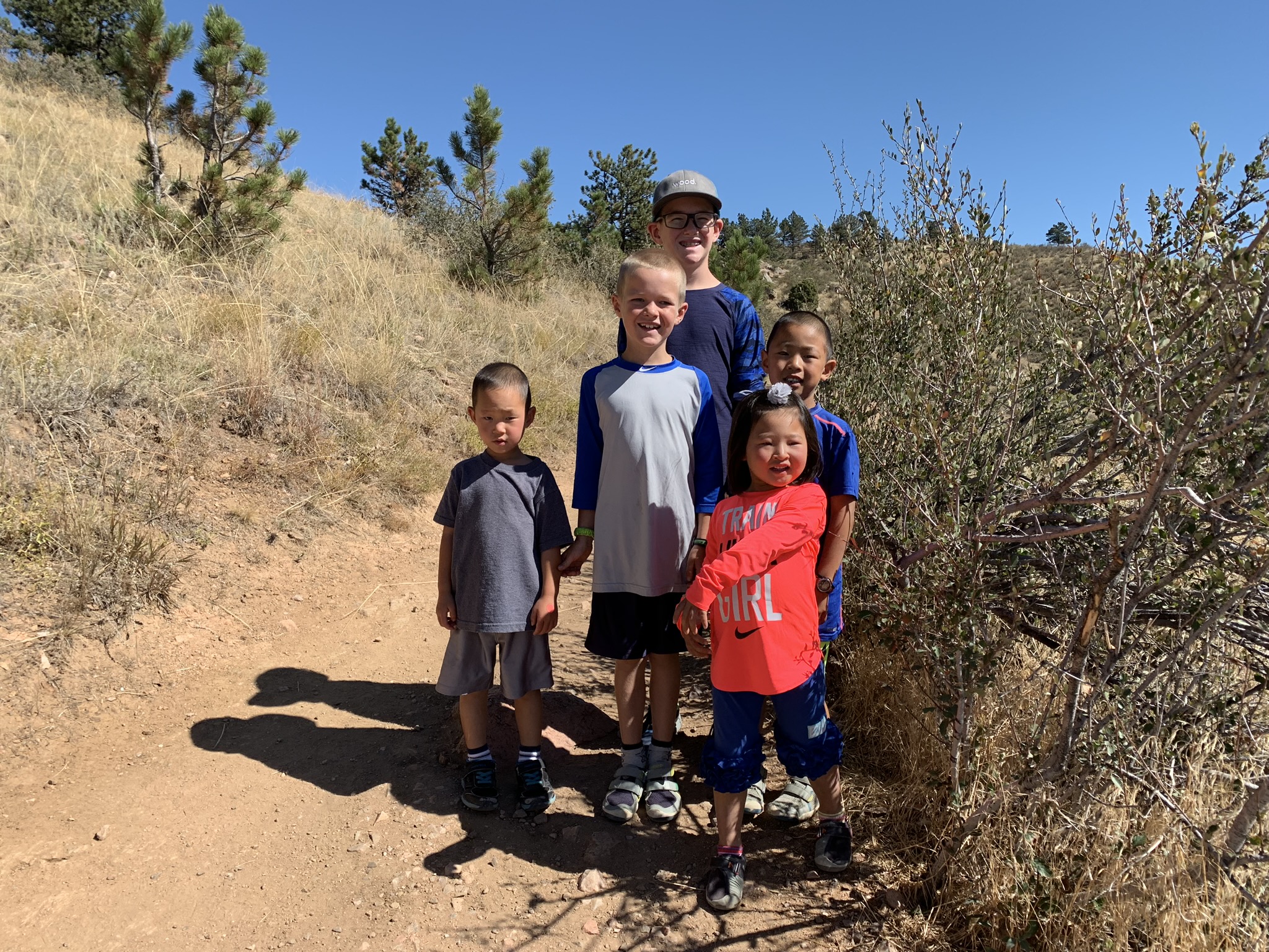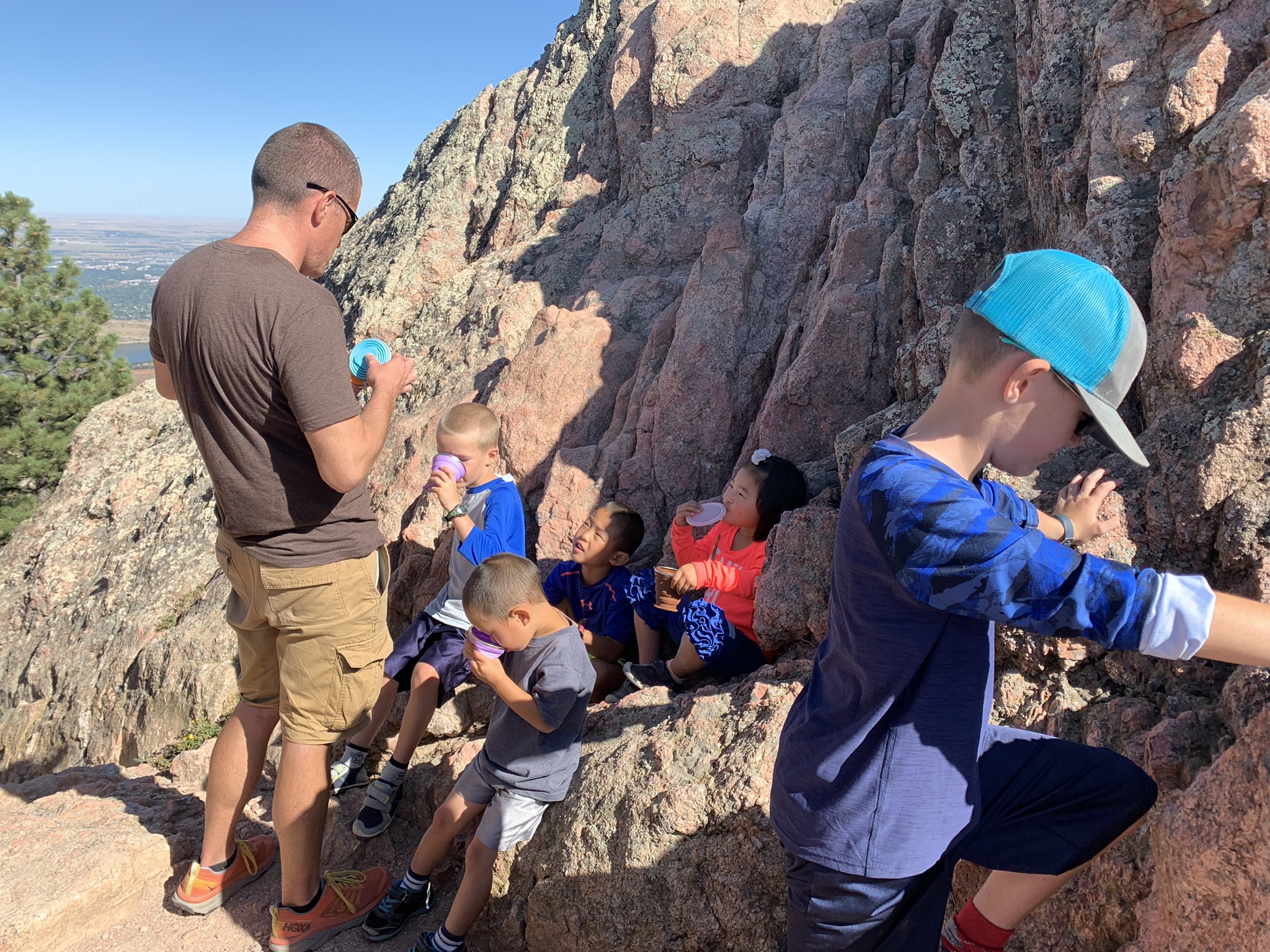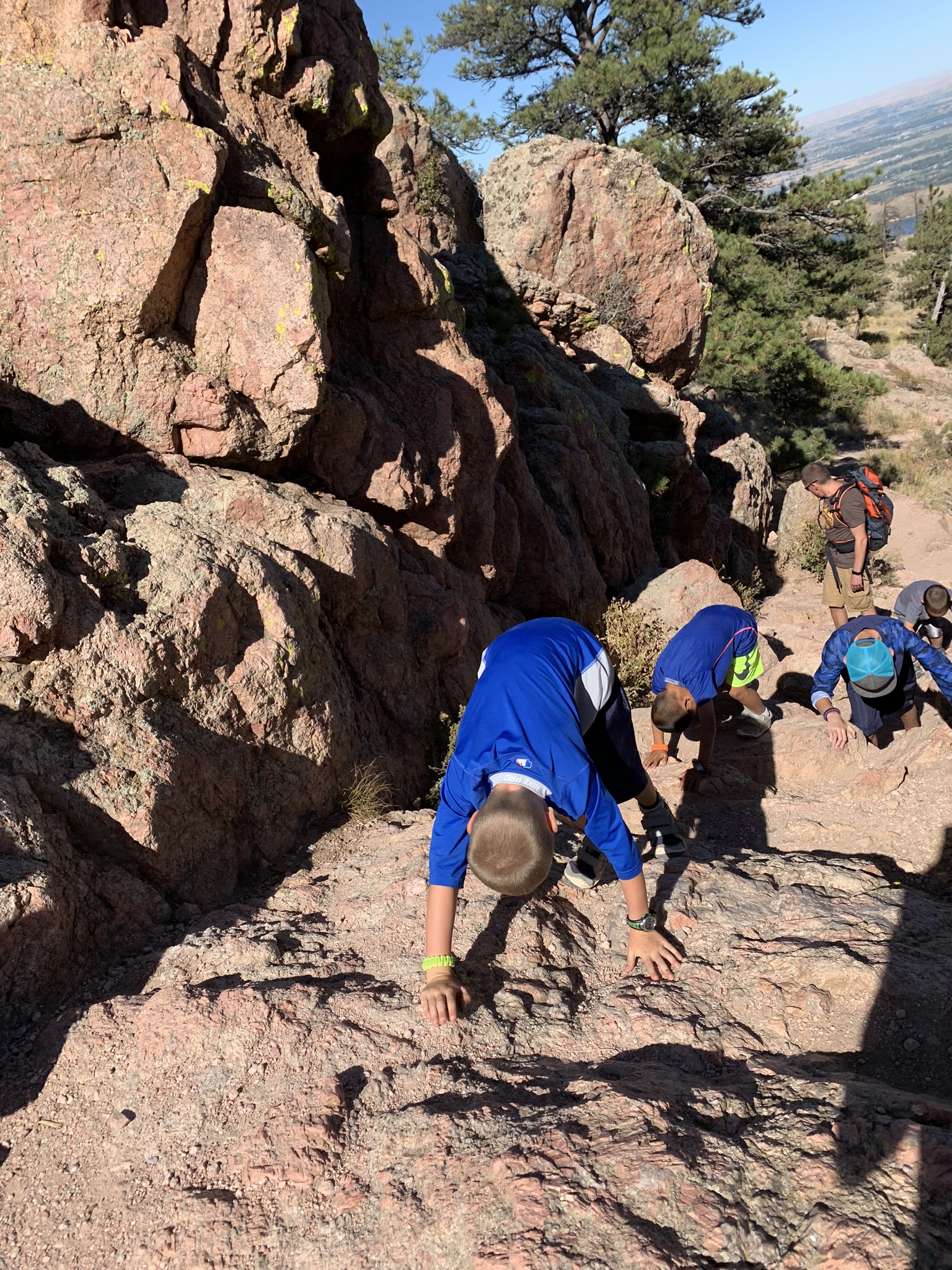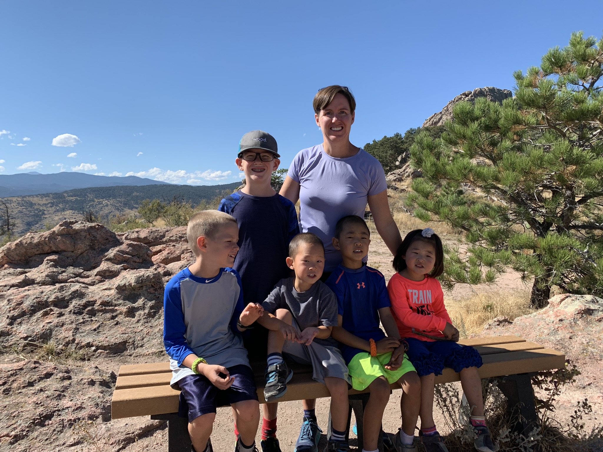 On Sunday we decided to hike Horsetooth Rock. It is close to our church and it was going to be part of our family celebration for completing and paying off my med school loan. We packed our lunches to eat in the car on the way to the trail head and a change of clothes for everyone after church. The day was beautiful and it was a tough hike. It is about 2.5 miles one way with about 1450 feet of elevation gain. It is a tough hike but everyone stuck with it really well. We all started with poor attitudes but partway through we had a good break and talk and hugs and then everyone seemed better. The kids are good little rock climbers and there was some definite scrambling near the top going up and down. We celebrated the hike with ice cream and pizza back at home and everyone slept REALLY REALLY well Sunday night.