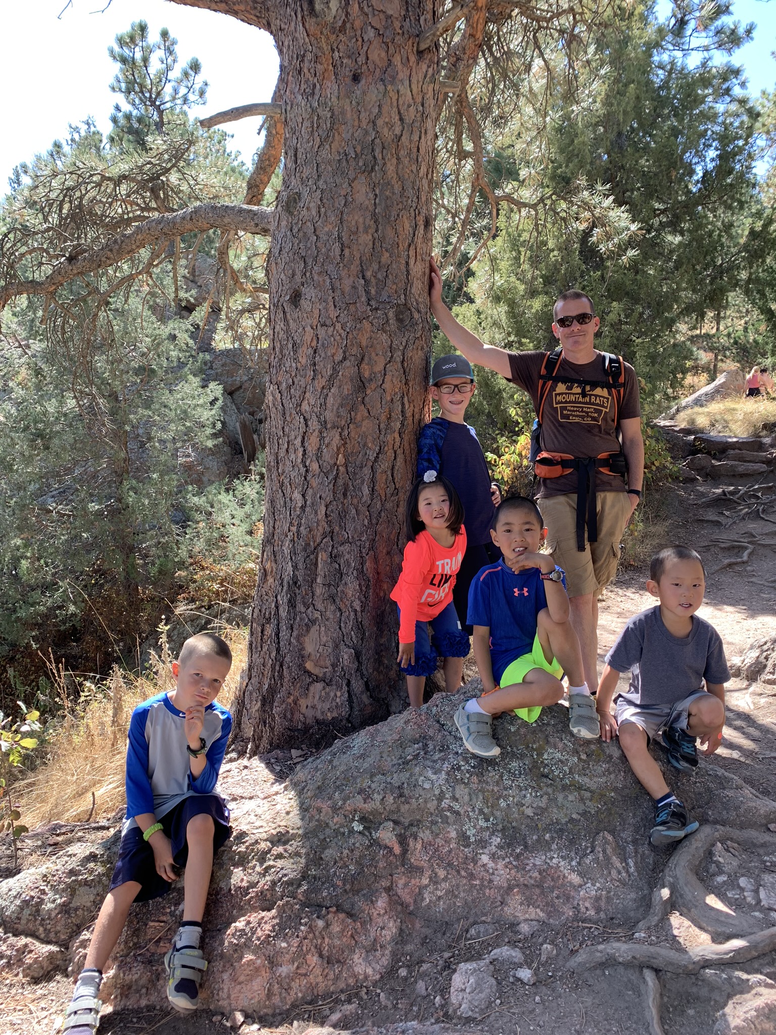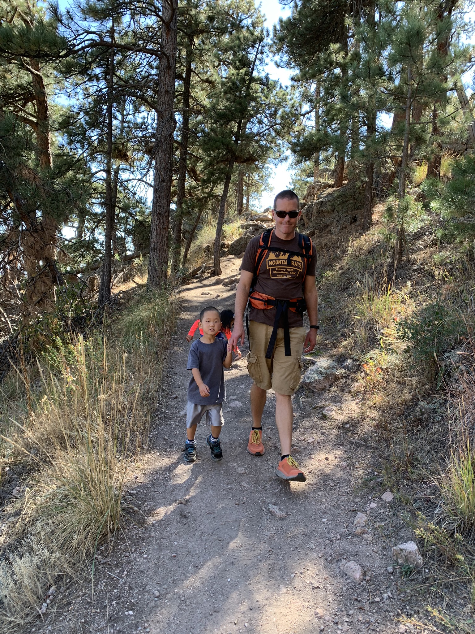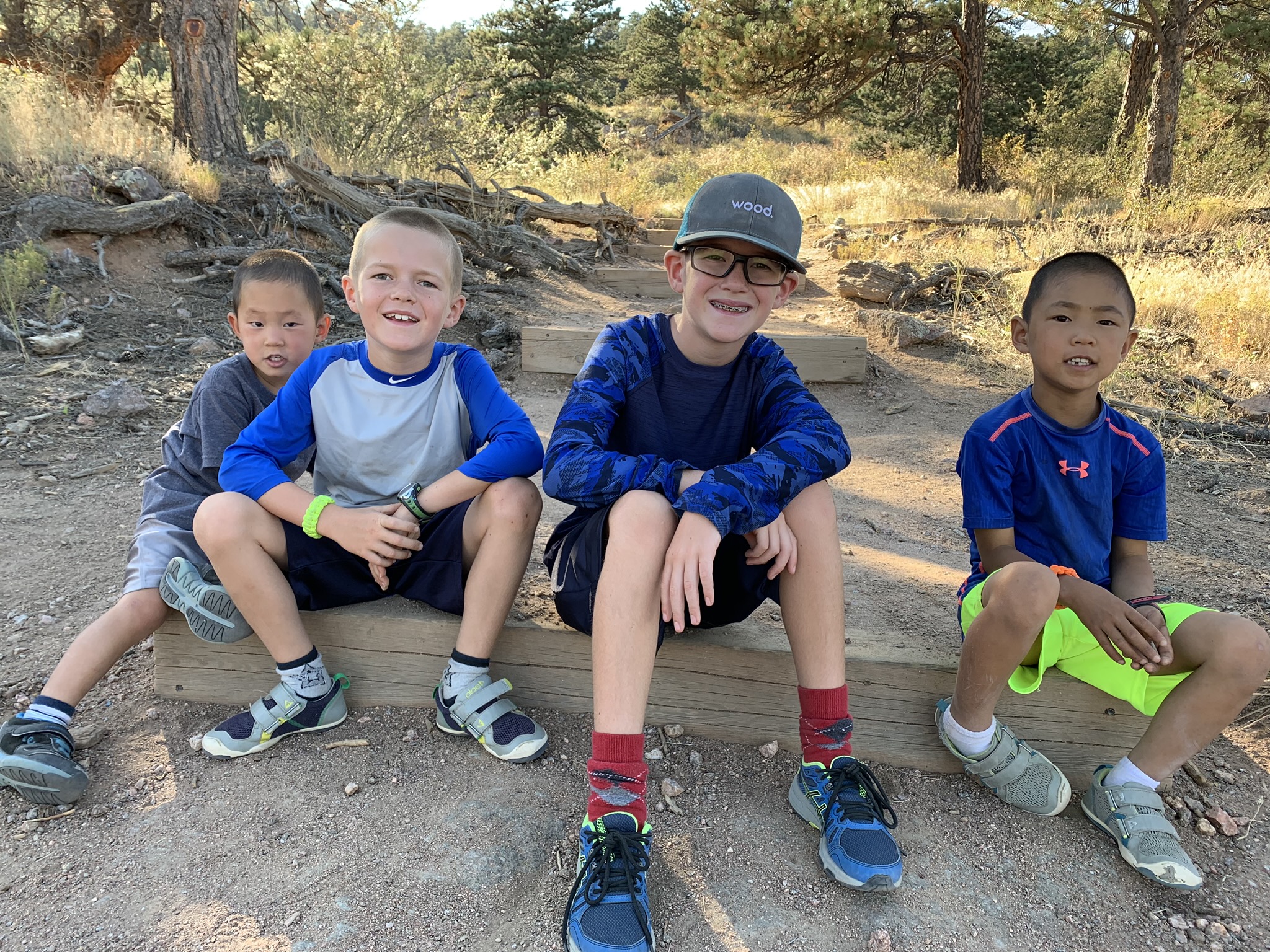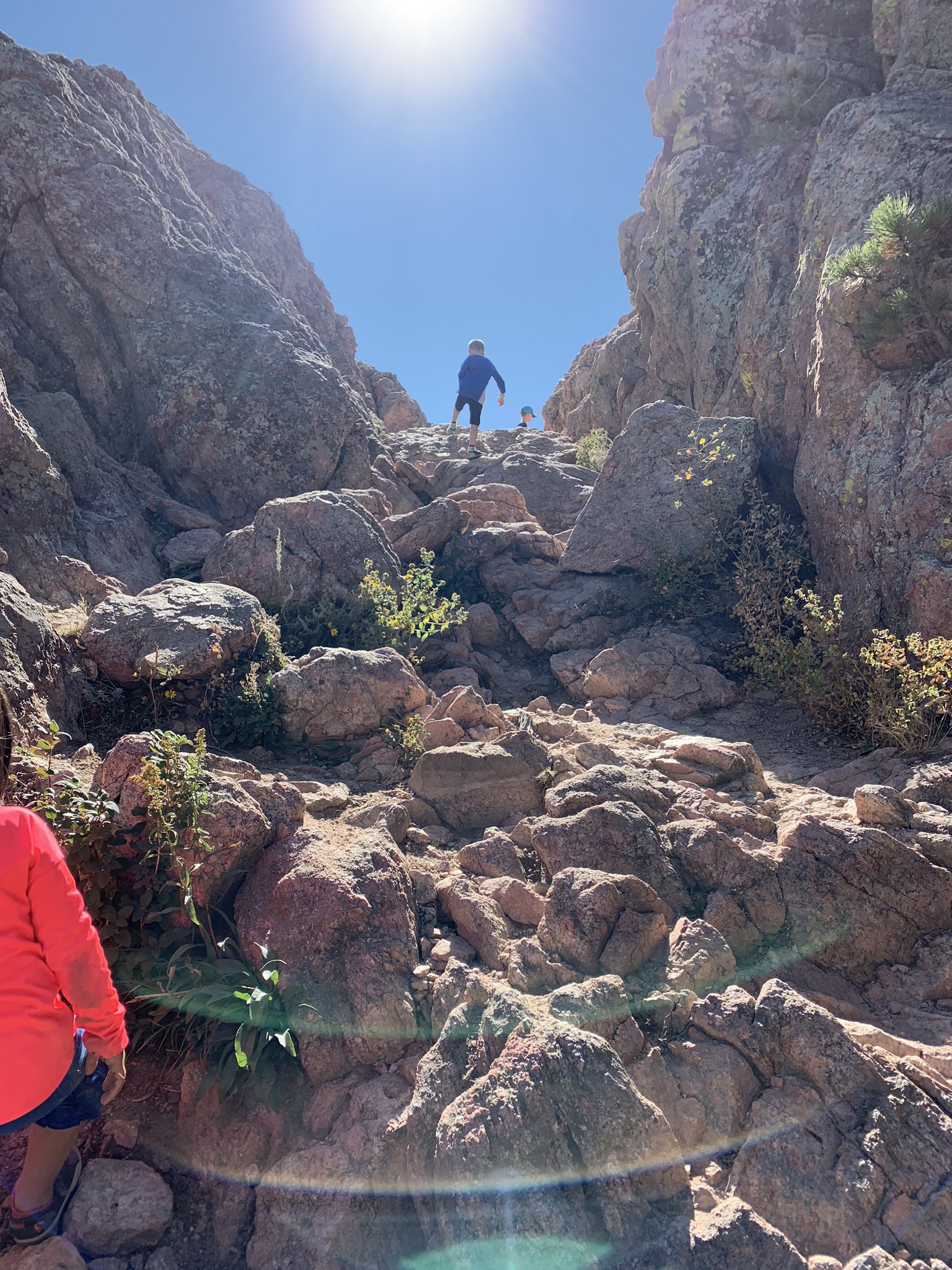 On Sunday we decided to hike Horsetooth Rock. It is close to our church and it was going to be part of our family celebration for completing and paying off my med school loan. We packed our lunches to eat in the car on the way to the trail head and a change of clothes for everyone after church. The day was beautiful and it was a tough hike. It is about 2.5 miles one way with about 1450 feet of elevation gain. It is a tough hike but everyone stuck with it really well. We all started with poor attitudes but partway through we had a good break and talk and hugs and then everyone seemed better. The kids are good little rock climbers and there was some definite scrambling near the top going up and down. We celebrated the hike with ice cream and pizza back at home and everyone slept REALLY REALLY well Sunday night.
