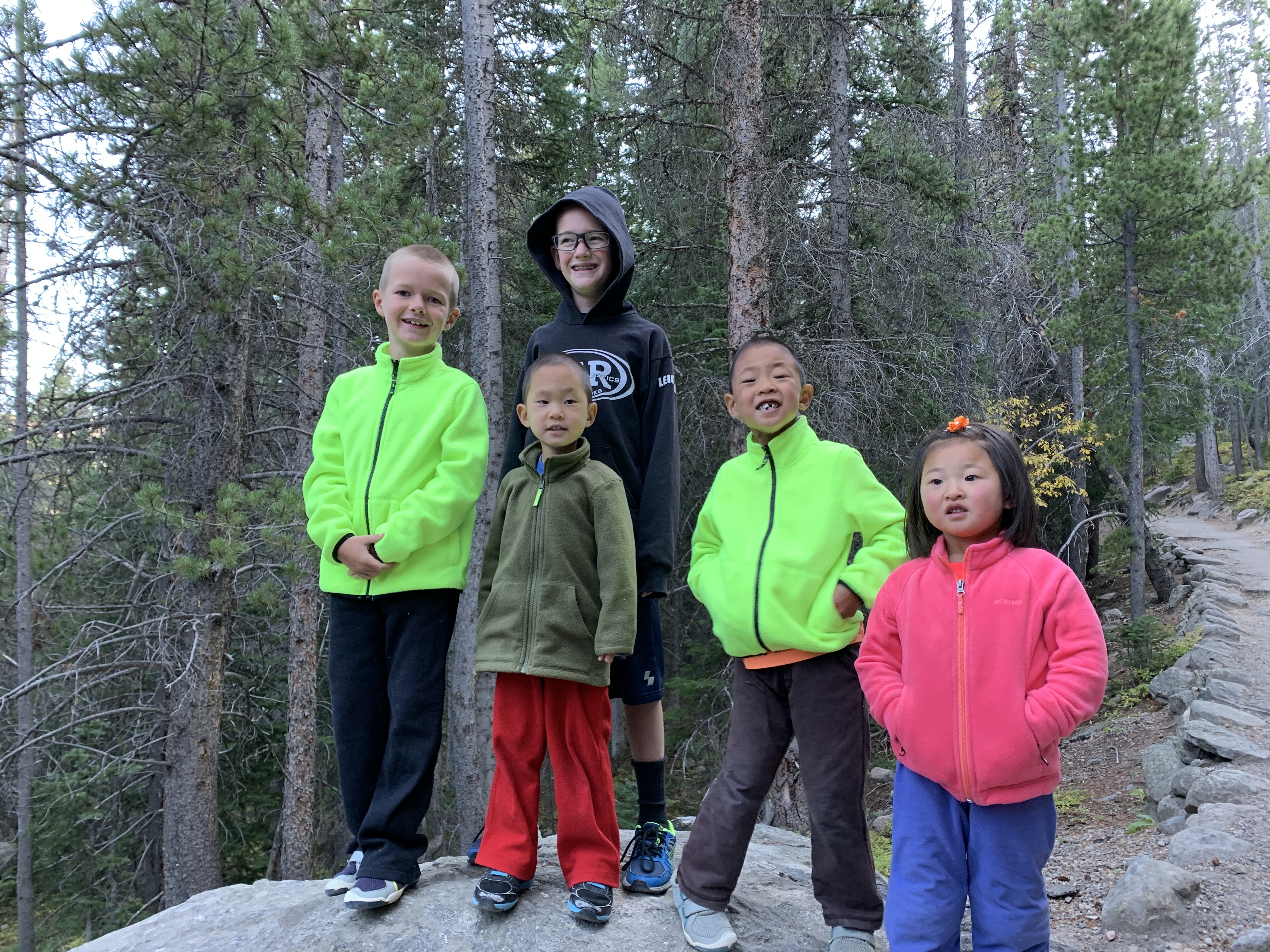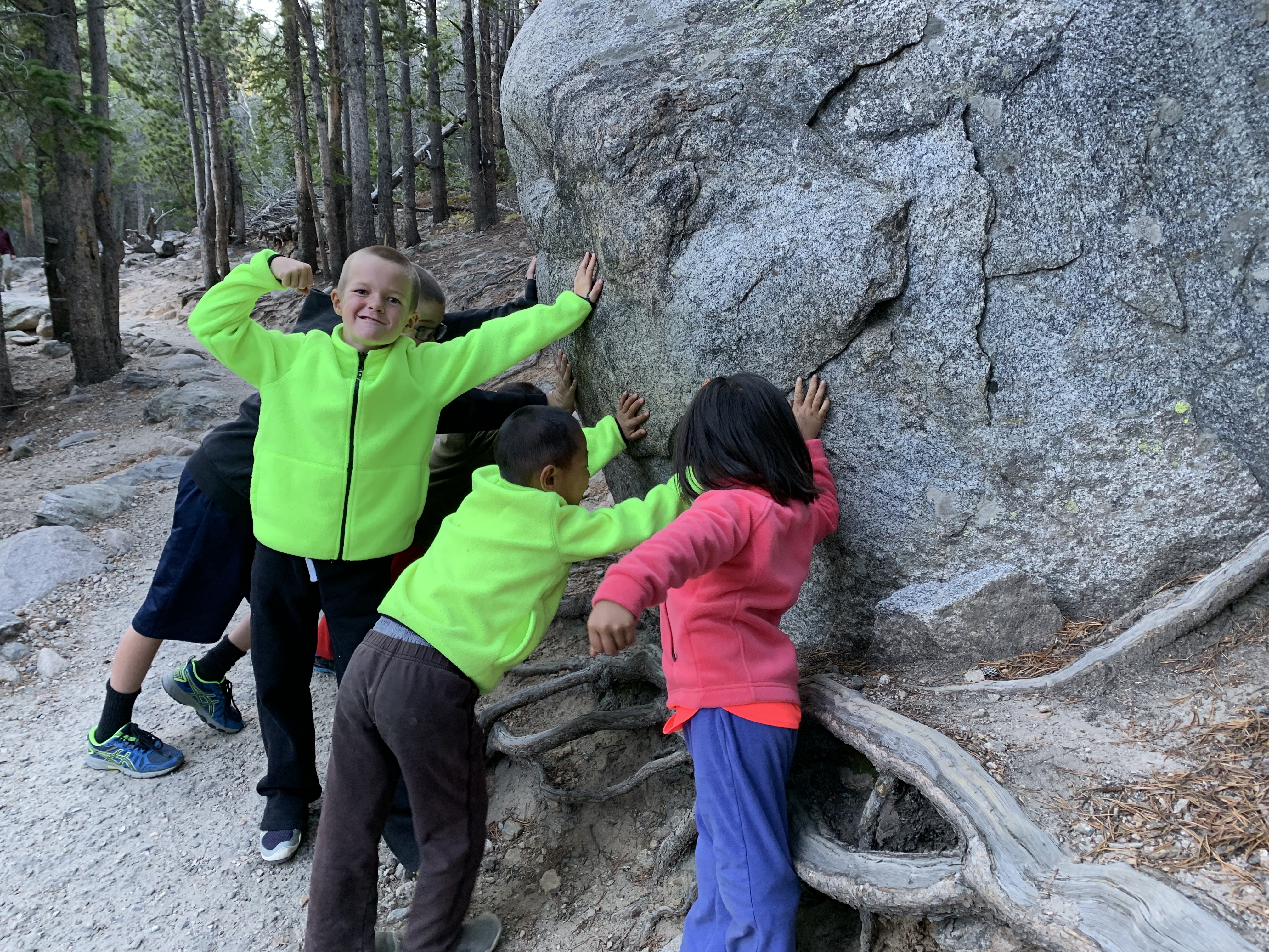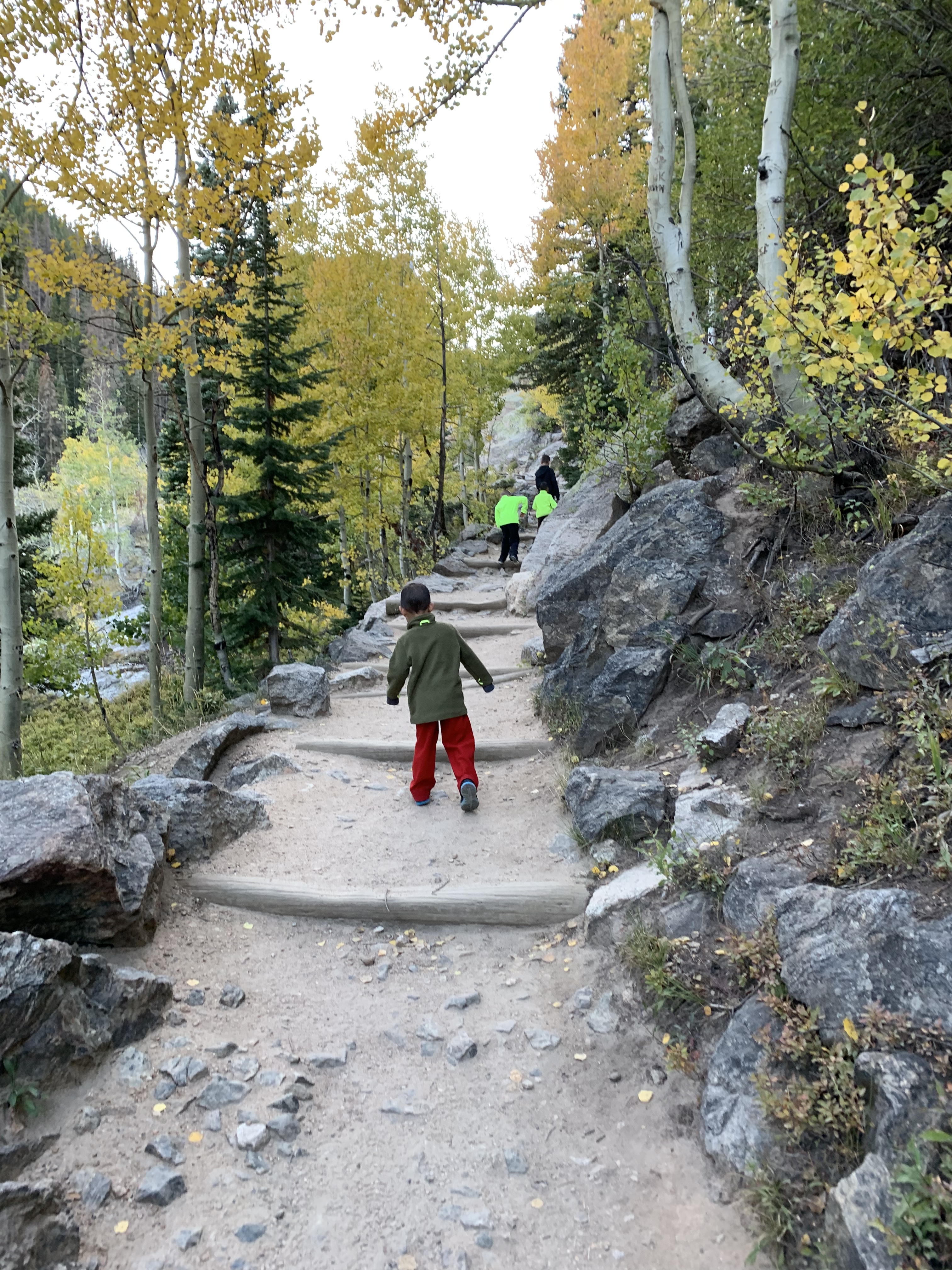 The kids pretty much ran up the majority of the trail and we worked to keep up with them. They jumped from rock to rock and leaped over others. We were going against the traffic as the majority of people were finishing up their day hikes. But that didn’t stop the kids and they smiled and waved at the other hikers.