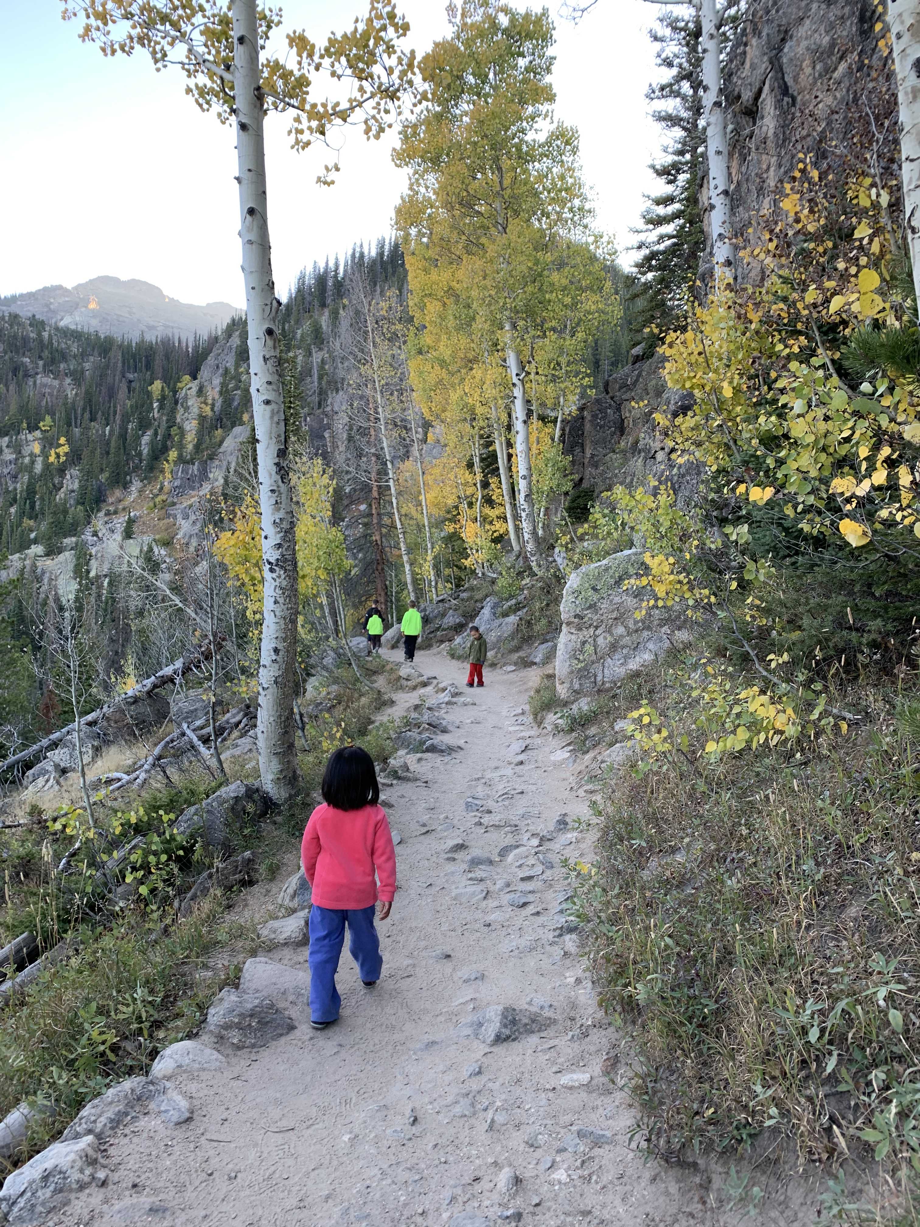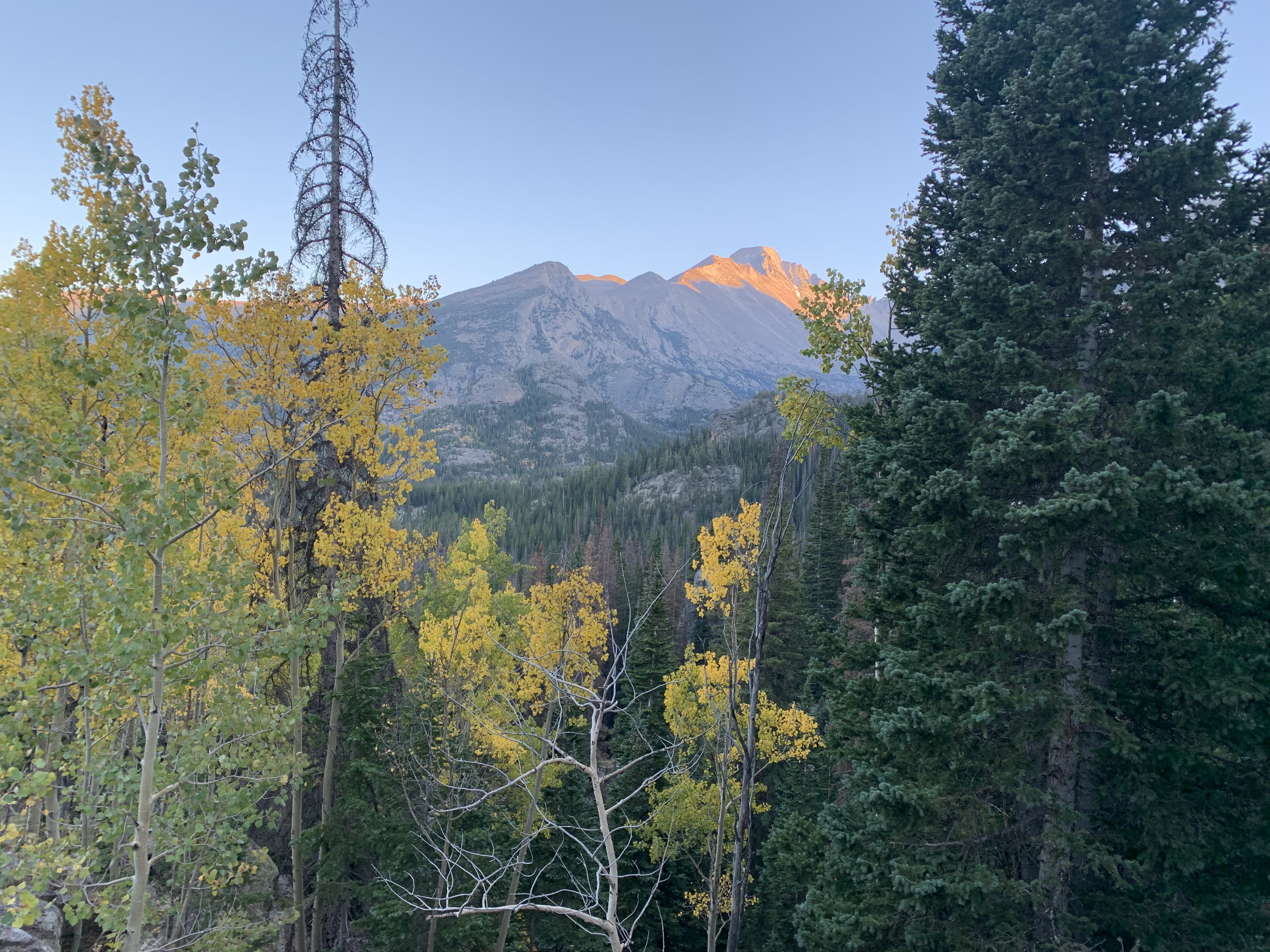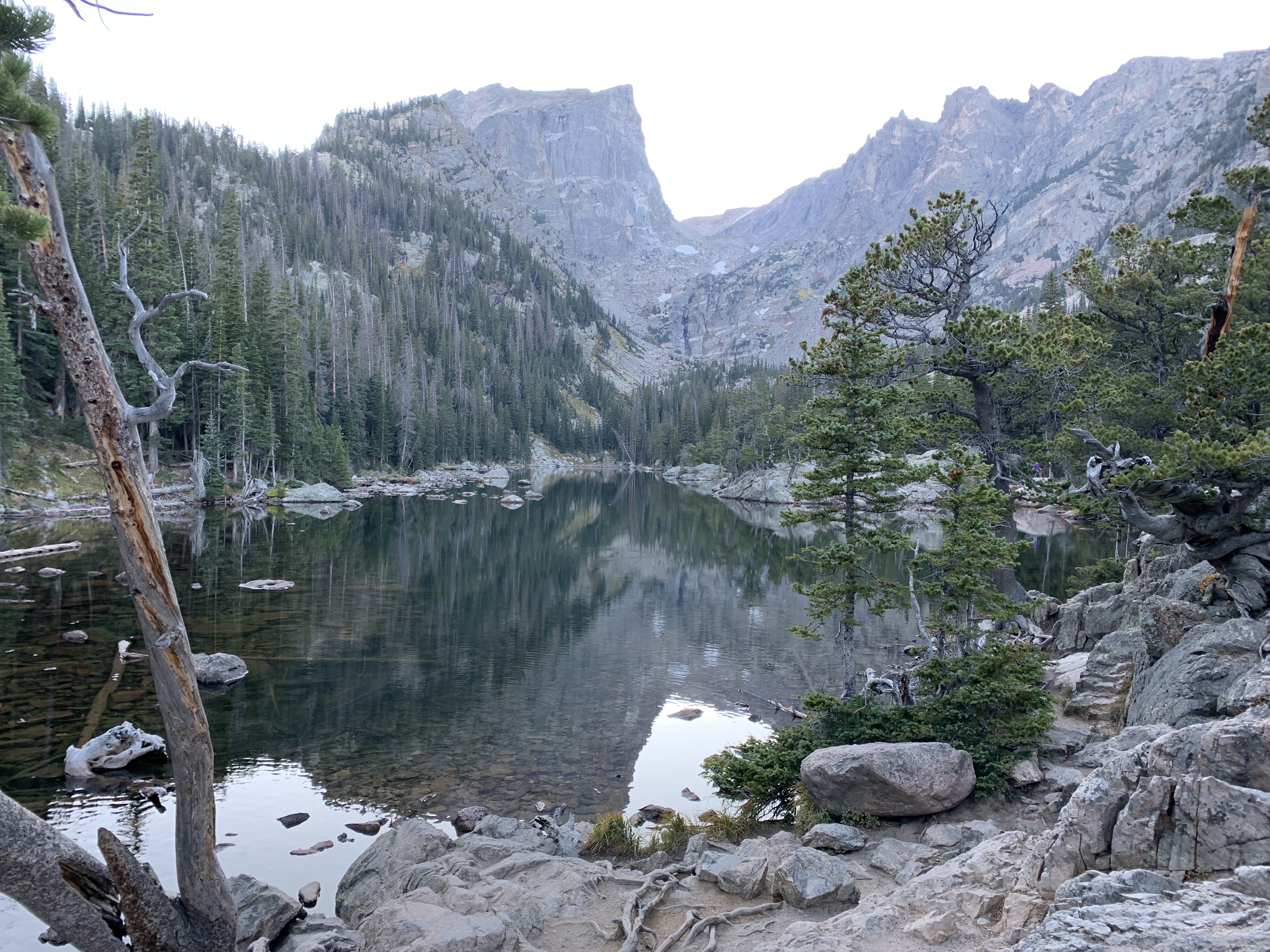 Both lakes were calm and gorgeous. We had our packed dinner at Dream Lake and just enjoyed out time together. We hiked down and as we neared the trailhead the sun was setting and the sky was changing to gorgeous oranges and pinks. We had a great time.