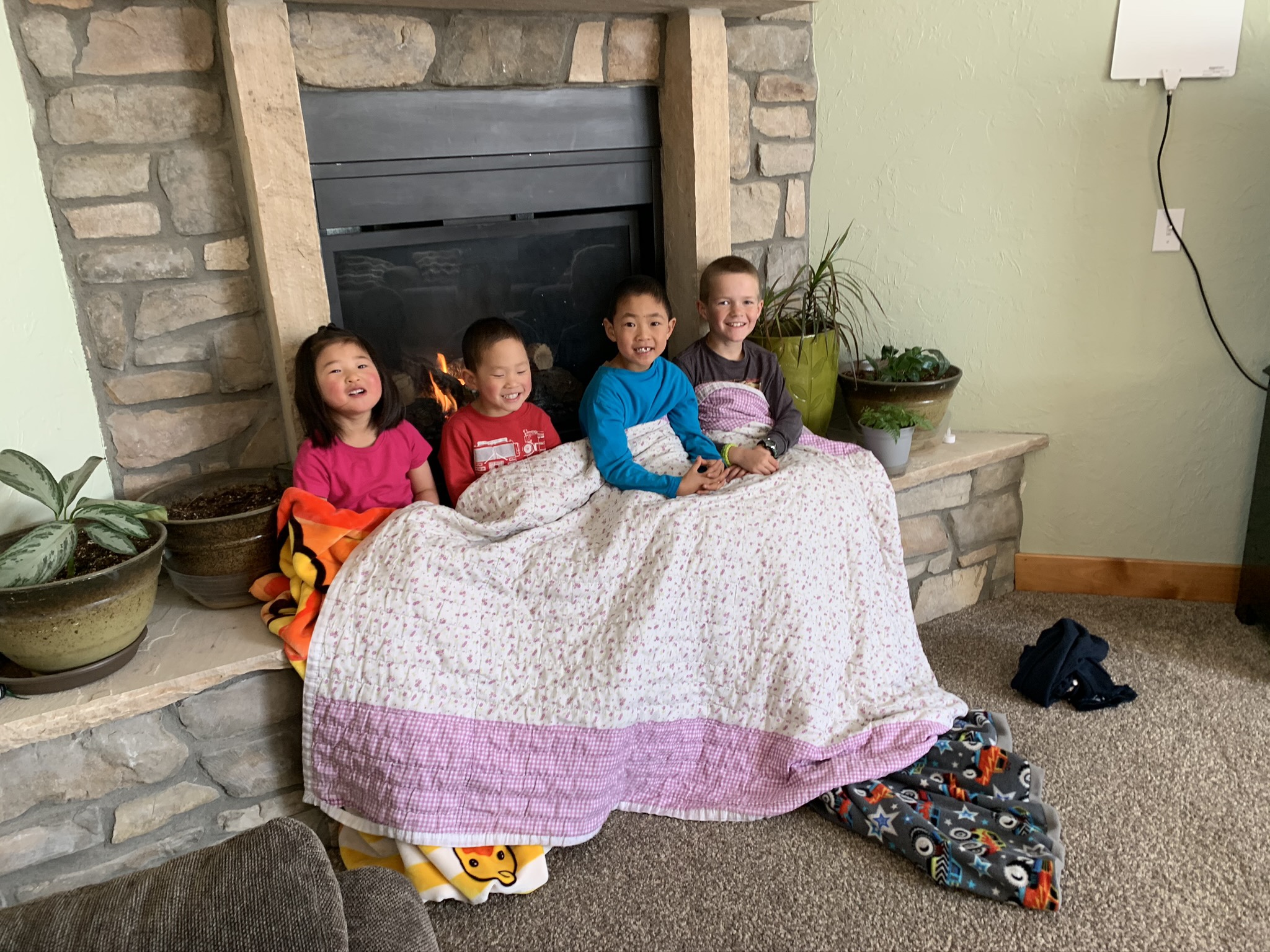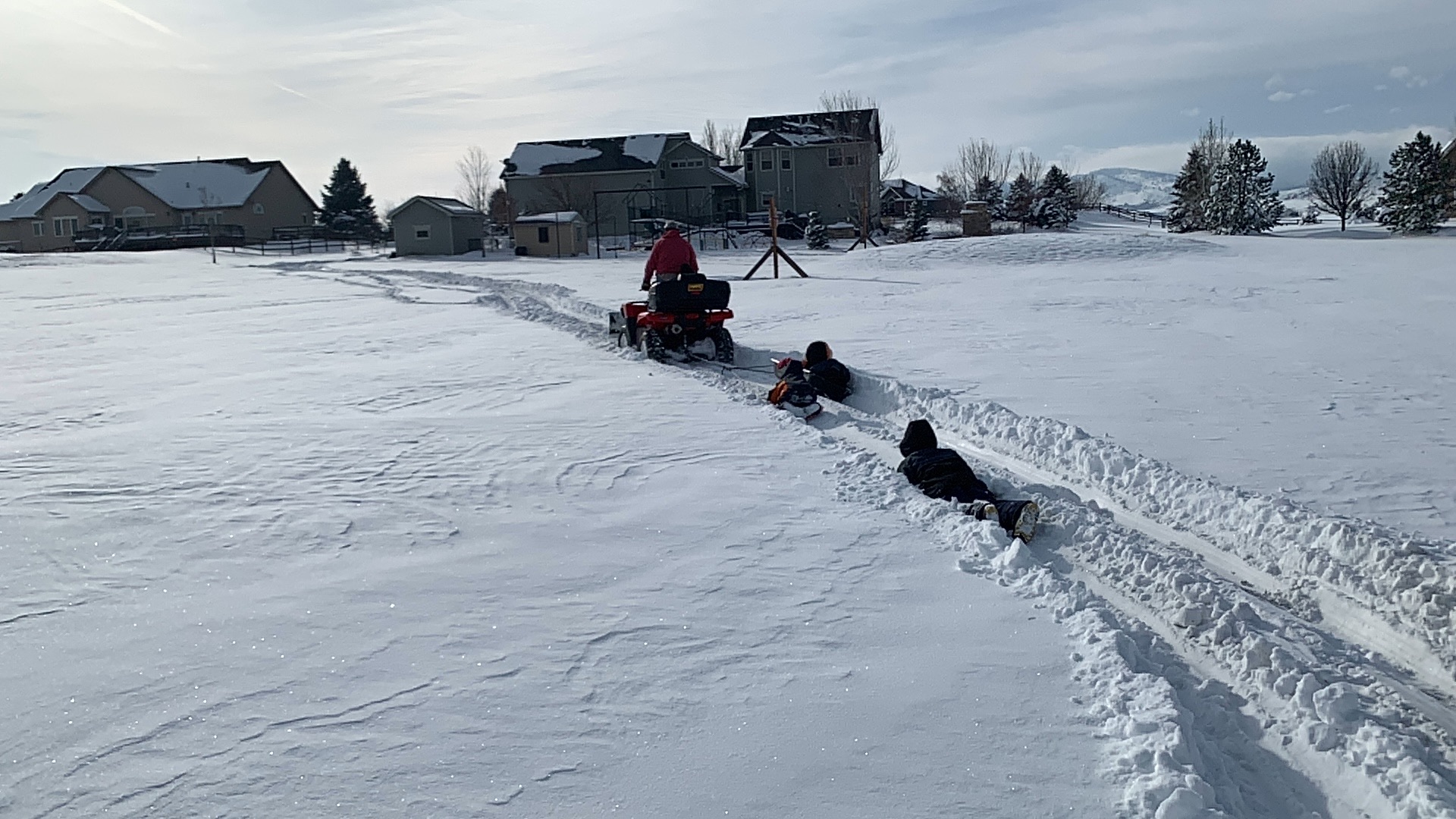 We got a lot of snow last week. To the tune of 18-20 inches. And it was super cold….and really it hasn’t warmed up all that much. The snow has been beautiful though. The kids have played in it quite a bit and on Wednesday my Dad brought the 4-wheeler over with some sleds. They all had fun with that but the snow was actually so deep that they had trouble getting the 4-wheeler through all the snow. Blankets and hot chocolate and time in front of the fireplace was needed after they all came in. It has been fun having so much snow….