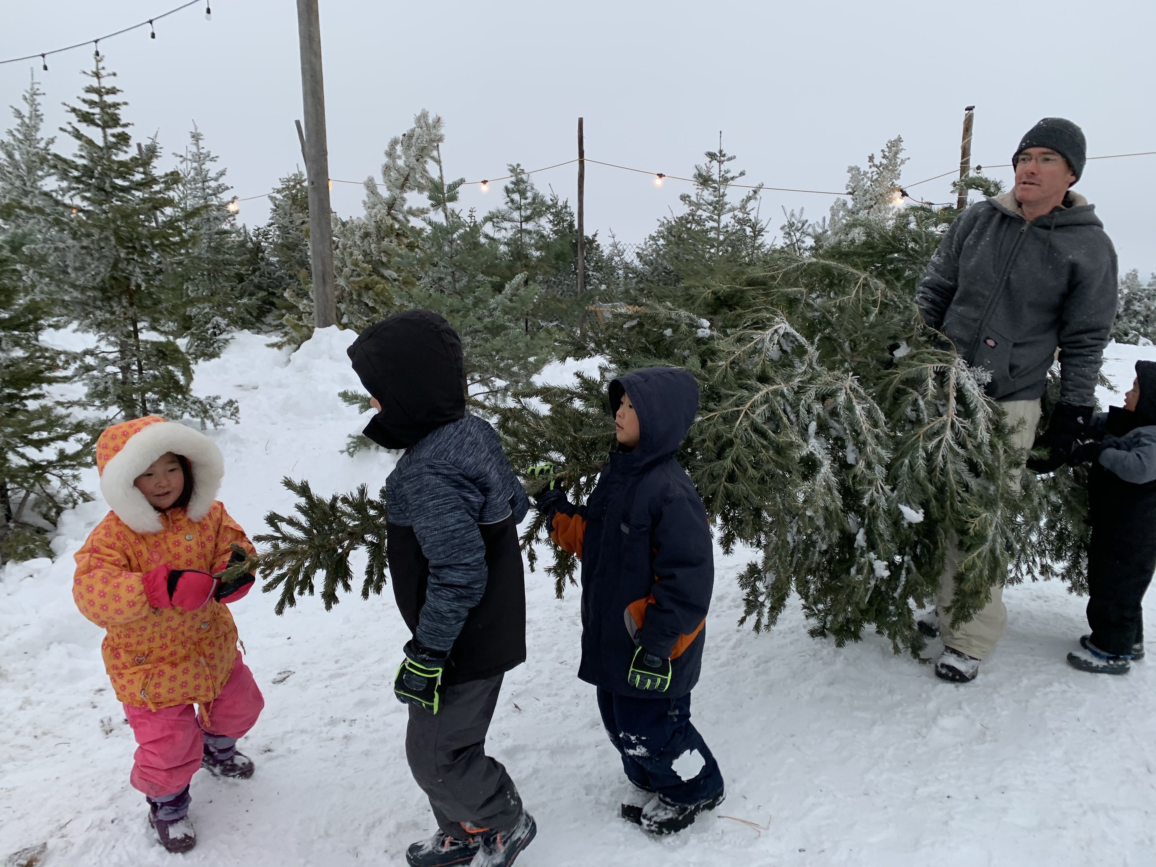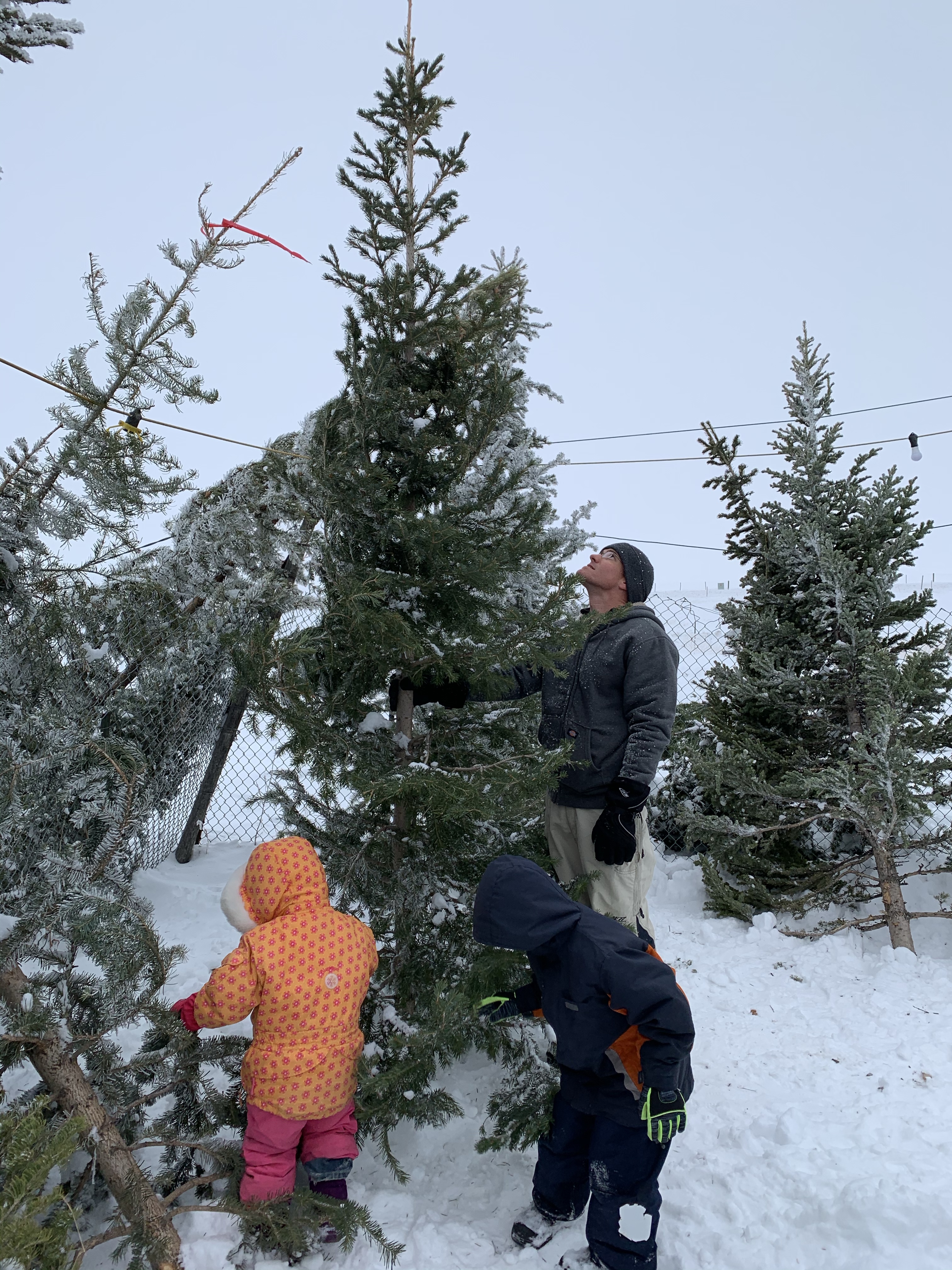 Last Friday found us in the cold picking out our Christmas Tree. We have been going to the same place for the past few years and we returned again this year. It is a family owned business that cuts and clears areas in Colorado and then uses the trees for Christmas Trees. The trees are all Charlie Brown like which is expected, but the family that runs it is always nice and goes out of their way. We knew we were going to need a larger tree this year because we moved where we normally put our tree, so we bundled up and scoured the lot. We finally found one that everyone was happy with and then warmed ourselves by the fire. All the kids wanted to “help” Clint carry the tree out. The owner told us that we had chosen a high alpine pine tree from near Gunnison. The tree was covered in snow and parts were kind of frozen thanks to all the snow we had gotten.