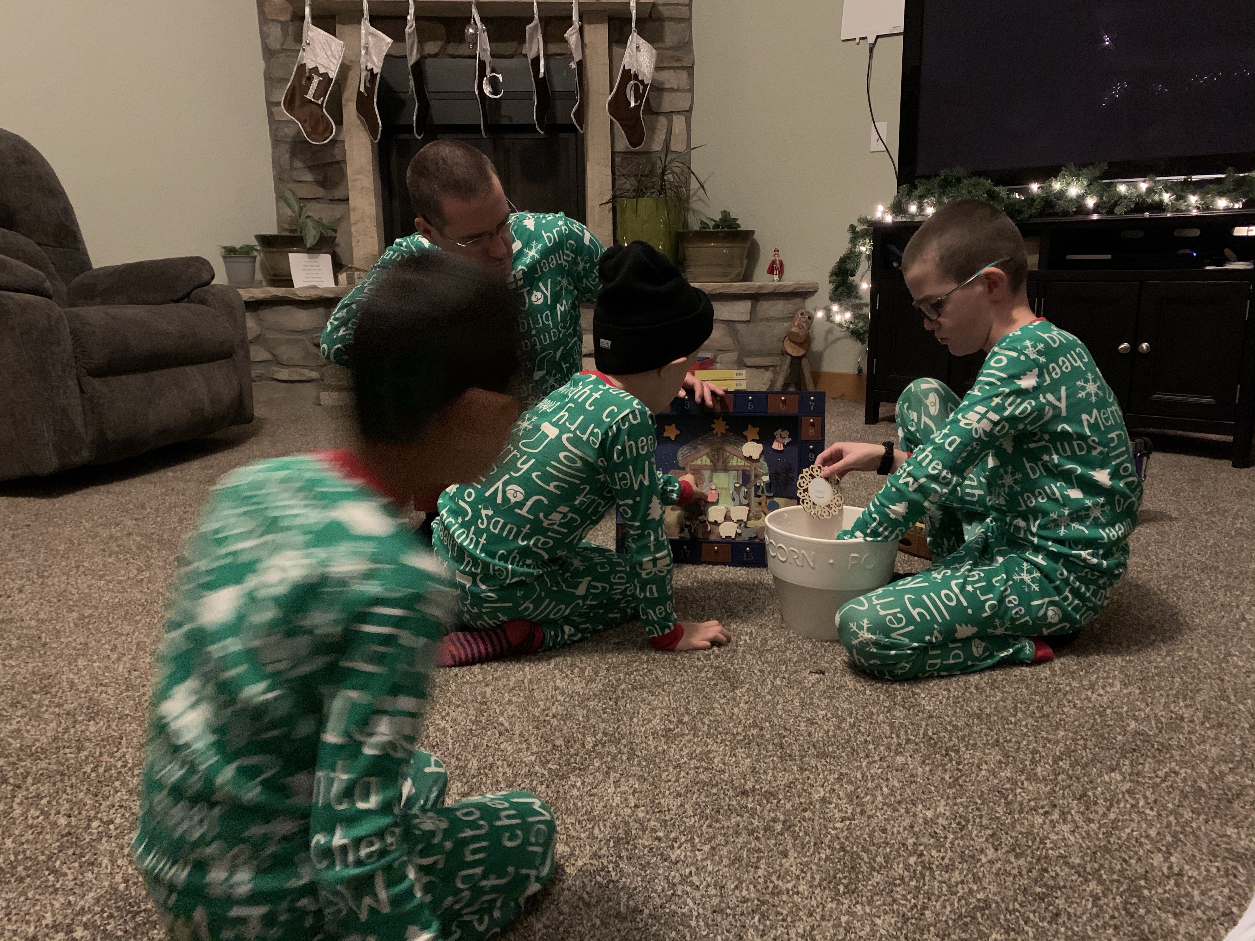 After game time then we finished out our Advent that we had been doing all month. We were a couple of days behind so we got caught up. We have been using the Jesus Story Book Bible and then also a magnet nativity set and the Jacob Tree Ornaments from Ann Voskamp. They have all been sweet reminders about the season and helped us connect as a family