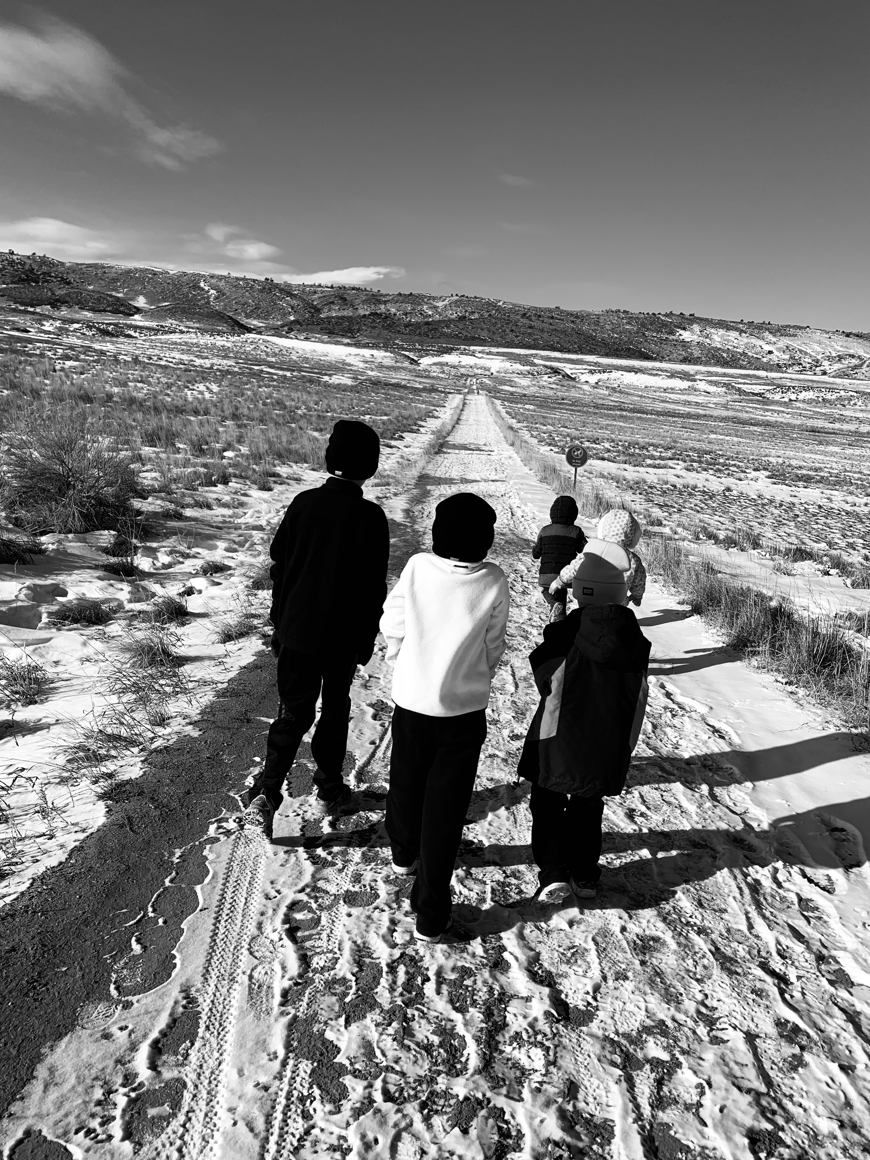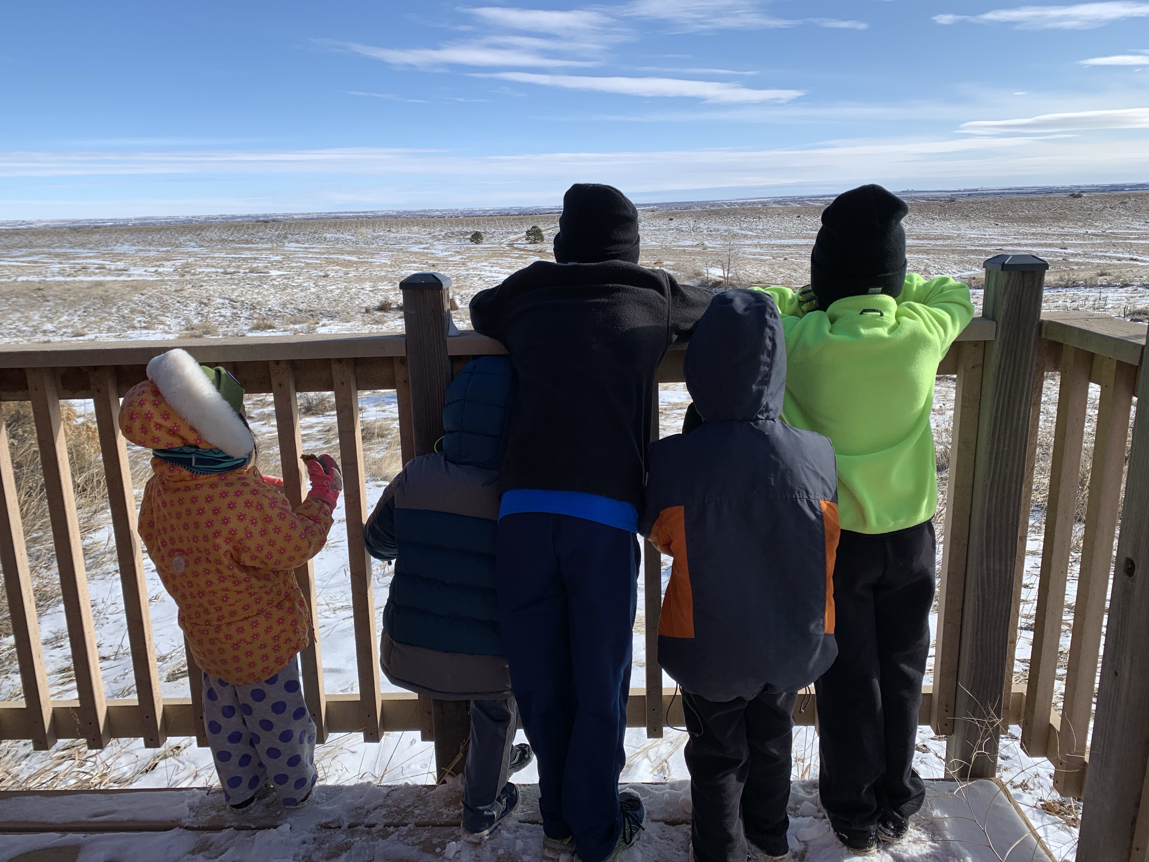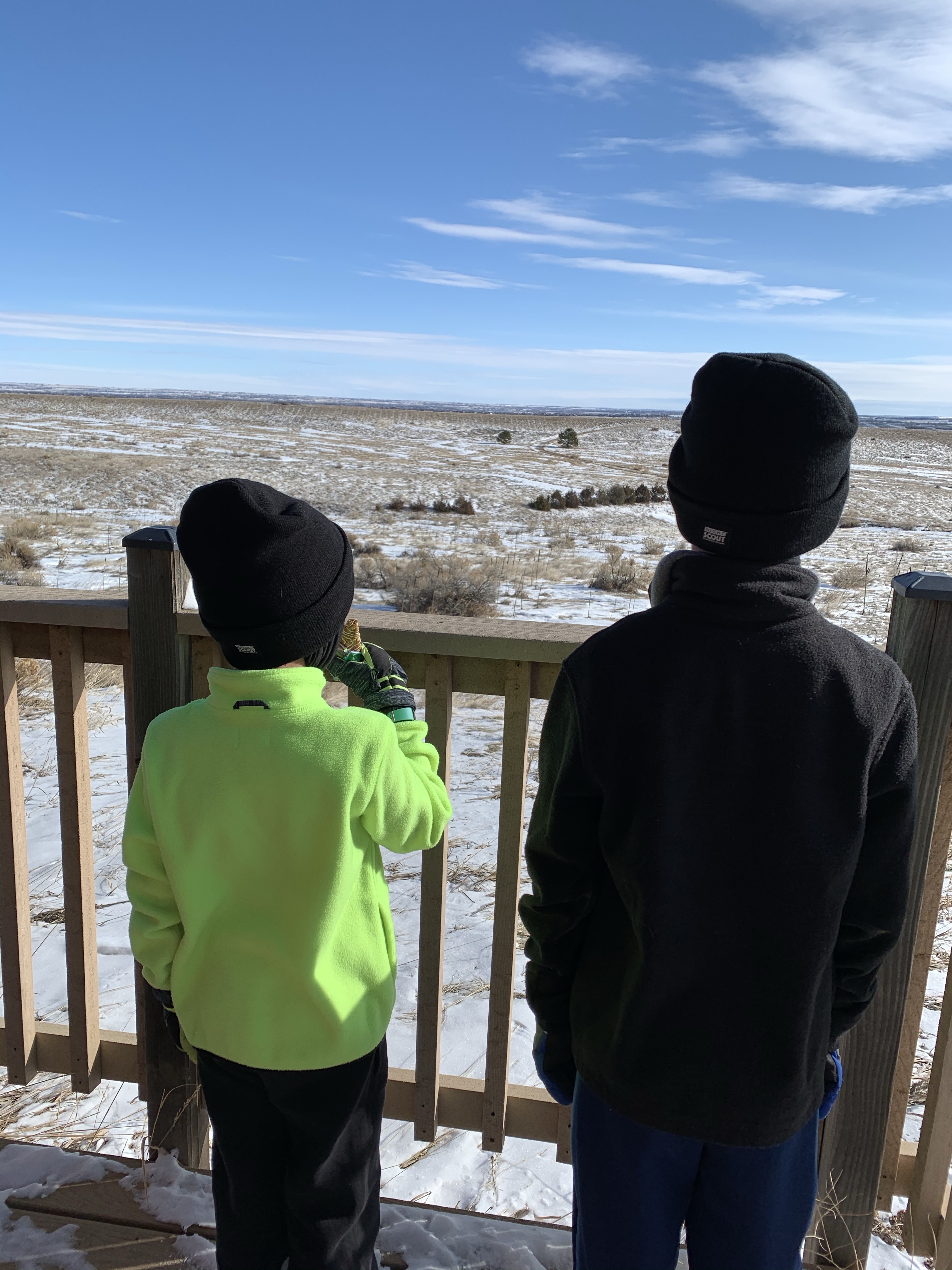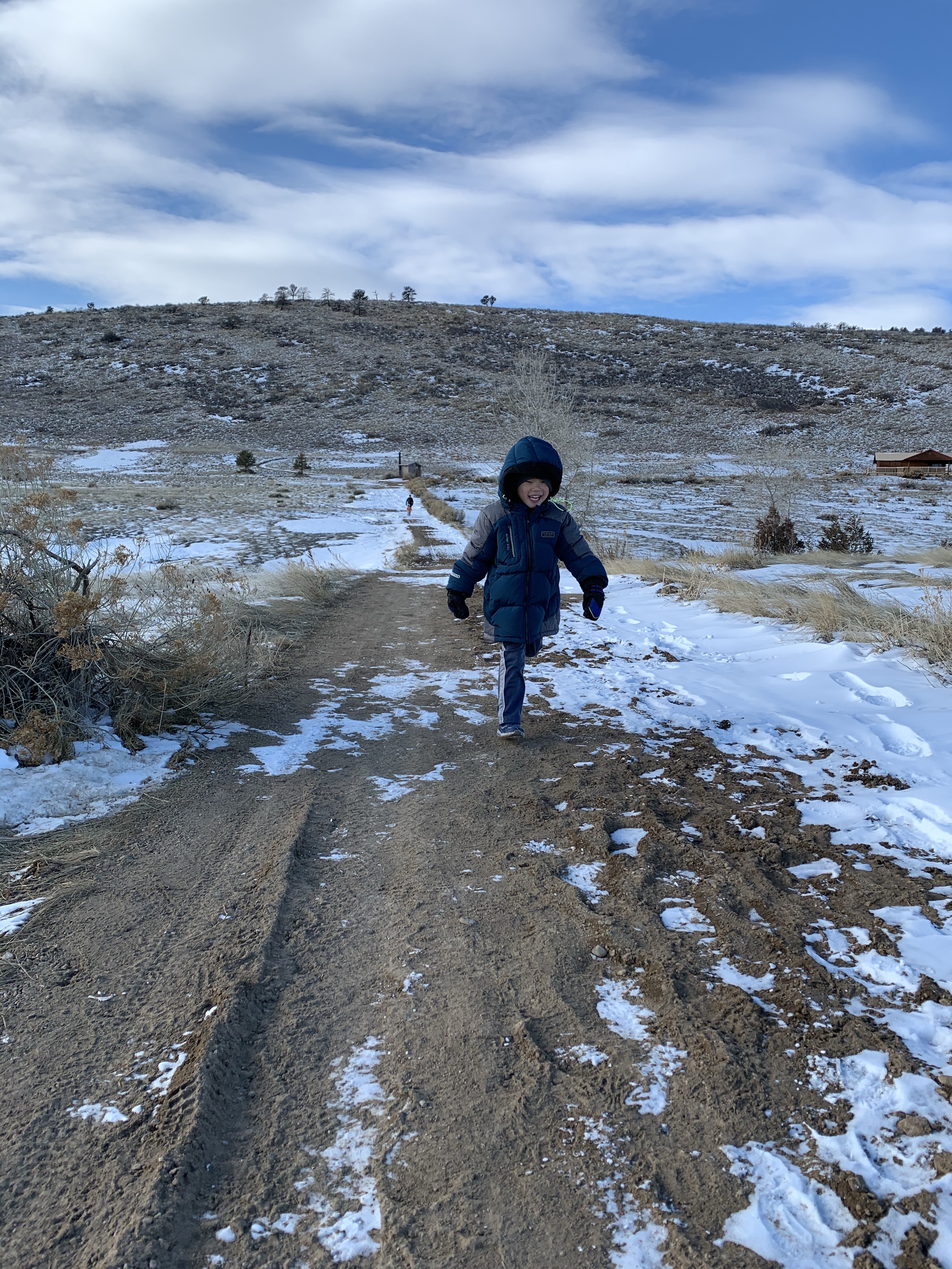 For my birthday I wanted to go on a family hike. Not a bad idea if my birthday was sometime between April and October….but it’s not, it’s at the end of December. And sometimes in Colorado the end of December can feel like April….but not this year. We have had one of the coldest Decembers recently and my birthday weekend continued the pattern. We actually ended up going on our hike the day after my birthday because it was snowing and there was a ton of wind on my actual birthday. I’m not sure waiting a day really made that big of a difference but since our church was cancelled that day so staff could visit family for the holidays we made the best of it. Kind of. It was all of 25 degrees before the wind and the wind drove it way down into the teens. The kids were all layered up with the little ones in their fleece pjs under additional fleece shirts and pants and heavy coats. The bigger boys all had at least two layers on as well. Hats and gloves as well and we ended up using the extra ear bands I packed around everyone’s cheeks to help keep them warm. All in all we still didn’t make it too far, total trip was right at 2.5 miles. It was the chilly wind that got us….I think if we hadn’t had wind we might have pushed on farther. We stopped at the turn around point and gave everyone granola bars and that seemed to help….Caedmon went from whining and crying a good part of the way there to being the one leading the packing running back down the trail on the way home. While it may not have been as far as I wanted and part of me really wanted to make it up the ridge….I also knew it is December and they are kids and it was really really cold. It still was a great way to spend time as a family and celebrate together.