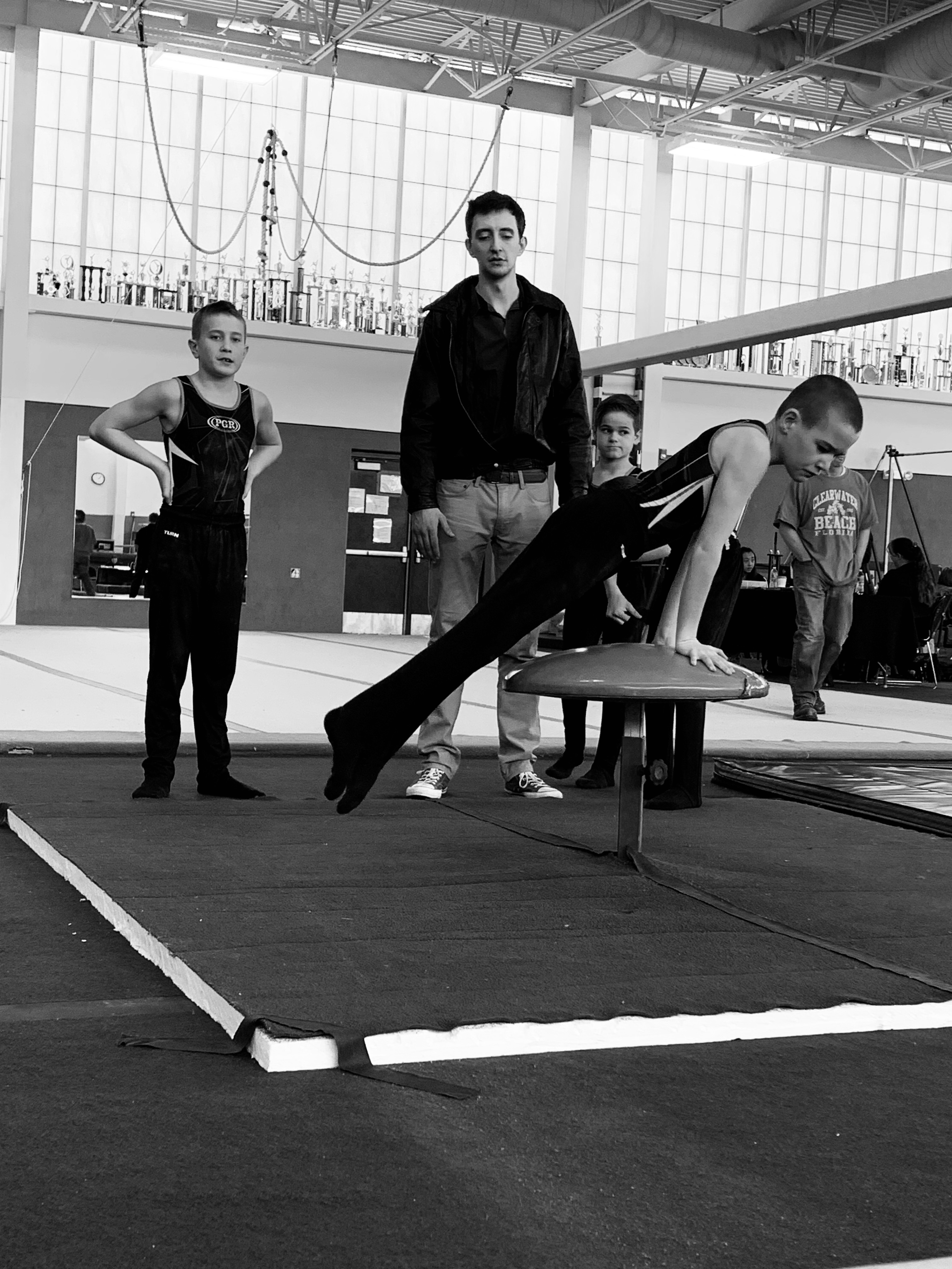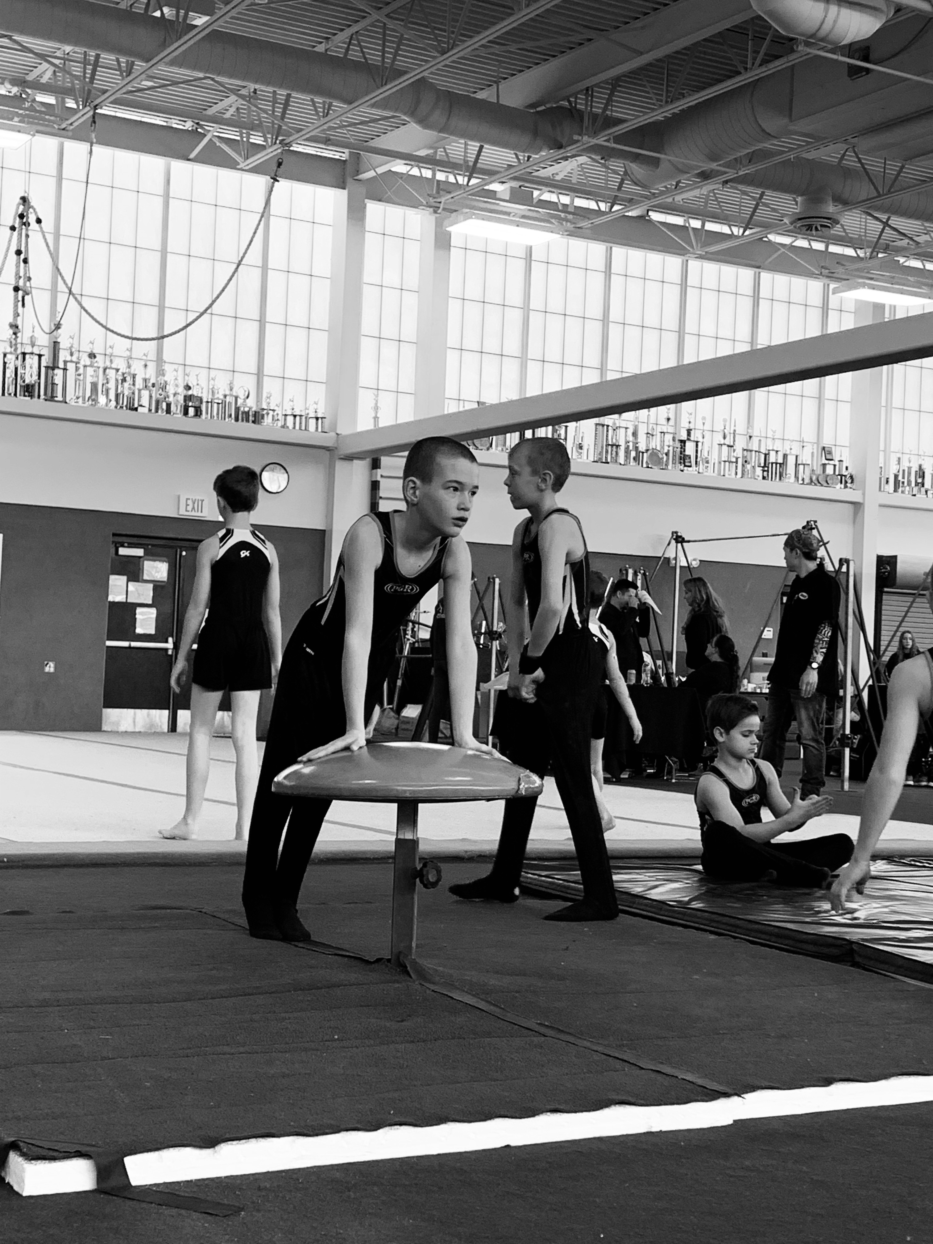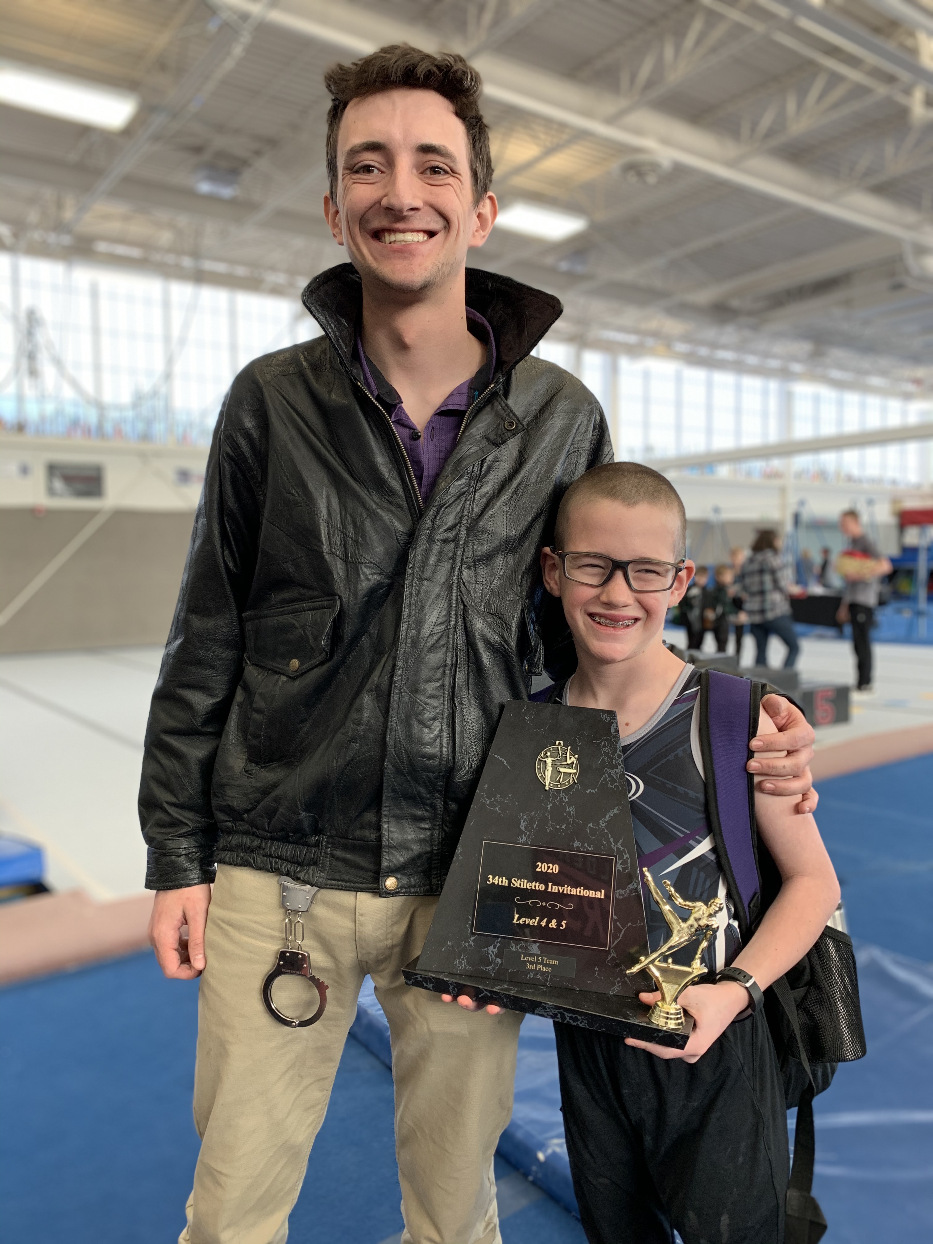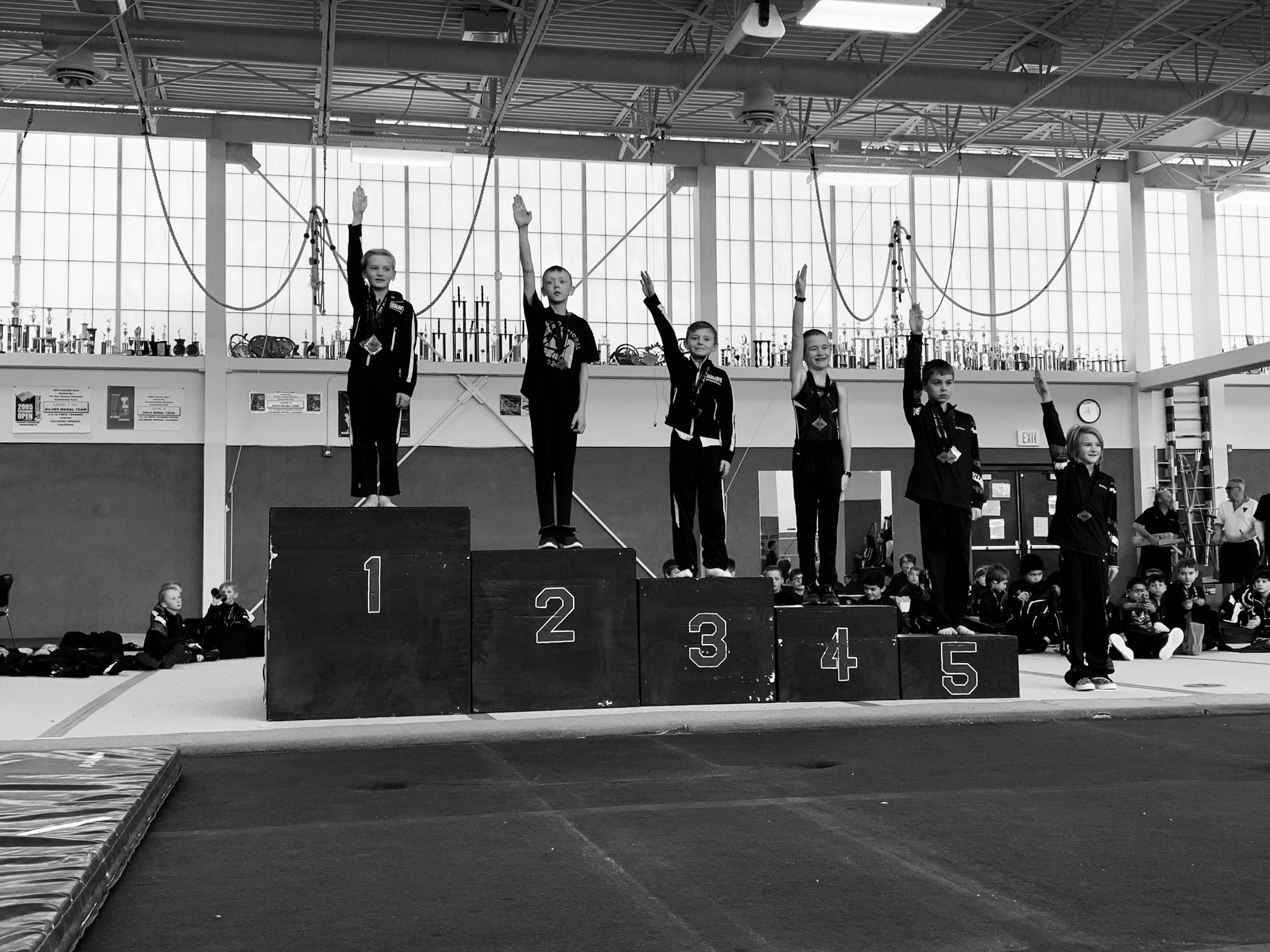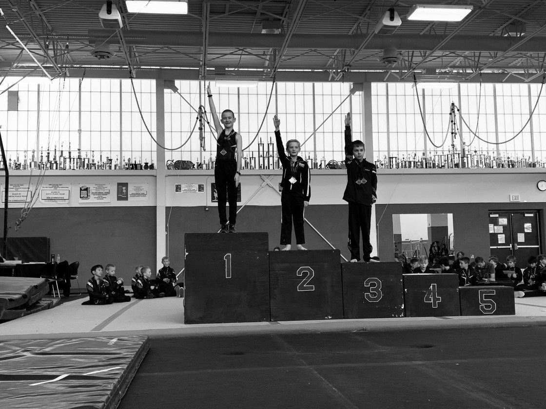 On Sunday Leighton had his third gymanstics meet of this season. It was in Boulder and it was a really fun meet. The meet has been around for 34 years and was started way back when mens gymnastics was declining, so they came up with this meet to make gymnastics cool and fun for boys. So as part of the meet they have a costume contest for all the teams and the winning team gets a huge trophy to take home. The judges also dress up in costume and go by mobster names for the meet. Our boys didn’t win the costume contest but according to Leighton a couple of the judges came by later and told the boys that they thought our boys should have won. My mom came to the meet and so did the rest of the kids. Which meant Leighton had quite the cheering crowd and it also meant that after his team was done with an event we found an excuse to go walk the halls or go run the sidewalks or something to help get the wiggles out. The other kids did really well all in all…might have been because I bribed them with the promise of a gummy bear after the meet if they did well, but sometimes you do what you have to do. Leighton did really well, he took first in Pommel Horse and Vault and 3rd in Rings and 4th overall for his age group and division. He scored a 10.0 on Pommell (out of a total of 11 because he has two bonus skills that have the potential to add 0.5 to his score) and when that score popped up he got the biggest grin on his face. Floor is still a struggle and he’s still working on getting his kip on high bar although he almost had it on his own in the meet today and he did it once in practice last week so its just a matter of time. It’s been fun to watch him grow and get better and work through things that are tough. He really likes his teammates and it is fun to watch them work together and they ended up 3rd overall as a team with a big trophy to take home to their gym.