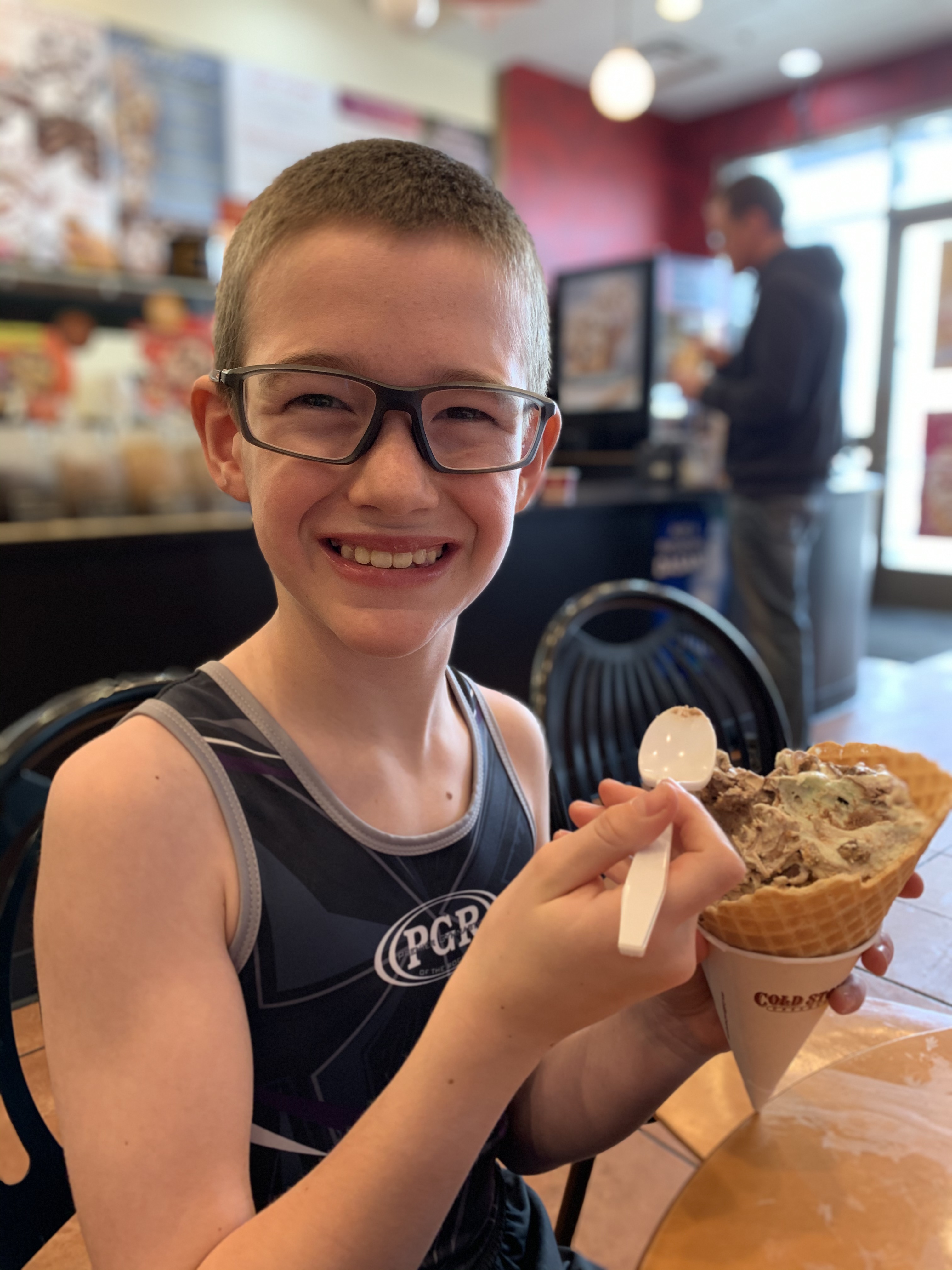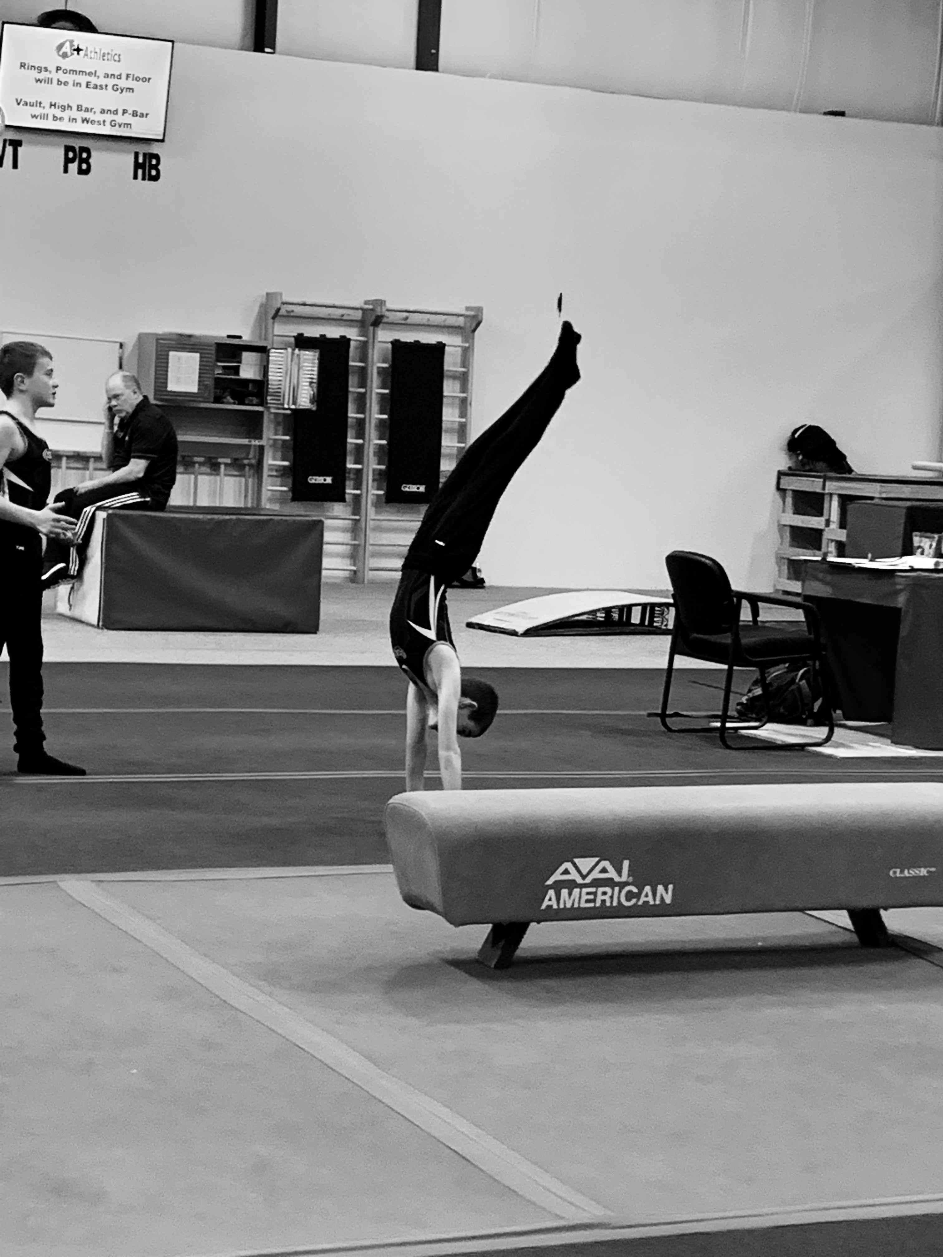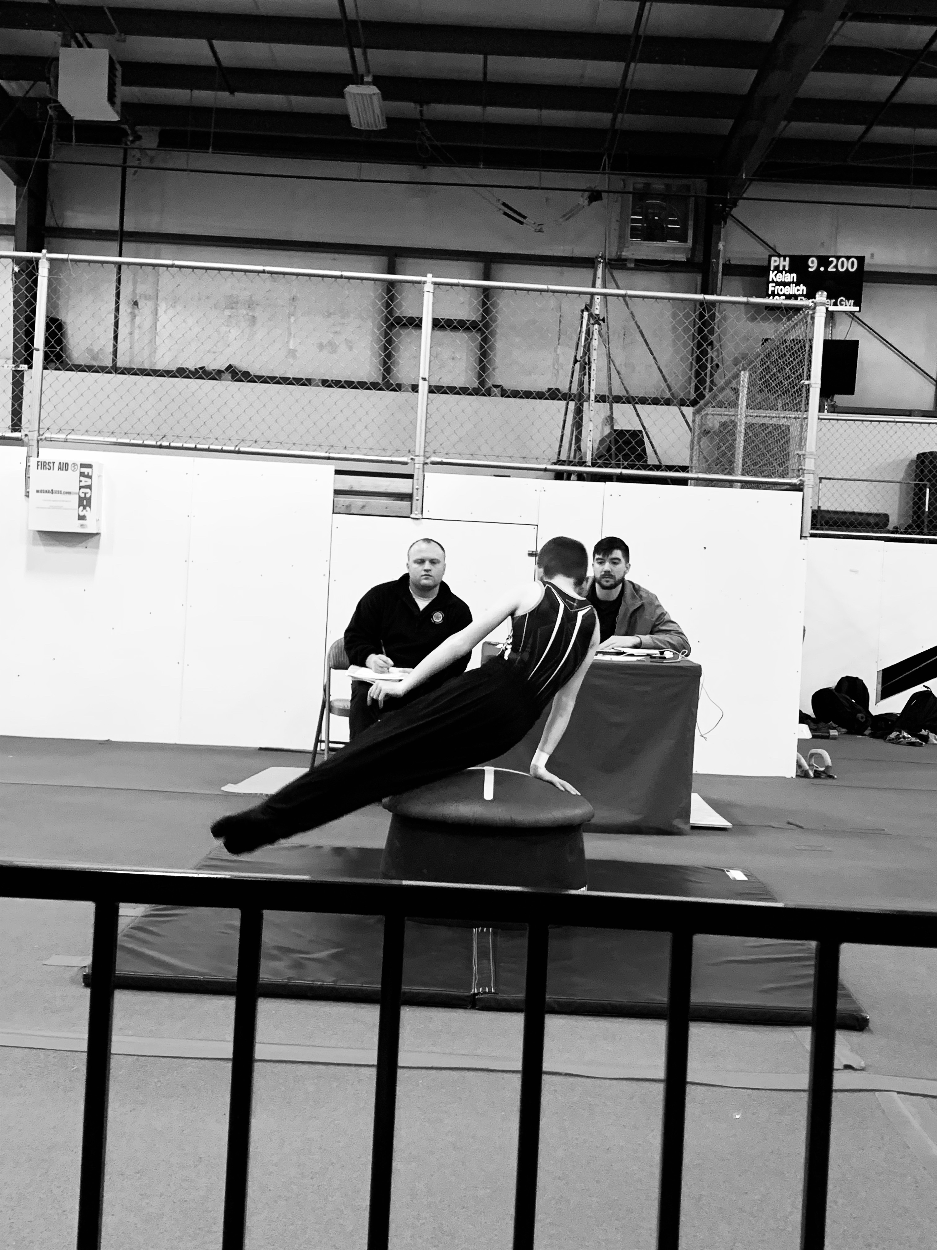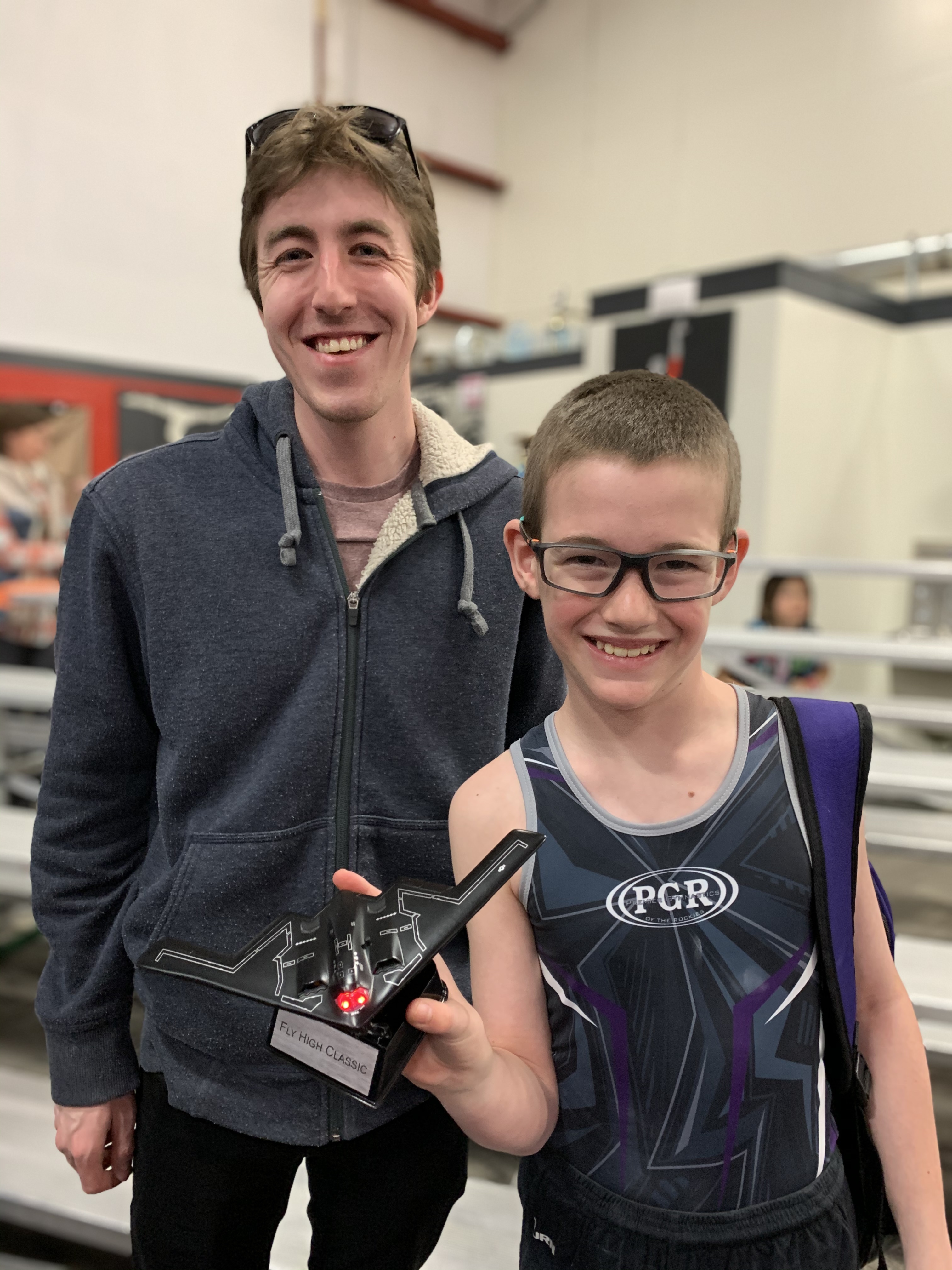 Meet number 5 is in the books as of this past weekend, Leighton only has State and Regional meet left of this season. This meet was down in Centennial Colorado which is really close to where my brother Chris lives, so he and his partner met us and cheered Leighton on with Clint and I. It was a super fun meet, the theme was “Fly High” so to introduce the boys they ran in on a lightened runway and did flips onto the mat. Leighton did really well, he has improved each meet, still has many things to work on but it has been a season of growth and development. His best two events are still pommel horse and vault which he took 2nd and 4th on. This meet however instead of handing out medals they gave the kids model airplanes which to young pre-teen boys that far beats medals anyway. After the meet we went with Chris and Adam for ice cream which topped off a great day.