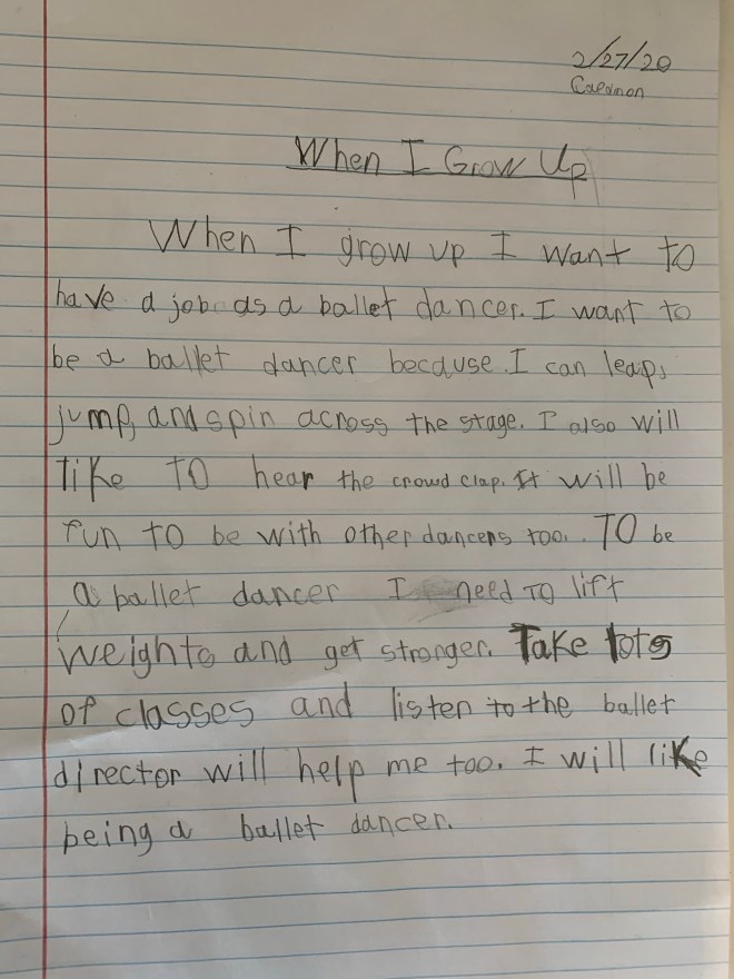 Caedmon loves ballet. There is no question about that. Every Tuesday and Friday afternoon he is begging me to leave for his class early so he can get there and watch the big dancers dance. Last week after his boys dance class some of the big dancers were practicing one of the scenes for the upcoming Lion Witch and Wardrobe Ballet that he’s in in April and he just stood transfixed at the window for nearly 15 minutes when I finally gently nudged him out the door so we could go home and eat dinner. He had to write a paragraph last week about what job he wants when he grows up and things that he will have to learn to do that job well and his paragraph was all about being a ballet dancer. He said he’s going to have to lift weights to get strong, and he will have to take lots of classes so he can learn all the steps. His face just lights up when he gets into class or rehearsal. It is so much fun to watch him do something that brings him so much joy. And he is super excited to be a Bee in Narnia with the Lion Witch and Wardrobe.