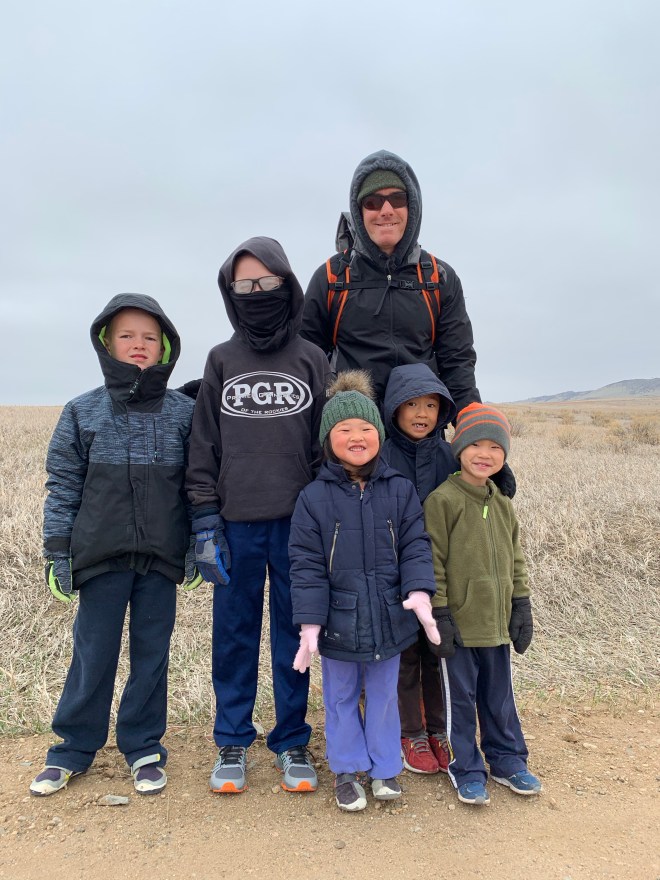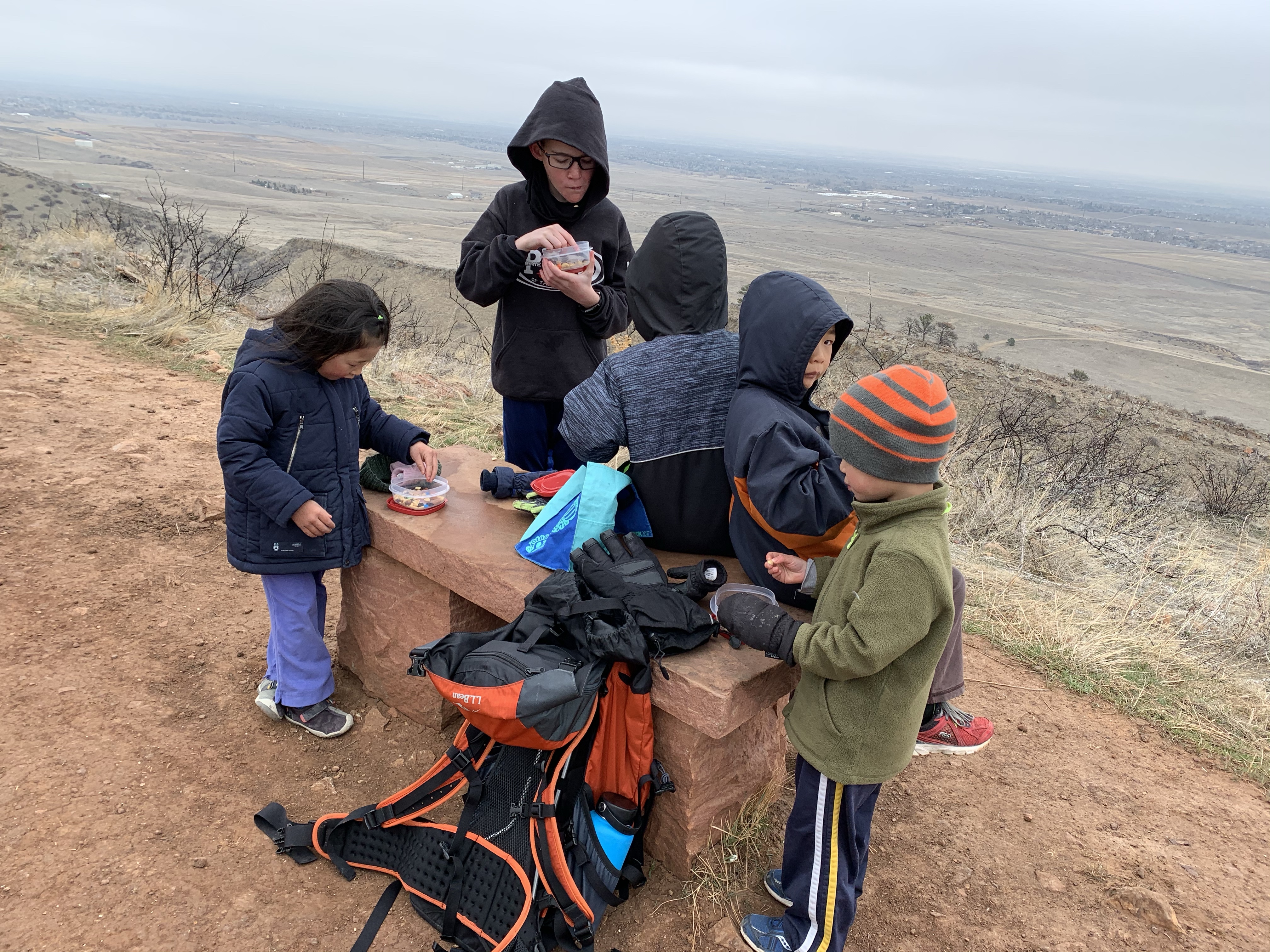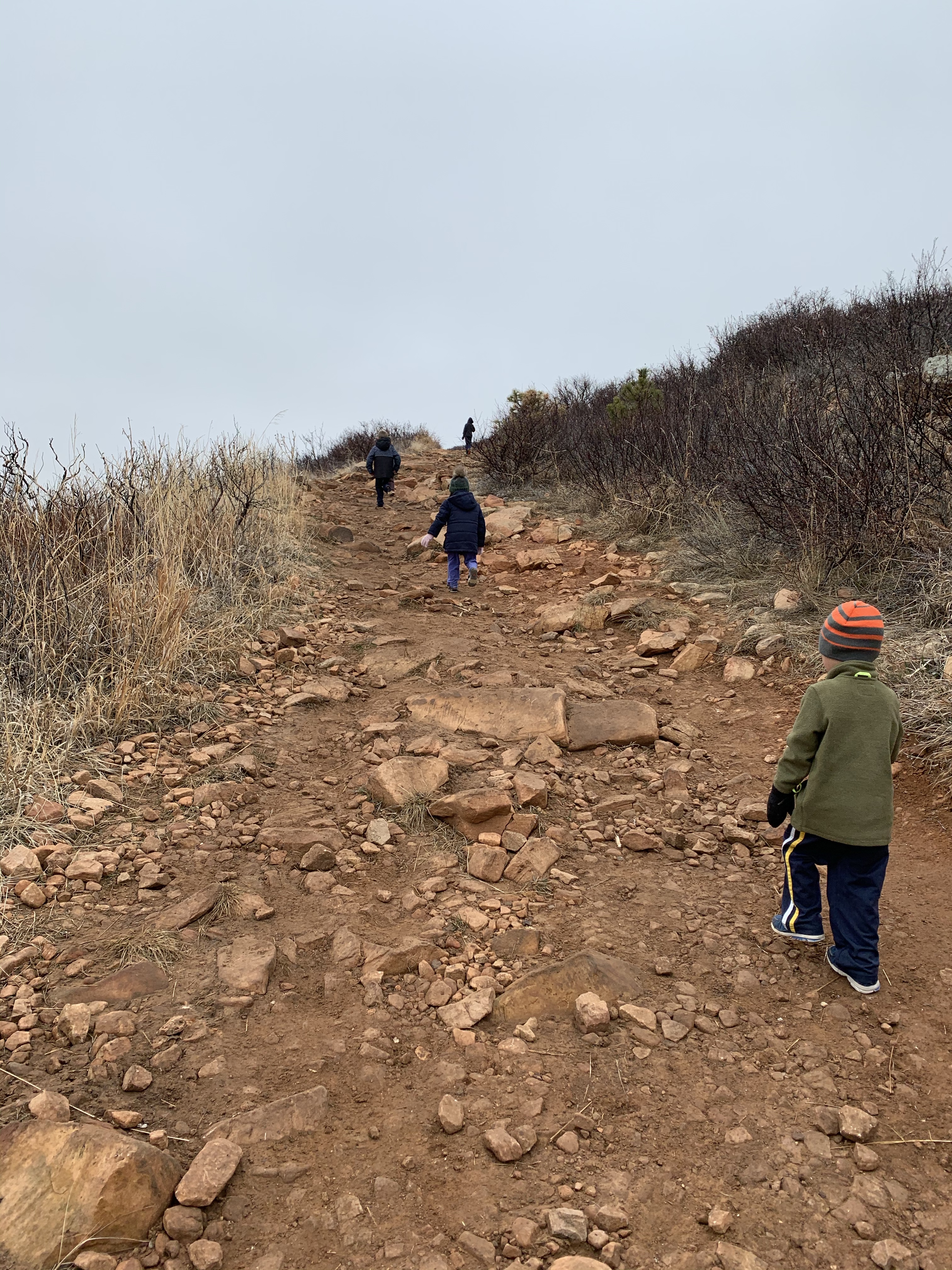 Sunday morning since we didn’t want to be in any large group even though we go to a small church and they were still meeting, with me working in an ER and being on the front lines I can’t risk getting sick or potentially making someone else sick, so we took our quarantine on a hike. It was chilly (all of about 35 degrees) and the trail was fairly abandoned, there were a couple of runners and maybe 2 or 3 other small groups but we pretty much had the trail all to ourselves. So we bundled up and enjoyed it. We ate trail mix at the top and all in all went about 4.2 miles. Smiles and good times abounded and we all got some much needed fresh air and exercise.