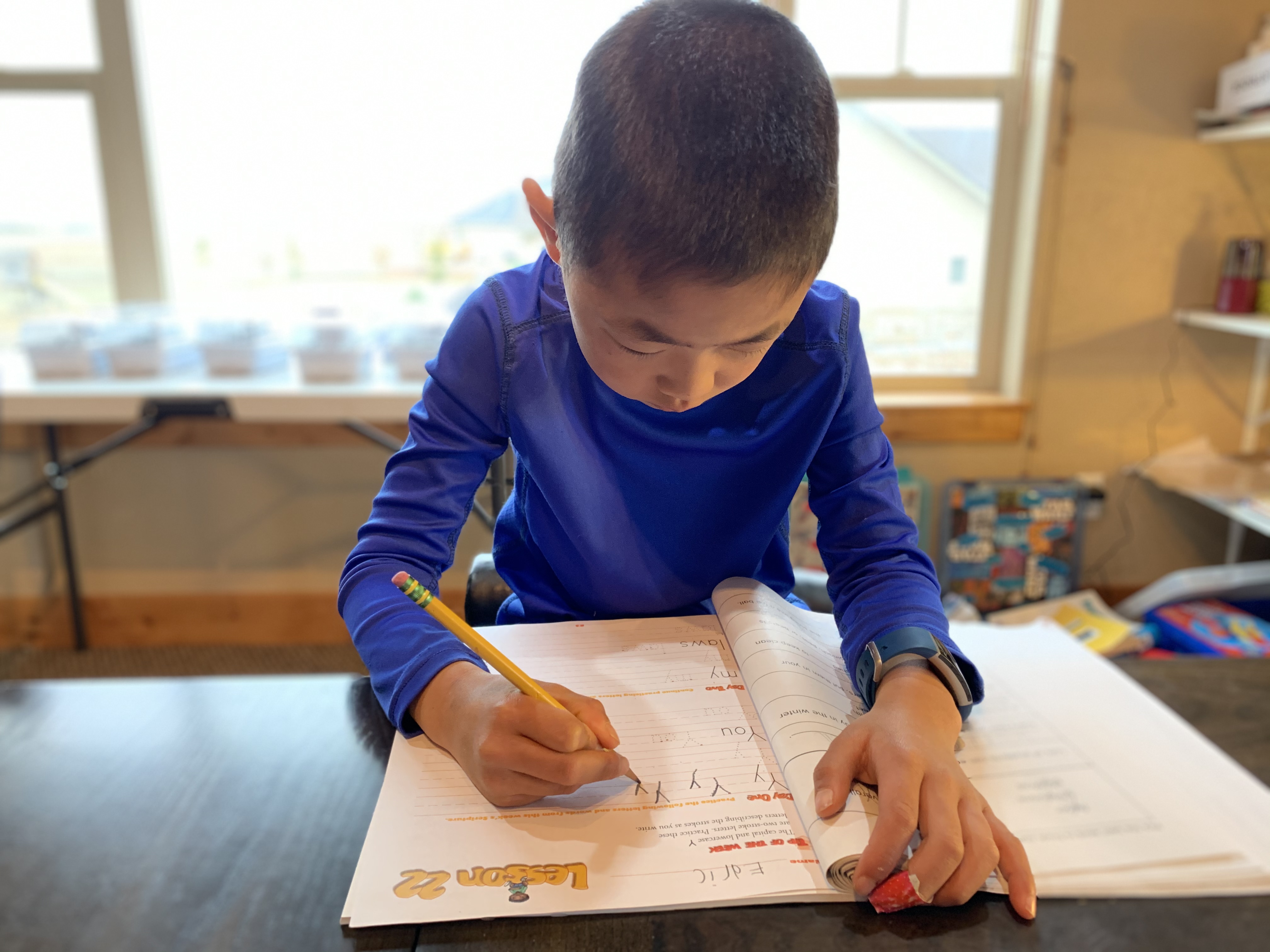 I don’t know if people are wanting or needing tips and tricks….I can’t really say we have that many, outside of trying to keep the routine going. As a family of 7 we just run and function better on a routine. Everyone gets up and does their chores after breakfast and then we dive in. We typically start around 8AM and shoot to be done by 12ish but sometimes we extend into the afternoon. Science often doesn’t get done but we make up for it on other days when we have time. Everyone usually starts with a journal prompt…..we have long since run out of ideas for those prompts and hope each morning or the night before we come up with something. And then we just start plowing through reading, writing, math, spelling, history, Bible, phonics, handwriting, science, piano, with some cello and test prep thrown in for Leighton. Some days things go smoothly but usually at least at some point there are tears or a bad attitude or whining. And we work through it and just push on. I’m not real picky as far as where the kids do their work as long as their handwriting is neat….Caedmon and I often camp out on the floor for his math and the bean bags work great for Edric with his reading. We have more ball chairs then actual chairs and Clint often heads downstairs to the couch to do history and Bible with Caedmon and Edric. When it’s nice outside we do everything on one of the porches. And each kid learns differently and likes different subjects. It’s actually been fun to work through and figure out what clicks for one and how to get another to connect with something. Leighton has spent this year in his literature and history studying the Eastern Hemisphere, so we’ve covered China/Japan/Korea/Vietnam/Thailand/Russia/India/Saudi Arabia/Israel/ and he’s just started diving into Africa. It has been fascinating and fun to learn a lot about a part of the world I’m not as familiar with. We’ve added Paxton and Coppelia into the mix, both are at totally different spots even though they are mere weeks apart in age. So we’ve found some free little worksheets for them and just expanded on the letter/number practice we were already doing to support their preschool work. They only do 20-30 minutes a day because they are 4 and really at their age their “learning” is more through play and figuring out how to interact and how the world works. I overheard them playing pretend airplane and Coppelia told Paxton they were flying to North Dakota….I have no idea where she even heard of North Dakota but away they went.