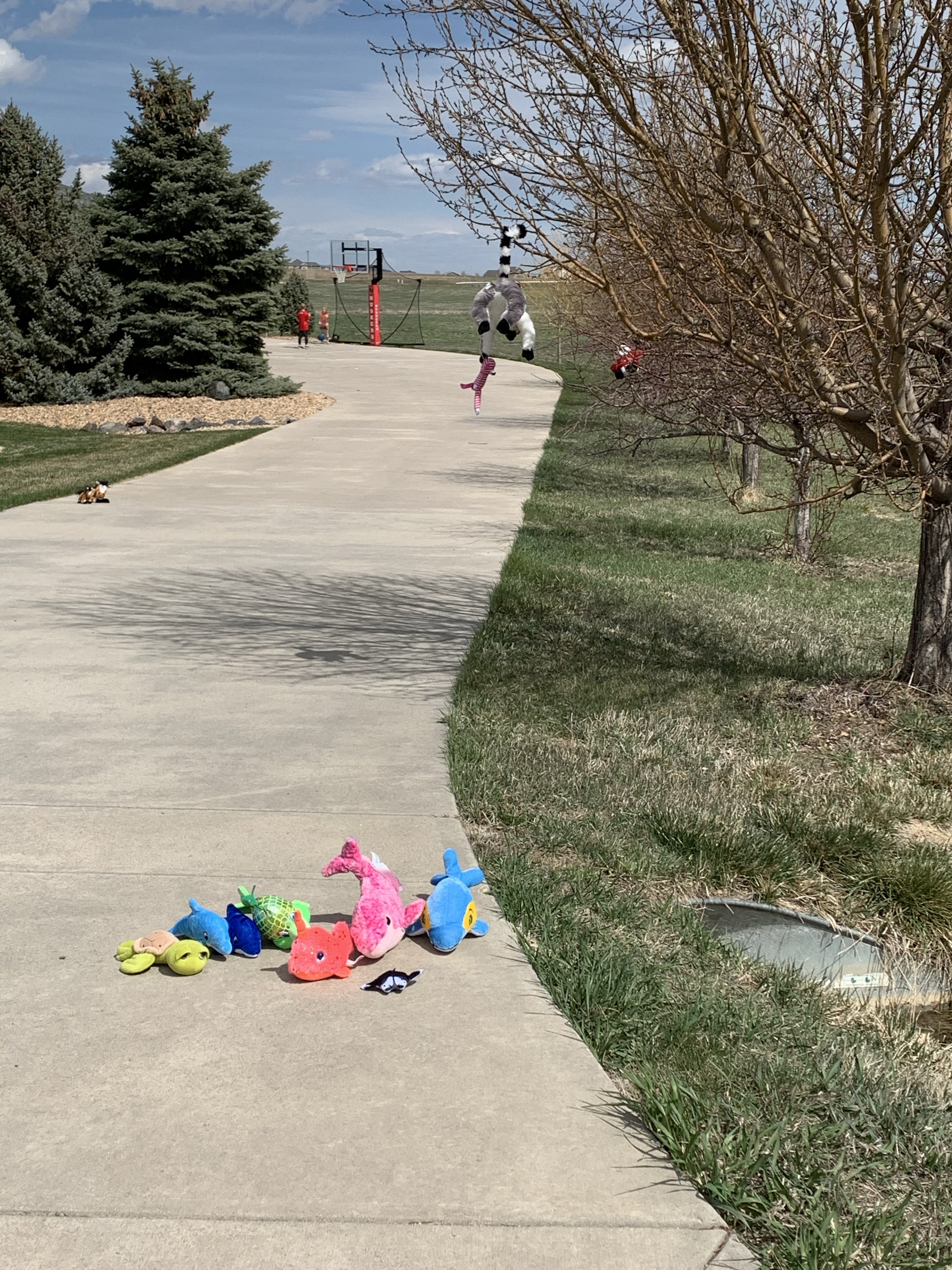 Sunday our sweet neighborhood put together a zoo. People hid stuffed animals (with a few hunting targets and statues thrown in) around their front yards. The kids had fun hiding various animals around our yard. Then with the weather being so nice everyone went out and walked the 2 mile loop and counted the animals and looked for the hiding animals. It was a lot of fun to find all the animals and see people’s yards. I think we counted 199 animals but we likely missed a few or counted a few twice. It brought our neighbors together while we all stayed apart.