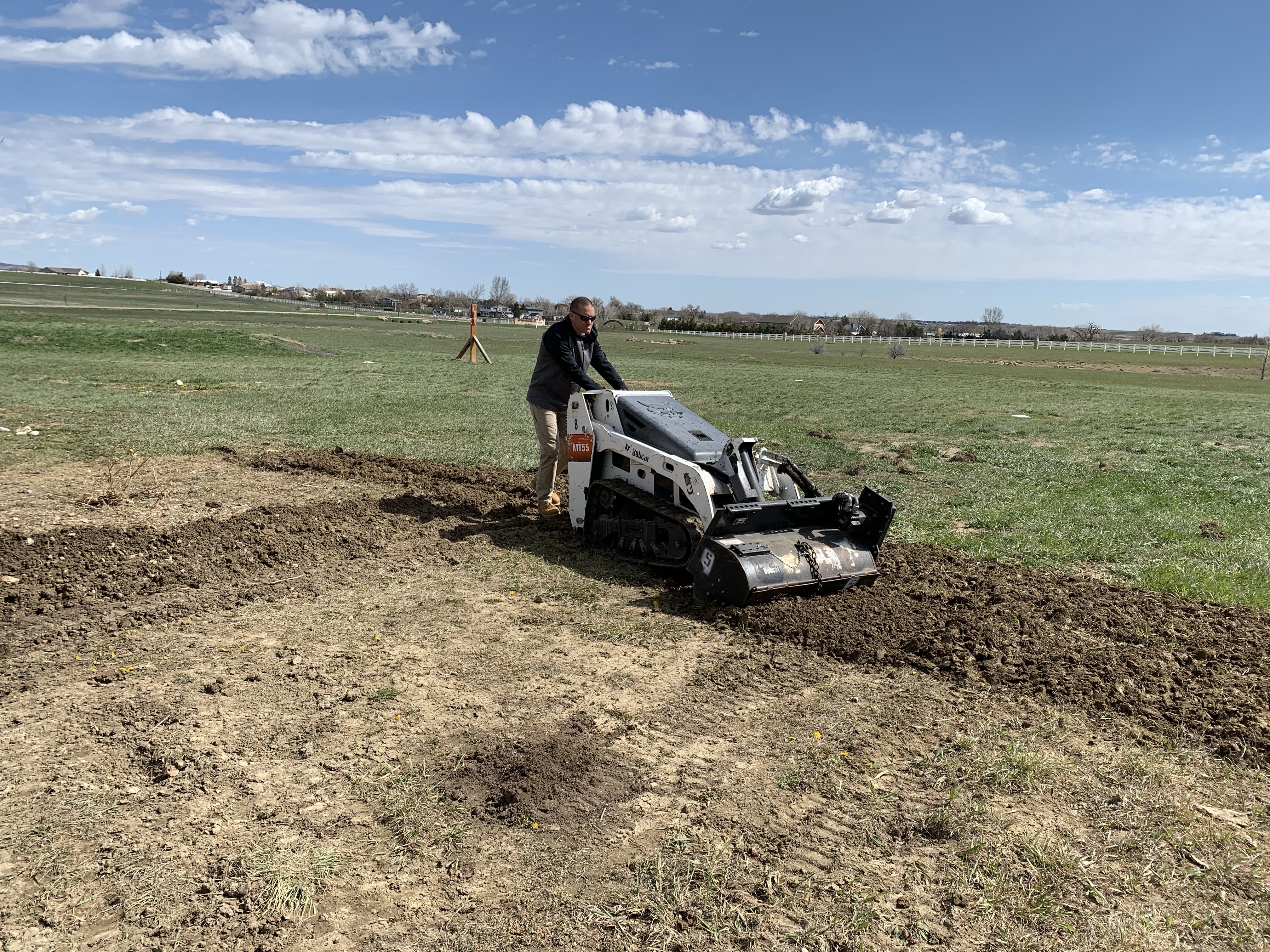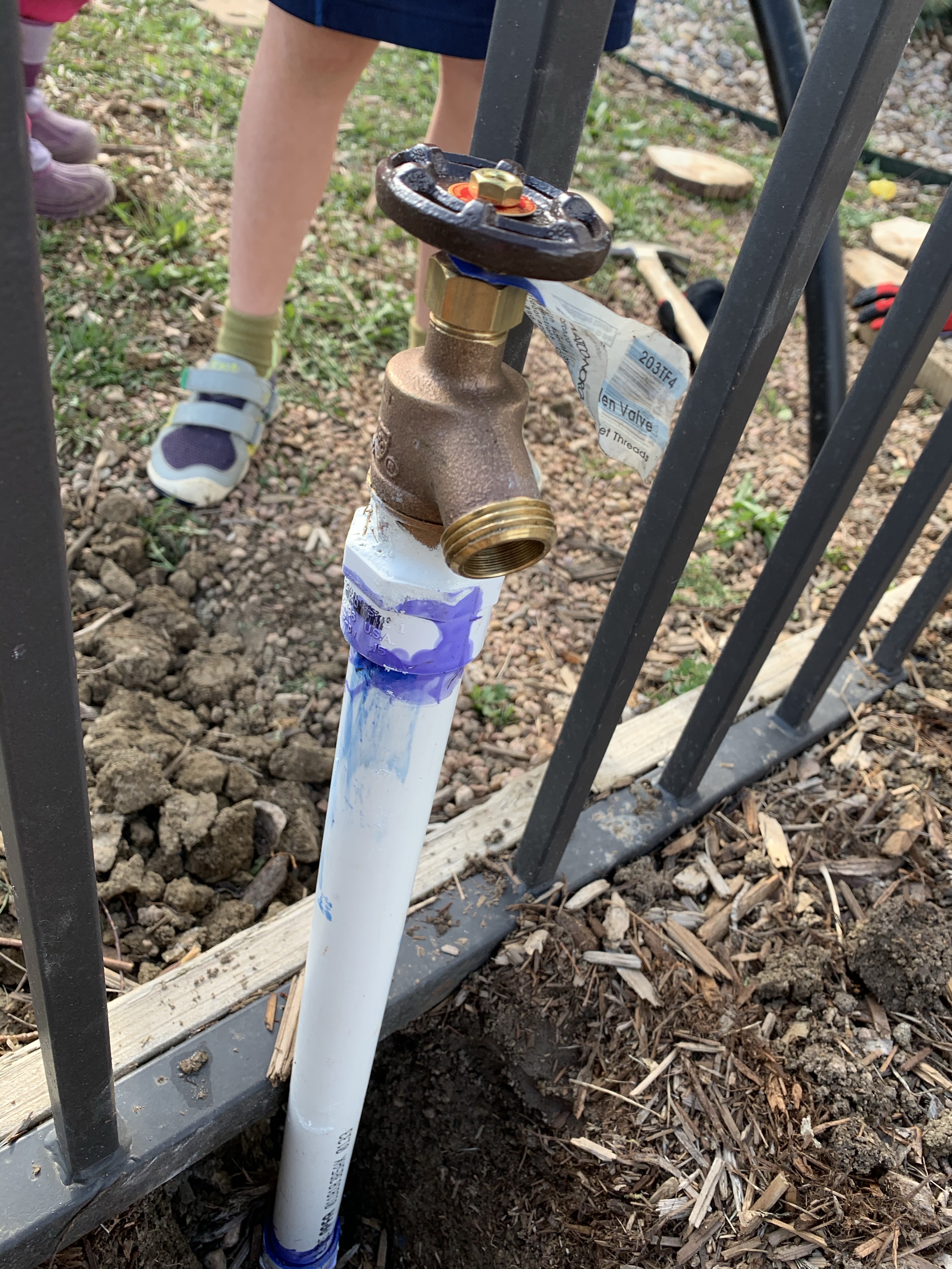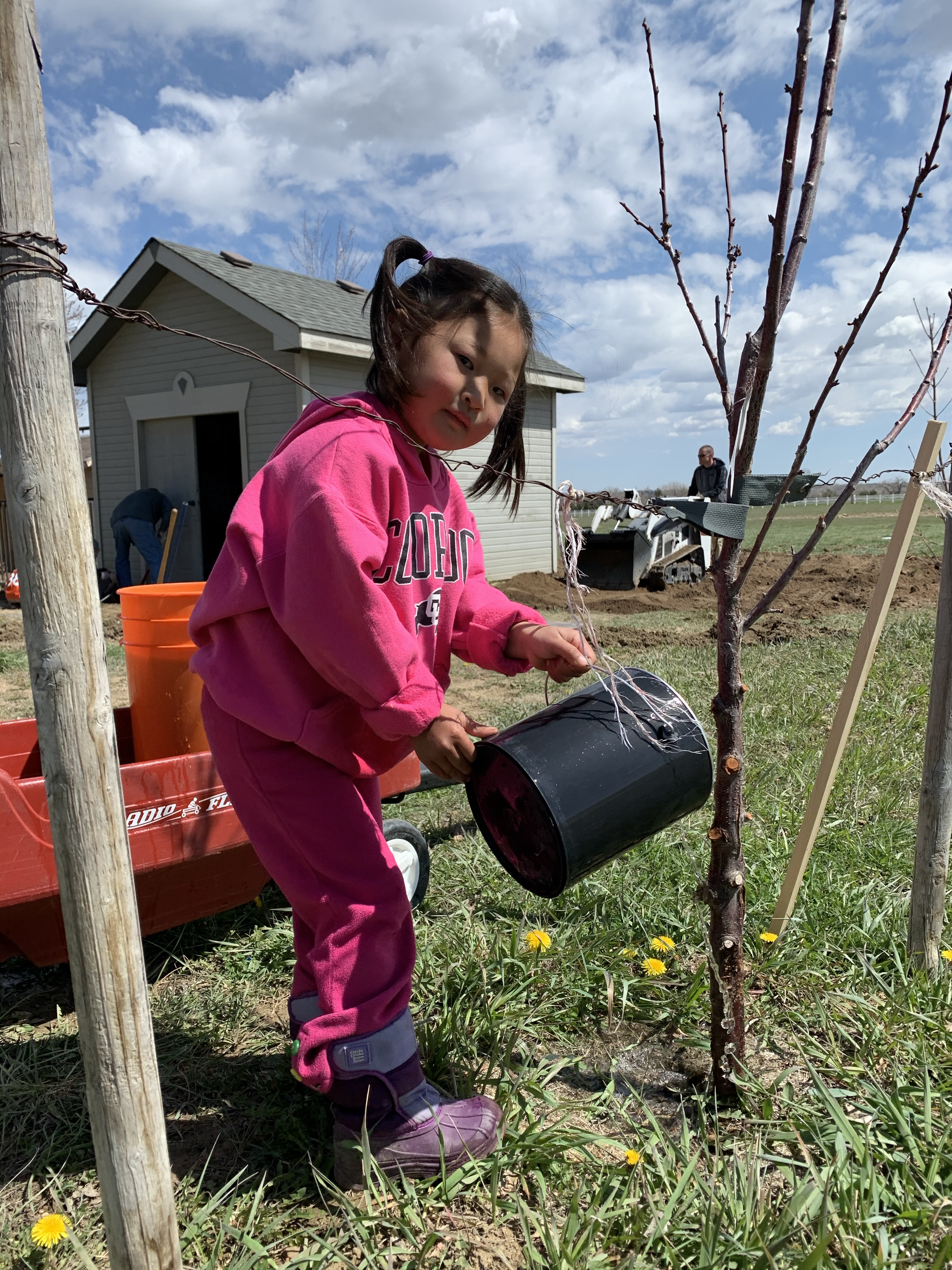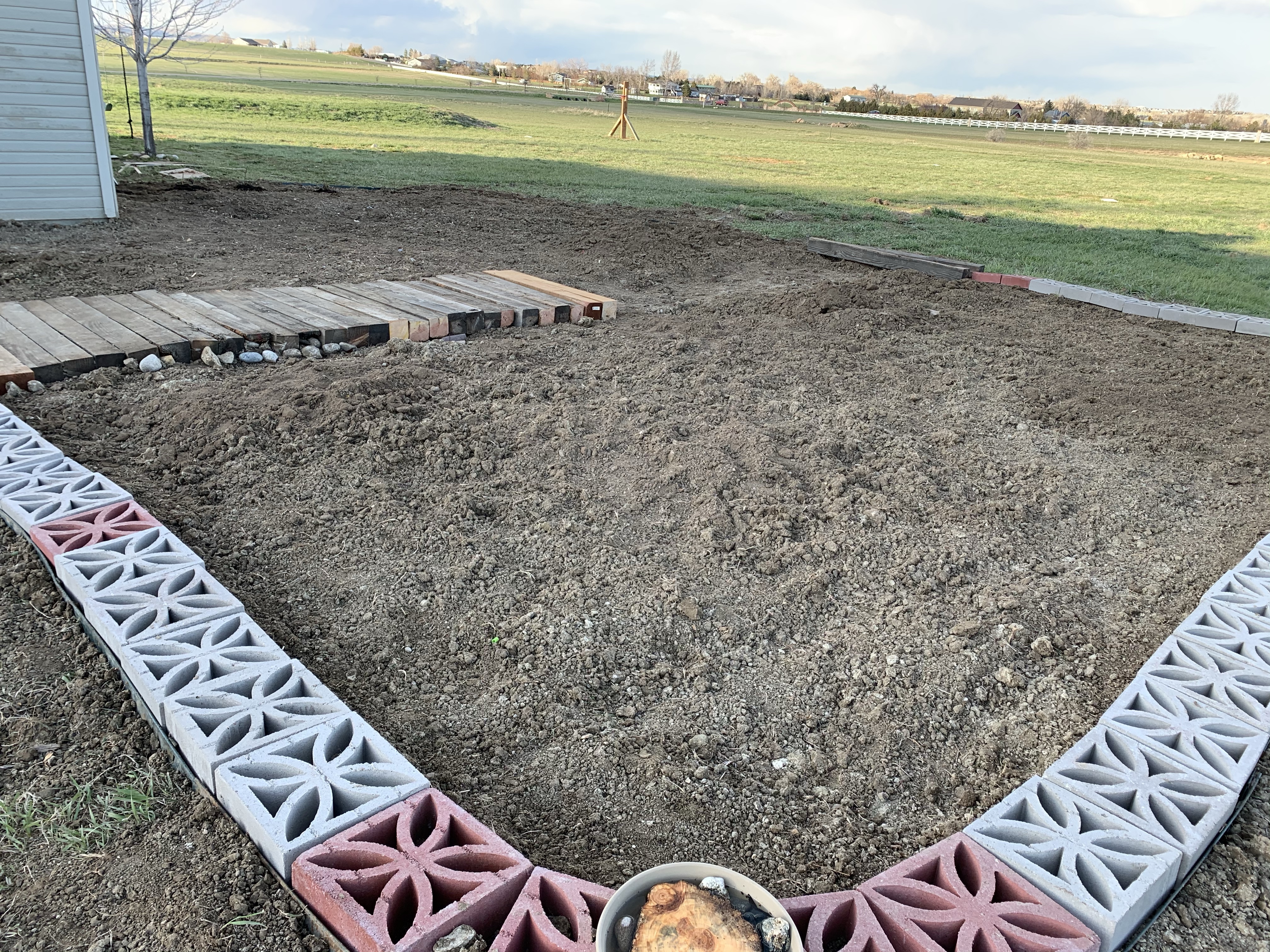And we have a garden. Or at least a very large spot now to plant things in. 3 years ago when we moved in there was a small area with a couple raised beds that for that year and the next I made do. Last year because there was just way too much on my plate I attempted a couple of plants in pots on my porch and that failed pretty miserably. Finally I felt like things are decently under control and the kids are at an age where I could actually have a real garden. So after a whole lot of work on Wednesday I now do. It started on Tuesday with a bunch of dirt being delivered which the kids loved watching. But the real work started early Wednesday morning. My dad and Clint rented a trencher/tiller/mini bucket to spread and till and trench. They ran electricity to the little shed off the garden and then installed open water lines and faucets to both the garden and the bee garden as well. While they were trenching rest of us planted a honeysuckle, weeded the iris path, and did various other things. Once we got the garden tilled and the dirt spread my mom and I started hauling large logs to make a bridge through the middle of the garden. We then used some decorative bricks that we picked up from a neighbor to make a boarder around the garden. The guys (with plenty of help from little hands) got the faucets in and all the wiring done as we planted the strawberries and raspberries. I laid out my plan for where things are going to go and labeled rocks and placed those around. I am really looking forward to getting everything in and seeing how it all comes together.