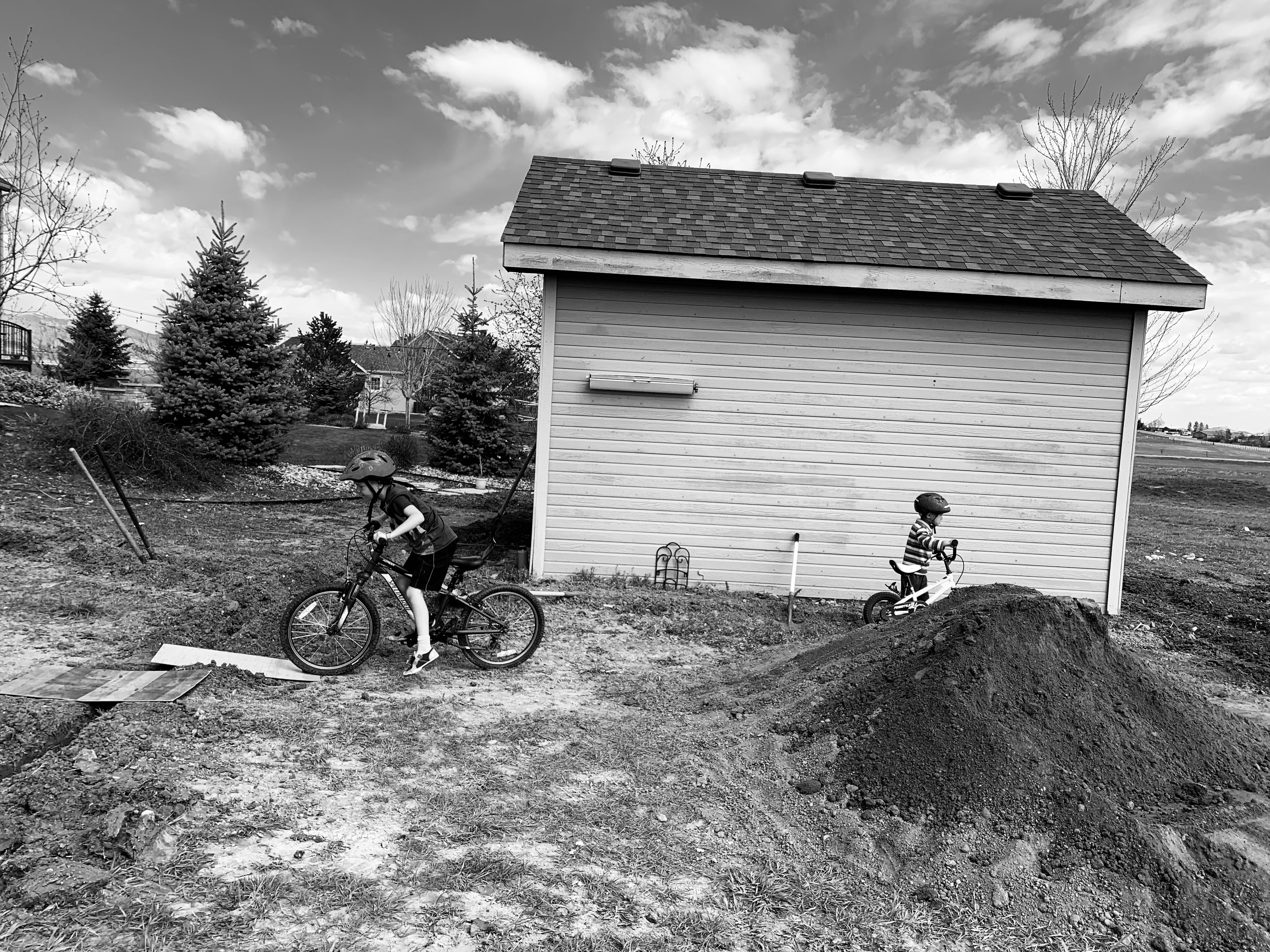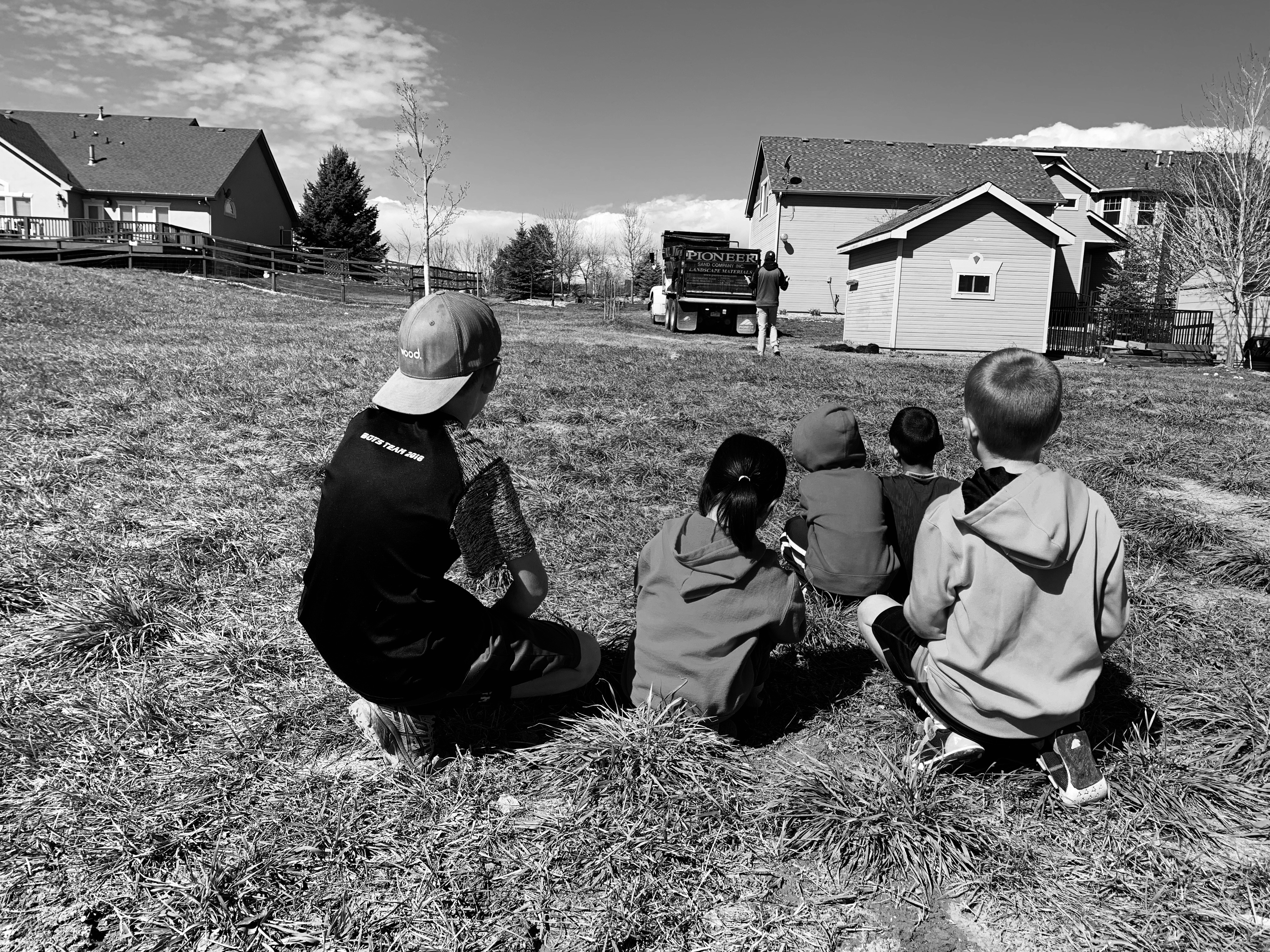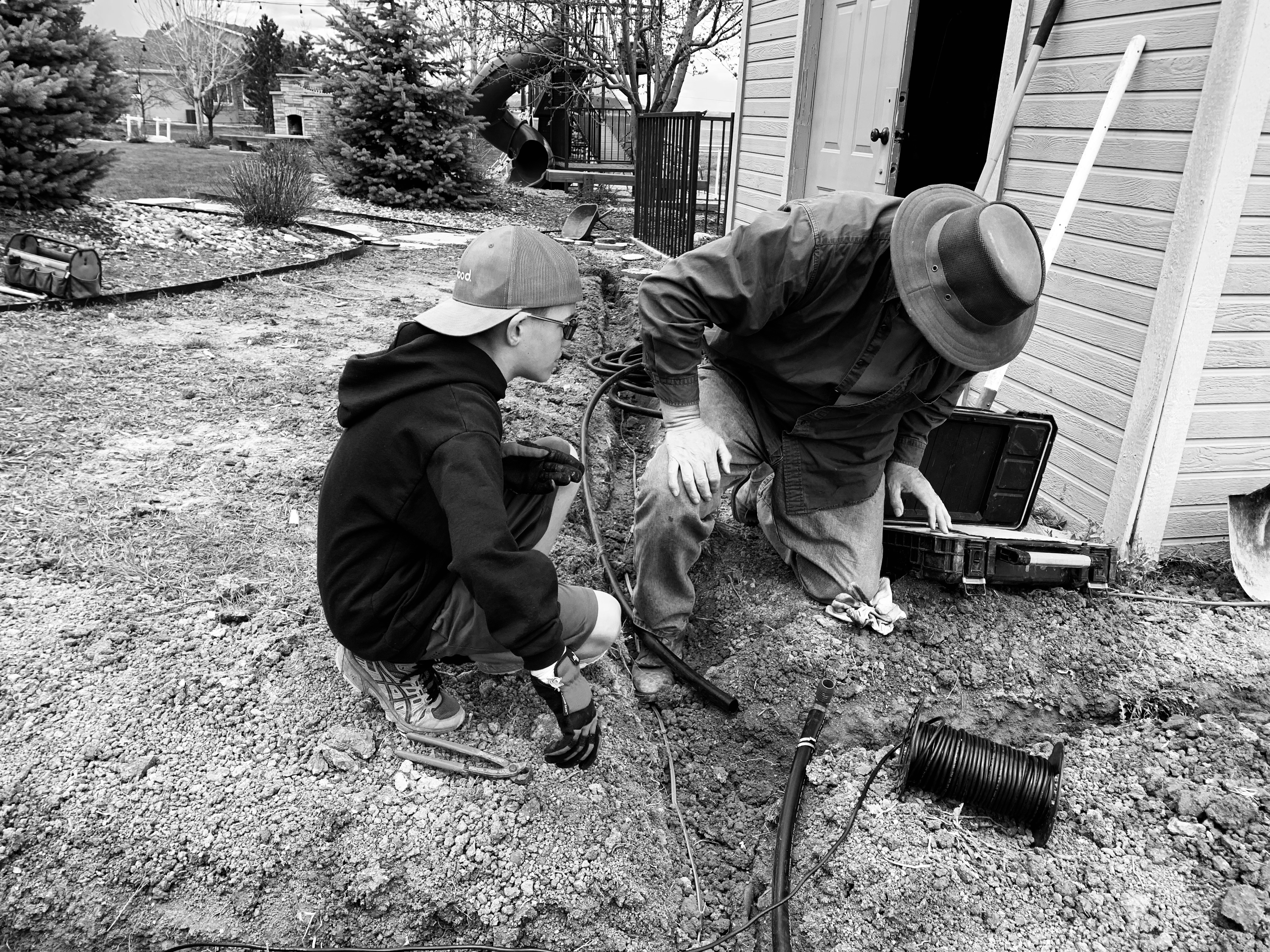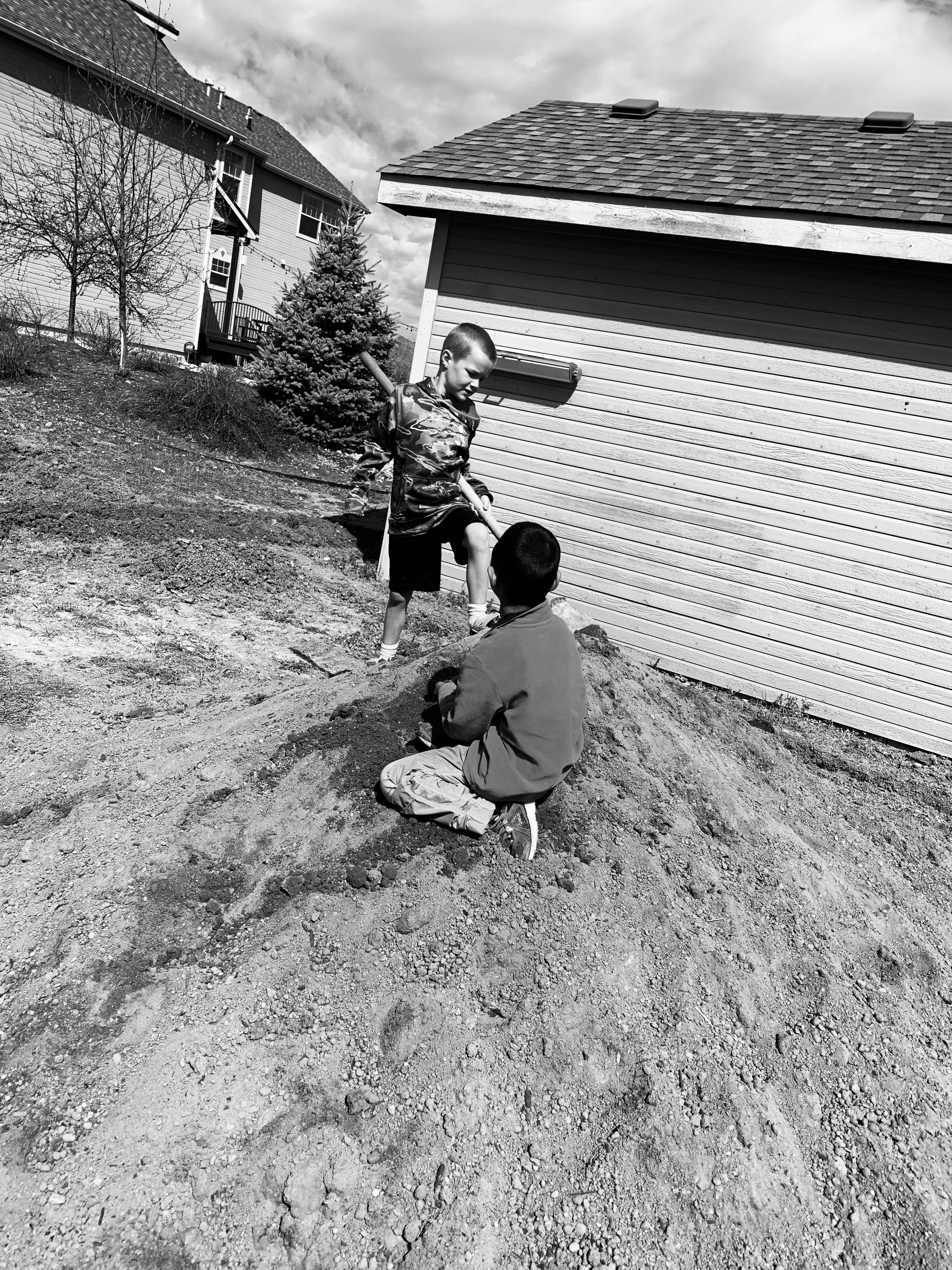 And we have a garden. Or at least a very large spot now to plant things in. 3 years ago when we moved in there was a small area with a couple raised beds that for that year and the next I made do. Last year because there was just way too much on my plate I attempted a couple of plants in pots on my porch and that failed pretty miserably. Finally I felt like things are decently under control and the kids are at an age where I could actually have a real garden. So after a whole lot of work on Wednesday I now do. It started on Tuesday with a bunch of dirt being delivered which the kids loved watching. But the real work started early Wednesday morning. My dad and Clint rented a trencher/tiller/mini bucket to spread and till and trench. They ran electricity to the little shed off the garden and then installed open water lines and faucets to both the garden and the bee garden as well. While they were trenching rest of us planted a honeysuckle, weeded the iris path, and did various other things. Once we got the garden tilled and the dirt spread my mom and I started hauling large logs to make a bridge through the middle of the garden. We then used some decorative bricks that we picked up from a neighbor to make a boarder around the garden. The guys (with plenty of help from little hands) got the faucets in and all the wiring done as we planted the strawberries and raspberries. I laid out my plan for where things are going to go and labeled rocks and placed those around. I am really looking forward to getting everything in and seeing how it all comes together.