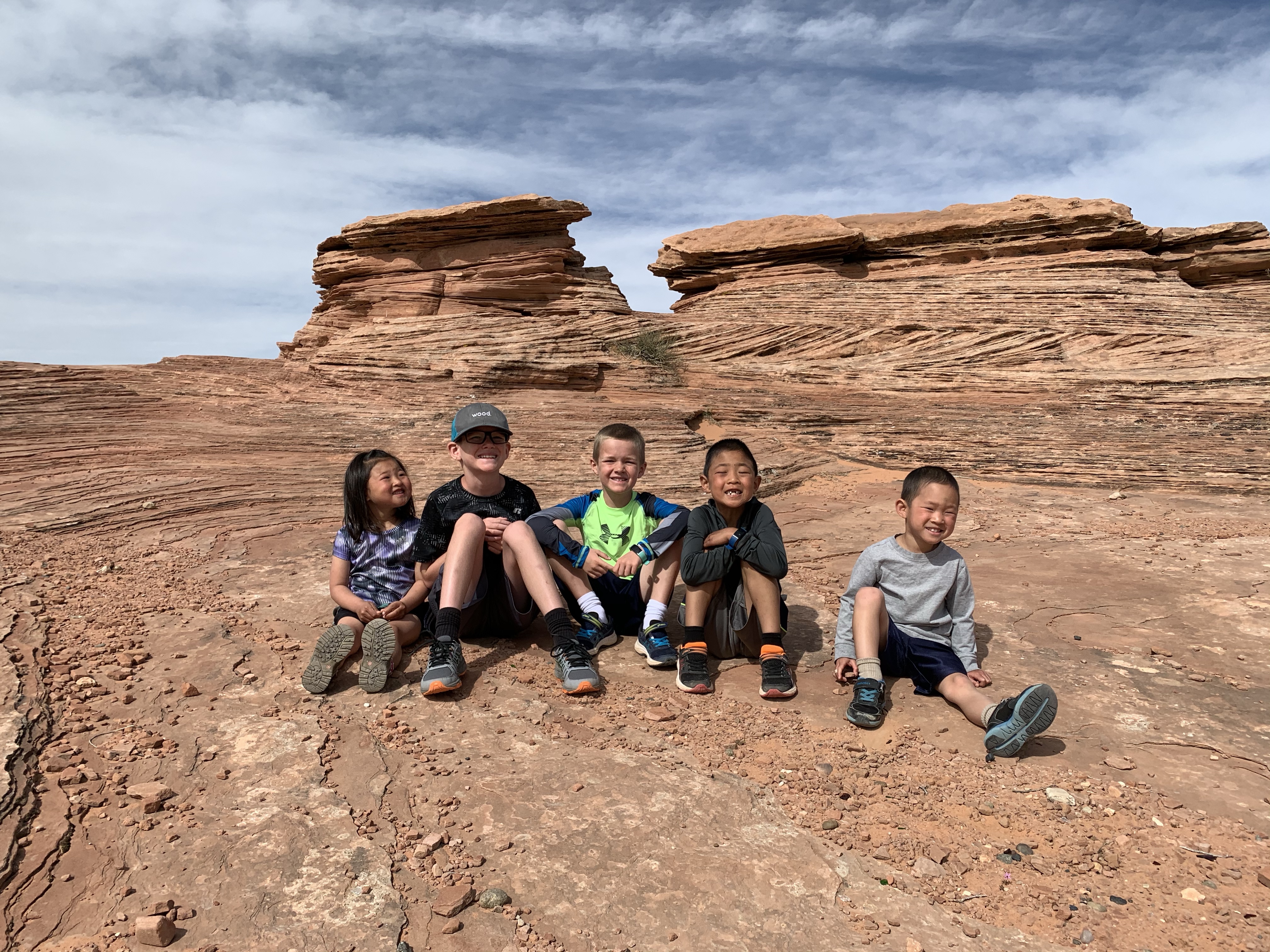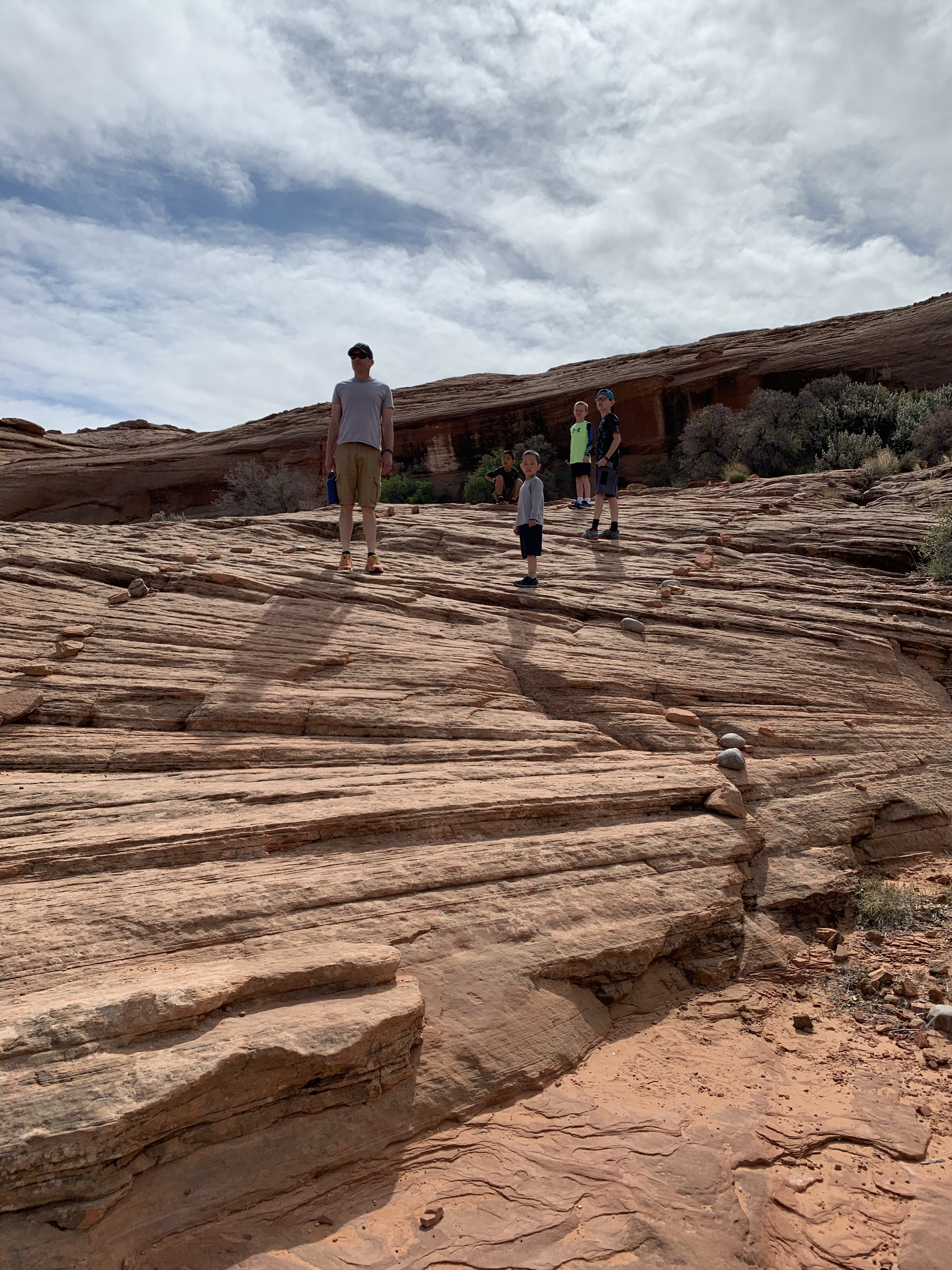 Our final hike on our trip was also in Page, Arizona. It was a great hike. It was called Hanging Gardens and we traveled along the red rocks and desert area up to a little overhang where the water collected along the rocks resulting in a little mini oasis of plants growing and flourishing. It was so cool to see the bright green against the vibrant red rocks of the desert. We then climbed and explored some of the huge hills of rock nearby and could look out over Lake Powell. We had a blast and it was gorgeous.