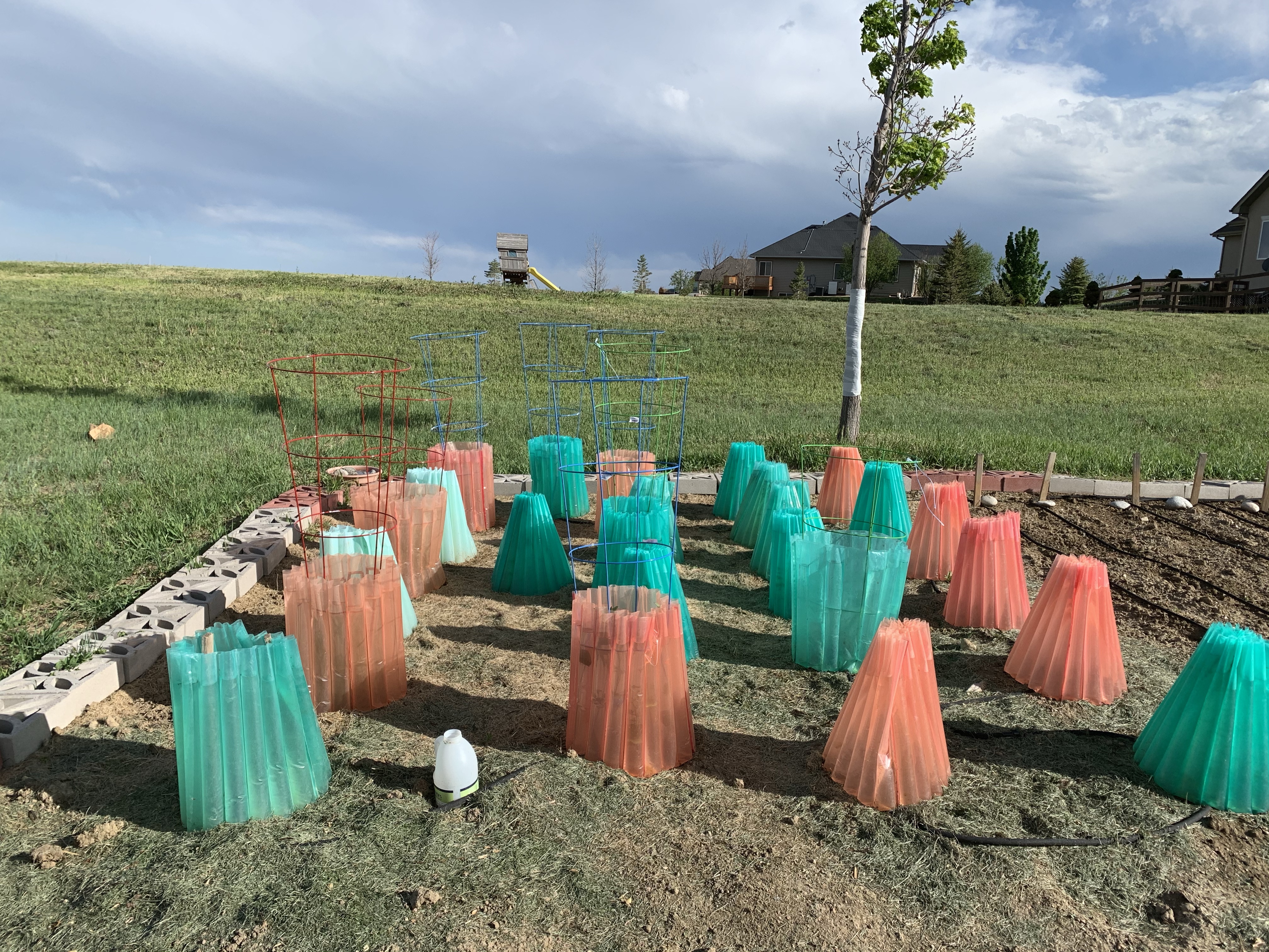 My garden is slowly coming to life. I’ve got little lettuce sprouts and some scatter spinach and kale sprouts poking their heads through the soil. My neighbors will be excited to know that I’ve planted 2 rows of kale because I’m pretty sure I’m invited to neighborhood functions solely based on the kale chips I make. I saw some corn coming up yesterday as well. Not everything is up yet and I’ve started over on a couple of things. My onions from bulbs look great….I haven’t seen anything from the ones I started from seeds. And I’ve replanted my broccoli and brussel sprouts once already. I also haven’t spotted my pumpkins, cucumbers, zucchini, or watermelons yet. However I’ve found some blossoms on my little strawberries and my raspberries are getting shoots. I had to add tomato cages to my tomato plants this week, while some of my peppers are growing and some look just as small as they were when I put them in the walls of water. And to top it all off I’ve got iris blooming and my peony. They just make me happy. So most positives than negatives right now!