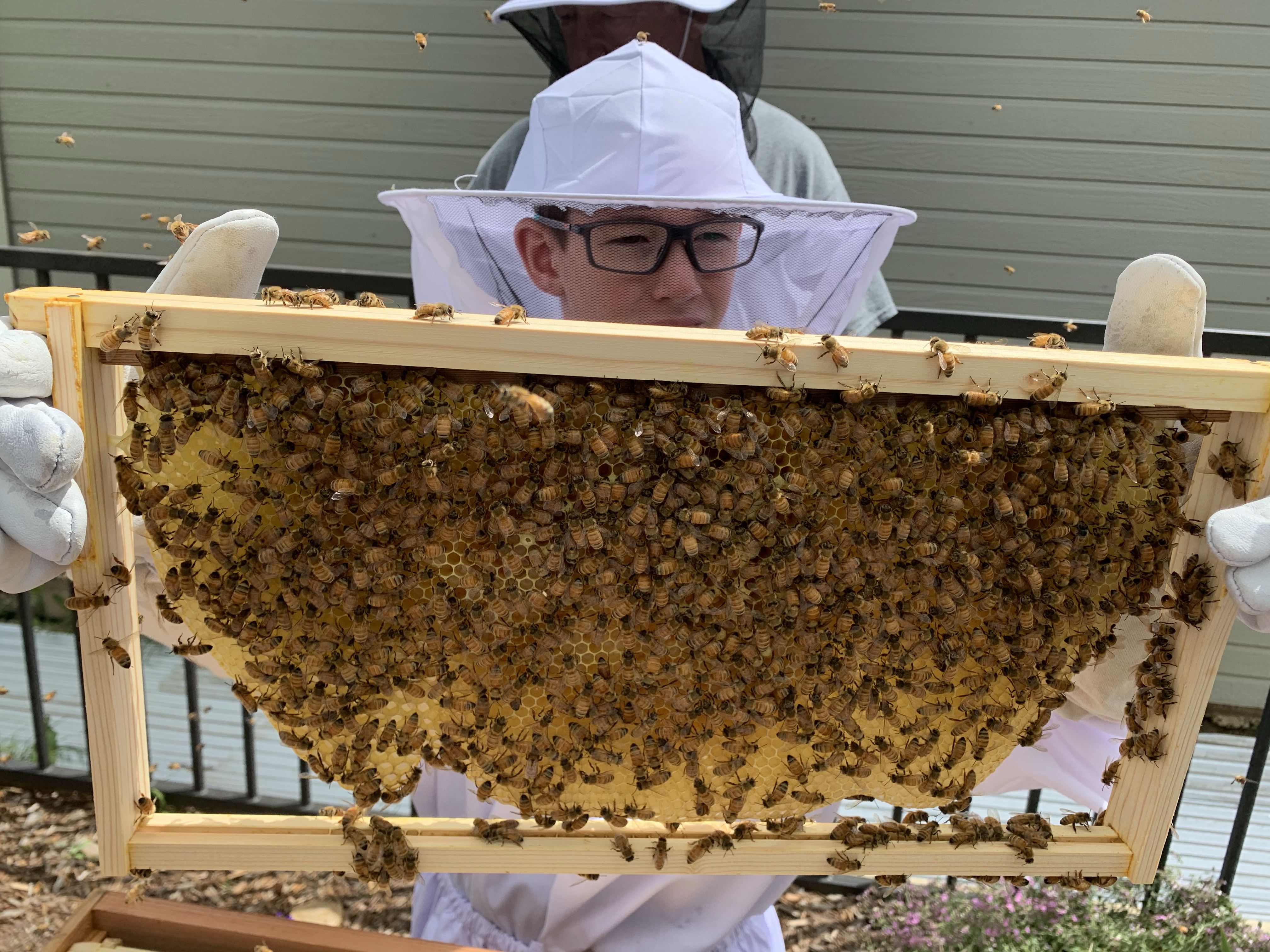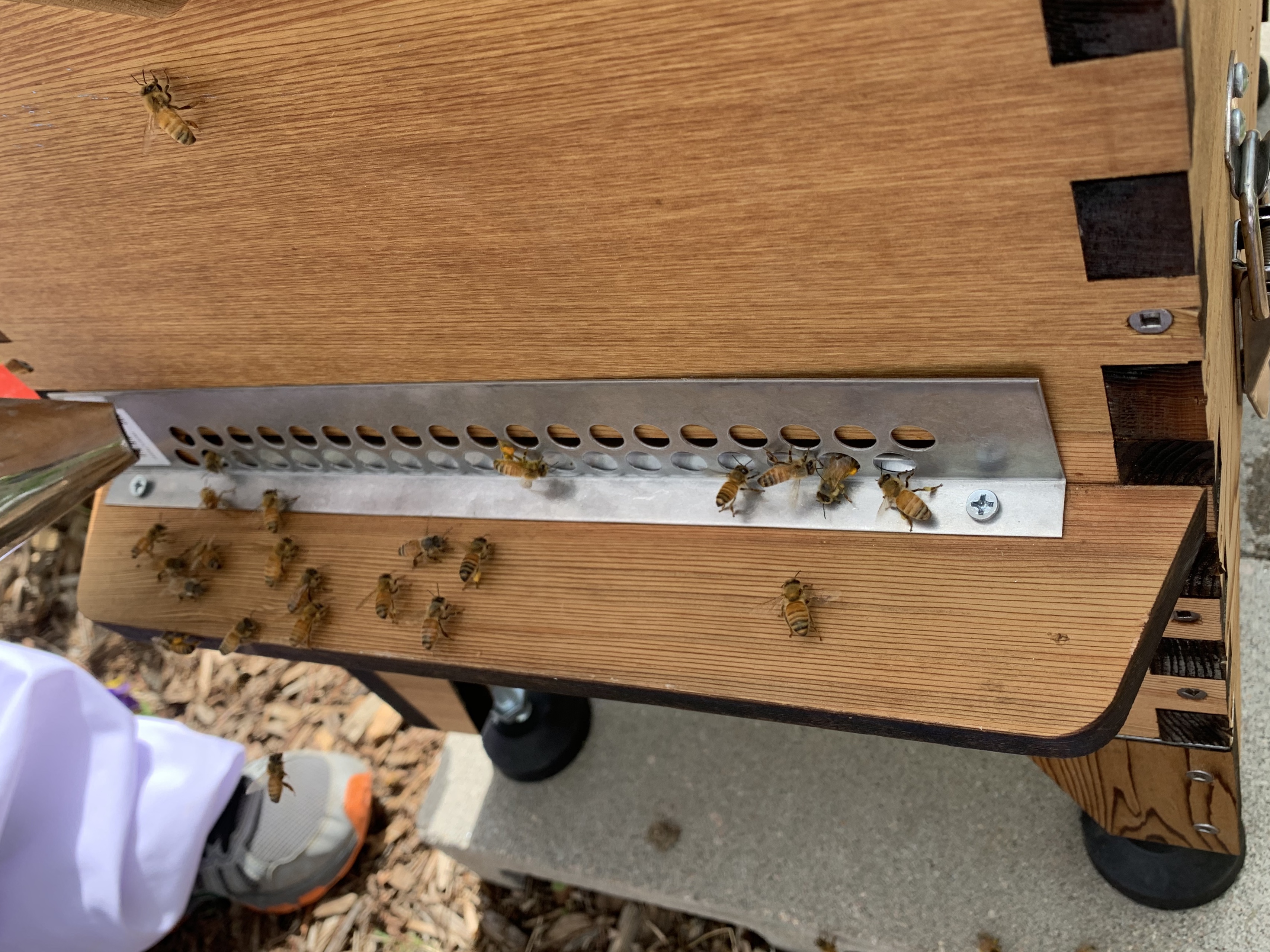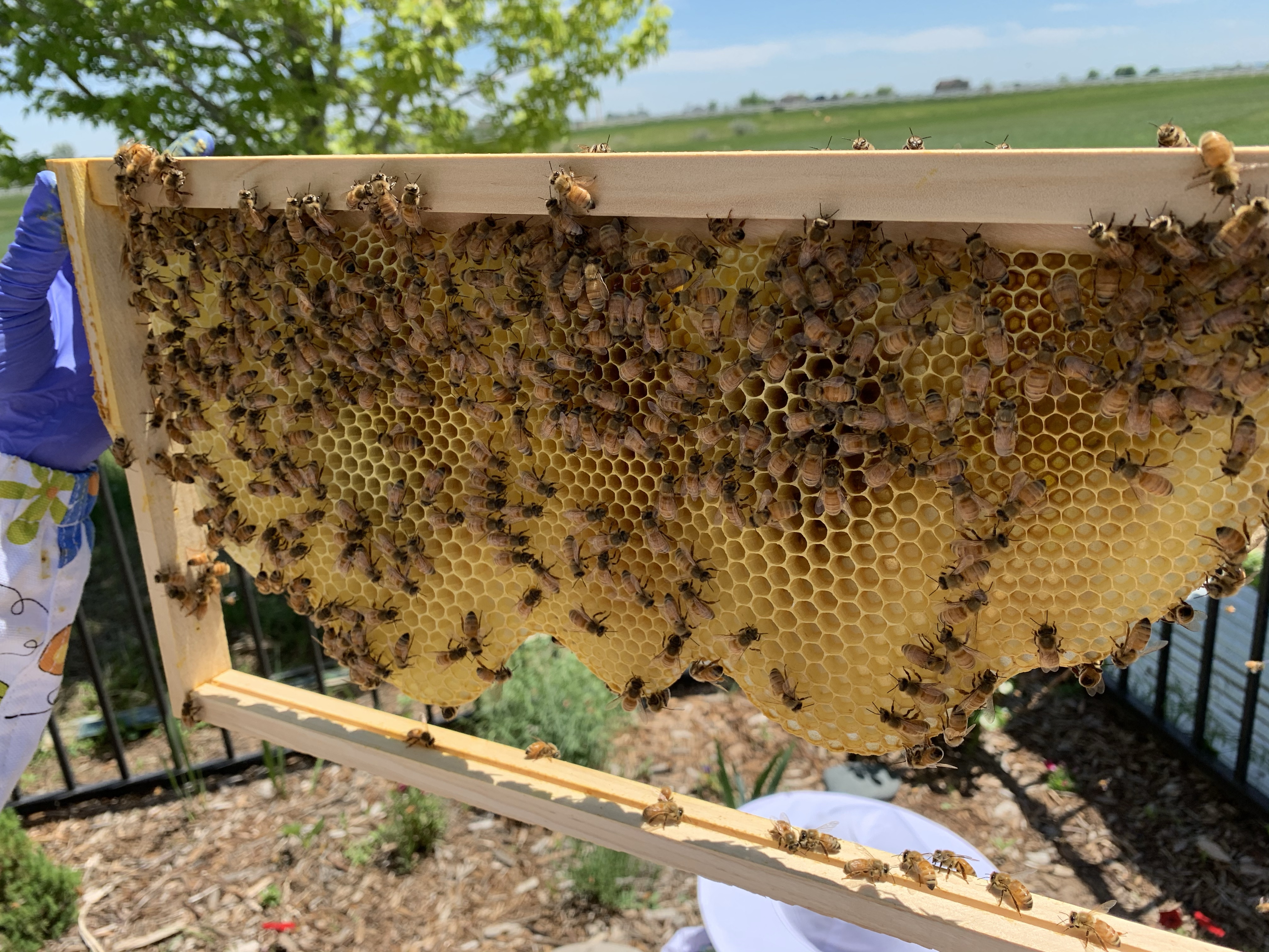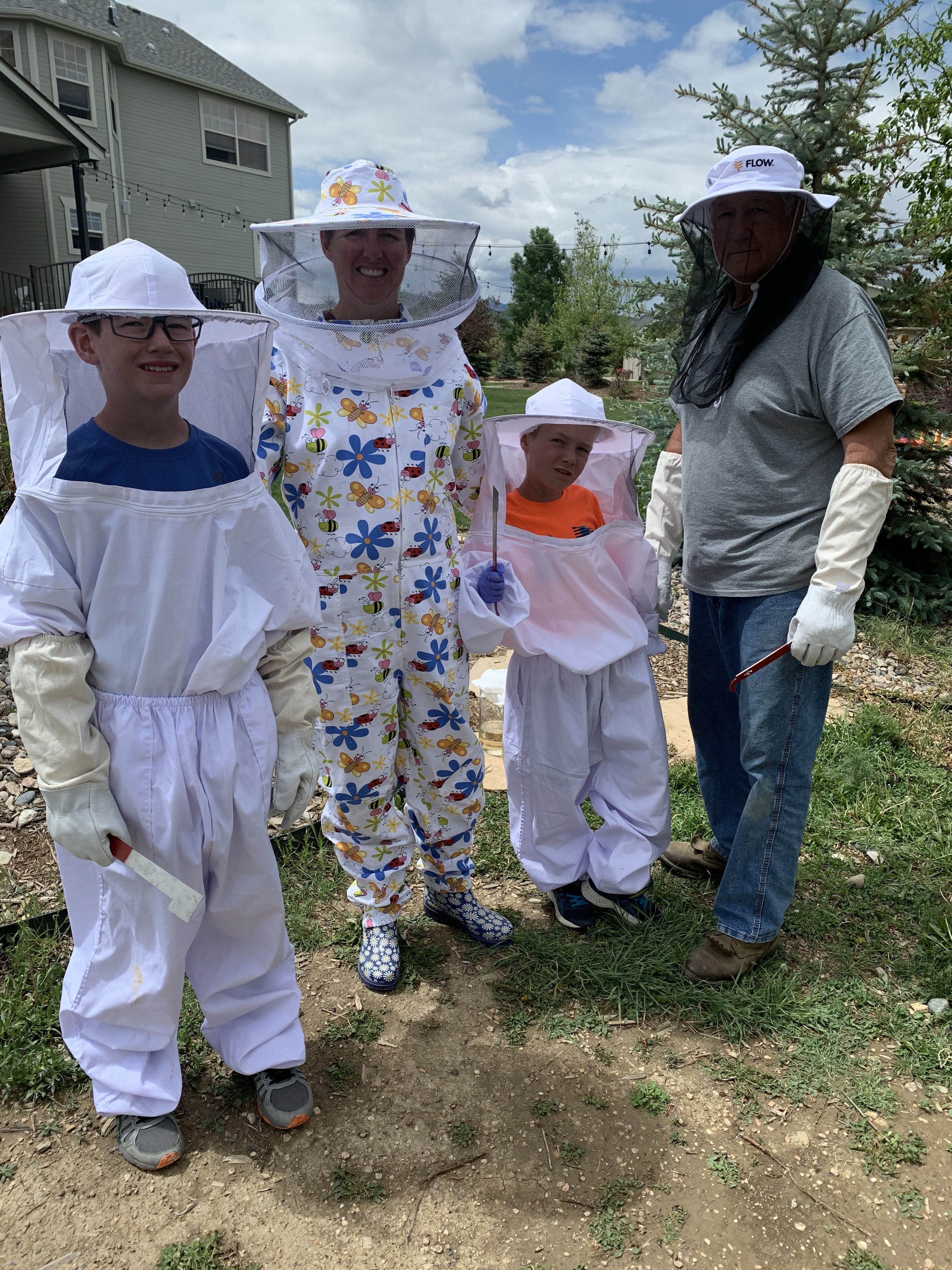 Our bees are doing well. We are all learning and ton and having lots of fun with it. We do frequent walks out to the hive just to watch them flying in and out bringing pollen and nectar back to the hive. On Memorial Day my dad helped Leighton, Caedmon and I check the bees and he helped the boys take off the entrance reducer and put in a mouse guard over the front. It’s really early to worry about autumn mice staking out my hive for their winter home but the mouse guard also reduces the entrance some and it was a good transition piece that I will probably just leave on full time. On that day the bees seemed to really love Caedmon’s bee hat which he thought was great. About a week later Edric and Clint checked the bees with me. We were able to watch a couple baby bees hatch and filmed the queen and all her exploring over the comb and laying eggs. I think we are all enjoying this more than we even thought we would.