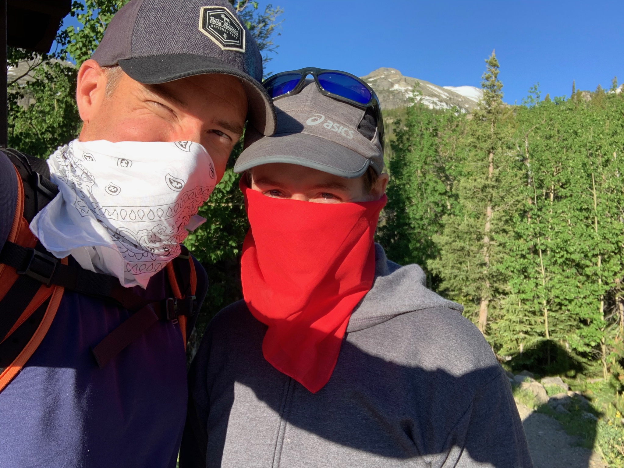 Clint and I celebrated 15 years married on Thursday. In true fashion we celebrated with a hike. We got our timed entry pass to Rocky Mountain for 6 AM and were on the trail before 7AM. We had our bandannas ready and looked at times like we were out to rob the stagecoach but we had a great time. Our goal was Sky Pond but once we got above tree line there was still too much snow to make it. We forgot to pack out Yak-Tracks and that may have helped us push through the snow banks but we might still have had to turn around. As it was I took part of the trail coming down on my backside sliding a good portion of the way. We still did 9 miles and had a great day. Thankful for each day and year that we have been a team!
