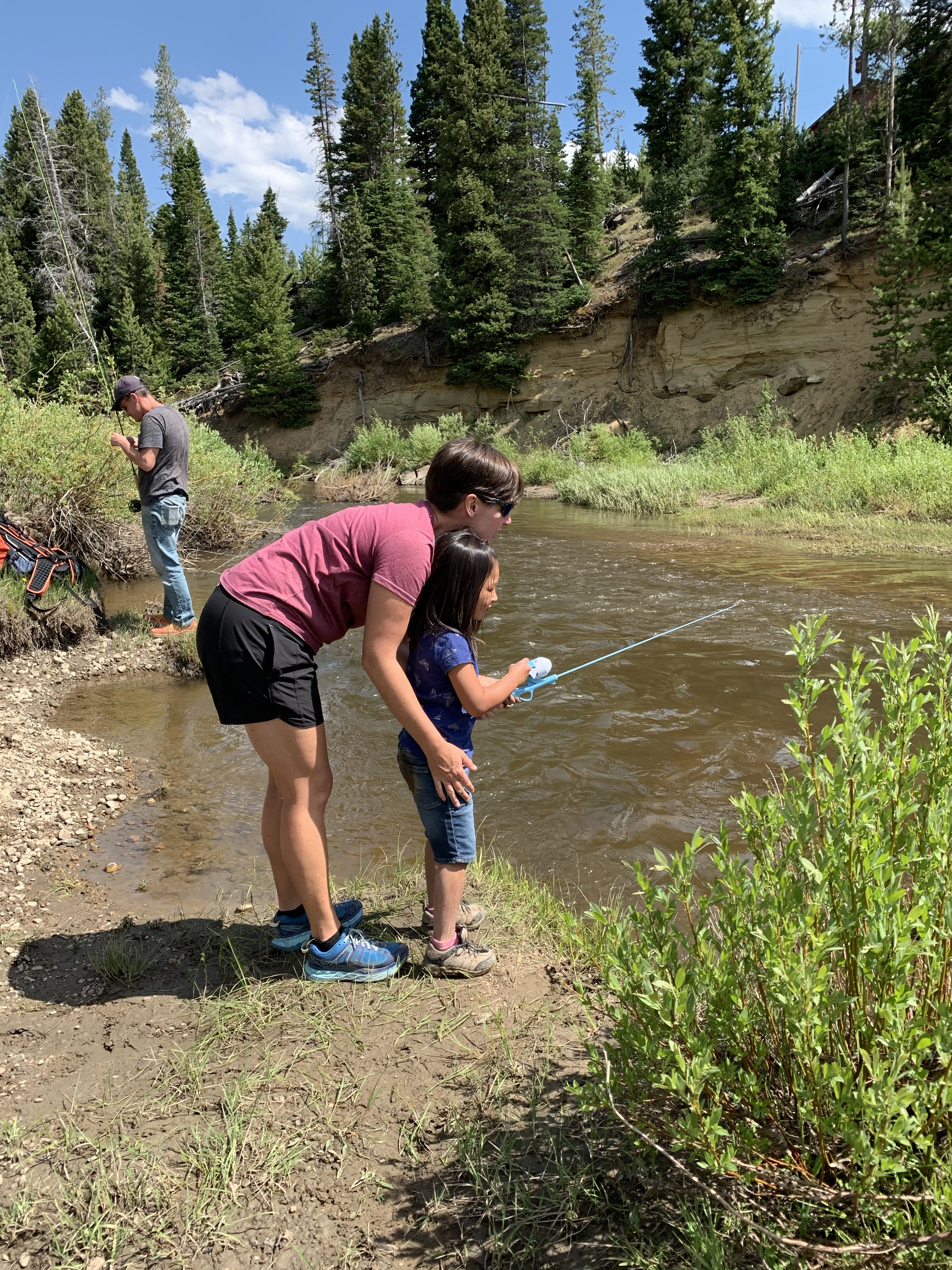Last week we got the chance to get away and go up to my Aunt’s cabin outside of Walden for a few days. Shortly after we arrived the kids were ready with their fishing poles and after eating a quick lunch we headed down the road to Grizzly Creek and spent the afternoon fishing. Just as we got to the creek a mama moose and her little one were grazing along the side of the Creek…..we made enough noise that they didn’t stick around but it was pretty amazing to watch them scamper off. I can’t say we caught many fish at all (maybe related to the fact that we might have had a few rock throwers in our group), I think my dad caught the few that we did, but we had a lot of fun. We spent the evening after fishing playing “Ticket to Ride” which is a great family game if you are looking for a new one.