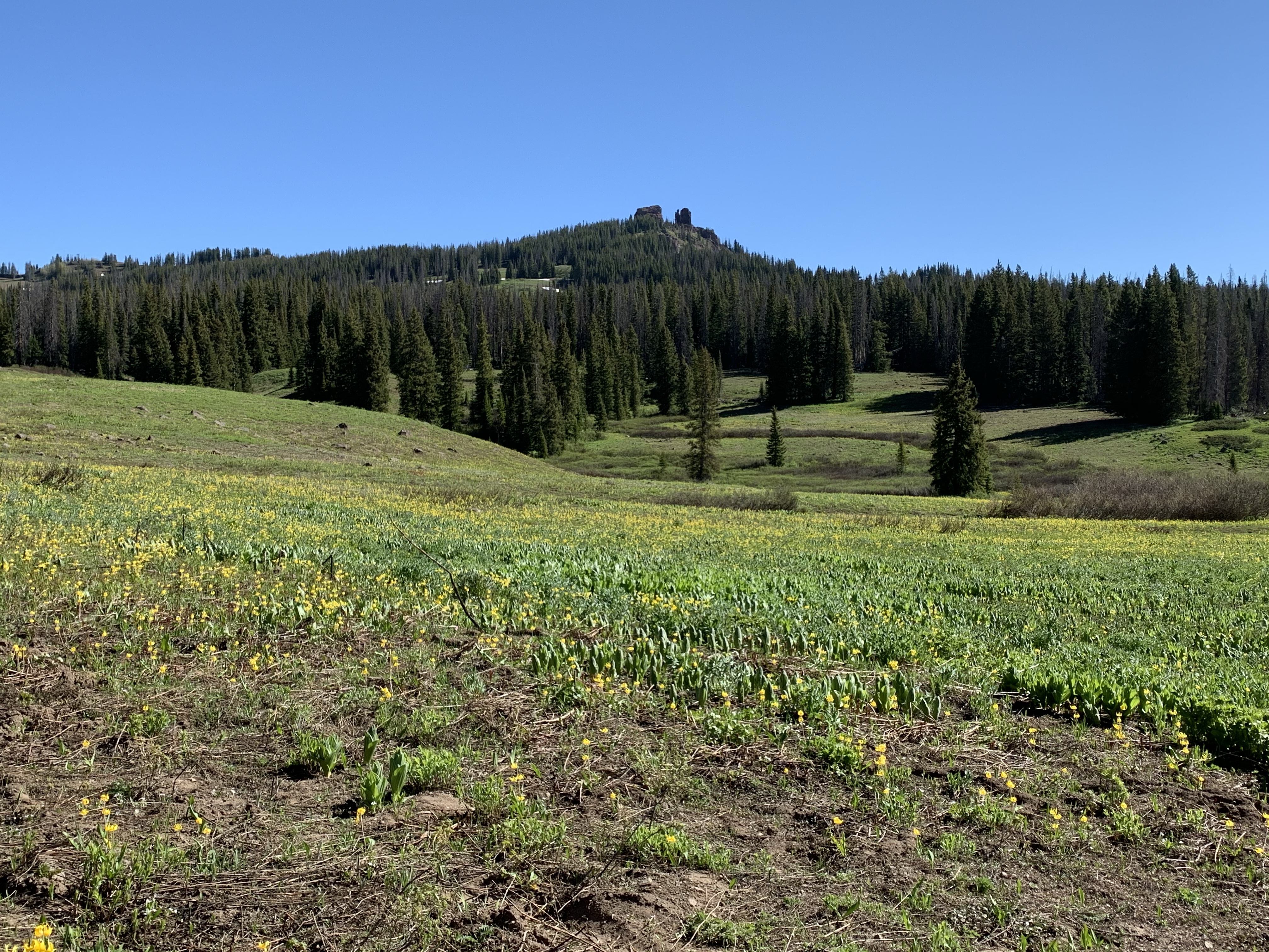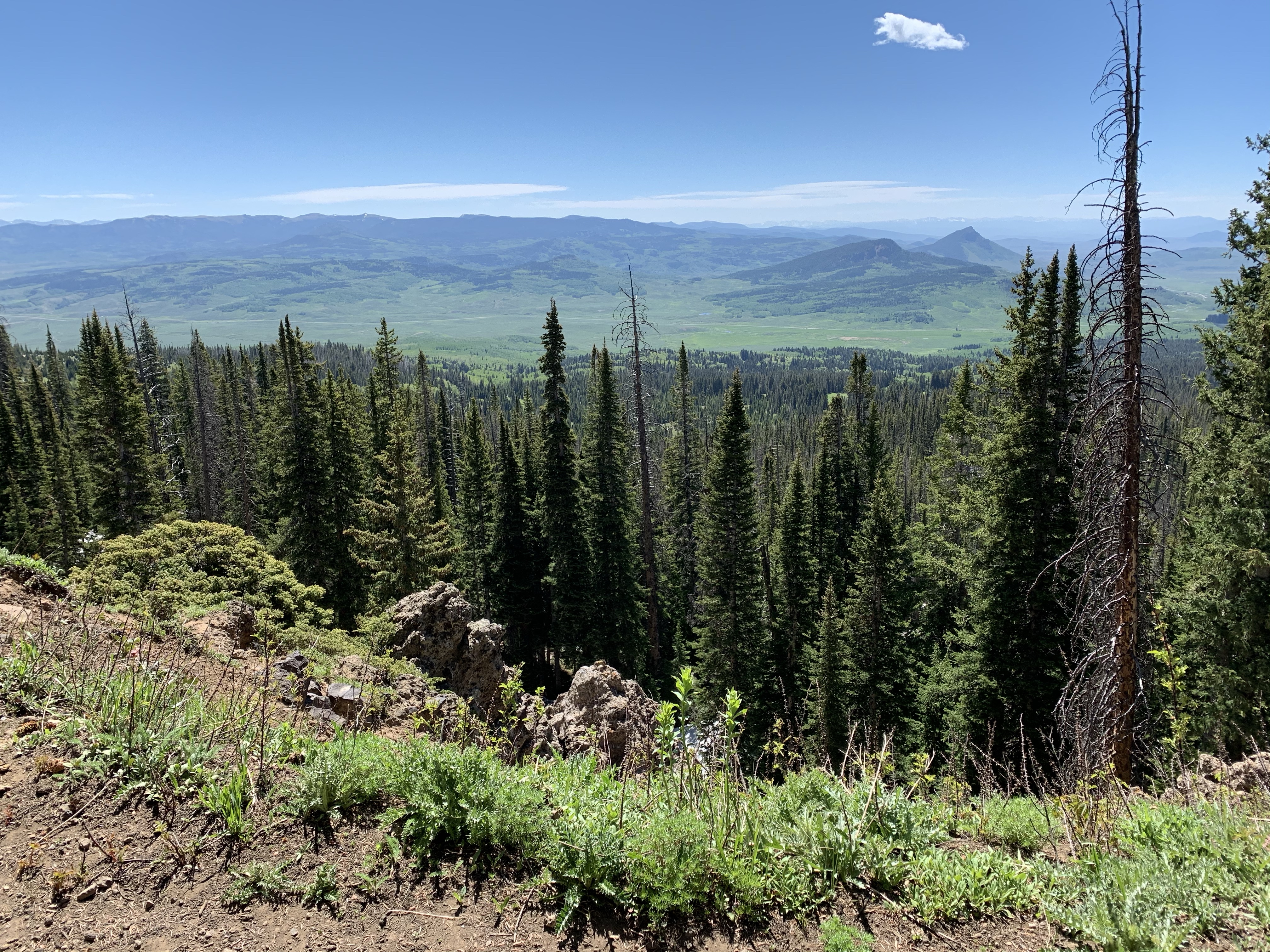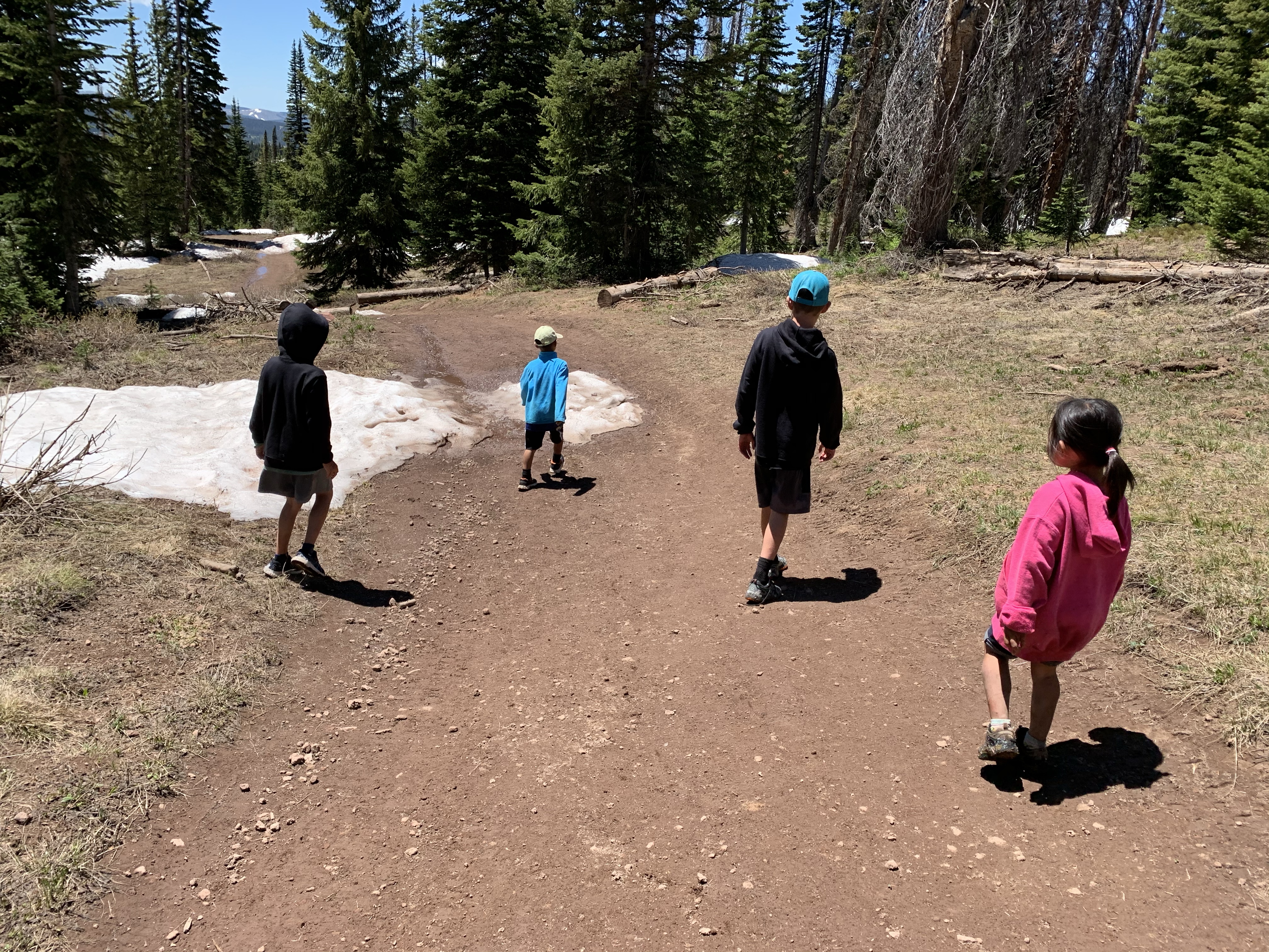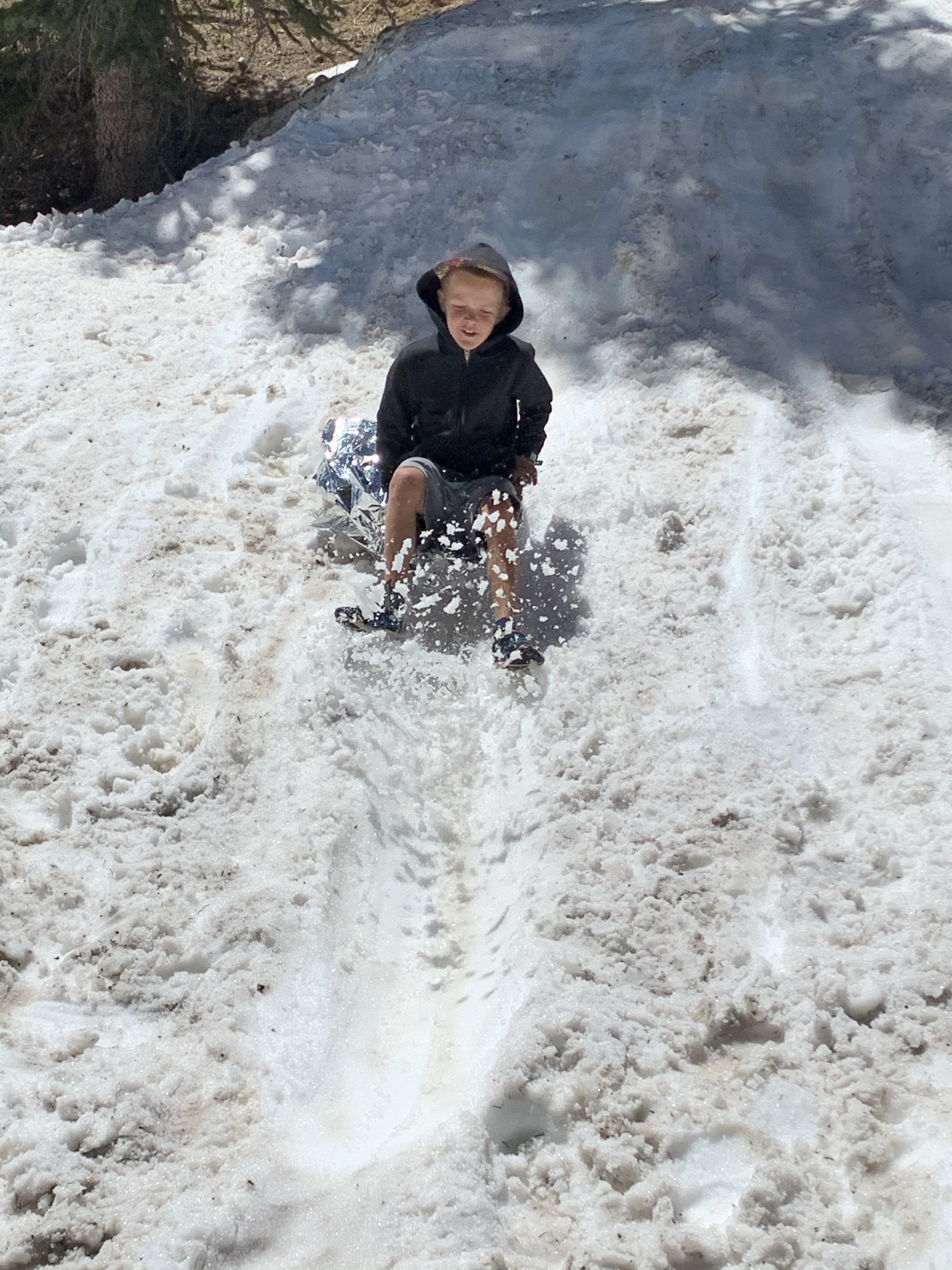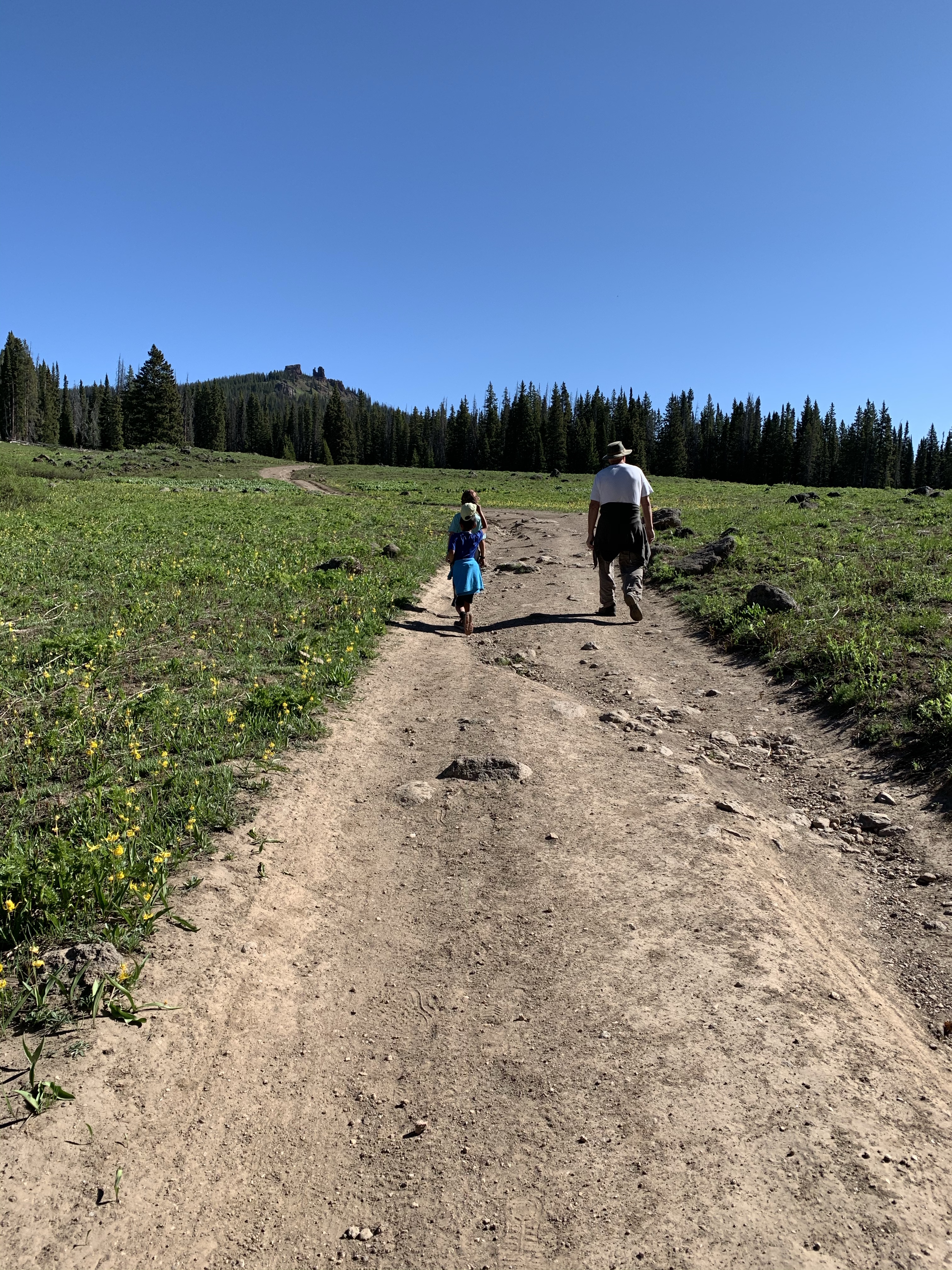 While we were up at my Aunt’s cabin we hiked up Rabbit Ears. The day was beautiful and we could not have asked for a better day. We hiked through fields of wildflowers that were abloom and gorgeous. Part way up we came to a large snow field which meant we all took turns sliding down the snow and laughing. The last bit of the hike is fairly steep but everyone made it to the top and we had a great lunch at the top enjoying the breath taking views. On our way back down we again slid and had a blast at the snow field. It was a great 6+mile hike!