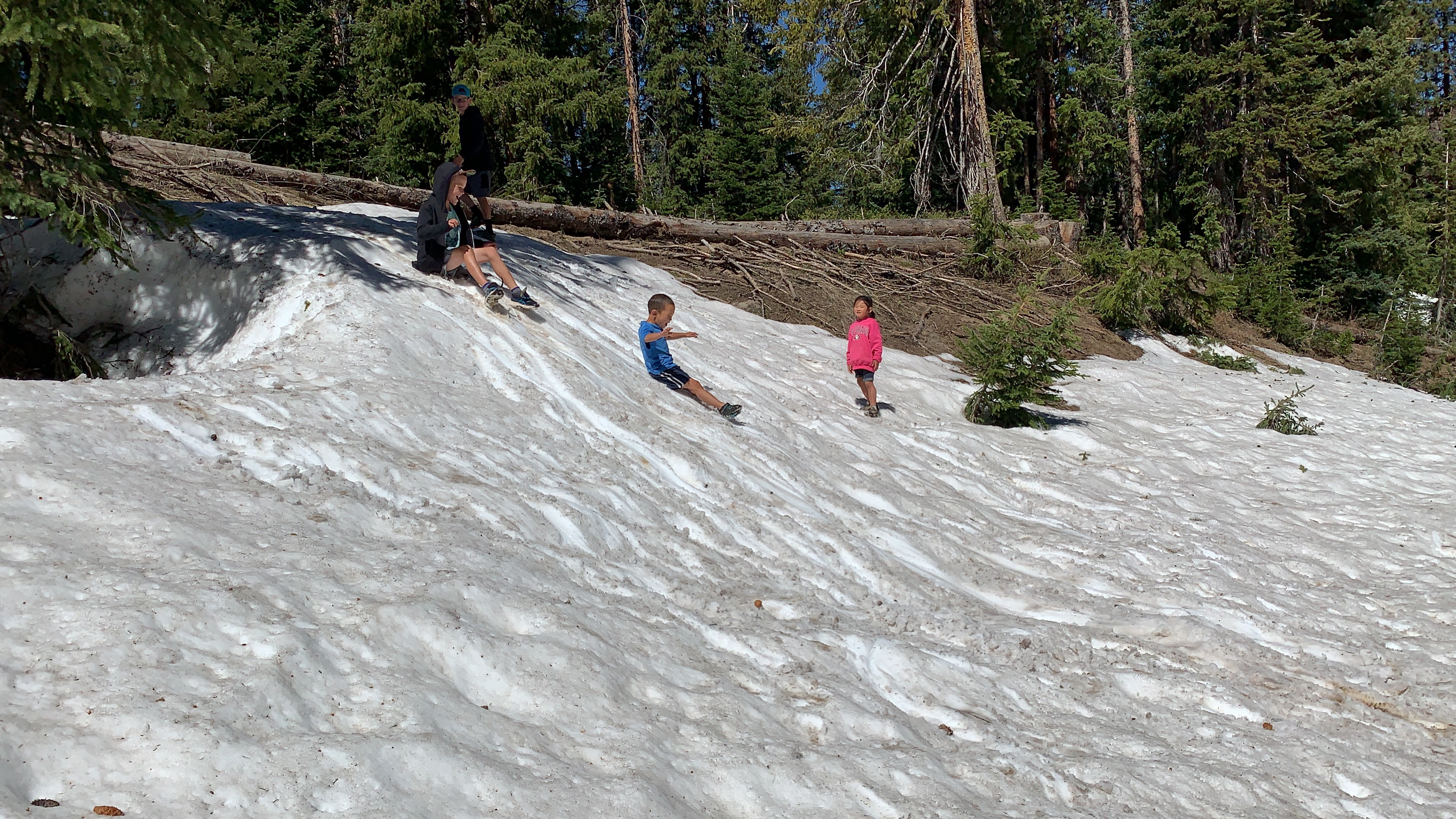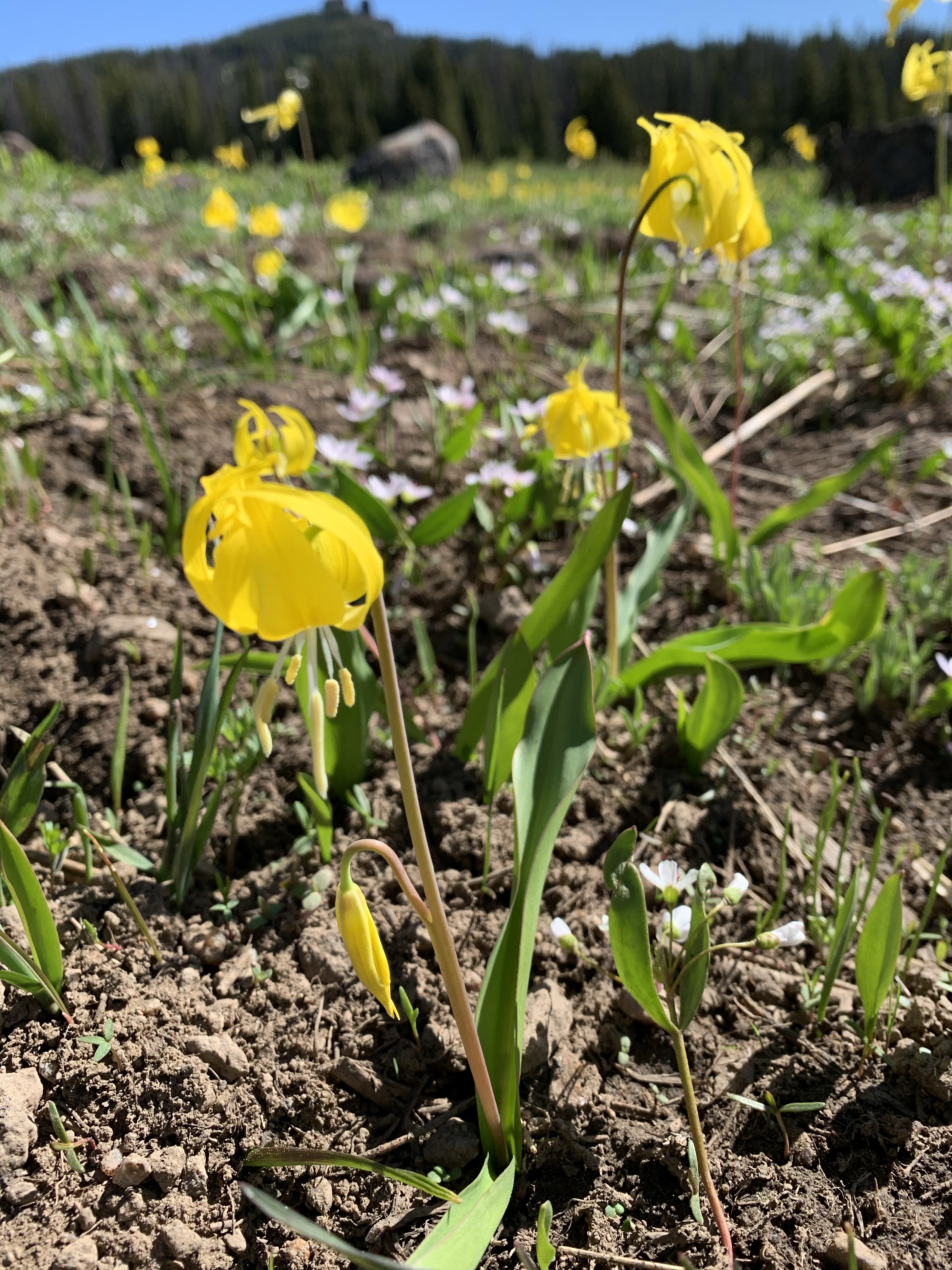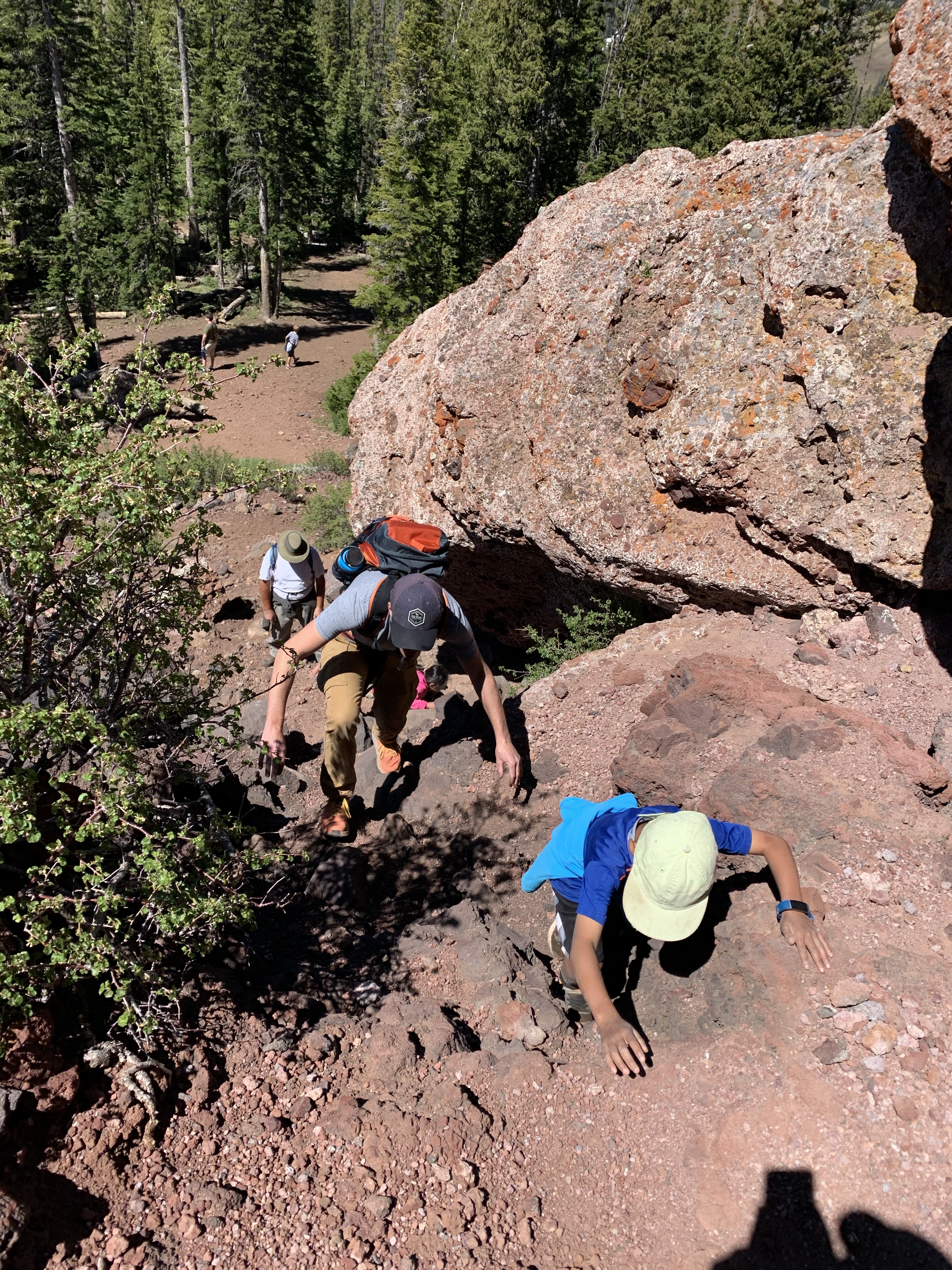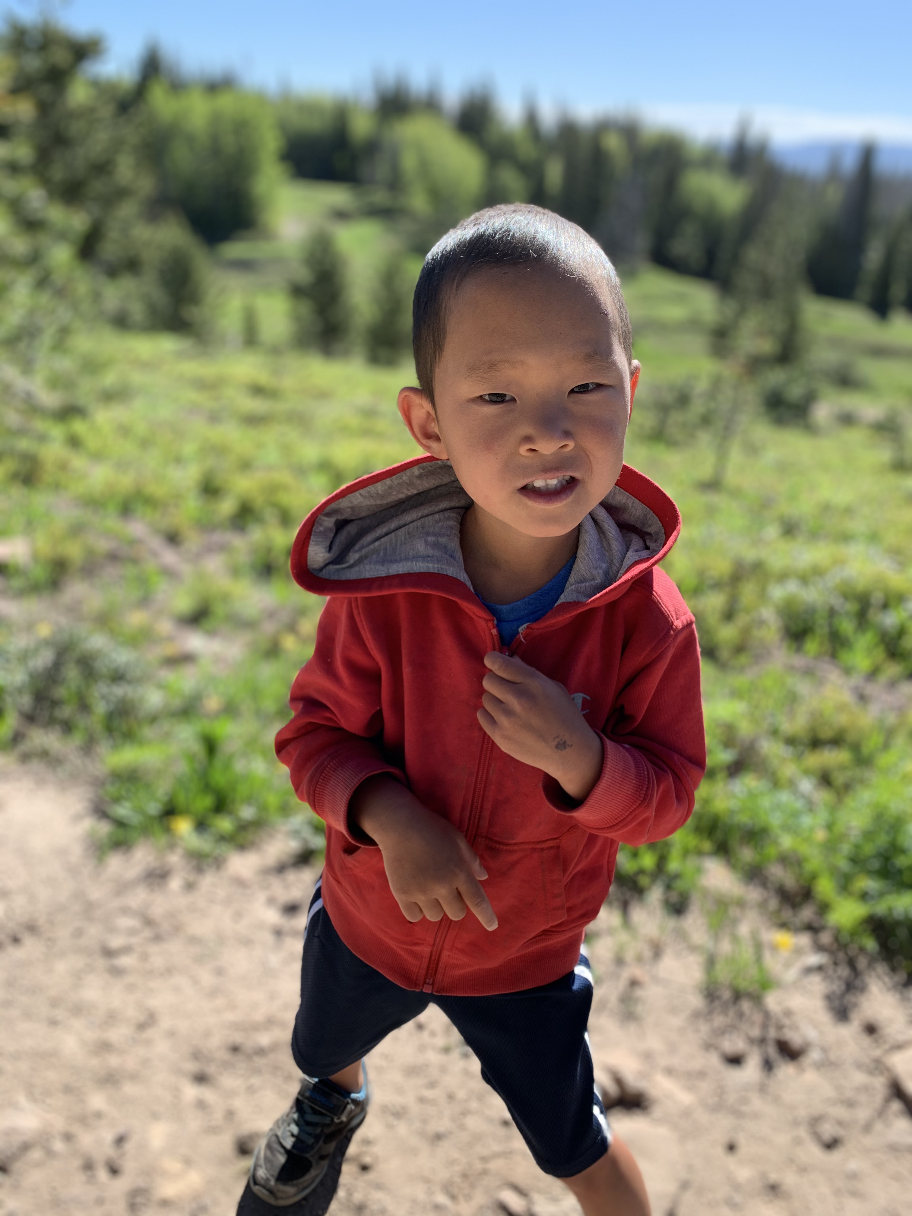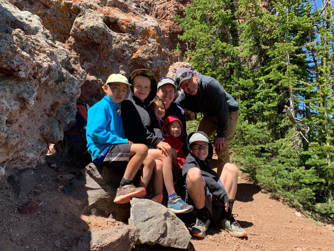 While we were up at my Aunt’s cabin we hiked up Rabbit Ears. The day was beautiful and we could not have asked for a better day. We hiked through fields of wildflowers that were abloom and gorgeous. Part way up we came to a large snow field which meant we all took turns sliding down the snow and laughing. The last bit of the hike is fairly steep but everyone made it to the top and we had a great lunch at the top enjoying the breath taking views. On our way back down we again slid and had a blast at the snow field. It was a great 6+mile hike!