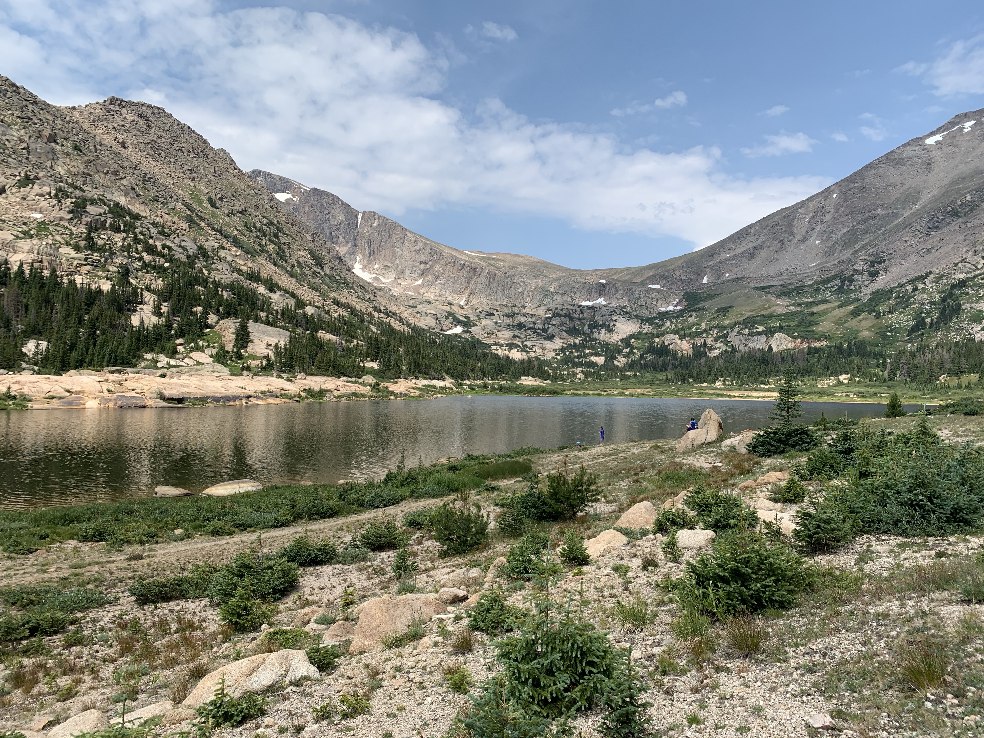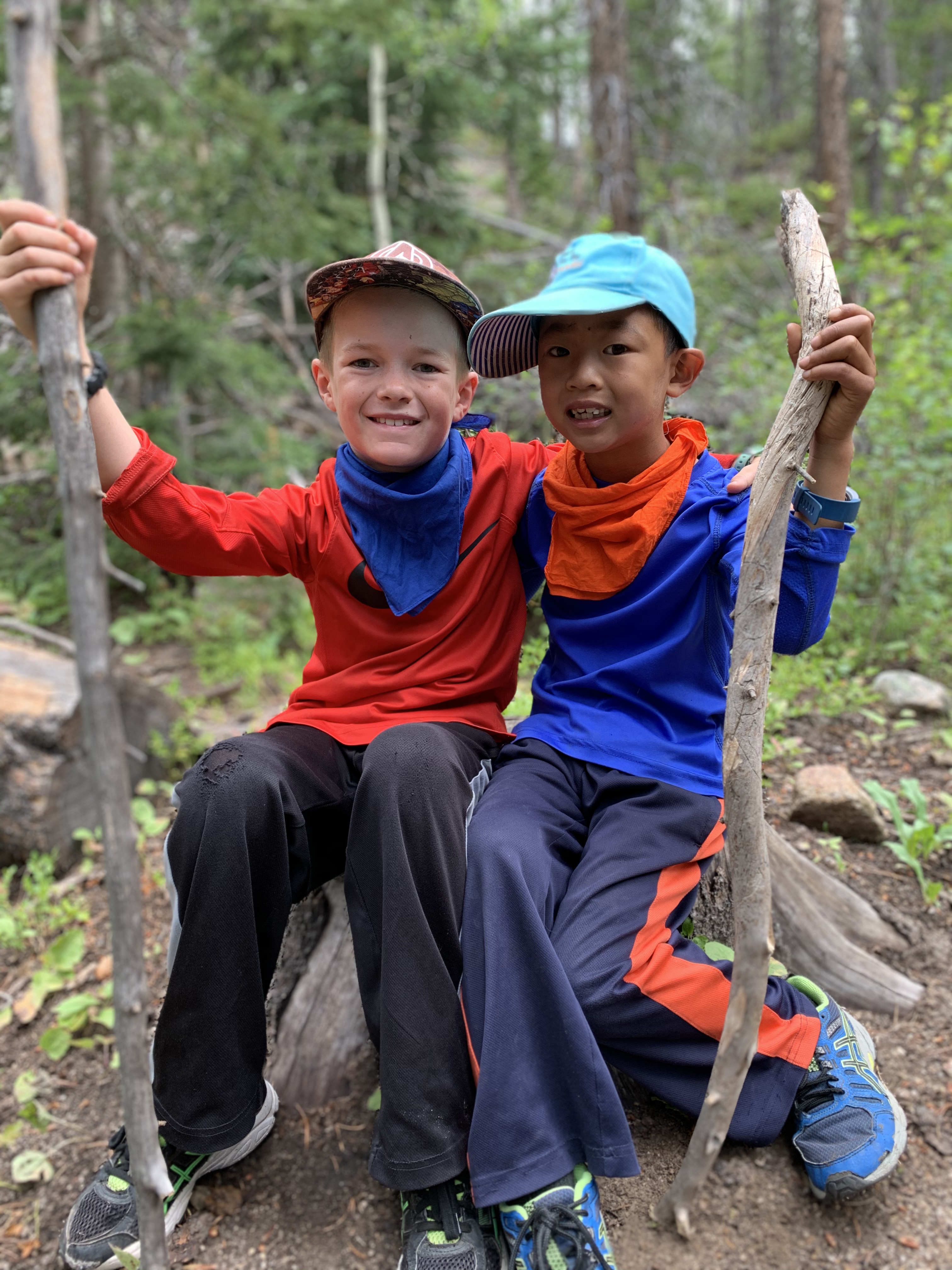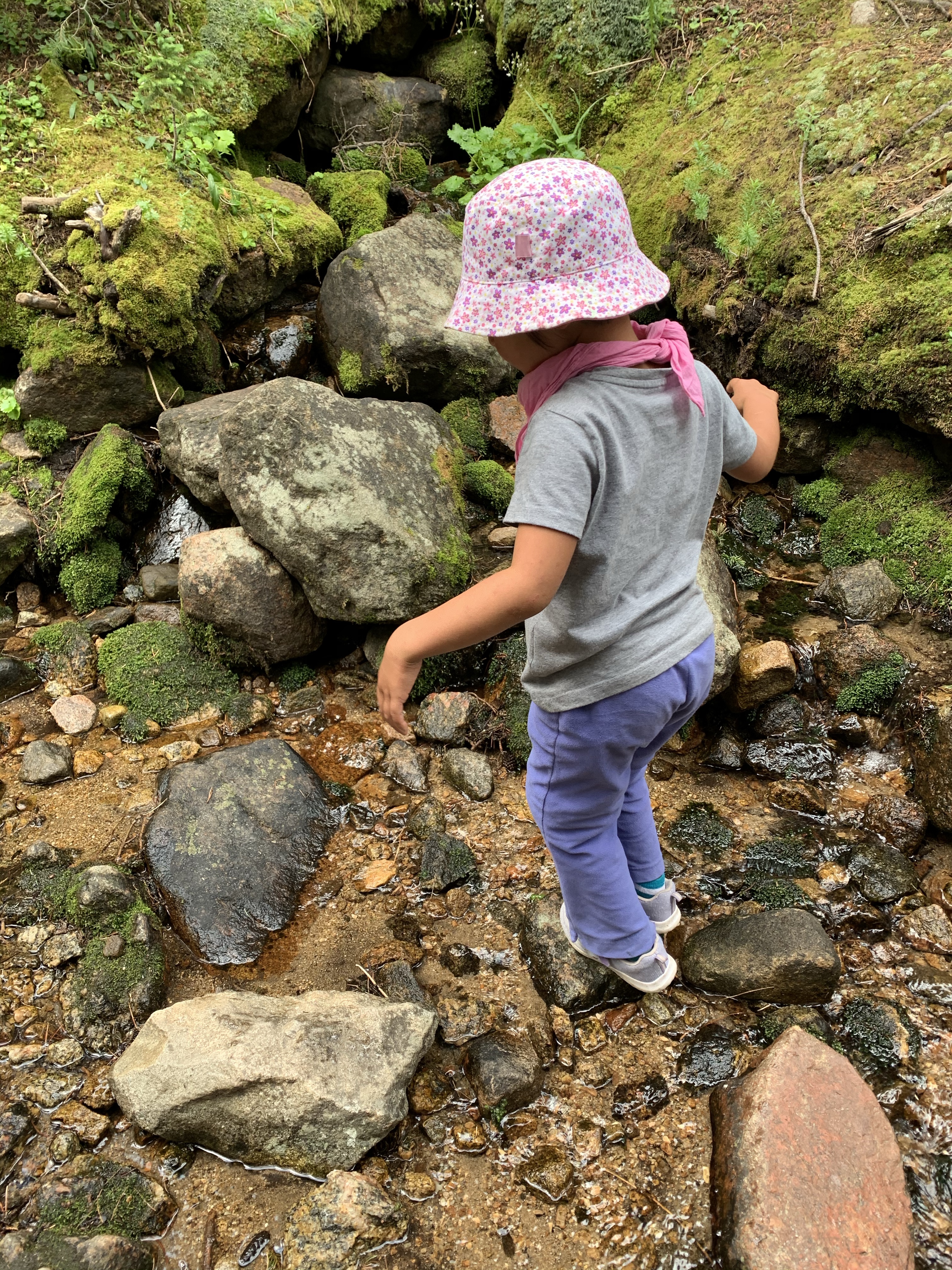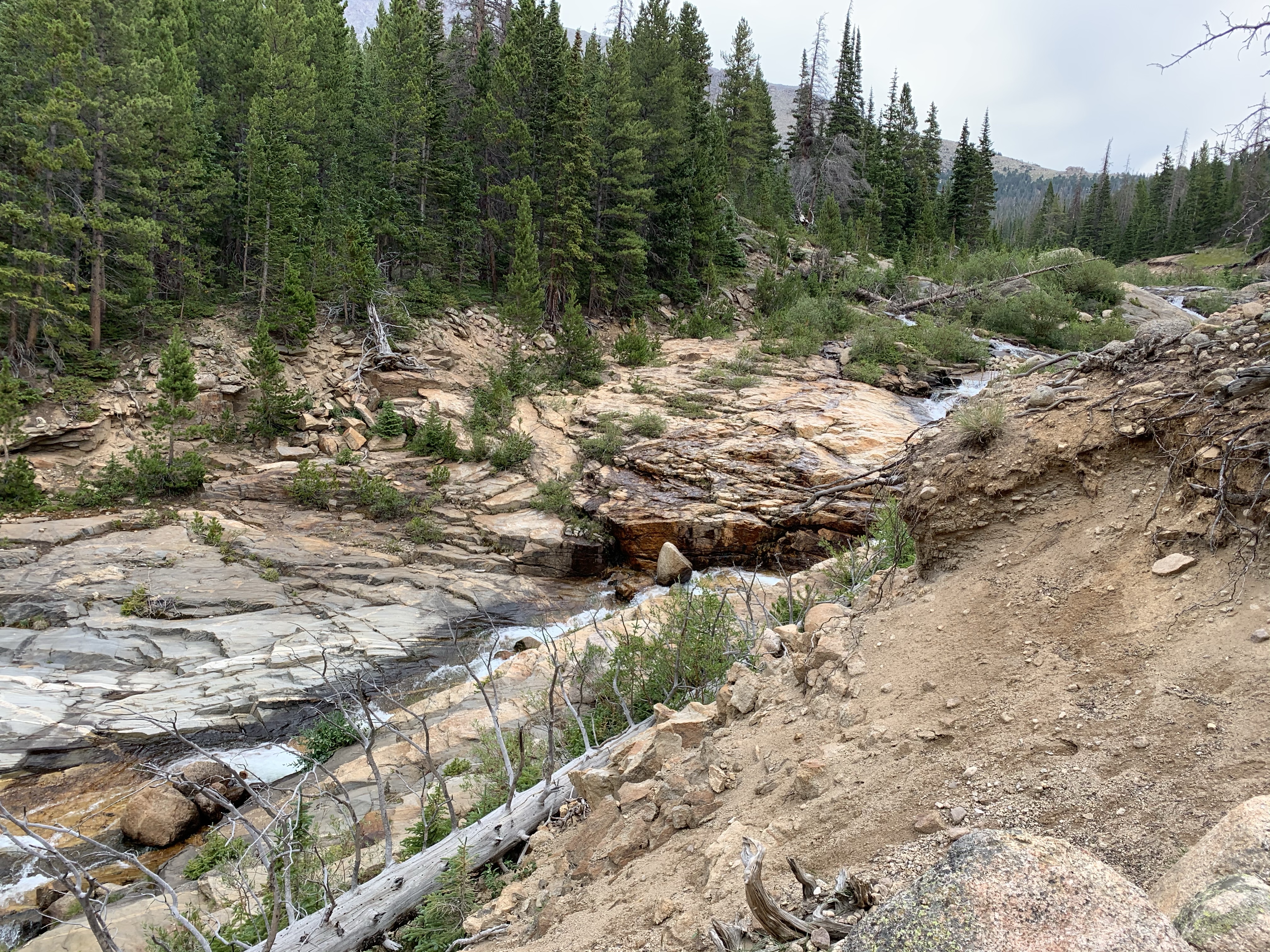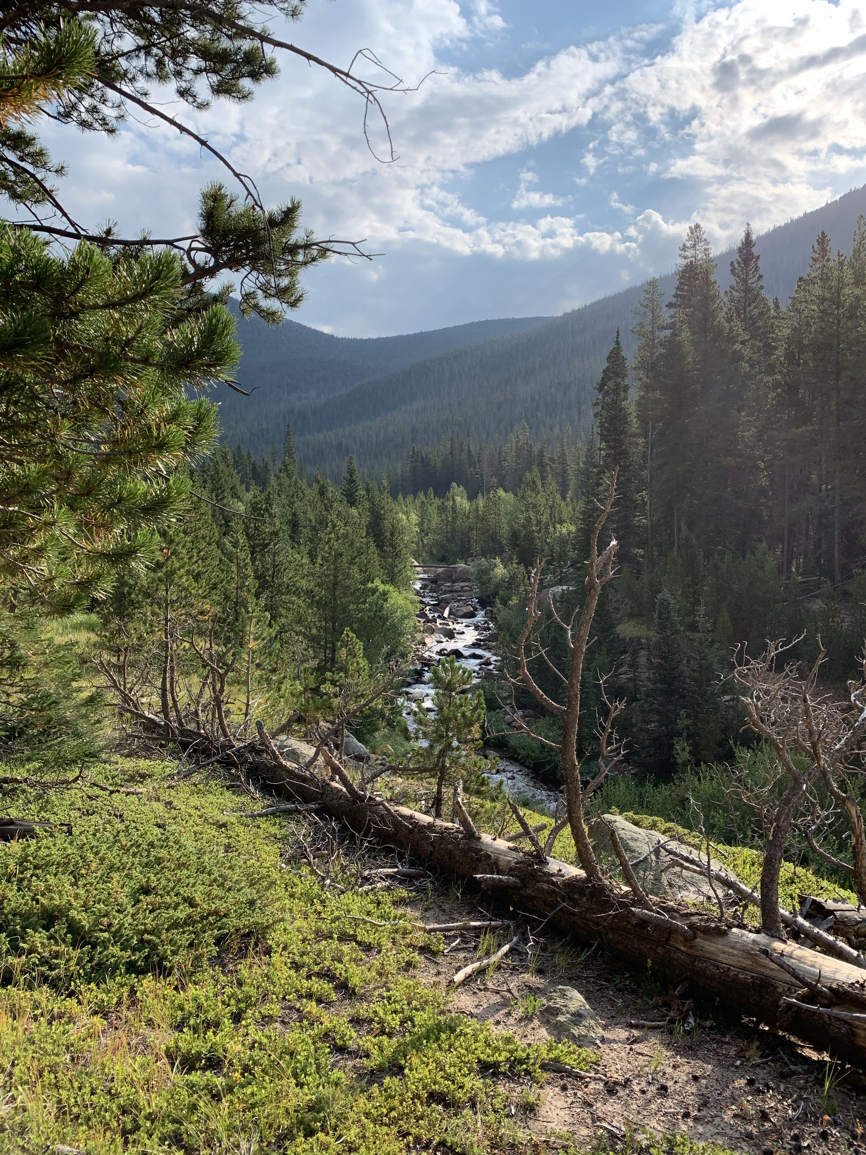 On our second day of backpacking we left the tents and bags behind (except for Clint who carried all our food/water/snacks/extra clothes for the day) and headed up the Lawn Lake trail near our camp site. It was a gorgeous day and a tough hike. We had a head start already being nearly 3 miles up the trail at our back country camp site, but it was nearly 4 miles more to the top. And it was about 1500 feet more in elevation climb as well. The kids didn’t really seem to notice it and we had a blast hiking and exploring. The view at the lake made the hike all worth it. It was absolutely breathtaking and we talked with the kids about God’s great creation and beauty. We made it to the lake about lunch time and sat down and enjoyed our lunch. As we were eating I looked up and there was a large moose across the lake eating her lunch as well. It was pretty neat to see. The kids were just as impressed with the moose as they were with a marmot that kept coming near. At least until the marmot started eating some nearby animal poop and then they weren’t so impressed with it. We climbed and played on the rocks near the lake and had a great time. However clouds quickly rolled in and we decided to head back to our camp site. But then the clouds really moved in and so we put everyone in ponchos just in case, and as it turned out we got those on with about a minute to spare. They were great though and kept us dry in the storm. The hike going back was almost all downhill which made it nice, we told stories, pretended that we were motorbikes, giggled and had a good hike back. In the end we did almost 9 miles. We headed down to the river by our camp site and played in it the rest of the afternoon. I’m pretty sure we re-routed the river with all the rocks and sticks that we threw in. Clint had dehydrated homemade fried rice for our dinner that night and we all enjoyed that with some hot chocolate. Everyone slept really well that night in our tents.