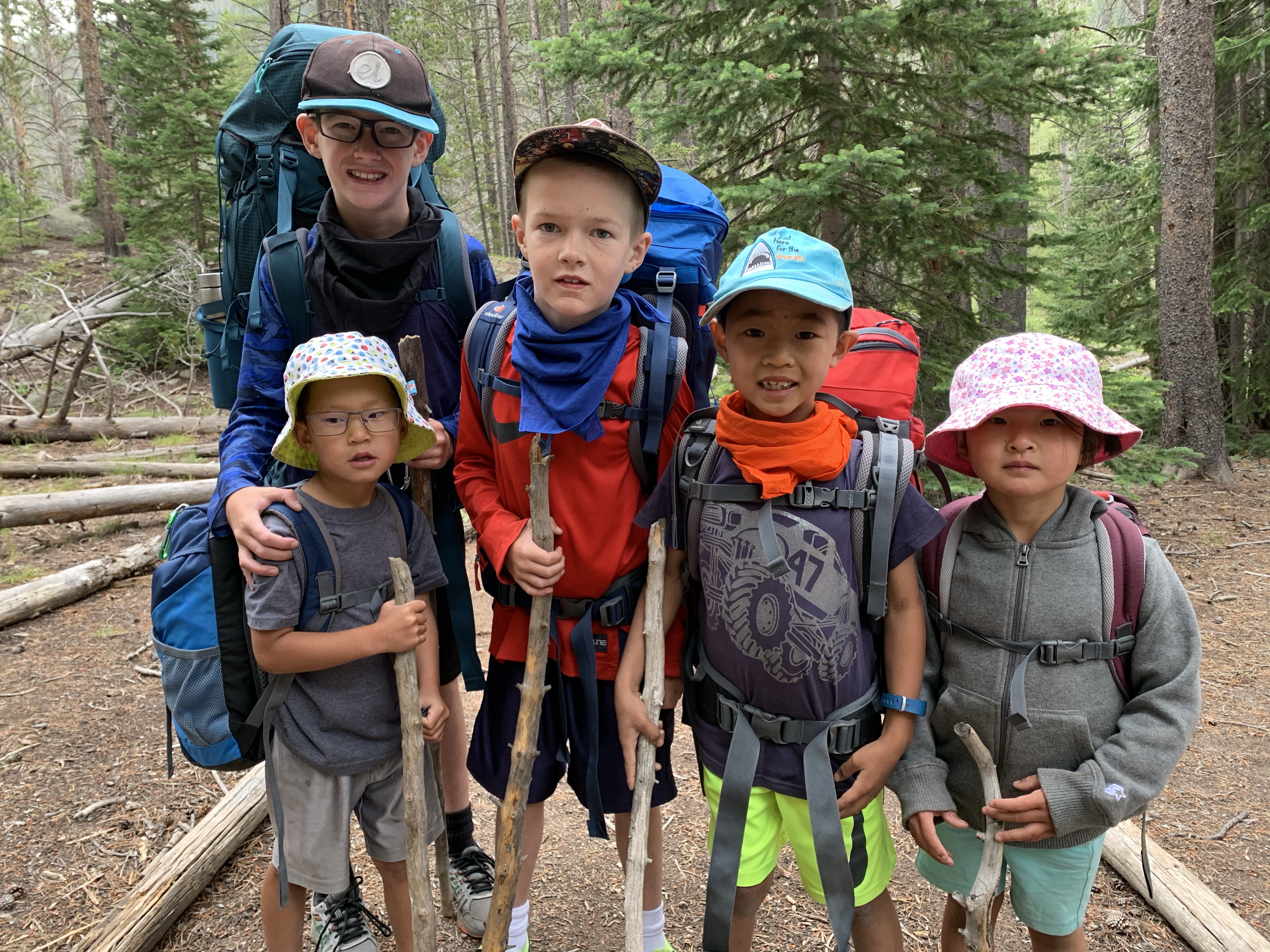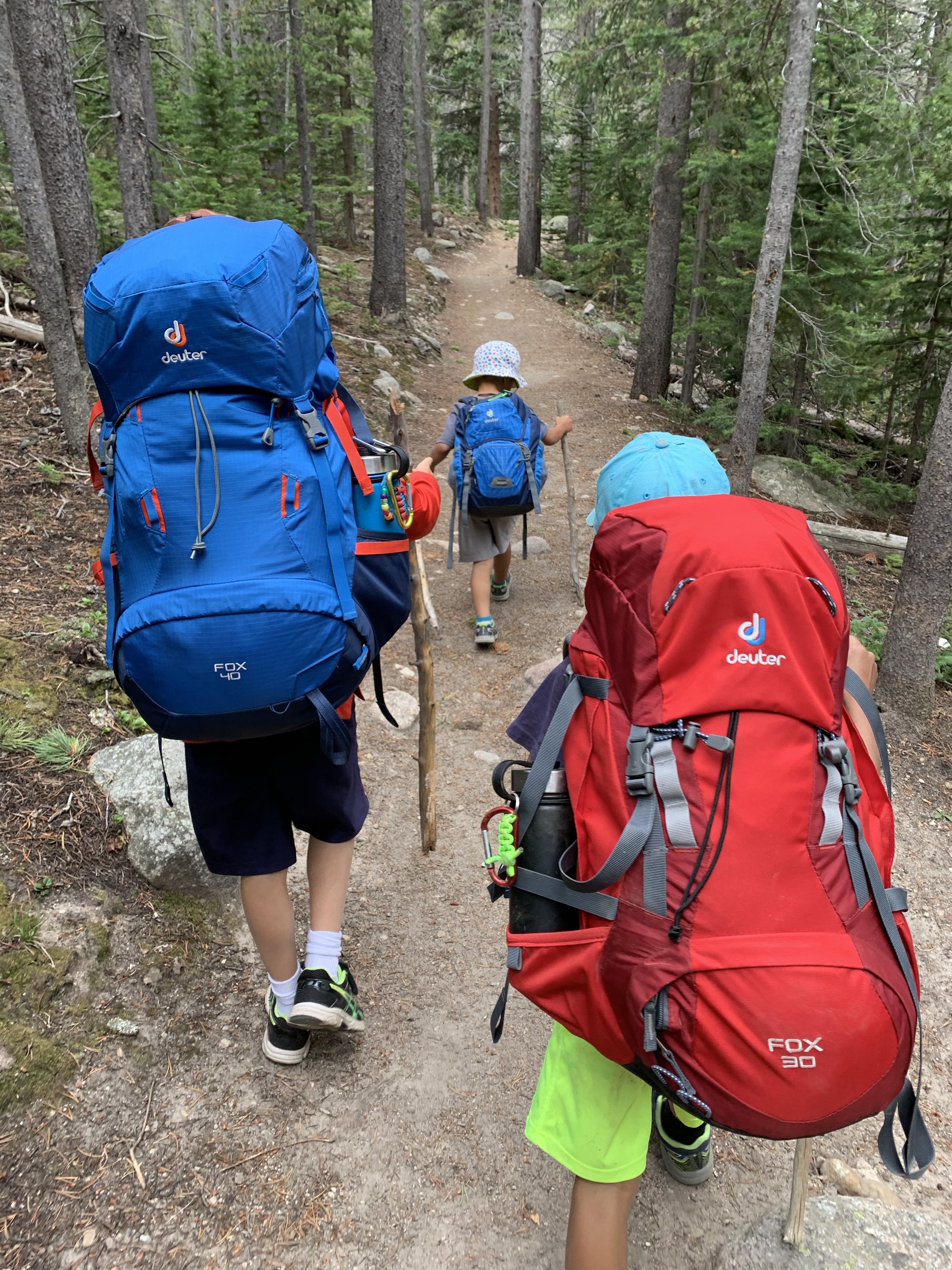 We woke up the second morning and started packing everything back up in order to hike back out. Everyone pitched in to help pack up and take the tents down and get everyone loaded up to go. Our bags were quite a bit lighter coming out thanks to eating all our food. Once we got everyone loaded up the kids all asked “can we come back and do this again?” which we gladly answered yes to. We had a good hike out, I was hiking with Edric and he and I were pretending to be cars zooming around the corners. Paxton wanted to be in front so he took his turn at times and they all switched out. We stopped for snacks and a rest part way down. Shortly after the 1/2 way down part we passed a couple headed up on a day hike and I saw the guy look at Paxton and then look at the girl he was hiking with and he said “man, that little guy is carrying more than you!” And I laughed, we had planned and packed everyone’s bags so they were more than manageable and the kids didn’t have a problem with them, however we were all glad to take them off as soon as we hit the trailhead at the bottom. It was a great trip and went far better than I had hoped. Looking forward to more backpacking adventures with all of them in the future!