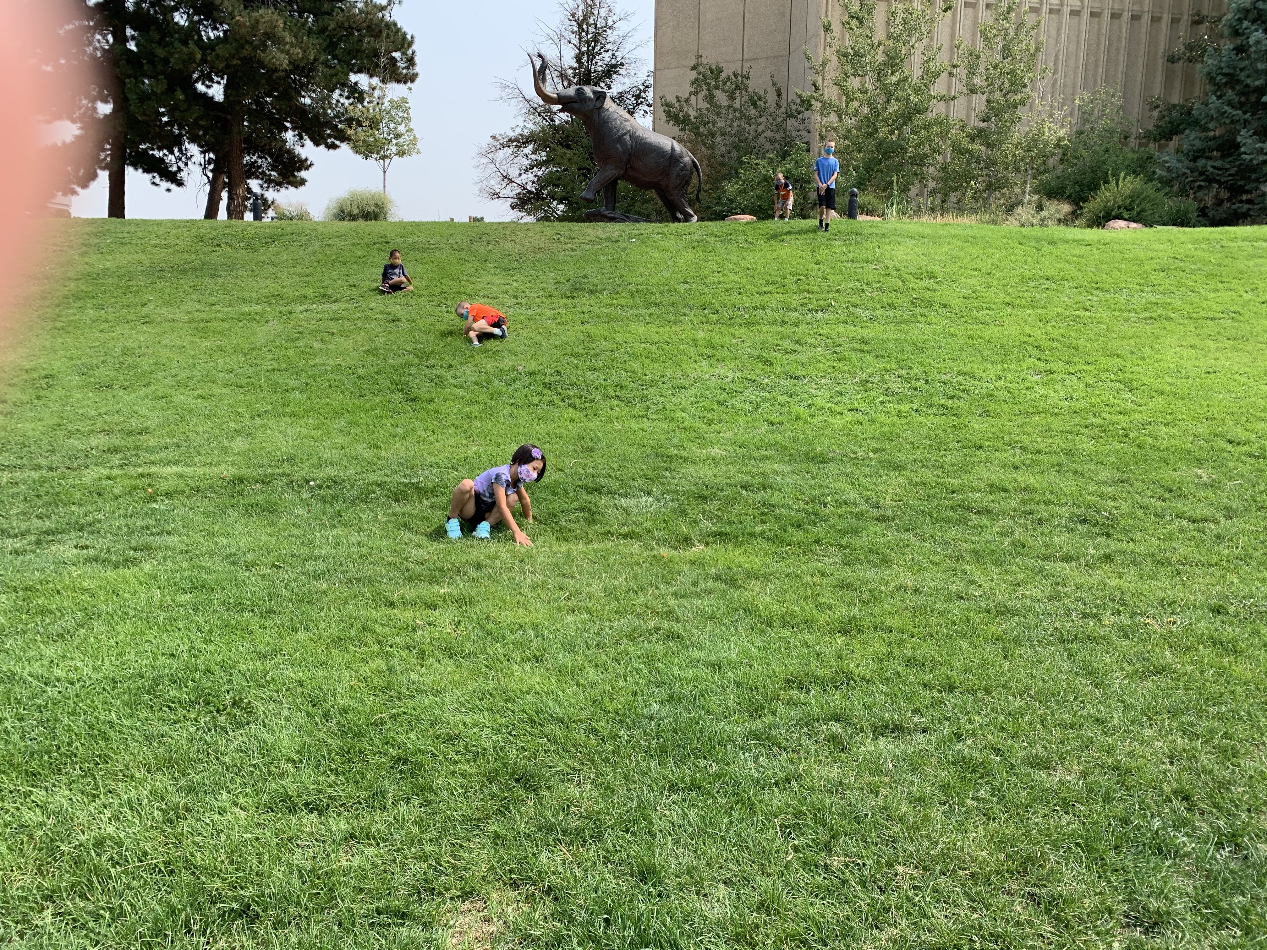 On Friday to celebrate both the end of our first week of school and Coppelia’s birthday we headed to the Denver Museum of Nature and Science. And mommy totally messed up. There is a Lego sculpture exhibit right now at the museum and it is free with admission to the museum and I misread the website and thought that we only needed a timed entry pass to the museum and that our timed entry pass into the exhibit was included in that. But it wasn’t….and we didn’t find that out until we tried to enter the Lego exhibit…..so we spent the morning exploring the rest of the museum which was a lot of fun anyway. Even with masks and social distancing, it went really well. The kids favorite is always the gem and mineral exhibit and it’s always been my favorite too, even when I was a kid and it was different then but still always my favorite. The two other big favorites were the dinosaurs and the escalators….yes my kids are huge fans of escalators…..just wait till we take them back to Korea and travel the subway…we might spend an entire day just riding the escalators in the subway stations in Seoul. So despite my misreading and misunderstanding we still had a great day and finished it off by rolling down the grass hills outside. We are now members of the museum so we will find another time to go and visit and actually see the Lego display.