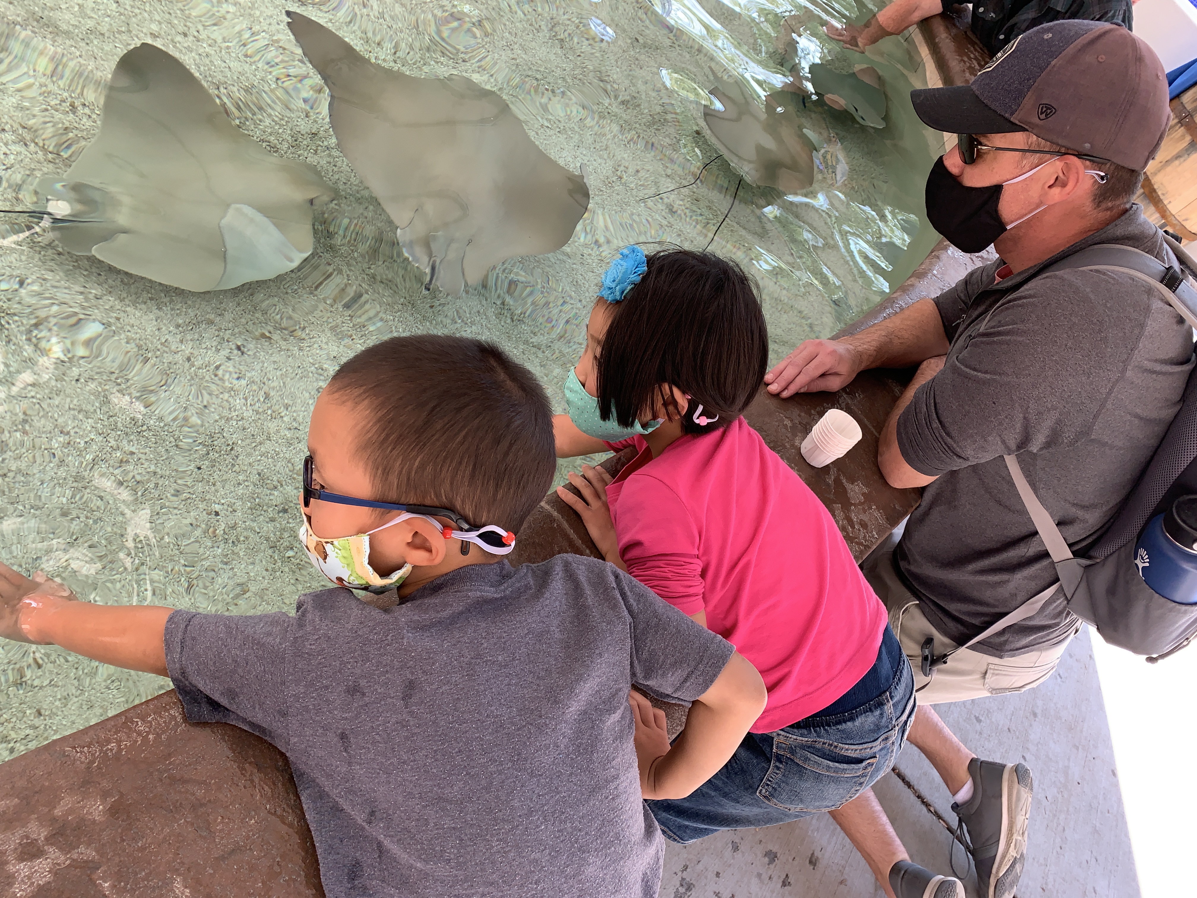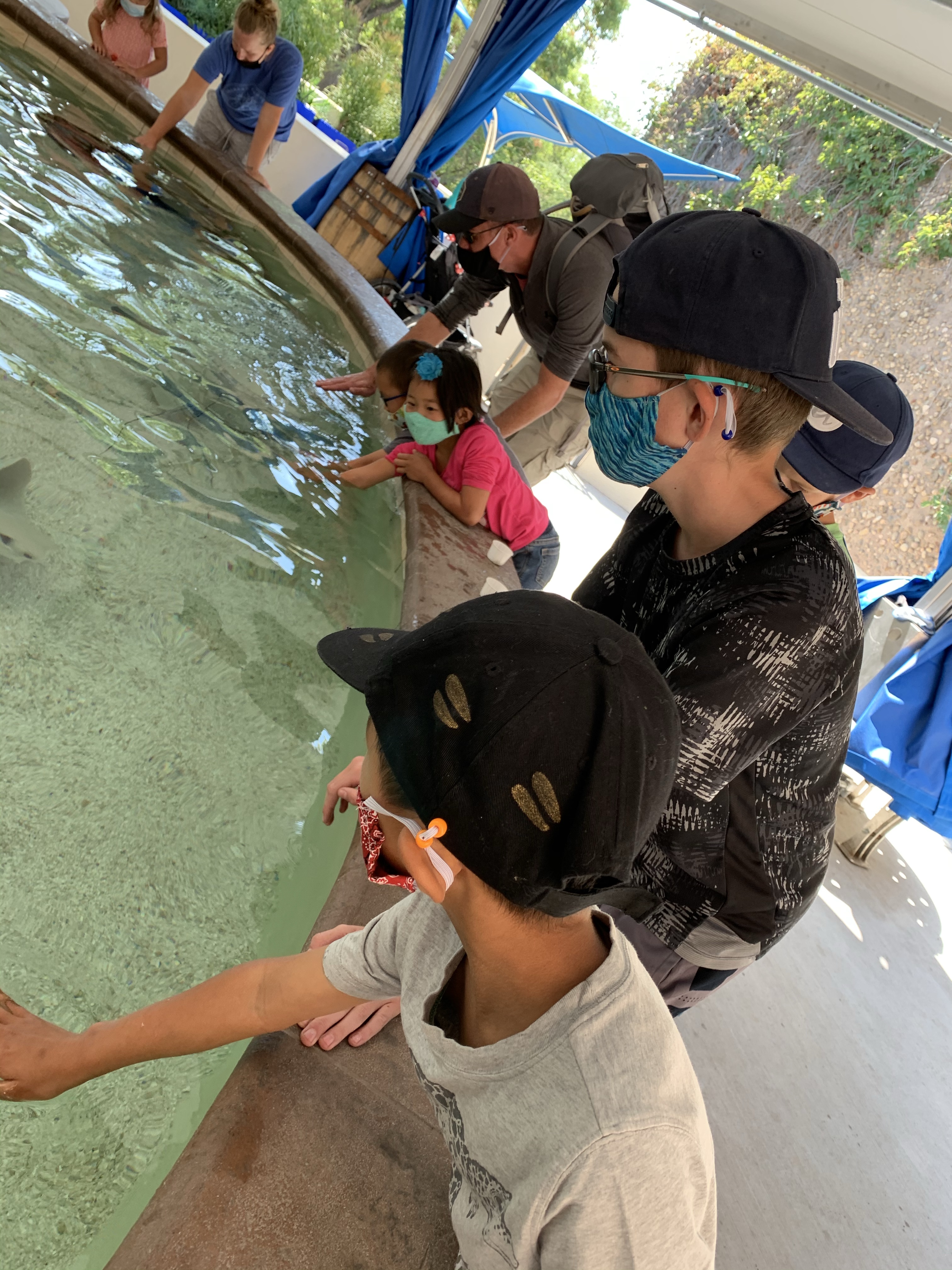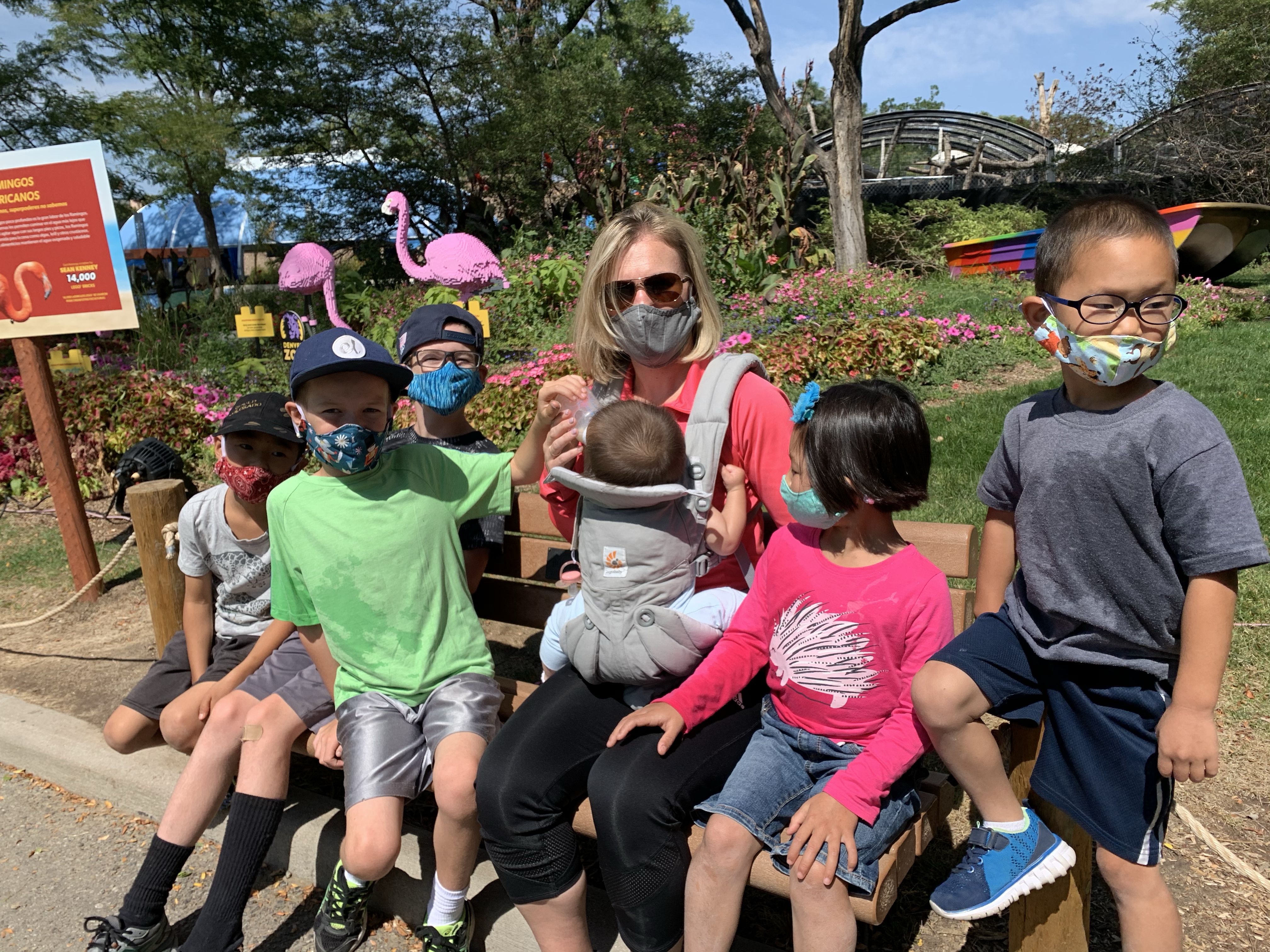 On Friday we met my brother Josh and his wife Heidi and their baby Johanna at the Denver Zoo. It was a gorgeous day, it started out cool but sunny and warmed up nicely. The kids were very excited to see their cousin Johanna and Caedmon especially wanted to hold her. He was quite upset that she did not really want much to do with him but finally was consoled when he could give her little crackers and she seemed fine with that. There were lego sculptures all over the zoo of various animals which the kids really liked. Coppelia was excited to see the porcupine since she had a porcupine on her shirt as well. We saw lots of lions and the tigers were up on their overpass when we we near them. The elephants were out and they were testing how to allow the public to feed the lorikeets and so we got to be part of the test group which was fun. Caedmon was super stoked to see the piranhas because he has been reading the “Bad Guy” books and one of the characters is a piranha. Paxton wanted to see jellyfish and luckily there were some in the tropical discovery area. Everyone’s favorite part was the new sting ray exhibit. The kids loved being able to pet them and feed them. It was really neat. We had a great day exploring all the animals and getting to see Johanna.