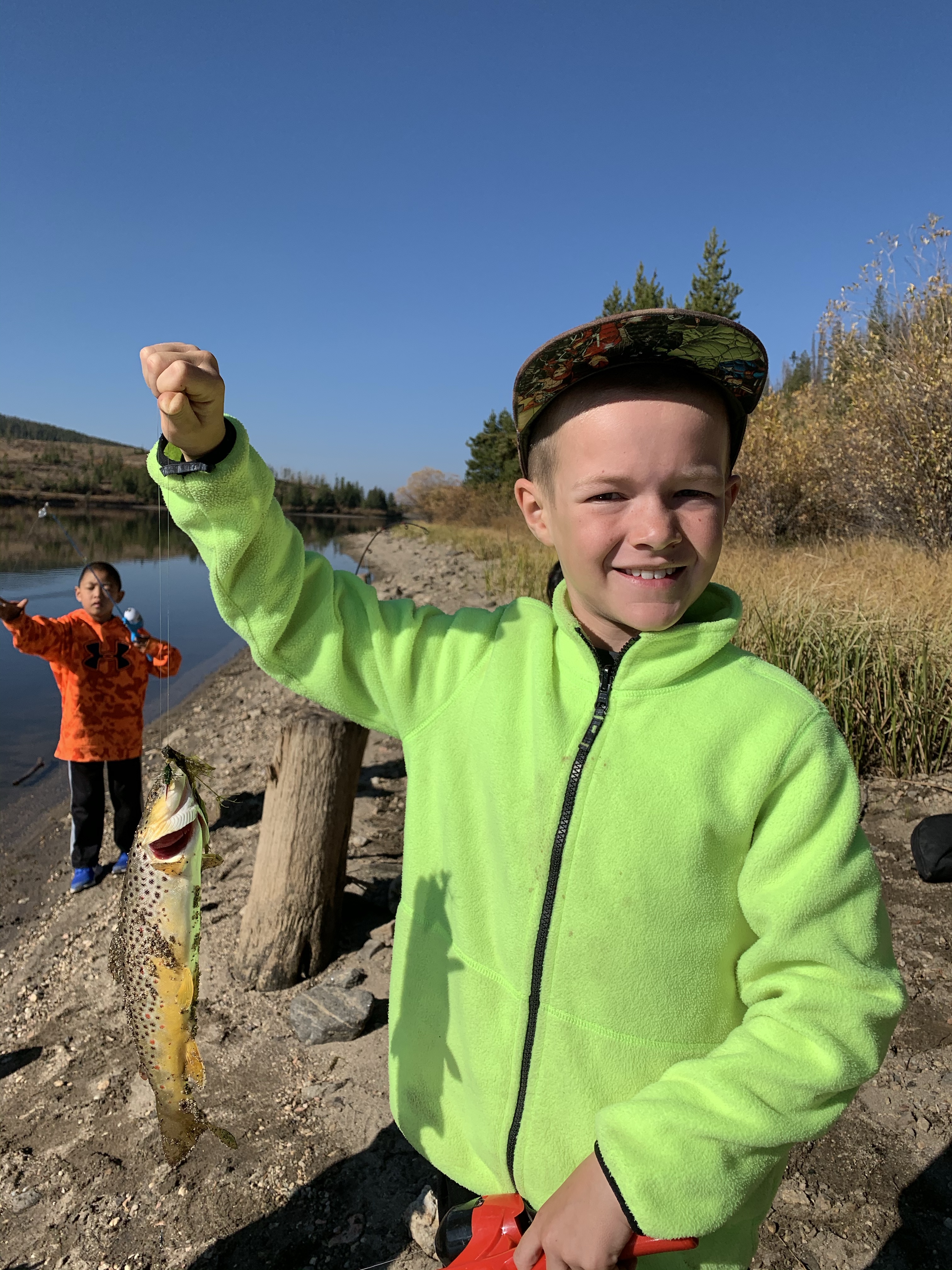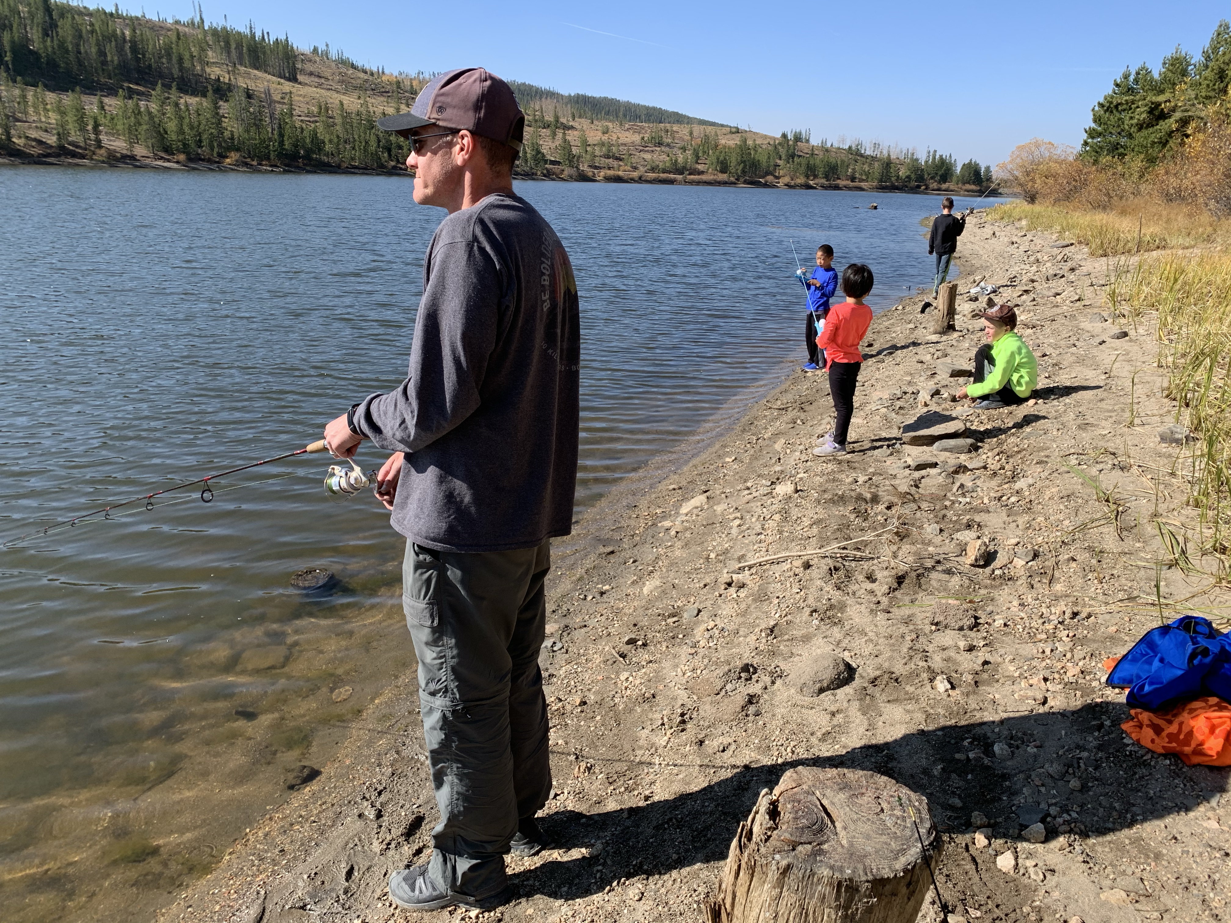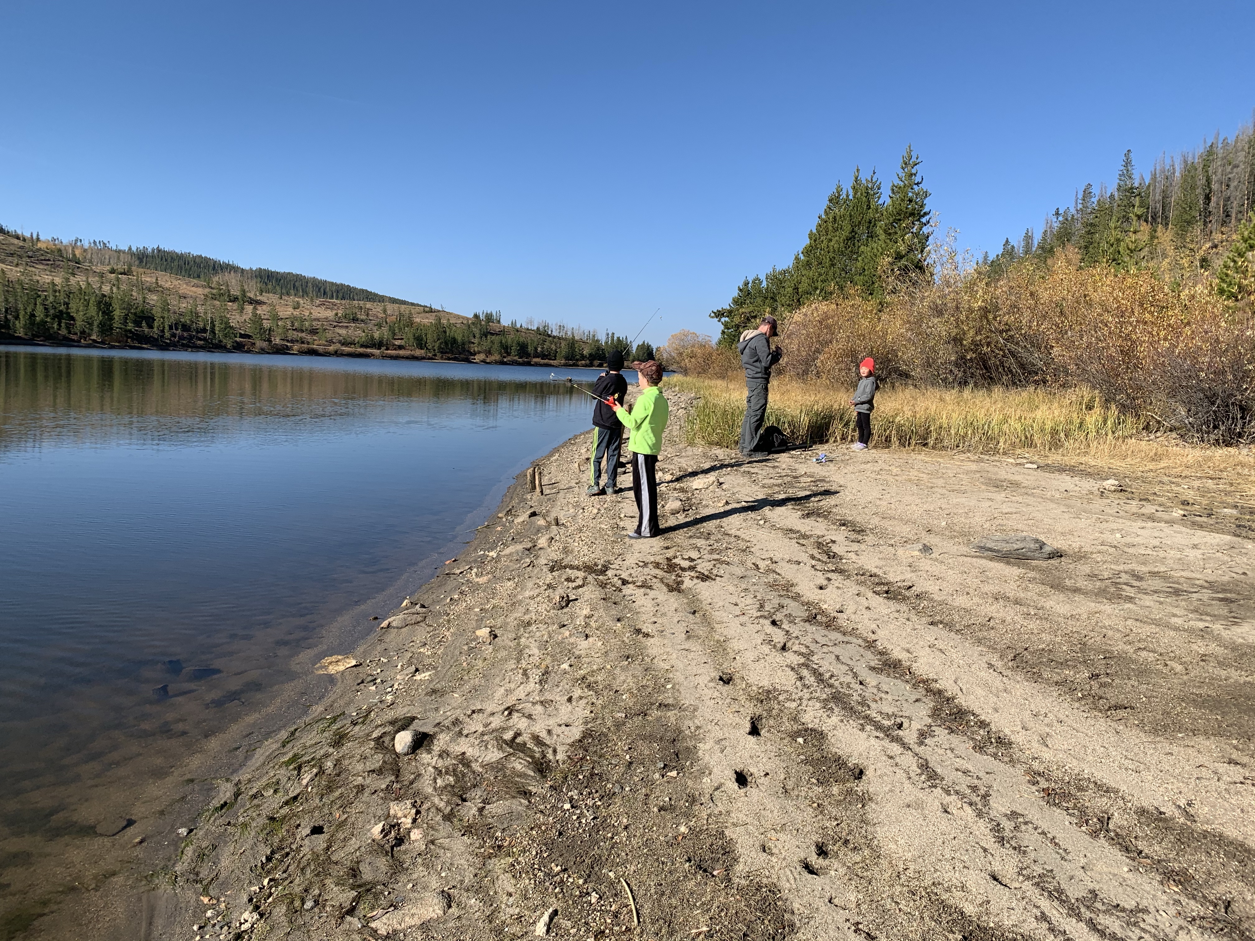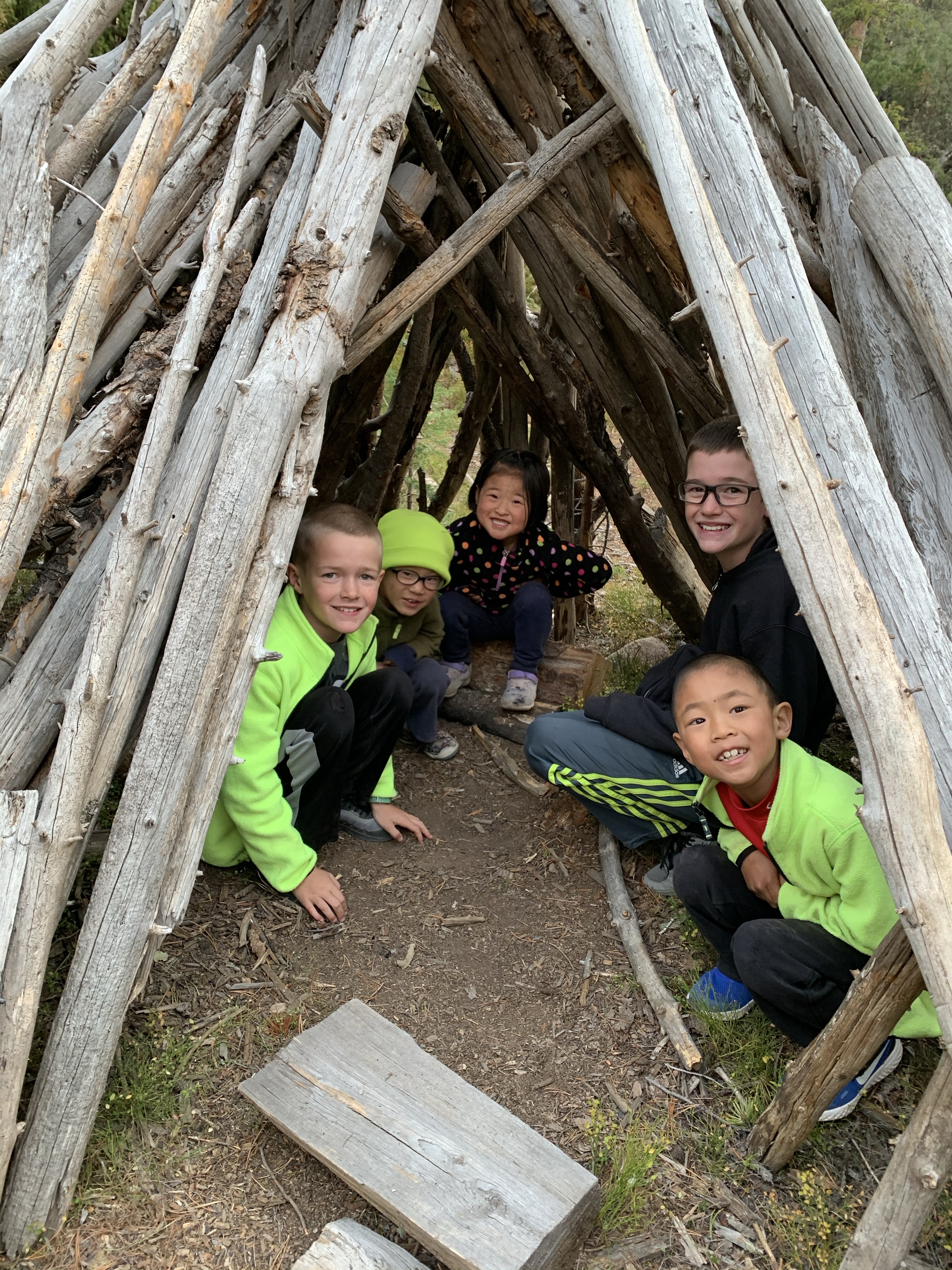 Saturday afternoon after we got back from Ruby Jewel hike/lake it was still early enough in the afternoon that we headed back down to Michigan Reservoir and spent some time fishing. we caught a number of fish that afternoon and I believe that we did because it was so hazy from all the smoke the fish thought it was dusk. Leighton was a good big brother and helped get Caedmon’s line set up with the same lure system that he had on his pole and together they caught a few fish. Paxton was quite insistent that he get a chance to use Clint’s rod and so together they used that and caught a fish and his eyes were so bright and smile huge when he caught a fish. I didn’t try to catch a fish but one of the kids would ask me to toss their line out because I could cast it farther than they could and I would inevitably land a fish. It was funny. The smoke was really bad that afternoon but we still had a great time. When we made it back to the yurt while Clint and I cooked chili the kids played in the stick teepee behind the yurt. Sunday morning we packed and cleaned everything up pretty fast and then headed back for some more fishing. The fish were really biting again that morning which was lots of fun. Coppelia was the only one that didn’t catch a fish, but I think that was because she spent the majority of her time either tied and tangled up in her line or playing in the sand along the shore. In the end I actually ended up catching the most which I totally rubbed in and took great pride in. But everyone had fun.