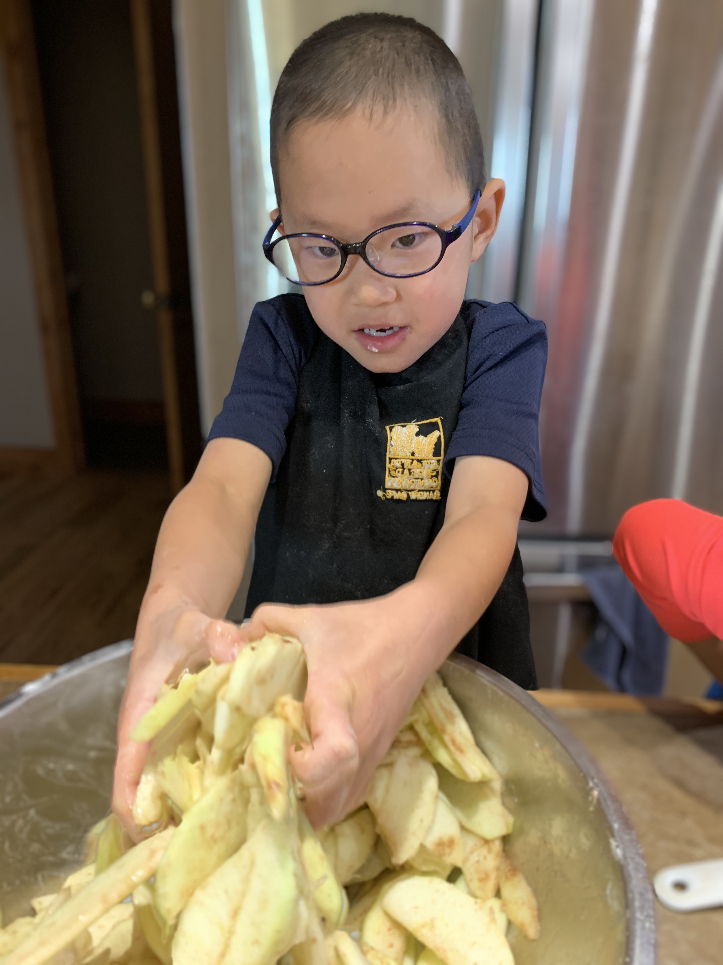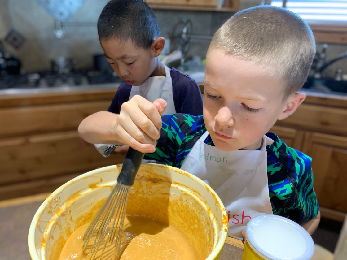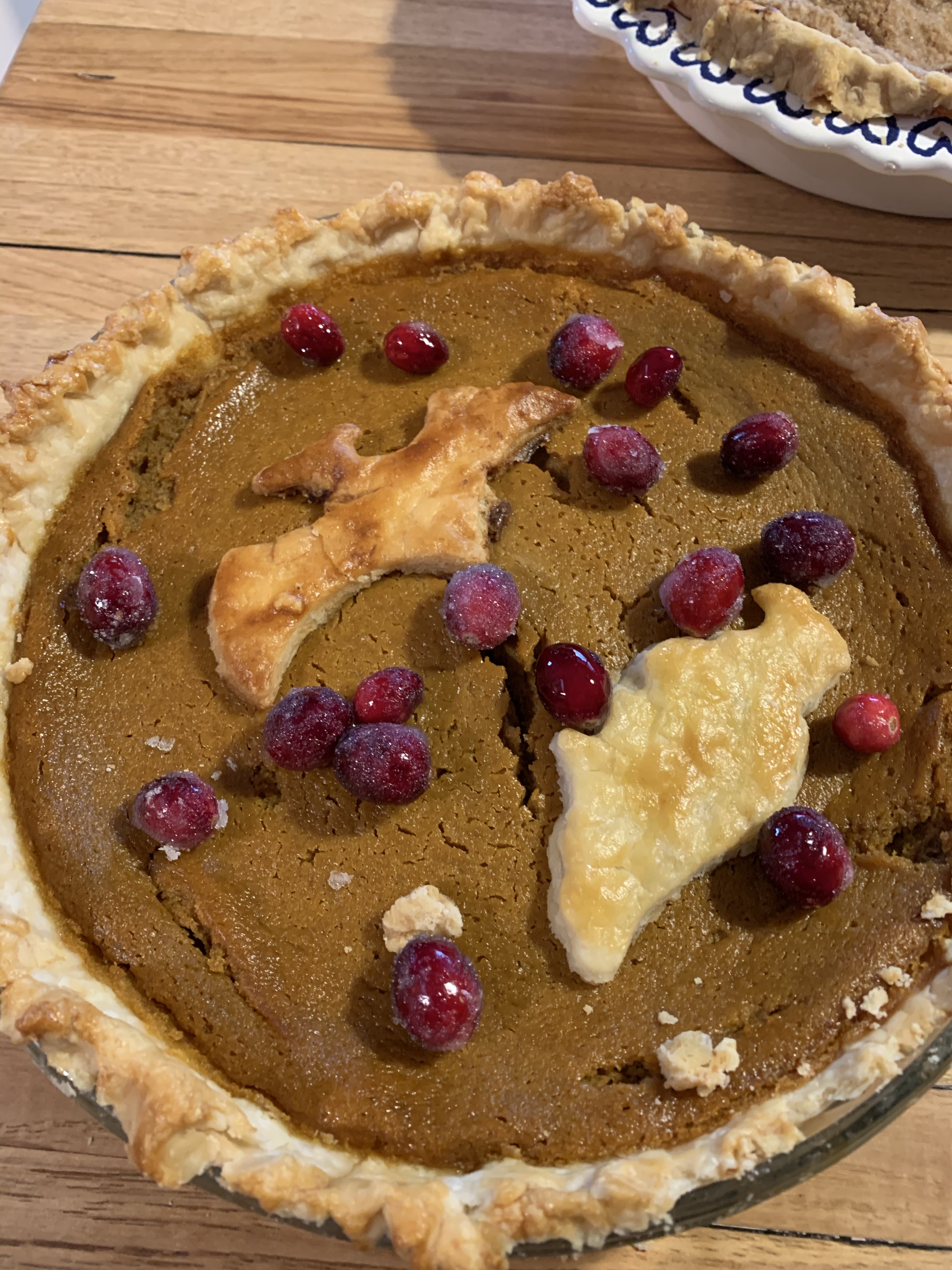 For Thanksgiving I volunteered to make and bring the pies….which meant making 3 pies with 5 kids. Kind of crazy but we actually had a lot of fun. Caedmon really wanted to make the pumpkin pie. He has had his heart set of that for the last number of months, actually I think since we planted pumpkins in are garden in the spring. He was really bummed when we got an early October snow/freeze and all the lovely pumpkins that we grew all turned to mush. Nevertheless he declared that he and Edric and Clint would be making the pumpkin pie. That left Leighton, Coppelia, Paxton and myself for the apple and we’d just figure out the pecan when the other two were finished. We all started by making homemade pie dough and then dove in to the fillings. Everyone was a super helper and my kitchen wasn’t totally destroyed when it was all done. With the pumpkin we also made sugar coated cranberries which were really good, and then for decorations which were suppose to be fall leaves, but because we have no fall cookie cutters I let the boys pick out shapes. So we ended up with a “pigeon” (which looked suspiciously like an eagle) and a “bat” (which looks more like a pterodactyl to me), because Caedmon’s current favorite book is “Real Pigeons Fight Crime”. So you know, we are bringing our high class literature into our pie making.
