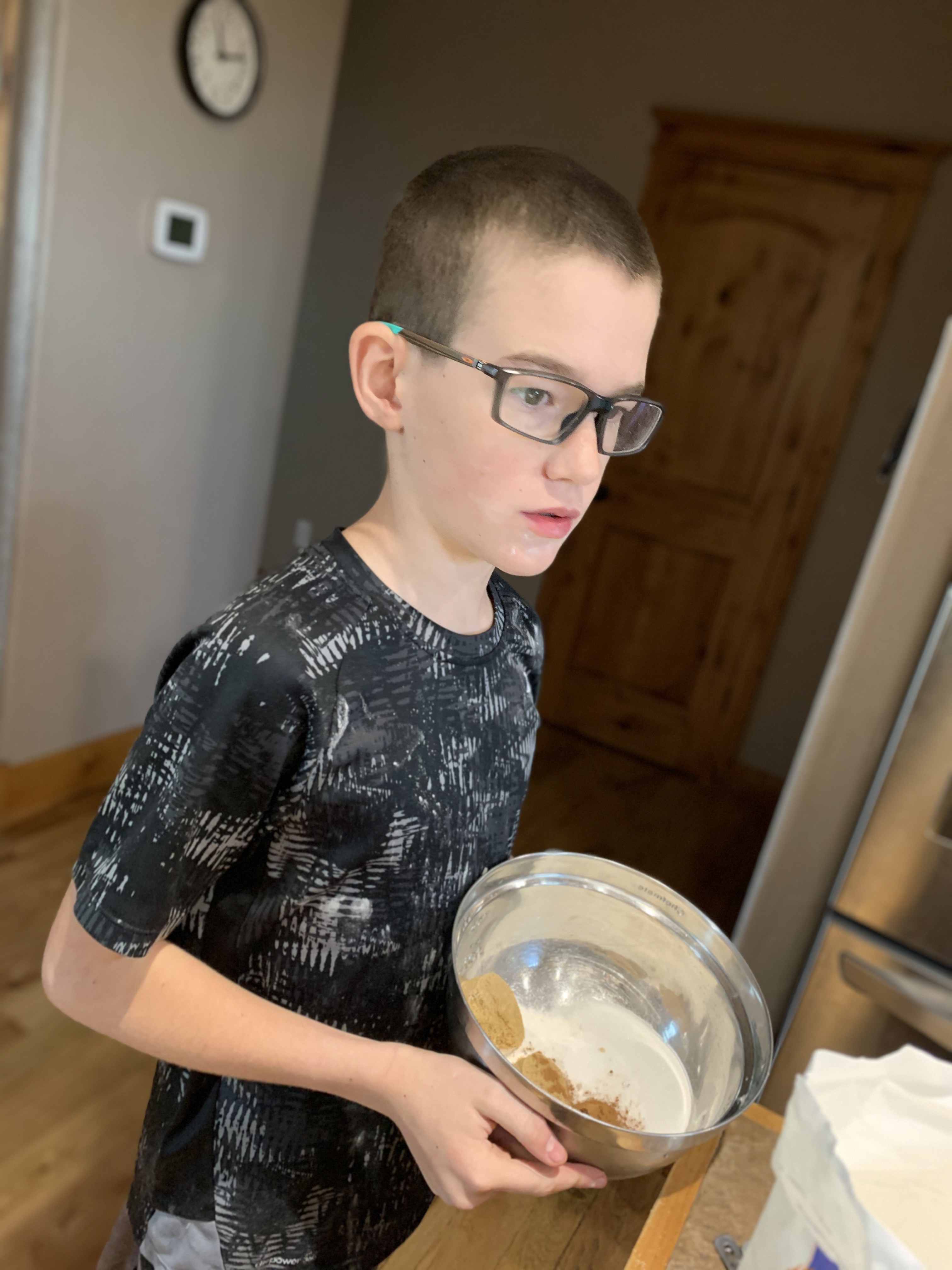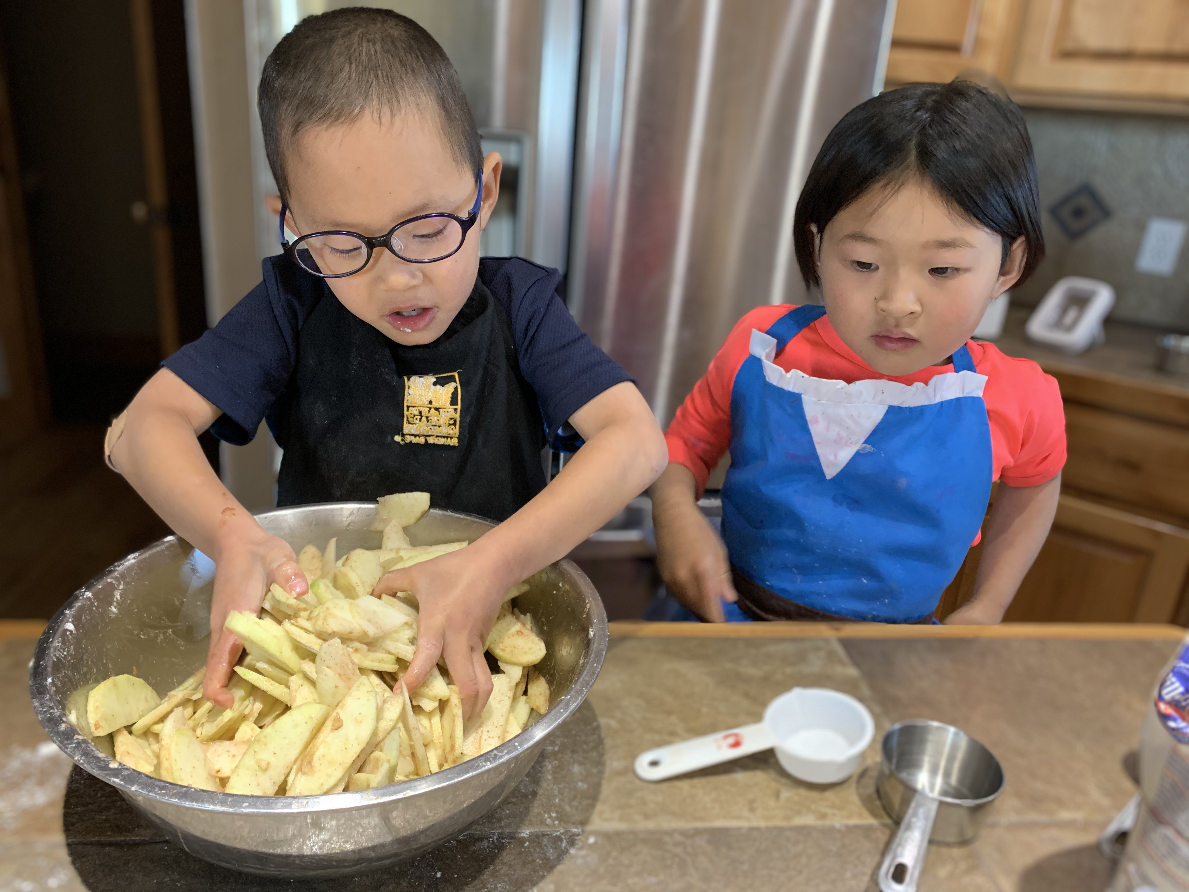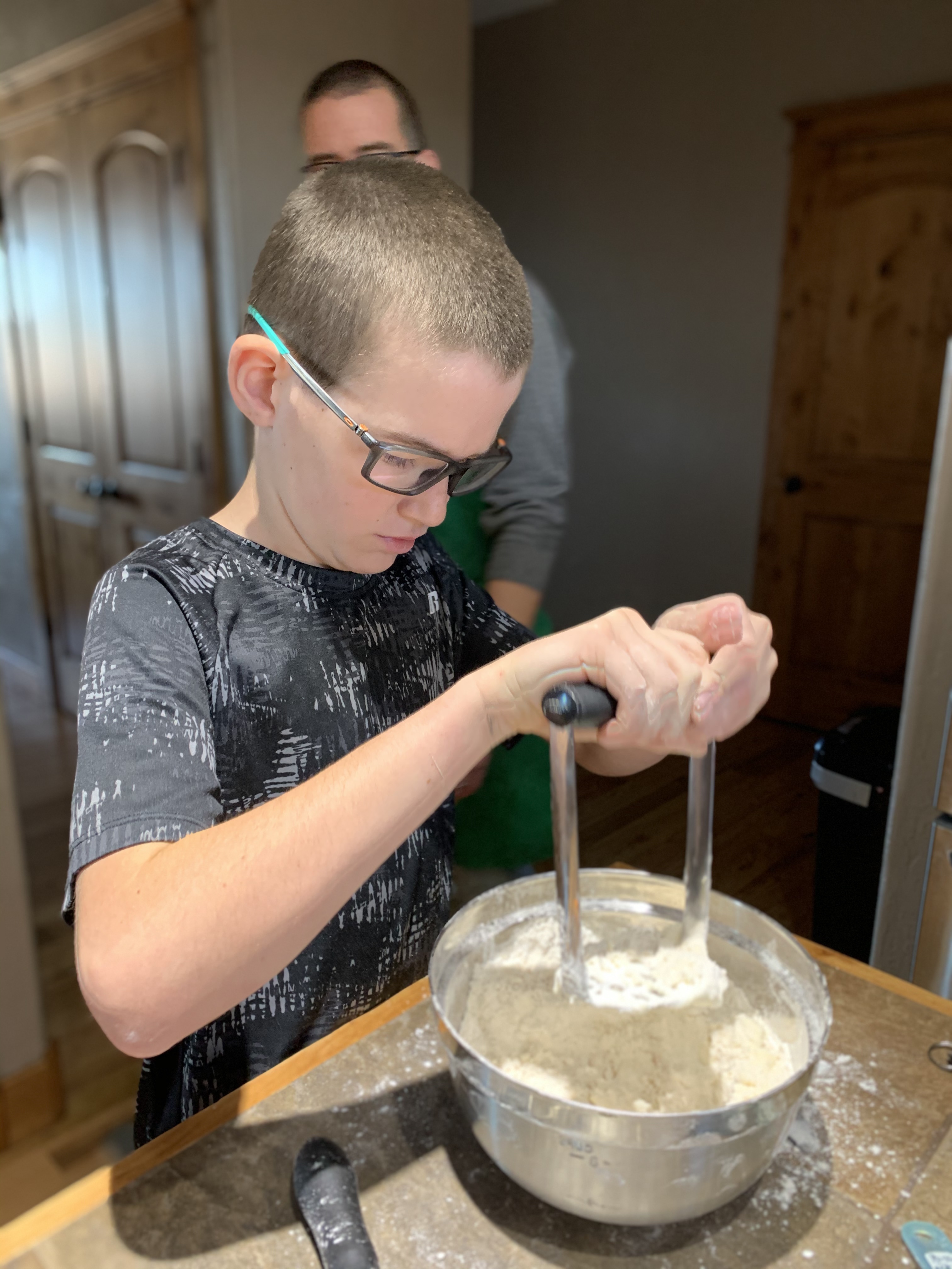 For Thanksgiving I volunteered to make and bring the pies….which meant making 3 pies with 5 kids. Kind of crazy but we actually had a lot of fun. Caedmon really wanted to make the pumpkin pie. He has had his heart set of that for the last number of months, actually I think since we planted pumpkins in are garden in the spring. He was really bummed when we got an early October snow/freeze and all the lovely pumpkins that we grew all turned to mush. Nevertheless he declared that he and Edric and Clint would be making the pumpkin pie. That left Leighton, Coppelia, Paxton and myself for the apple and we’d just figure out the pecan when the other two were finished. We all started by making homemade pie dough and then dove in to the fillings. Everyone was a super helper and my kitchen wasn’t totally destroyed when it was all done. With the pumpkin we also made sugar coated cranberries which were really good, and then for decorations which were suppose to be fall leaves, but because we have no fall cookie cutters I let the boys pick out shapes. So we ended up with a “pigeon” (which looked suspiciously like an eagle) and a “bat” (which looks more like a pterodactyl to me), because Caedmon’s current favorite book is “Real Pigeons Fight Crime”. So you know, we are bringing our high class literature into our pie making.