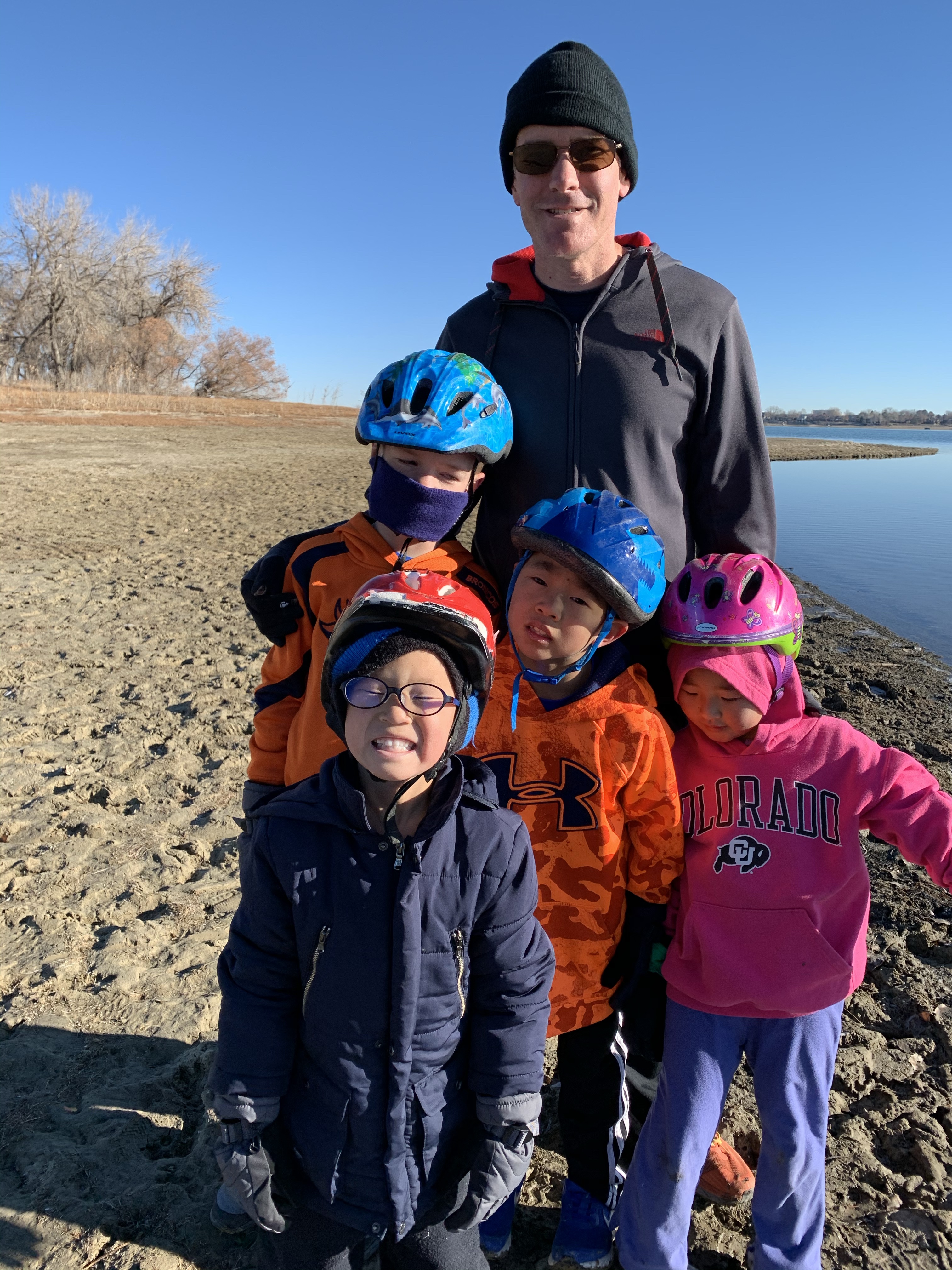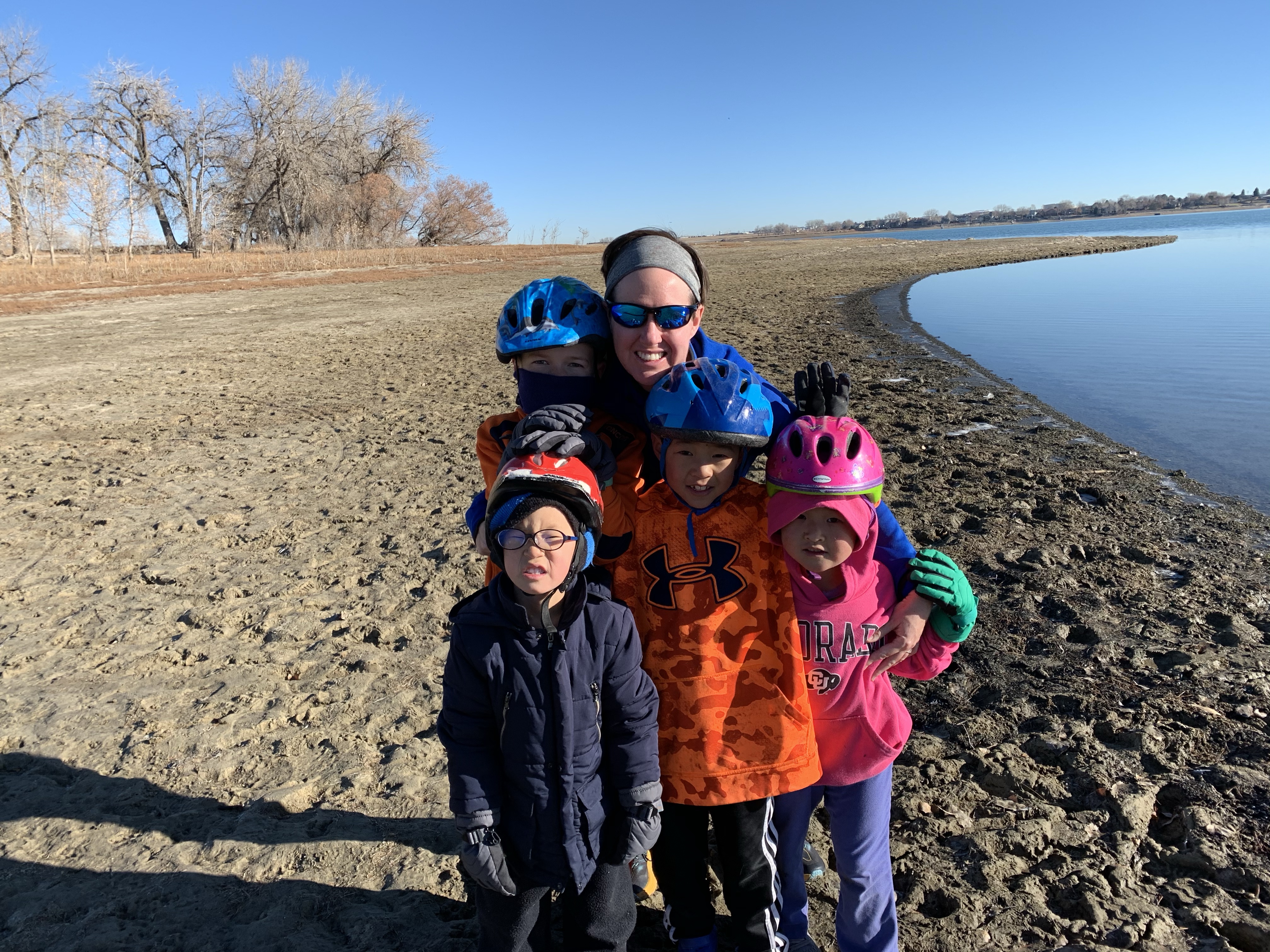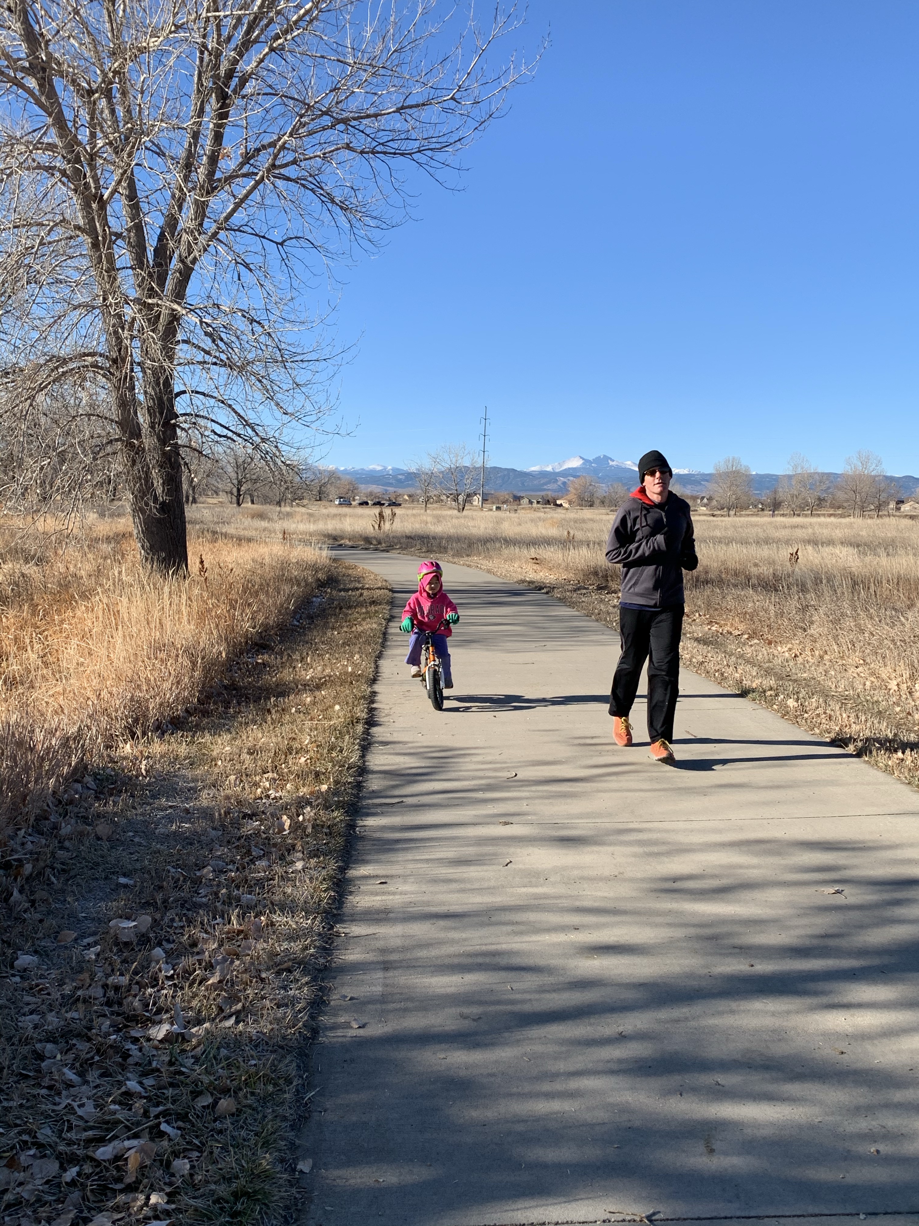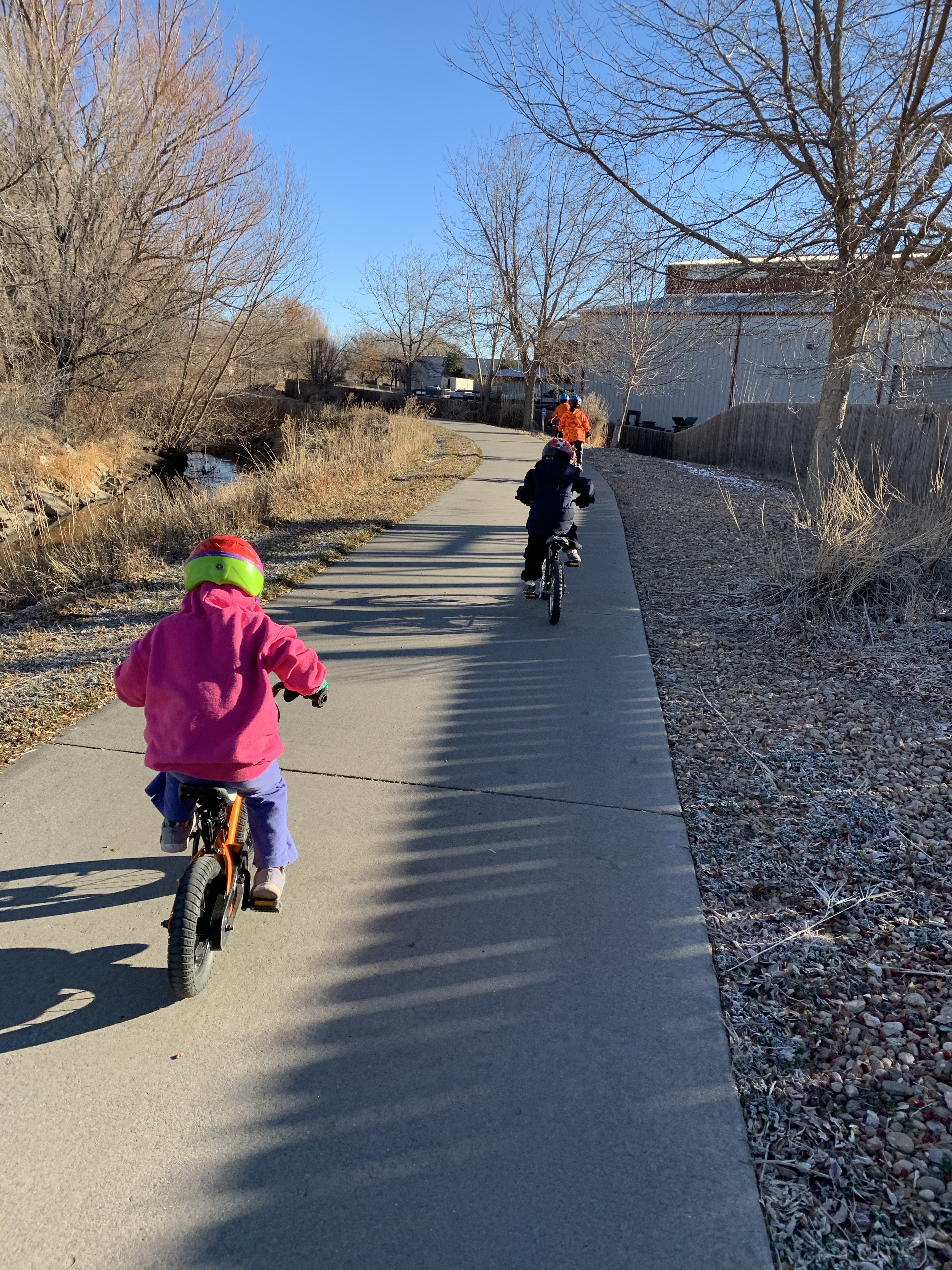 Leighton has been having gymnastics on Saturday morning (of course that all changed again last weekend with the change in the state’s covid status) and so the Saturday after Thanksgiving we decided to load everyone’s bike up. After we dropped Leighton off, we unloaded the bikes and headed to the bike trail near his gym and the kids rode bikes and Clint and I went for a run. There was a park along the way which we played at both ways and turned around when we got to Boyd Lake. It started off cool in the low 30s and slowly warmed up by the time we finished. The kids dressed warm and had a good time. In the end Clint and the kids did 6 miles and I ended up doing 7 because about 1/2 a mile from the park on our way back we realized Paxton had left his gloves by the merry-go-round so I headed back to get those picked up. It was a great morning and everyone had fun and something I think we’ll do more often.