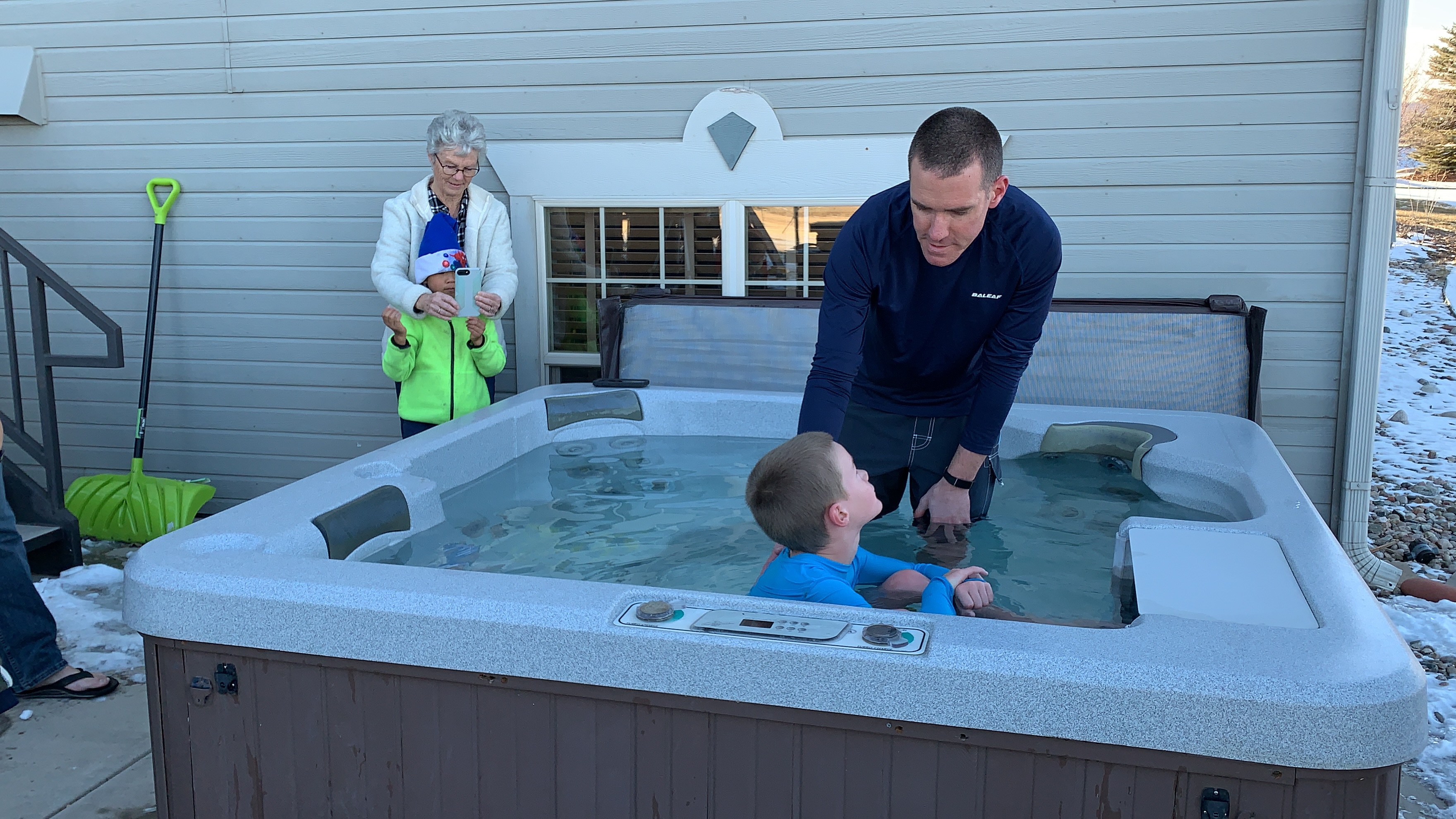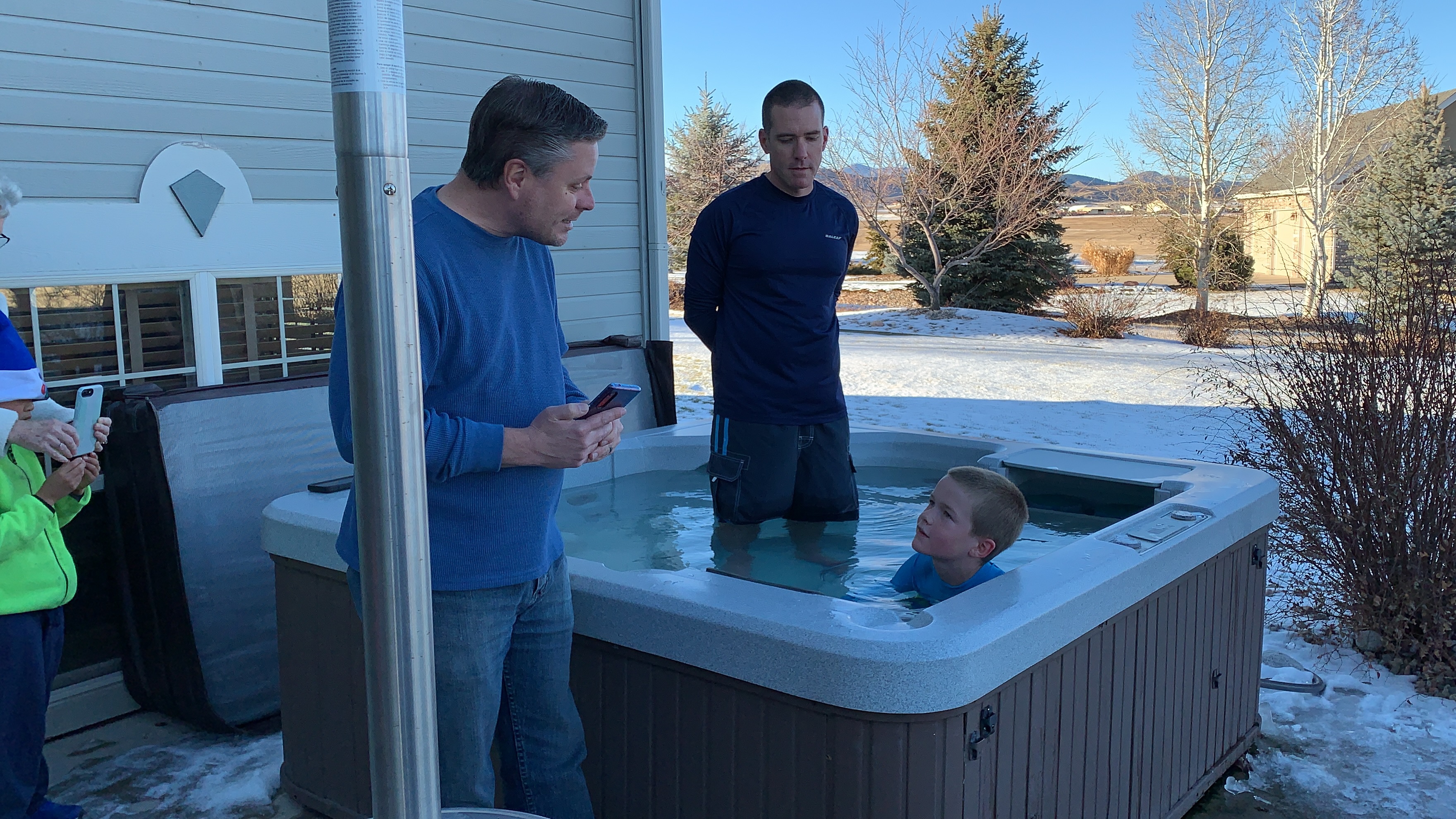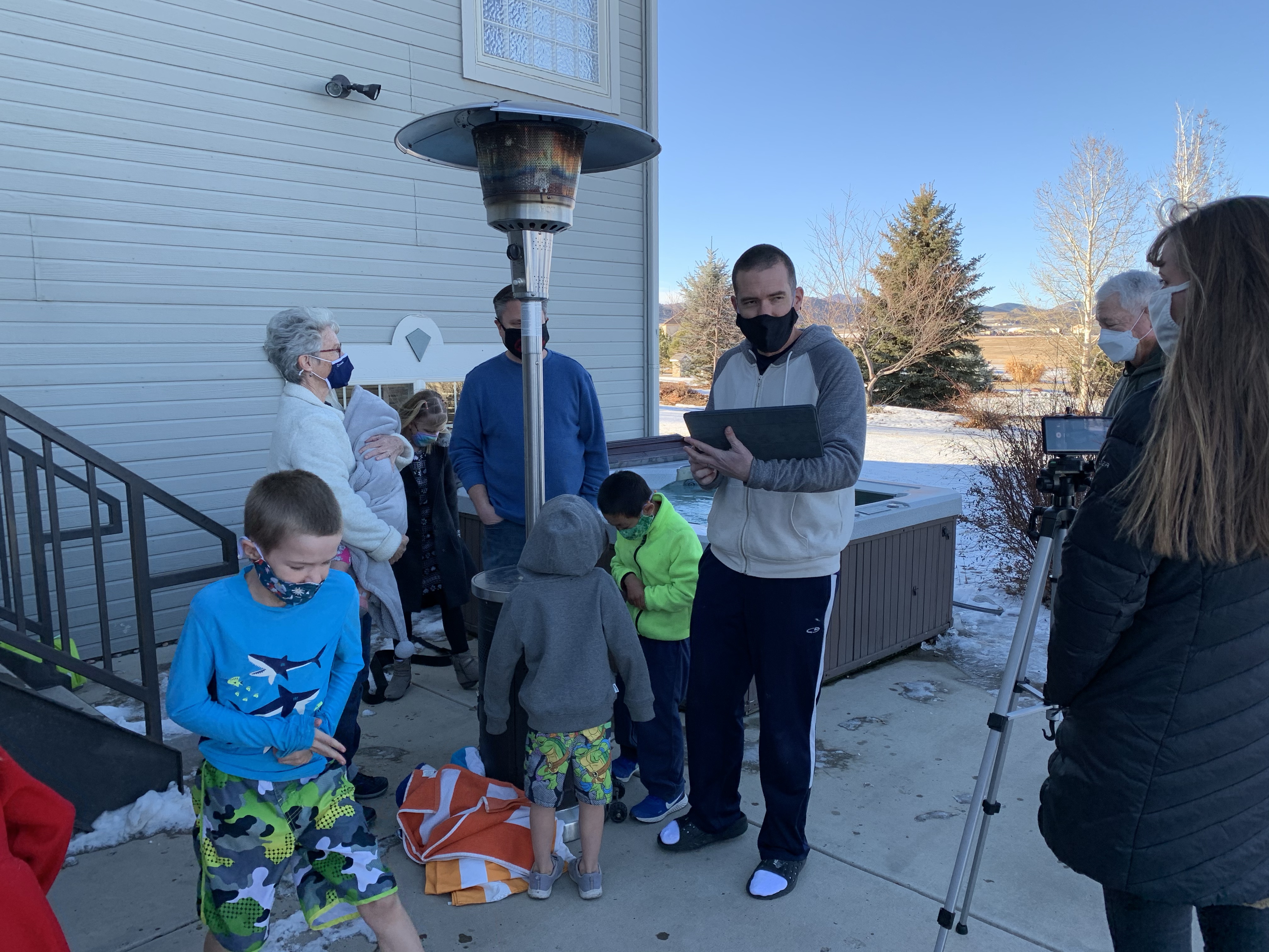 On Saturday December 19th we got to celebrate Caedmon’s baptism. And being 2020 we did it in true 2020 Covid style….outside in the hot tub with his friends using google meets to watch and cheer him on. Our good friends Jeff and Sarah and their daughters as well as my parents joined us outside in the cold and wind. Caedmon had made the decision a few months ago, it just took us a little while to figure out how to set it all up and figure it out with all things COVID and finally just decided that we’ll do it true COVID style. Caedmon was able to tell us the importance of his decision and what it means and that he wants to spend his life following after Jesus and loving others. I was really proud of him and it was an honor for Clint to baptize him. My mom made some yummy cupcakes to celebrate that the kid all enjoyed those after they swam in the hot tub for a bit. Jeff and Sarah got Caedmon a cross necklace which he has not stopped wearing since then. Clint and I got him a Bible that he can color verses throughout which he was really excited about. It was a really special day for a very big decision and we are so proud and excited for Caedmon.