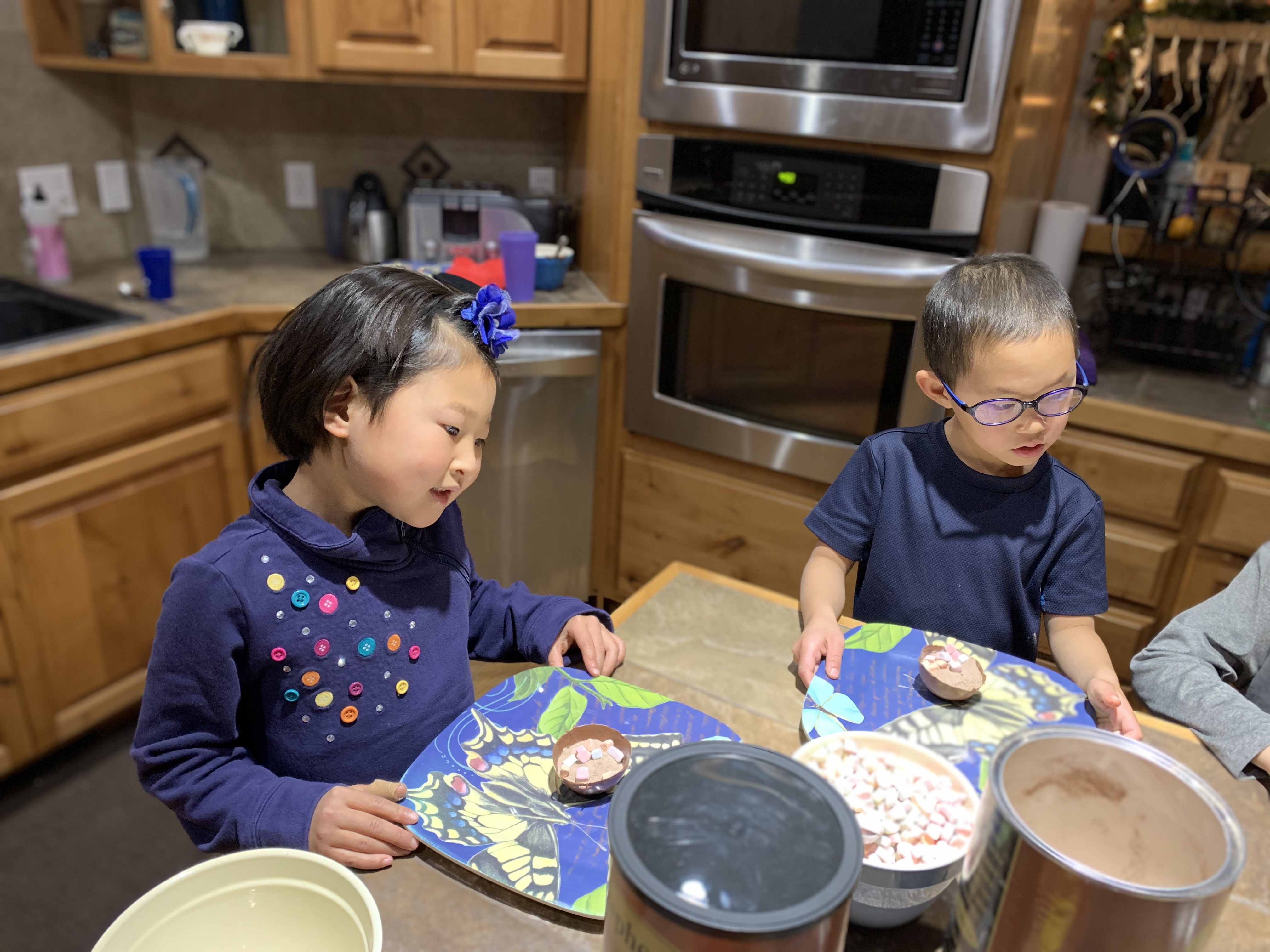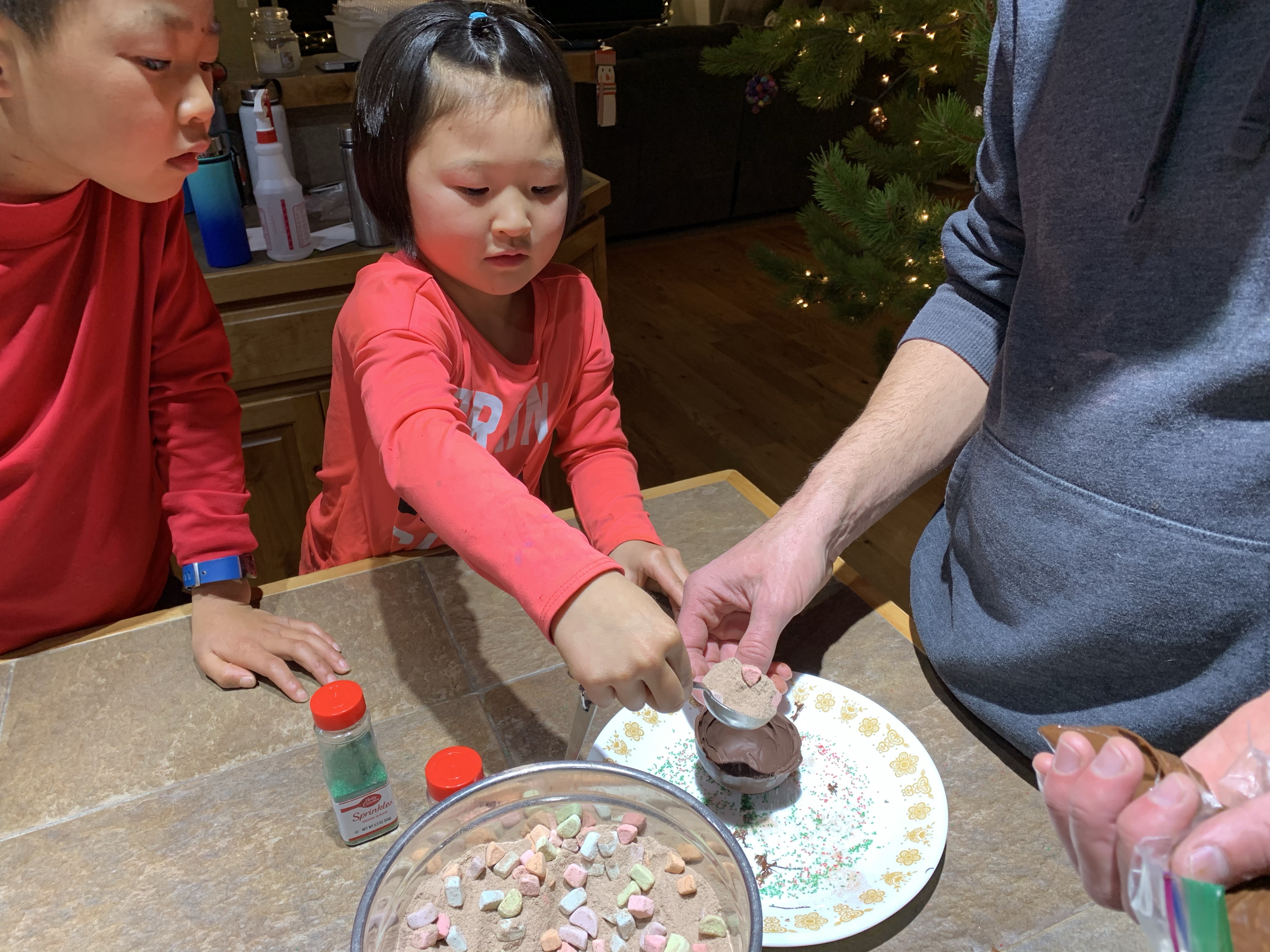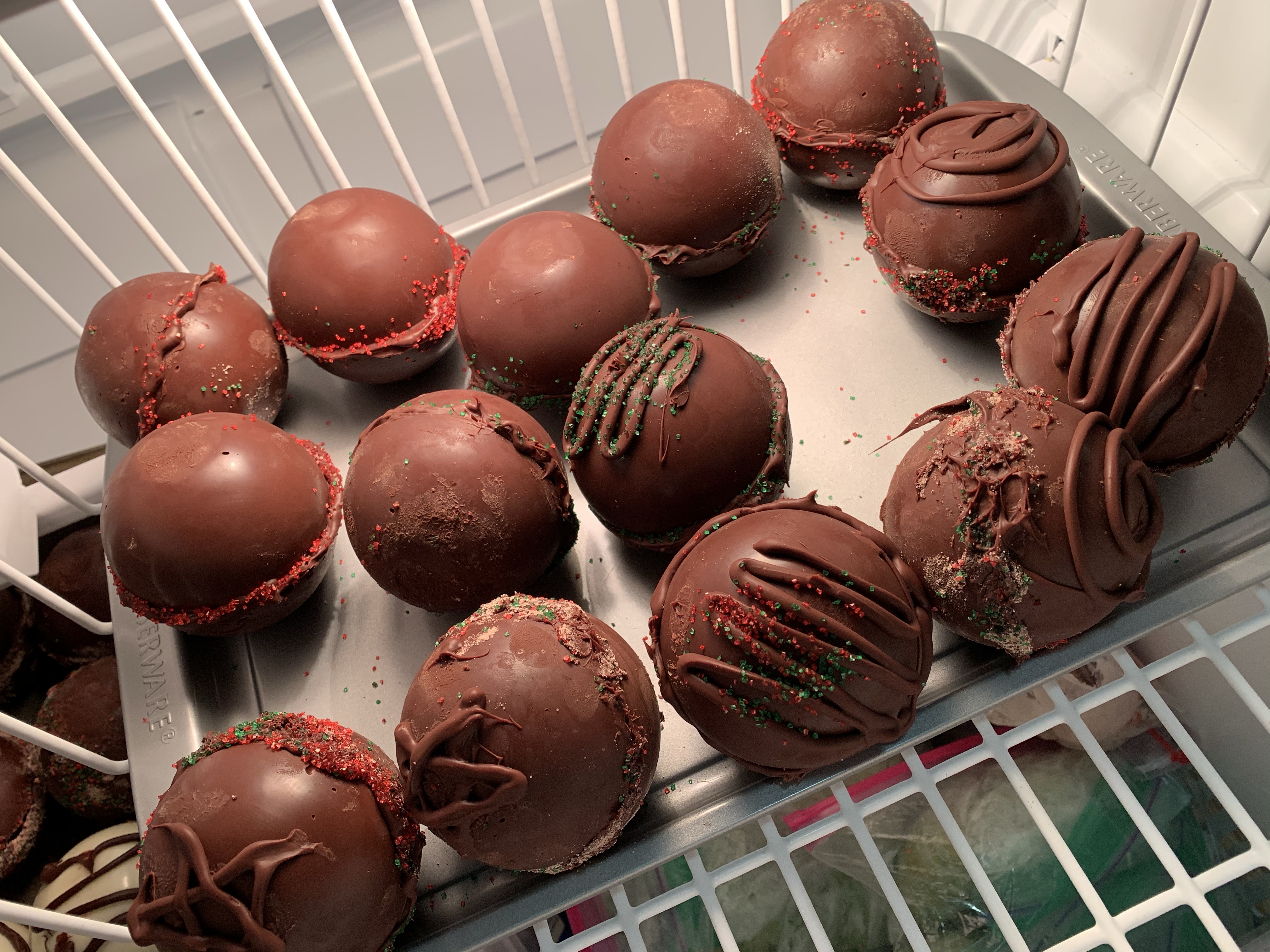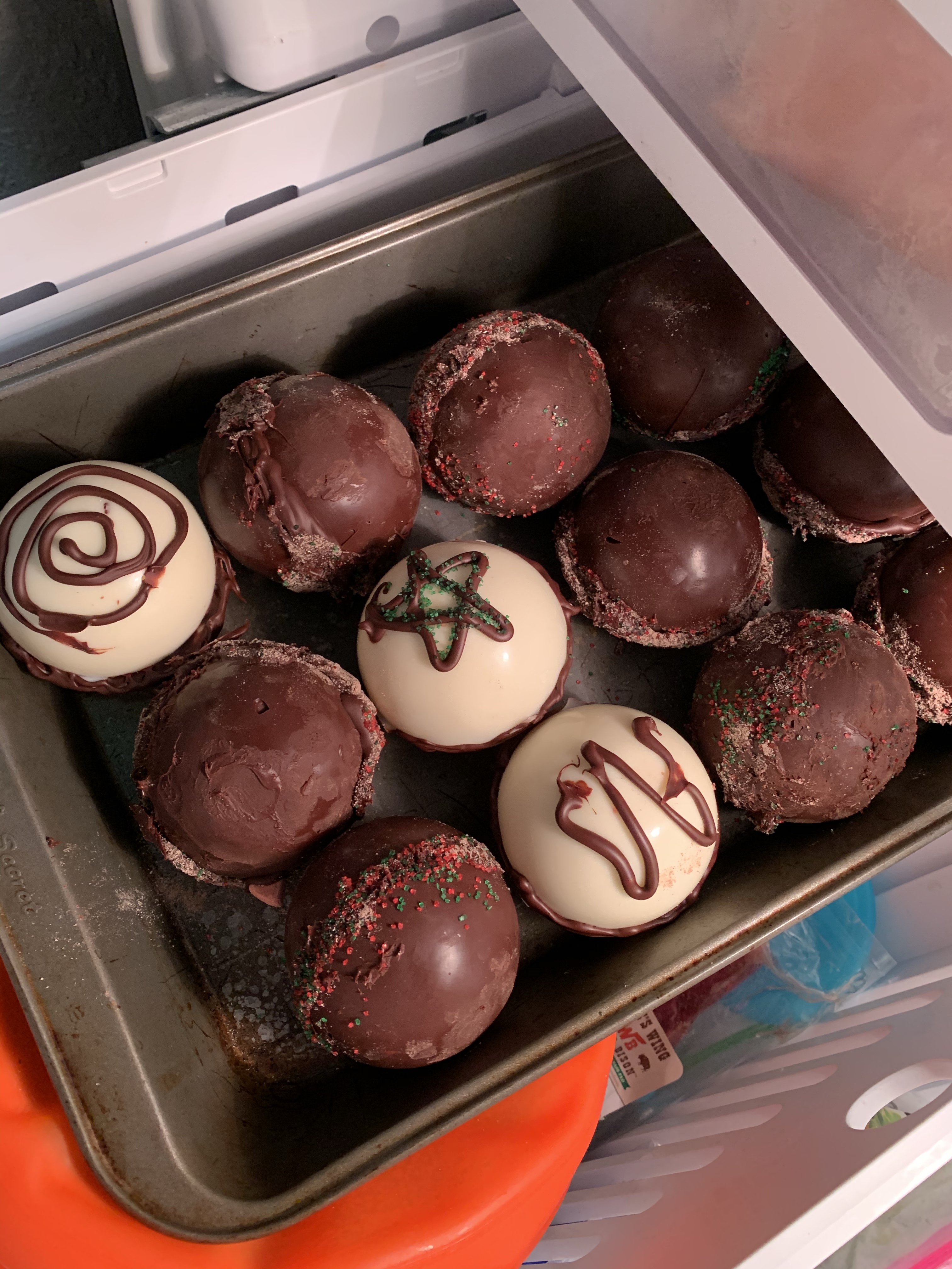 Sometimes best intentions don’t necessarily play out. I had heard about hot chocolate bombs from my Bible Study group and after looking them up decided we should try and make some. I thought we’d make a bunch and then mail them with our family Christmas gifts this year. It was good plan but because I know nothing about tempering chocolate if we had in fact been able to mail them they would have ended up gooey messes with melted chocolate and hot cocoa powder every where. The other issue that we had is that despite thinking that I had put dehydrated marshmallows in our amazon cart I had in fact not (I also did the same thing with Paxton’s Christmas present but luckily remembered that in time), so because everyone is making hot chocolate bombs when I did figure out that I didn’t have them ordered the only ones left were cereal marshmallows which I decided would work just fine (which they did). So we spent two evenings working together and by the end had a pretty good system down but because of my lack of chocolate tempering skills meant that we were running them back to the freezer in between each stage. They are definitely not the prettiest around but we had a lot of fun making them and hopefully for the friends and family that we can hand deliver them too they end of tasting good. It was a lot of fun and a fun way to spend the evenings.