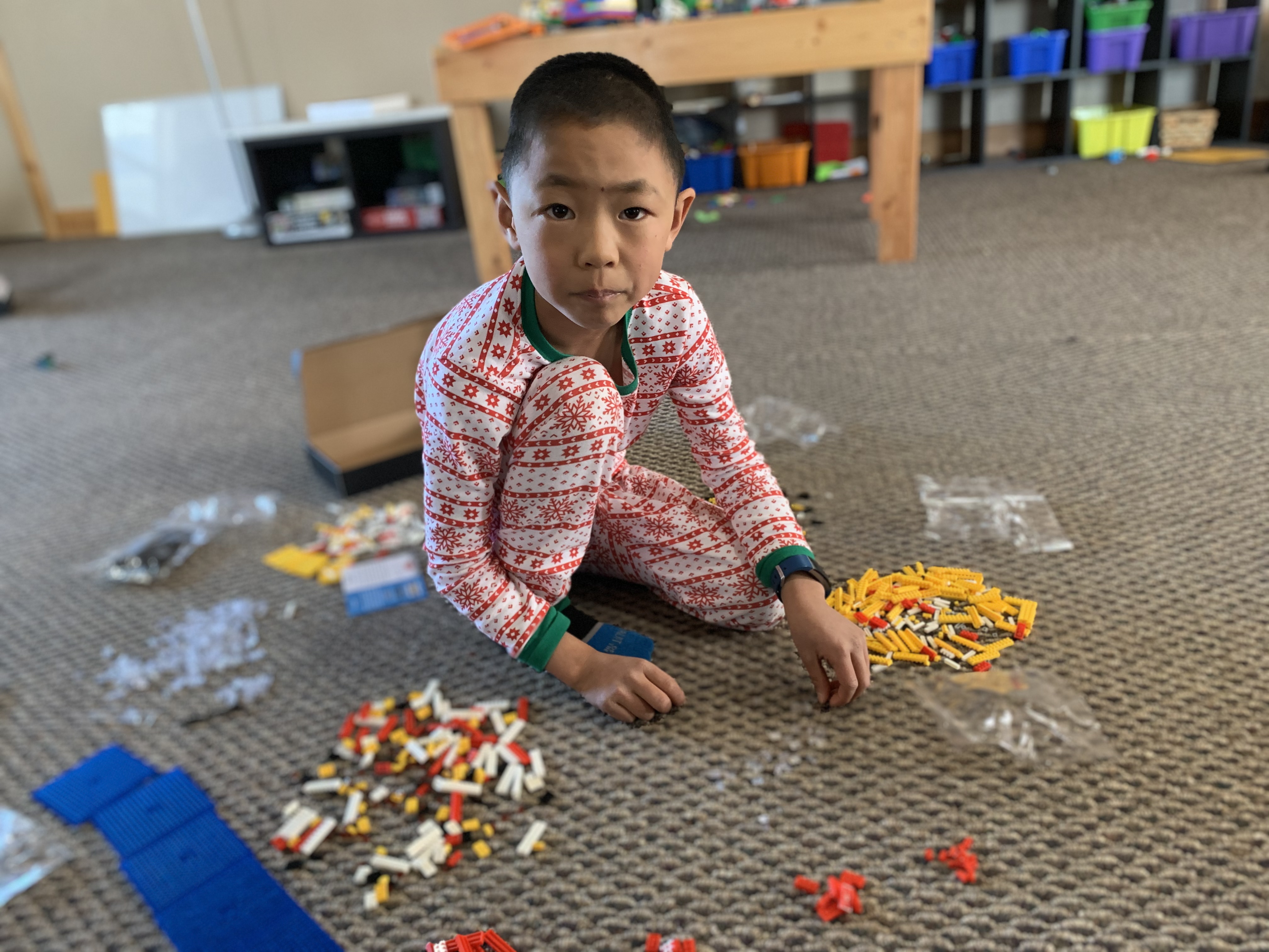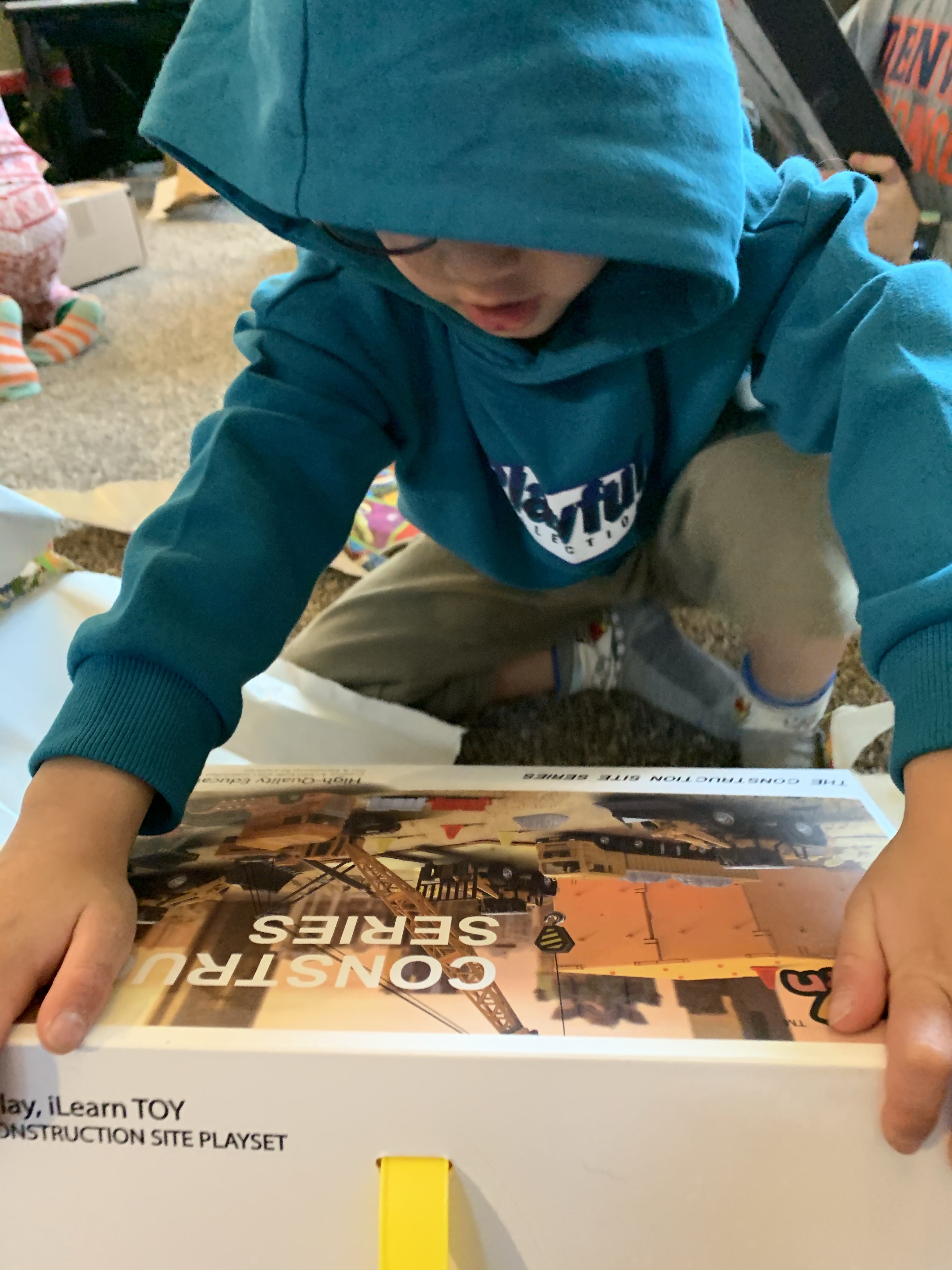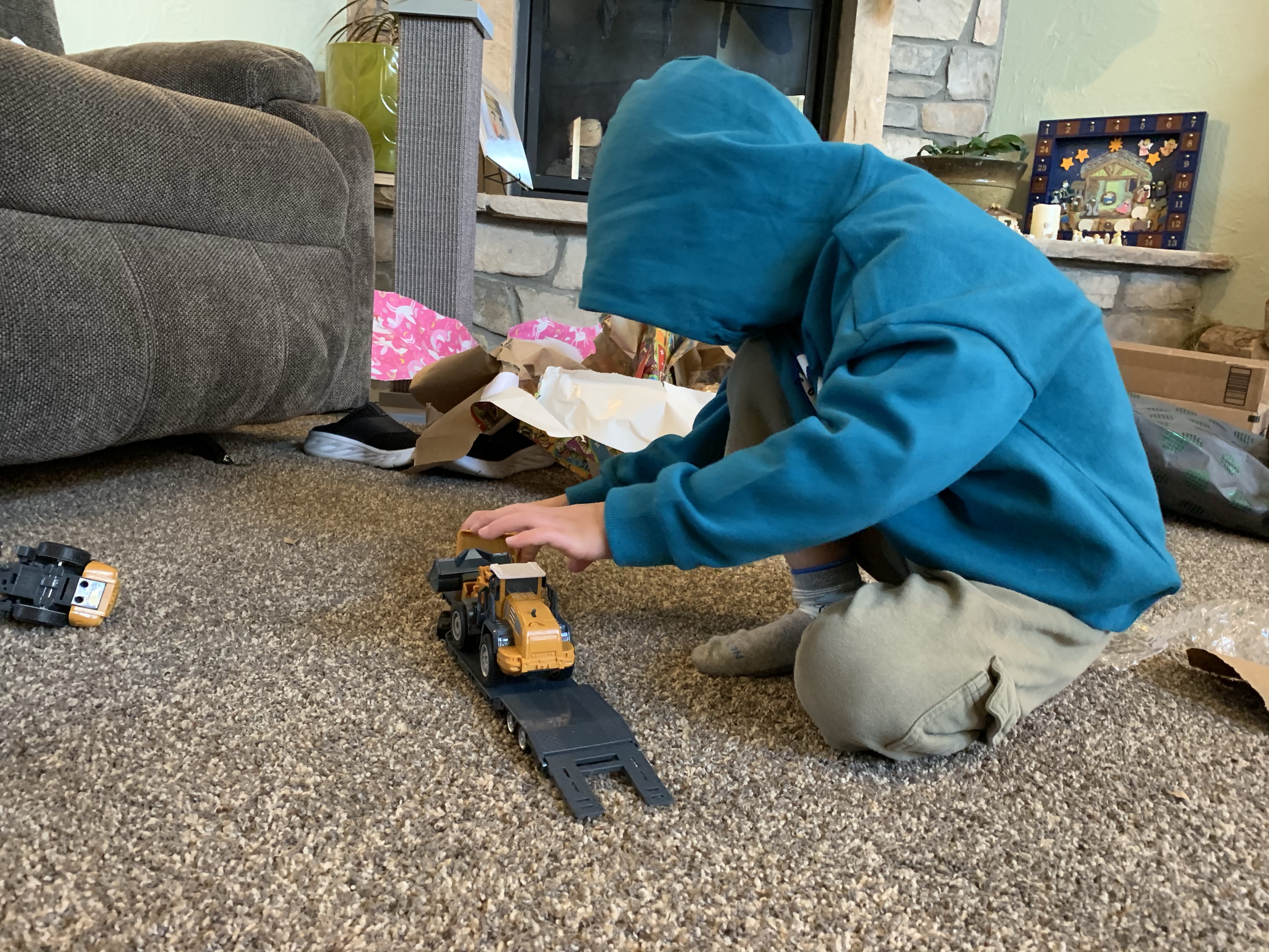 On Christmas Eve this year we facetimed with Clint’s parents mid morning and the kids opened their gifts from Mimi and Papa. They had a great time, and unfortunately the gifts we sent them did not arrive in the mail by the time we did the facetime. Edric and Caedmon were really excited to get Titanic models to build, Coppelia got a yoga mat with a unicorn on it, Paxton got some construction trucks and Leighton got some shirts for gymnastics practice. They also opened the gift from Clint’s aunt which was a fun outdoor frisbee game. It was a beautiful day and so the kids all spread out to play with their toys and play outside. I worked Christmas Eve in the evening so I missed church, but Clint and the kids watched it from home. At work the local fire department brought in a huge banner signed by 58 different fire fighters from 3 area agencies which was really cool. We had a great day getting ready for Christmas!