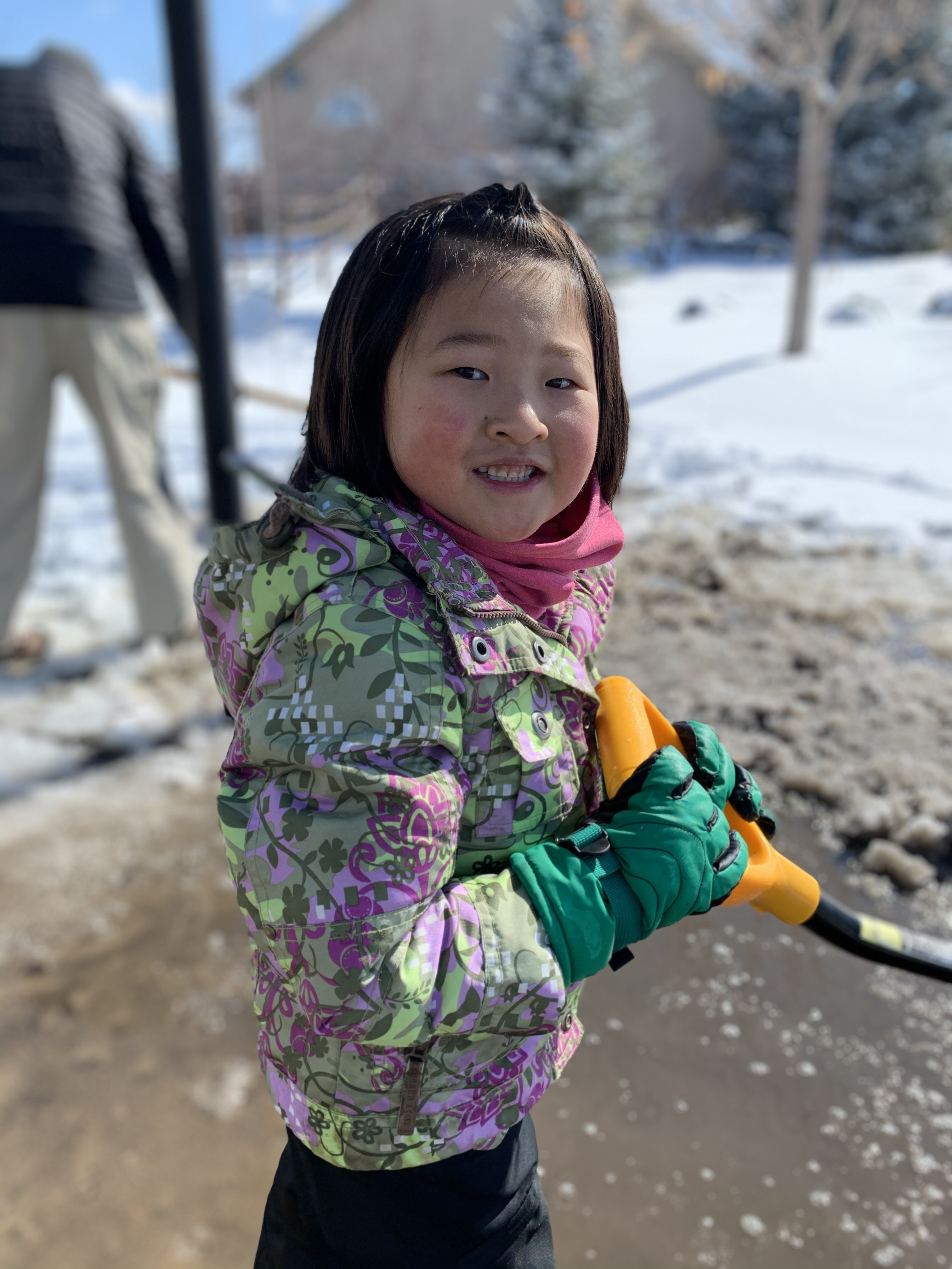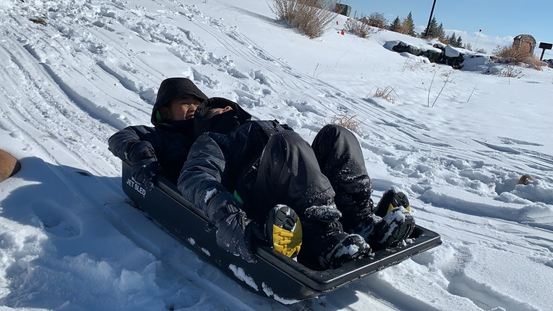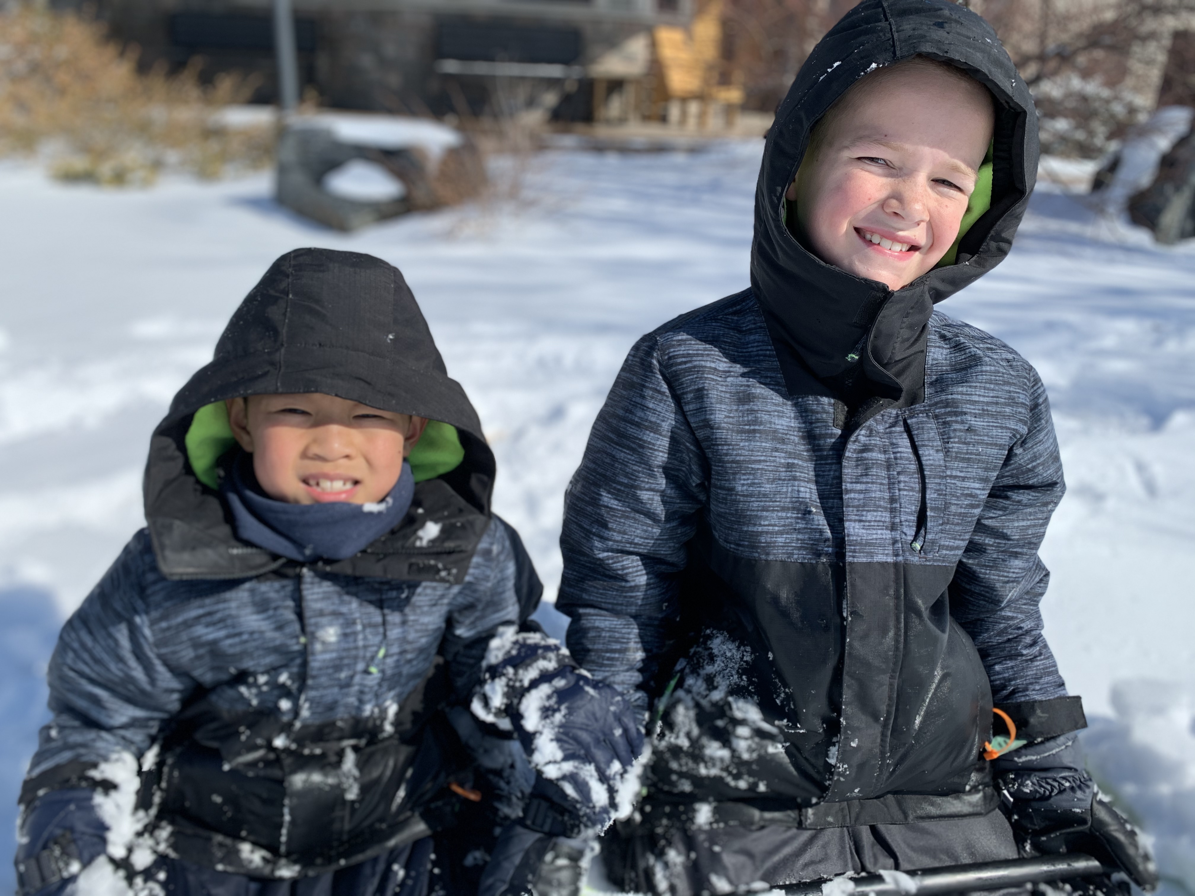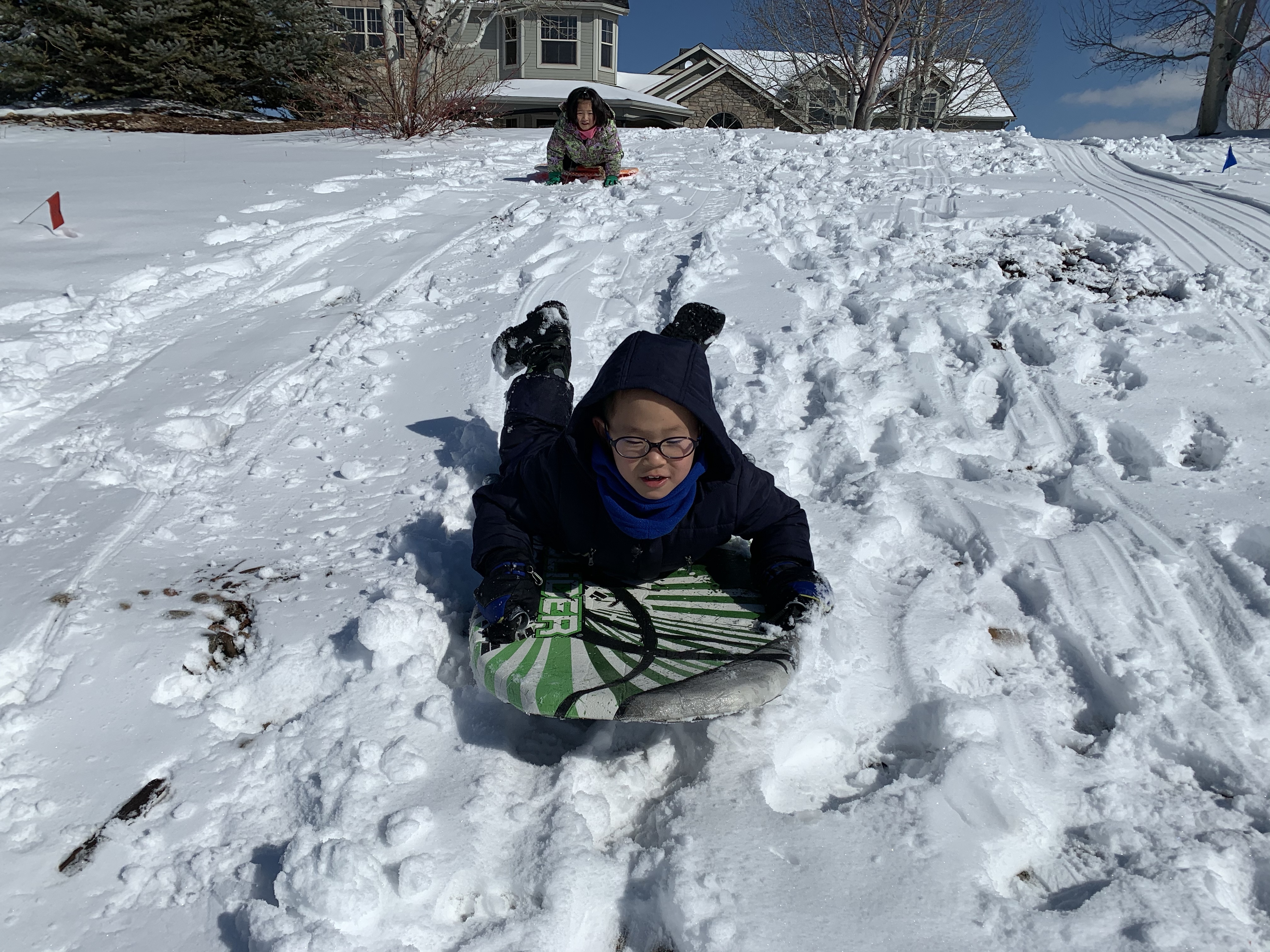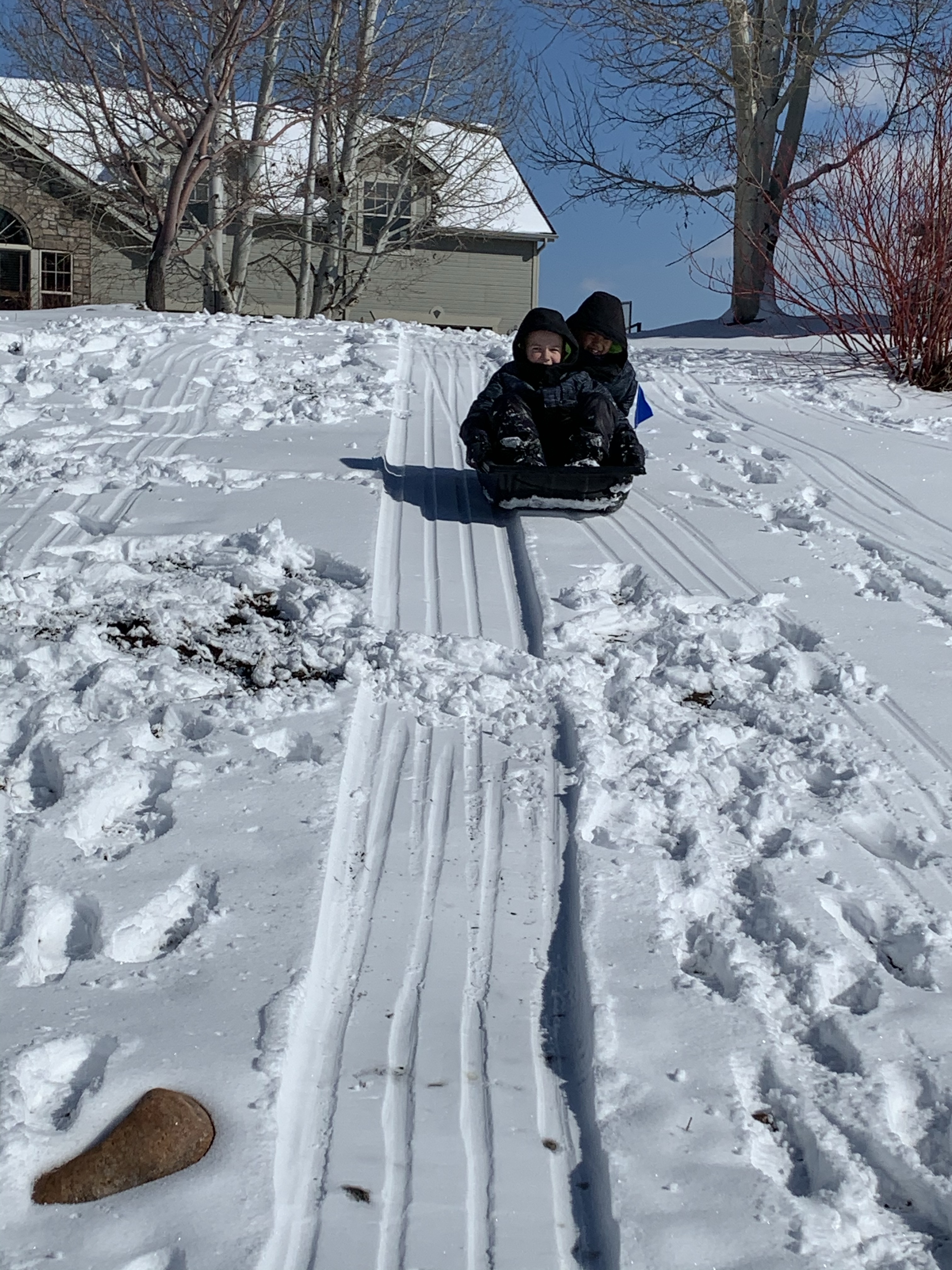 Last Thursday we got some good snow. Not nearly as much as they did down in Denver and south of there but we still made the most of the blue sky, the sunshine and then snow and had a blast getting outside and having fun. I think we all needed a fun afternoon outside in the snow.