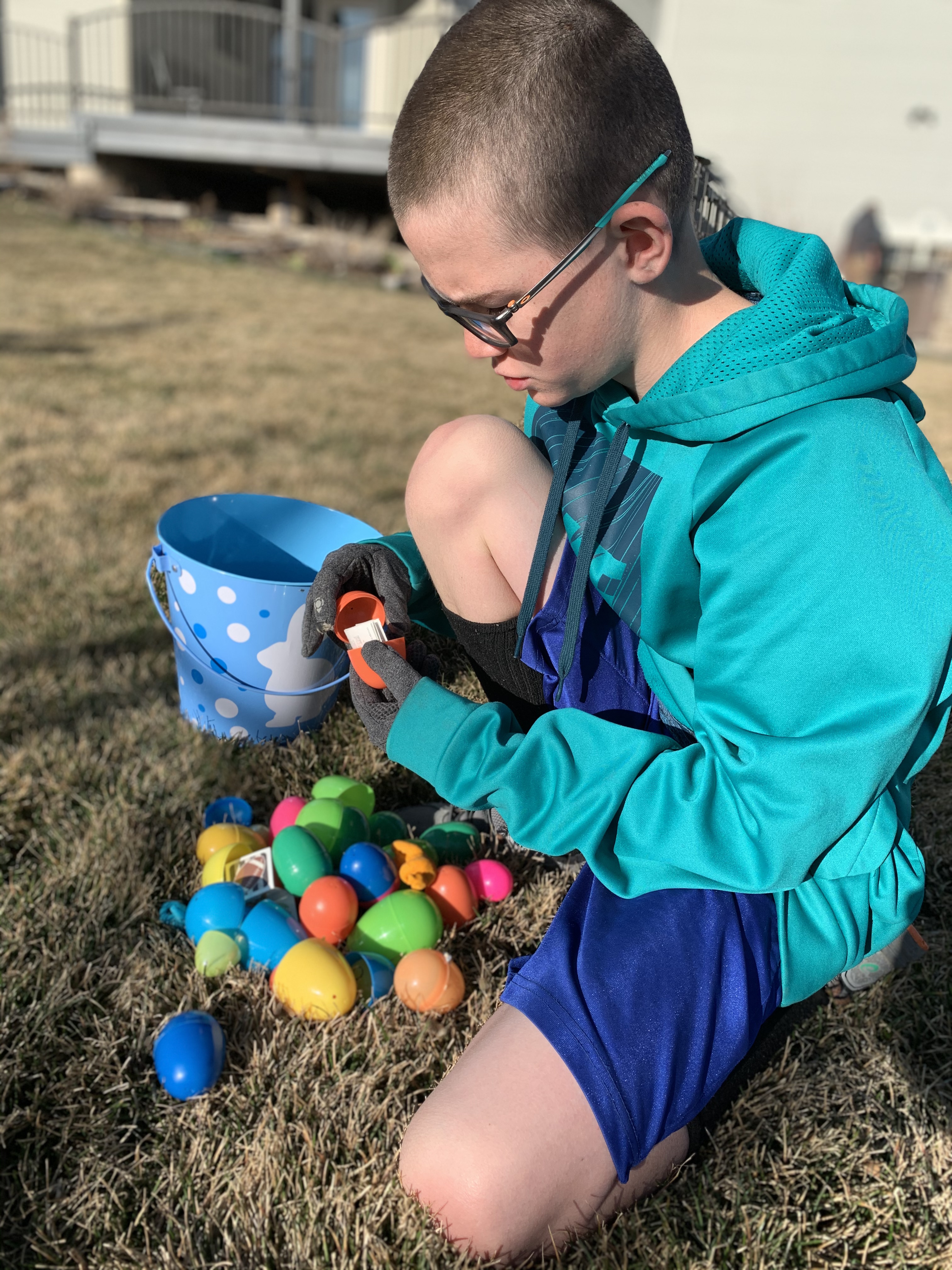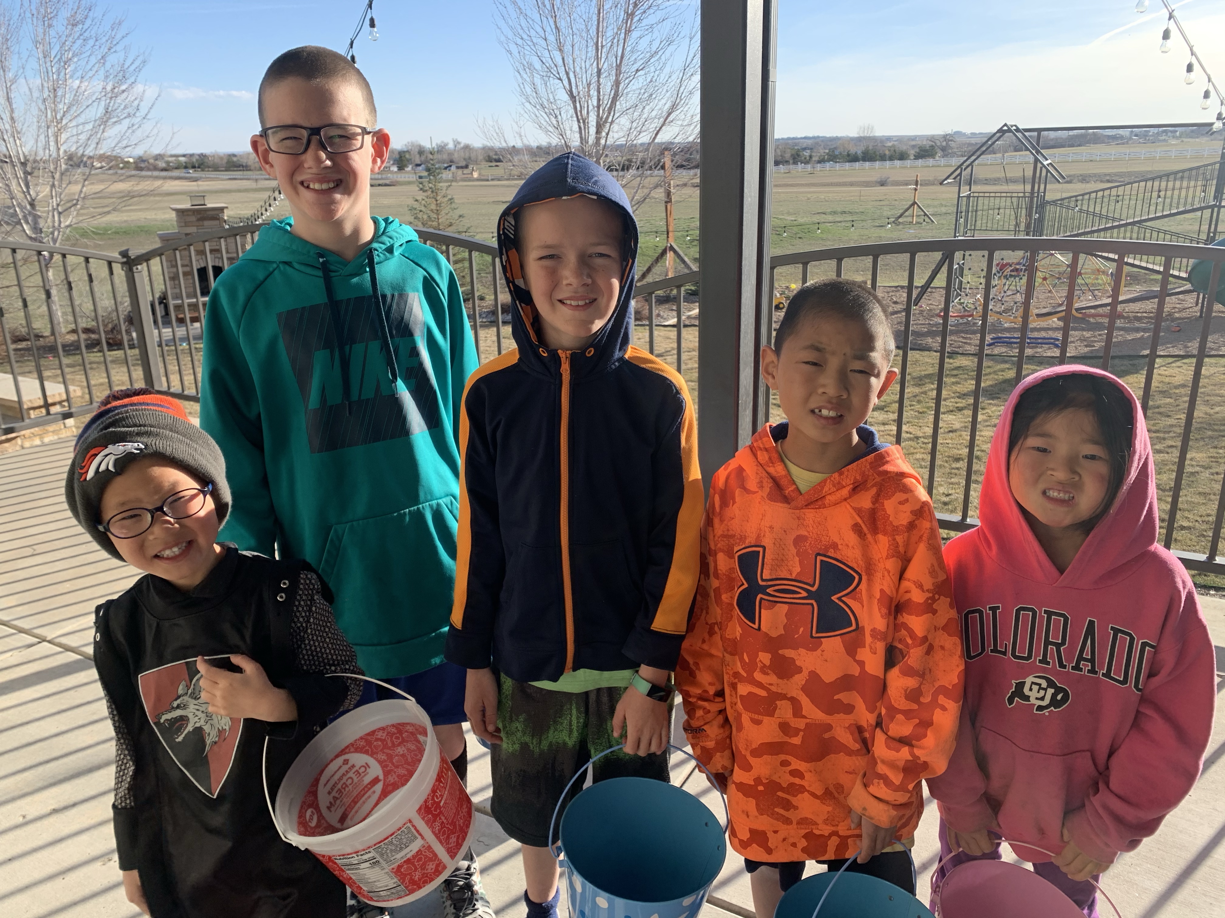 Easter 2021 was a great day. As soon as I got home from my 24 hour shift the kids got ready for the Easter Egg Hunt that Clint had hid the eggs for. We set them off and it was fun to see them all run around and find things. Nothing crazy in the eggs; just stickers, temporary tattoos, erasers and bouncy balls. They had fun though and I think Clint hid over 140 eggs. We then got all dressed up to head to my parents house which was fun and everyone looked great. At my parents house we played 4-square, and the kids went on another Easter Egg hunt. My brother and sister in law and daughter arrived a while later and we had a great lunch of steak and shrimp. The day was gorgeous and warm. We loaded up a little after 2 to head to our church to help set up for service, our church meets at night. The kids were all great helpers moving tables and chairs and doing whatever needed to be done. Paxton got to play the big drum set for a few minutes and he LOVED that. Church was great and our little friend Olivia decided to get baptized and so we got to watch and celebrate with her. Everyone came home very tired but so thankful for a gorgeous day and a chance to celebrate the forgiveness that we have!