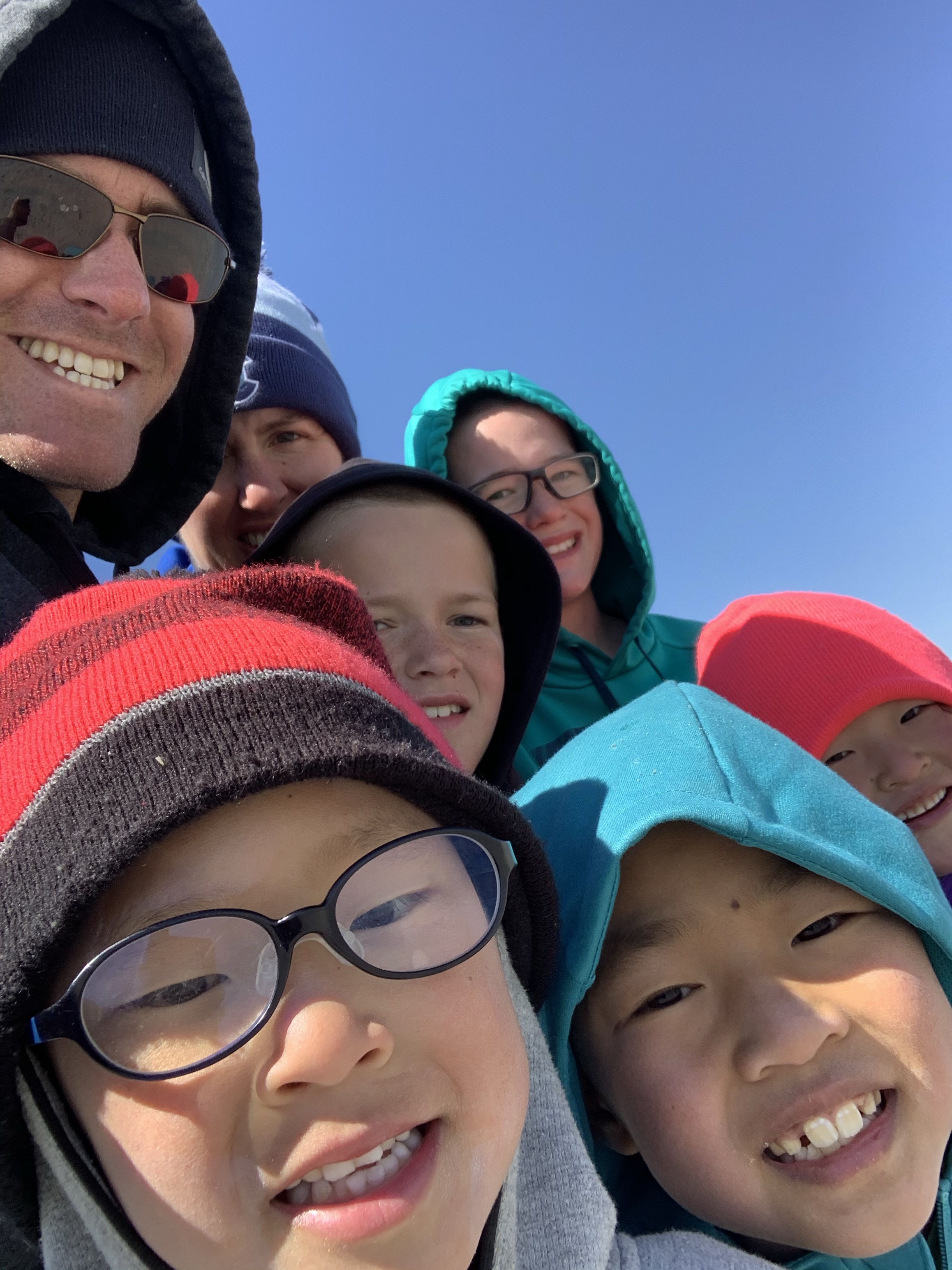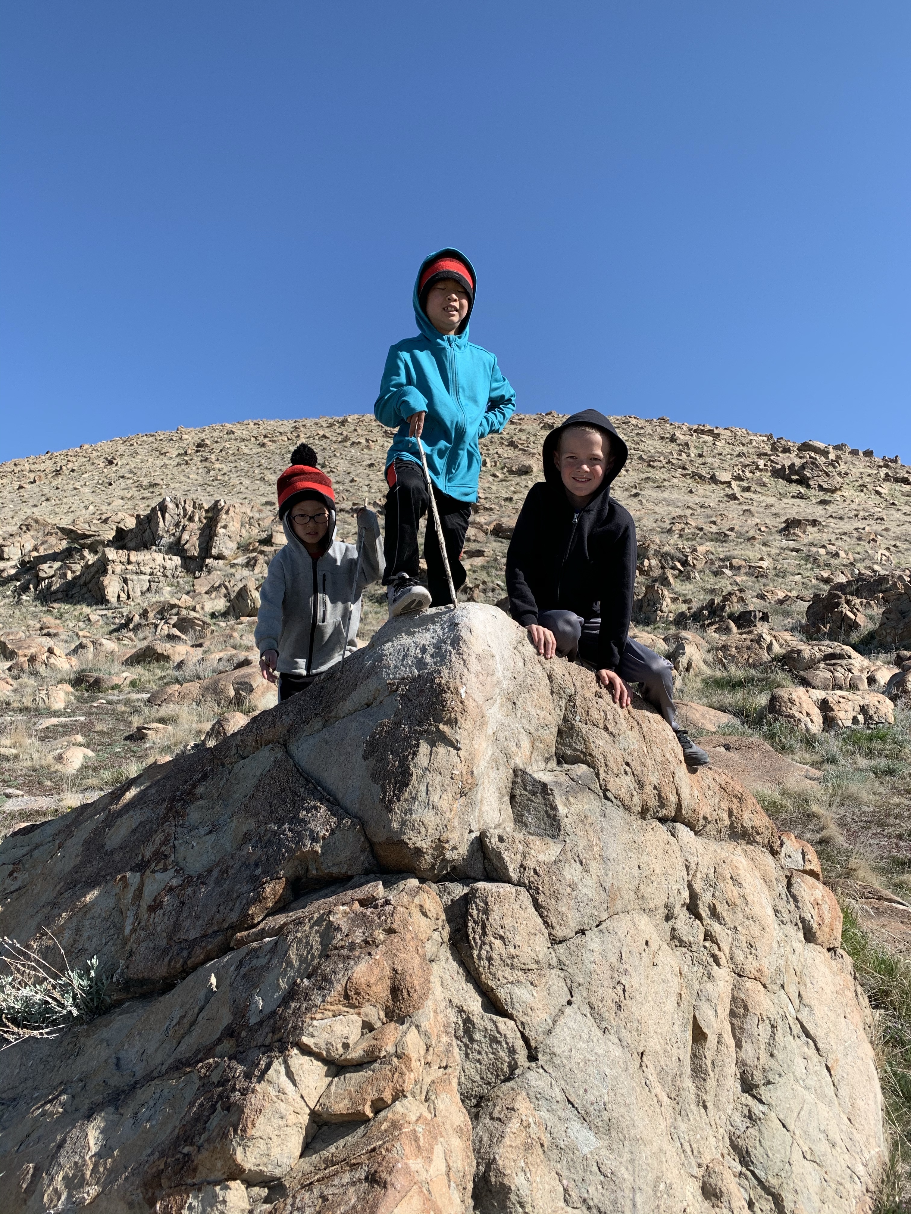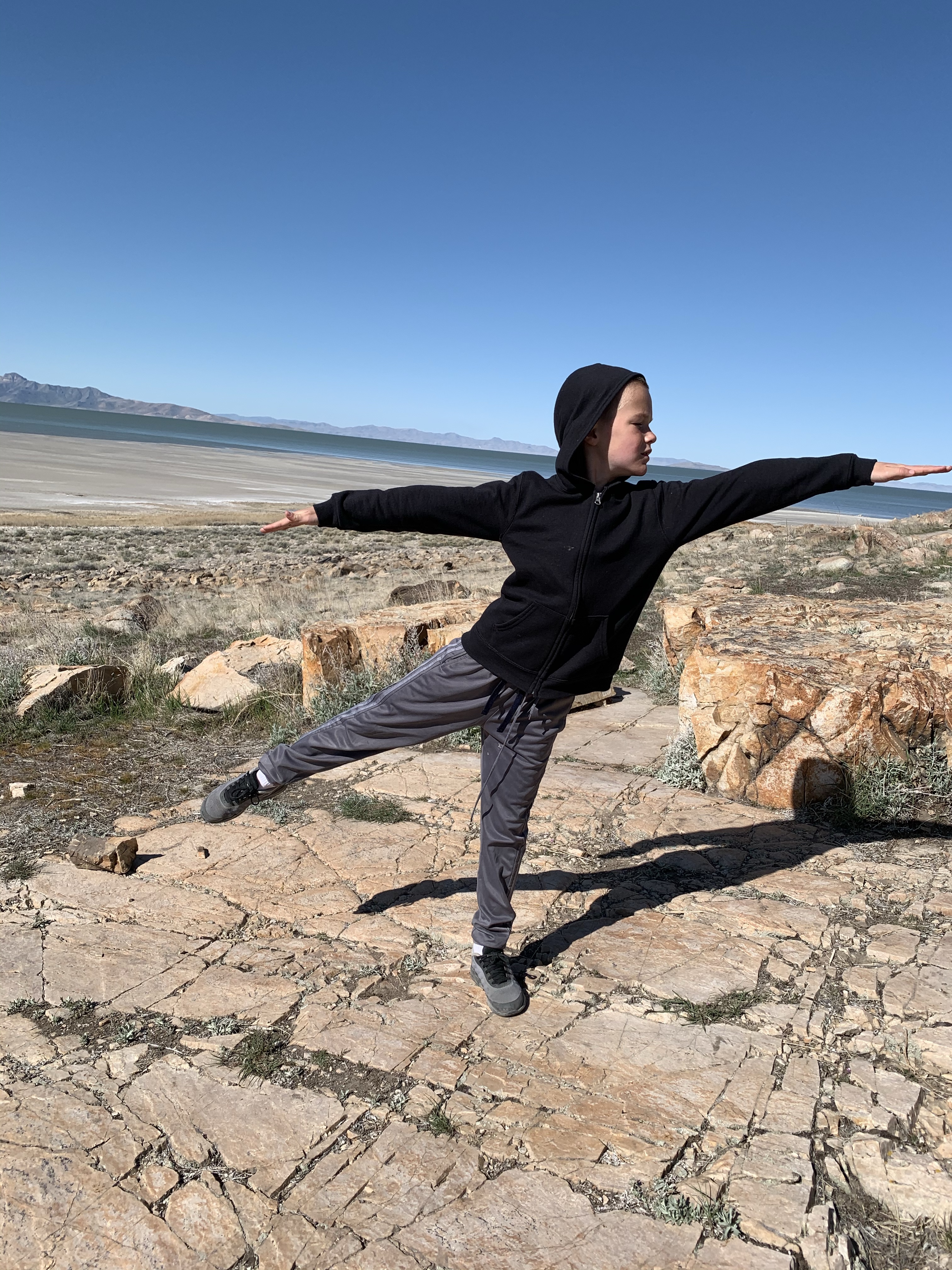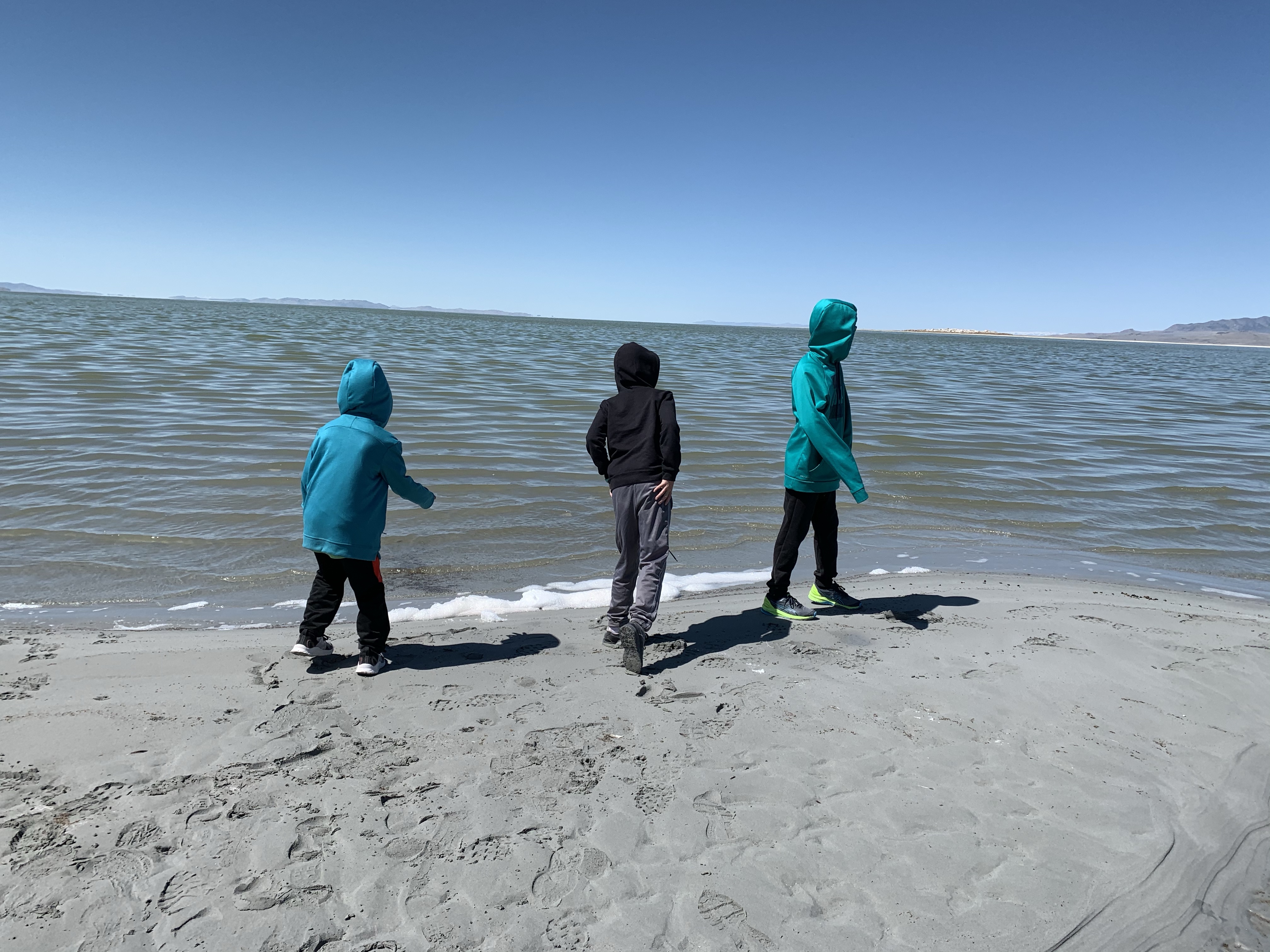 Last Friday we drove up to Antelope Island Park near Salt Lake and spend the day exploring the area and hiking. It sits on the Great Salt Lake which Leighton was super excited about because he had just been reading about the Salt Lake in his geography class. We did a 5 mile hike around part of the island which was just gorgeous. We pretty much had the trail to ourselves which allowed the kids to run and play and climb. Coppelia alternated between being a butterfly and yelling “flap flap flap” (for her wings) and using a stick as her trunk for being an elephant. We saw a lizard while we were on the hike and as we got close back to the car there was a heard of bison roaming around. We were able to avoid them, although Clint and Coppelia who were about 50 yards behind the boys and myself had to take a slight detour as one of the bison decided he’d like to walk on the path blocking them. After our hike we headed to the beach area and ate lunch and then went out to splash and play on the edge of the lake. The boys were pretty sure because the lake was huge that it might actually be a sea or an ocean but I told them it was just a lake. It wasn’t all that warm but we had a great time just having a hiking day as a family.