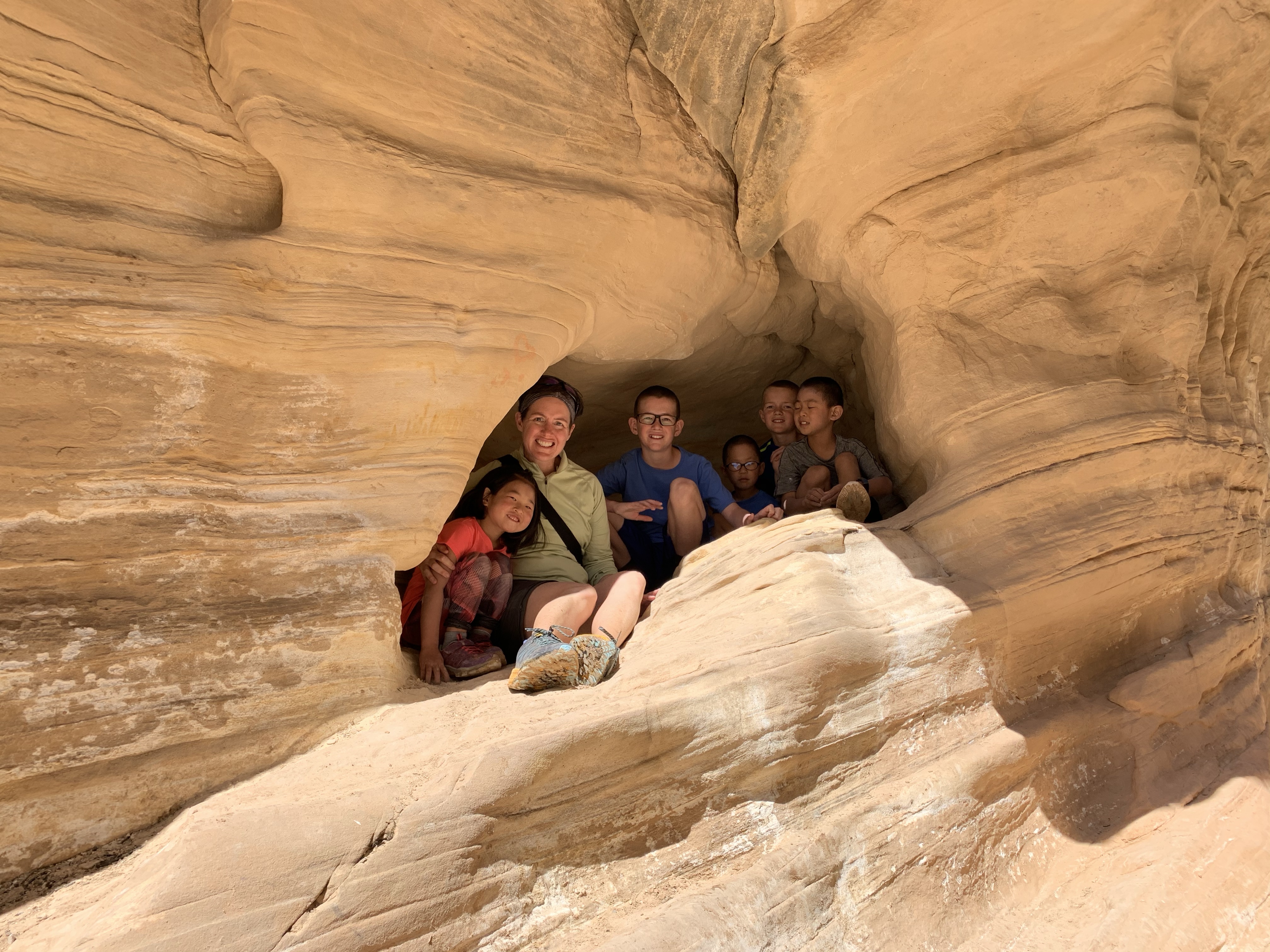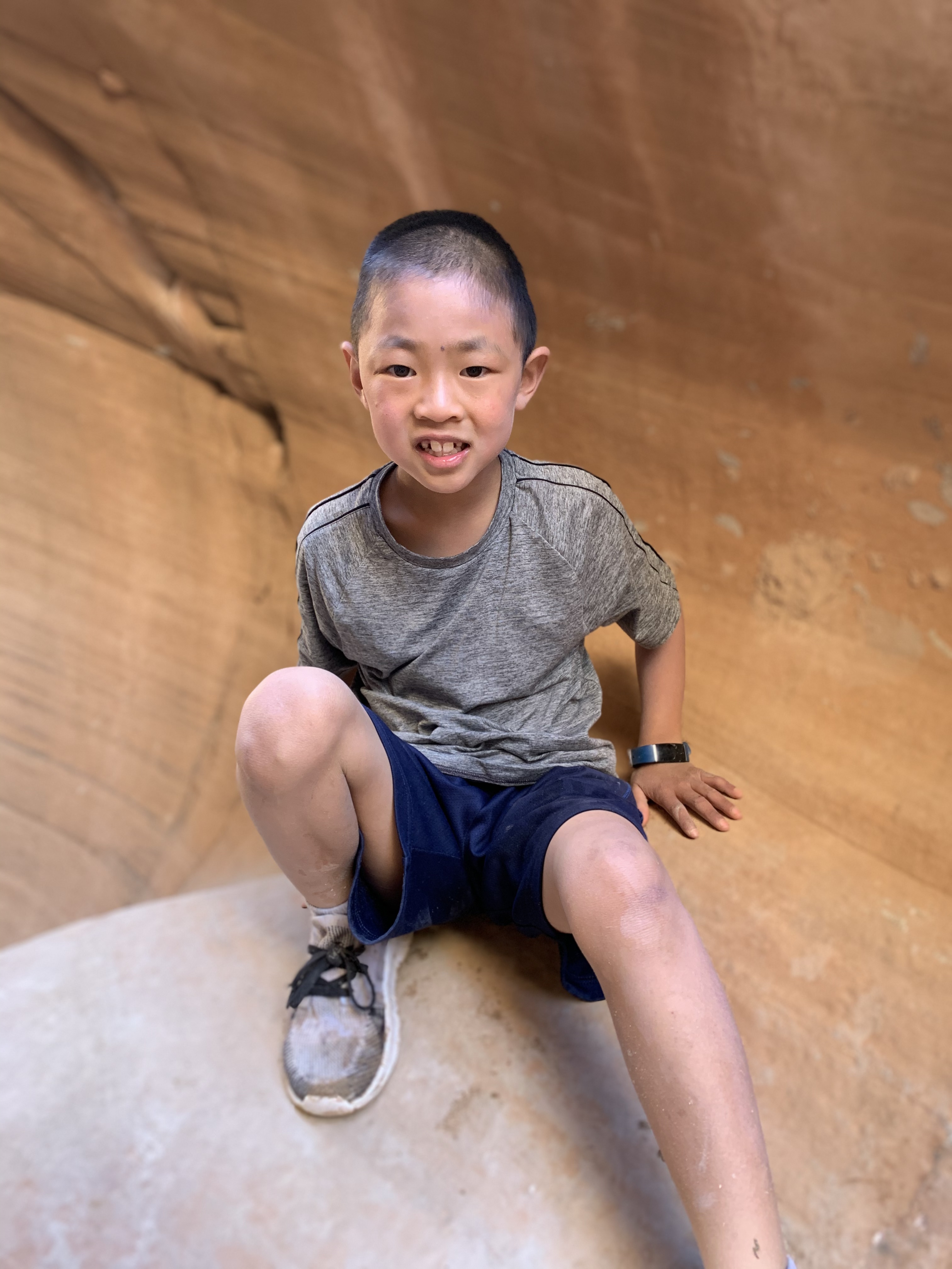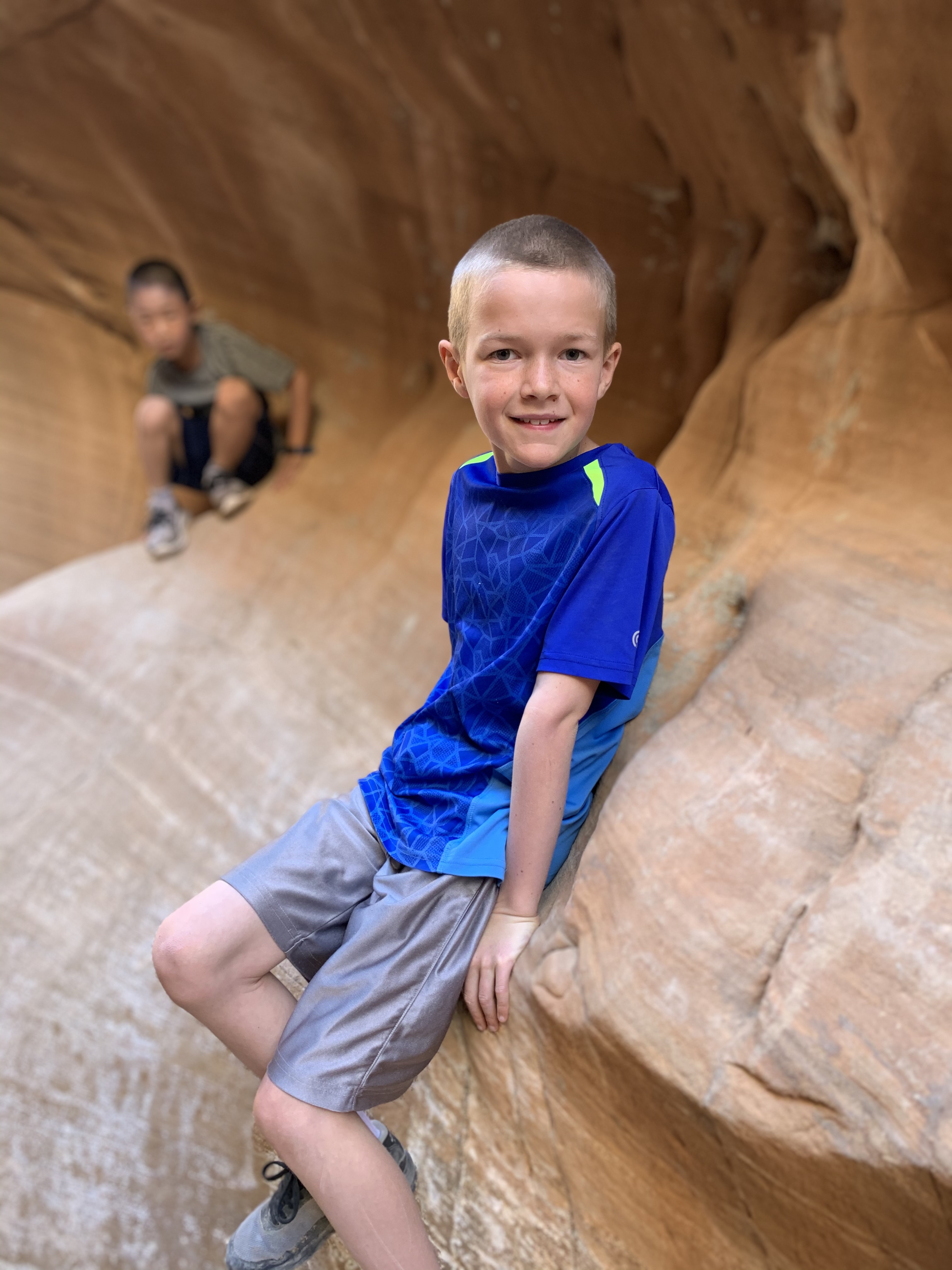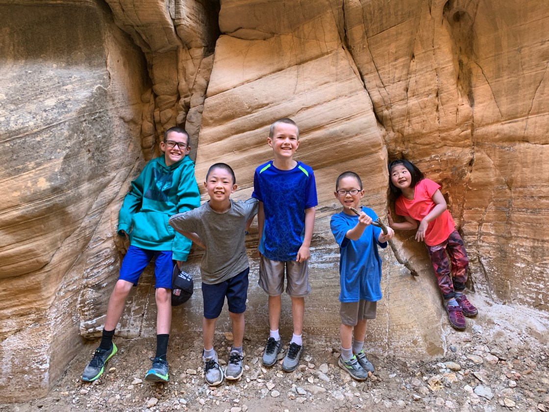 On Sunday we drove into Grand Staircase-Escalante National Monument and explored the Willis Creek Slot Canyon. It was an amazing hike, we dropped into the slot canyon right at the beginning and followed it down nearly 2 1/2 miles. The walls kept getting higher and higher there were all sorts of nooks and crannies for the kids to climb into and explore. There was a little stream running through the slot canyon that we just jumped back and forth over. The weather was perfect and we had an amazing time hiking it. When we got back to the start we ate our lunches that were packed in the car. It won’t be a hike we forget anytime soon.