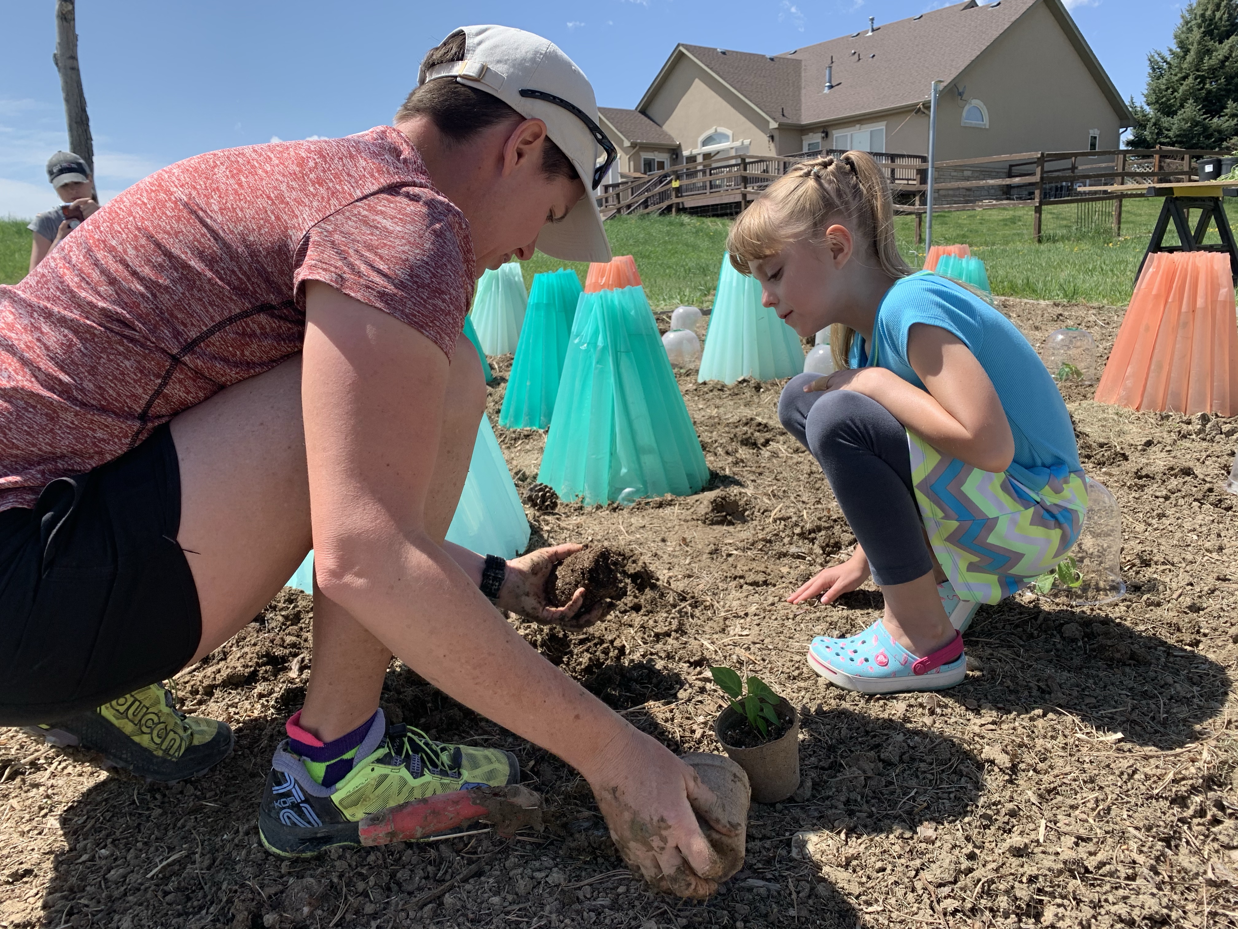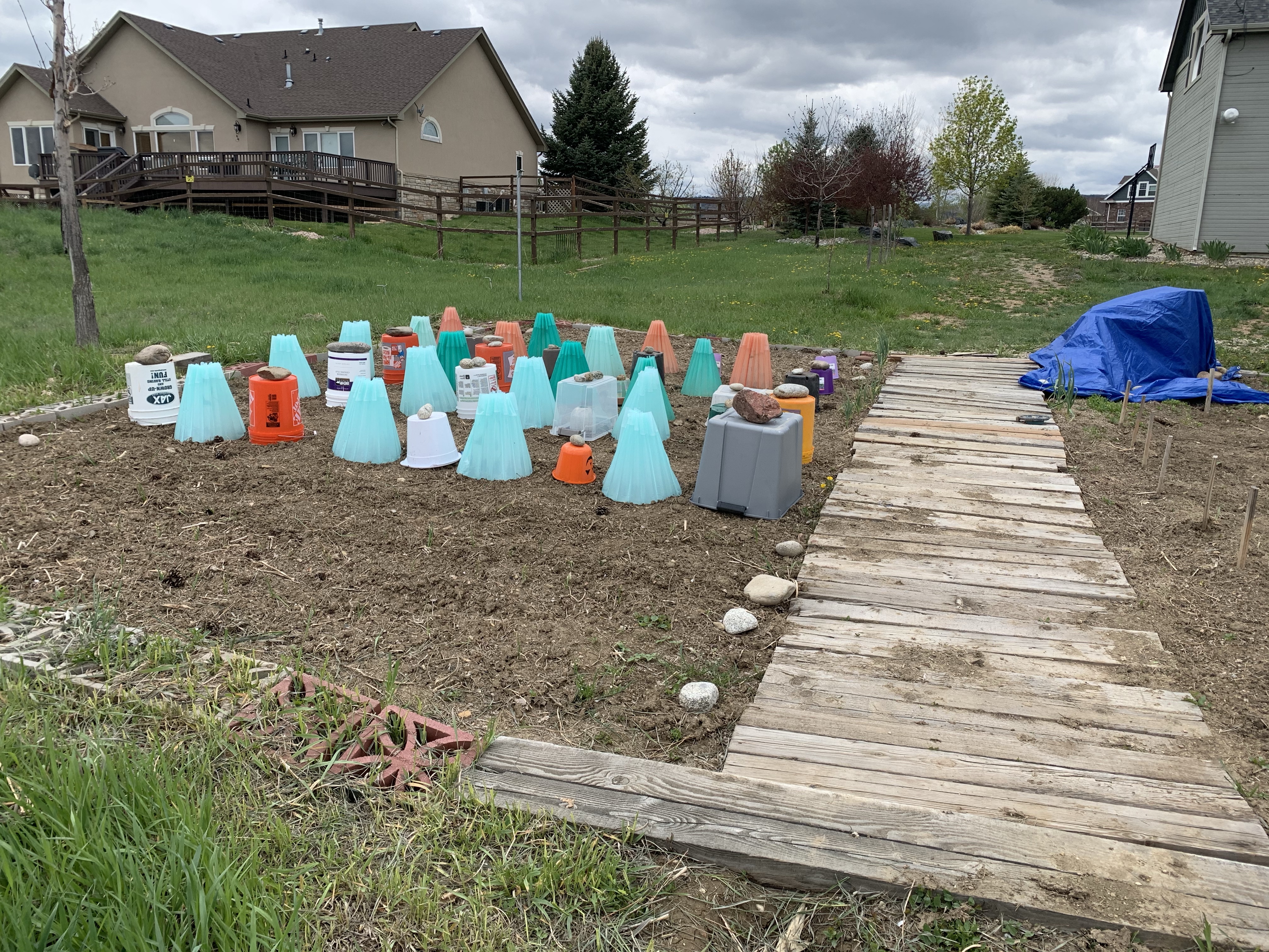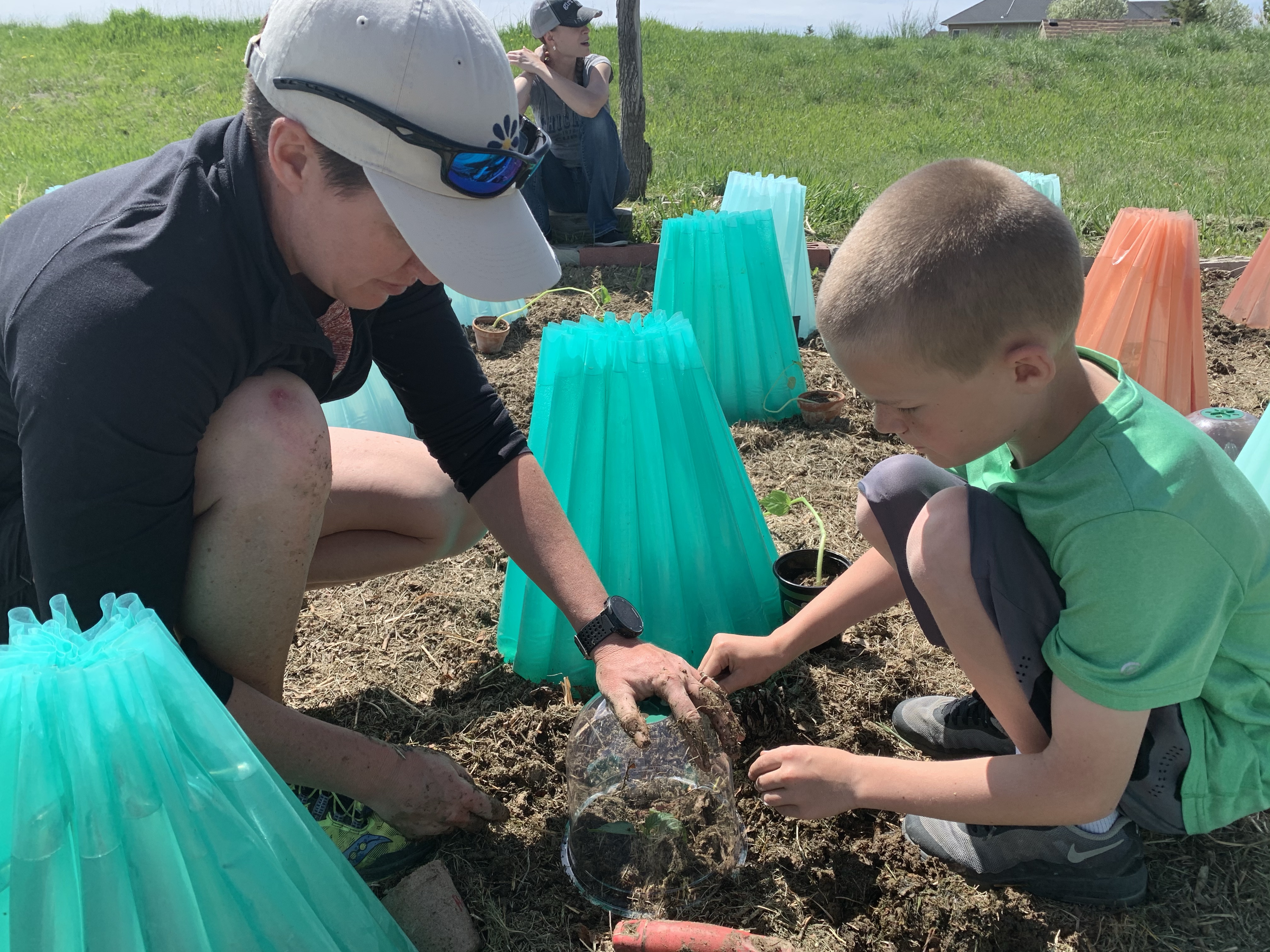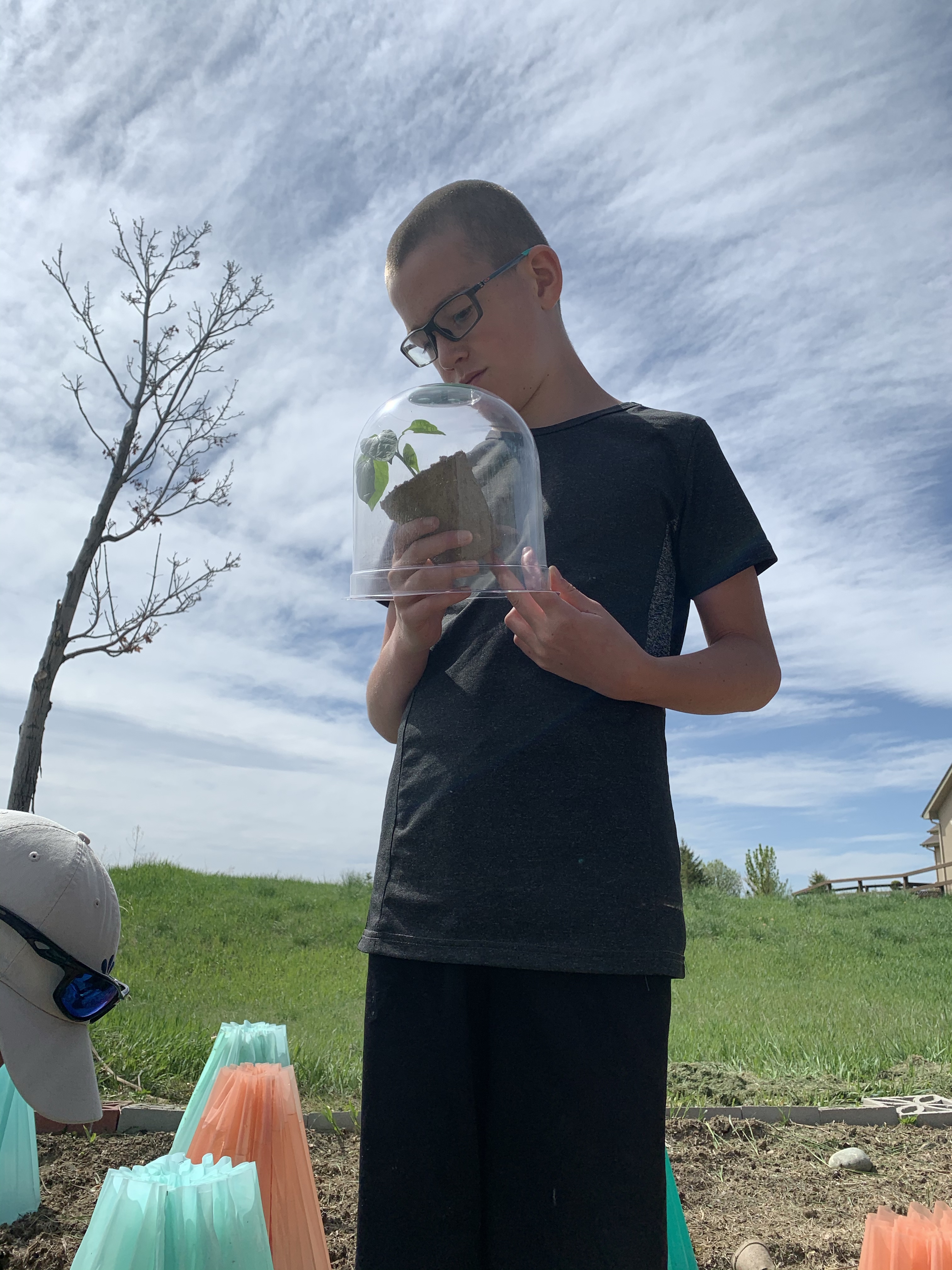 Saturday was gorgeous and so it was time to plant my garden. I started tomatillo plants and peppers and kale inside weeks ago and they really took off. I love gardening and told Clint for Mother’s Day I just wanted a chance to get my garden all planted. We set up our walls of water for the tomatillos the day before so they were ready and then got all my peppers and everything moved outside. Our sweet little friends Brooklyn and Olivia joined us for the planting which was super fun as well. I found some new little pepper covers to act as mini greenhouses for them and the kids helped put each one on as we planted their plants. Unfortunately just as we were finishing up the planting of the peppers and tomatillos and getting ready to plant all the seeds one of my bees, who I think was upset because I had moved their water station out of the middle of the garden where it had been all winter, stung Caedmon and then shortly there after another bee stung Clint. We moved everyone to the front yard at that time and our sweet friends headed home. Clint got the kids lunch and I ventured back out to the garden and the bees left me alone and I got the beans, corn, lettuce, carrots, cucumbers, zucchini, and watermelon all planted. Of course a snow storm moved in Sunday evening so just before that started I got every bucket I could find to cover all my peppers and kale plants. And when I was finally able to take the buckets all down on Wednesday everything looked really good and survived the May snow storm. I’m looking forward to tending my garden this summer.
