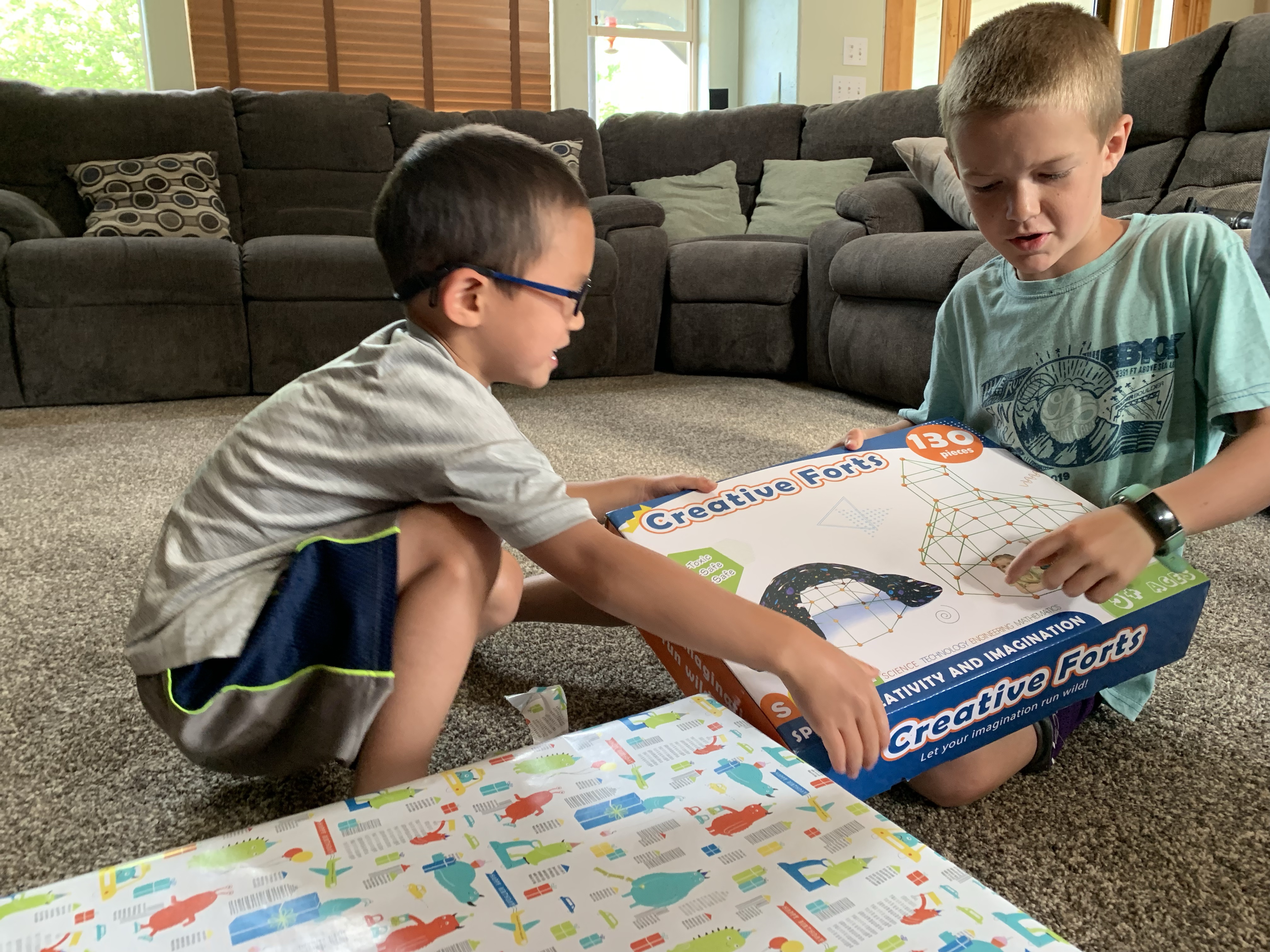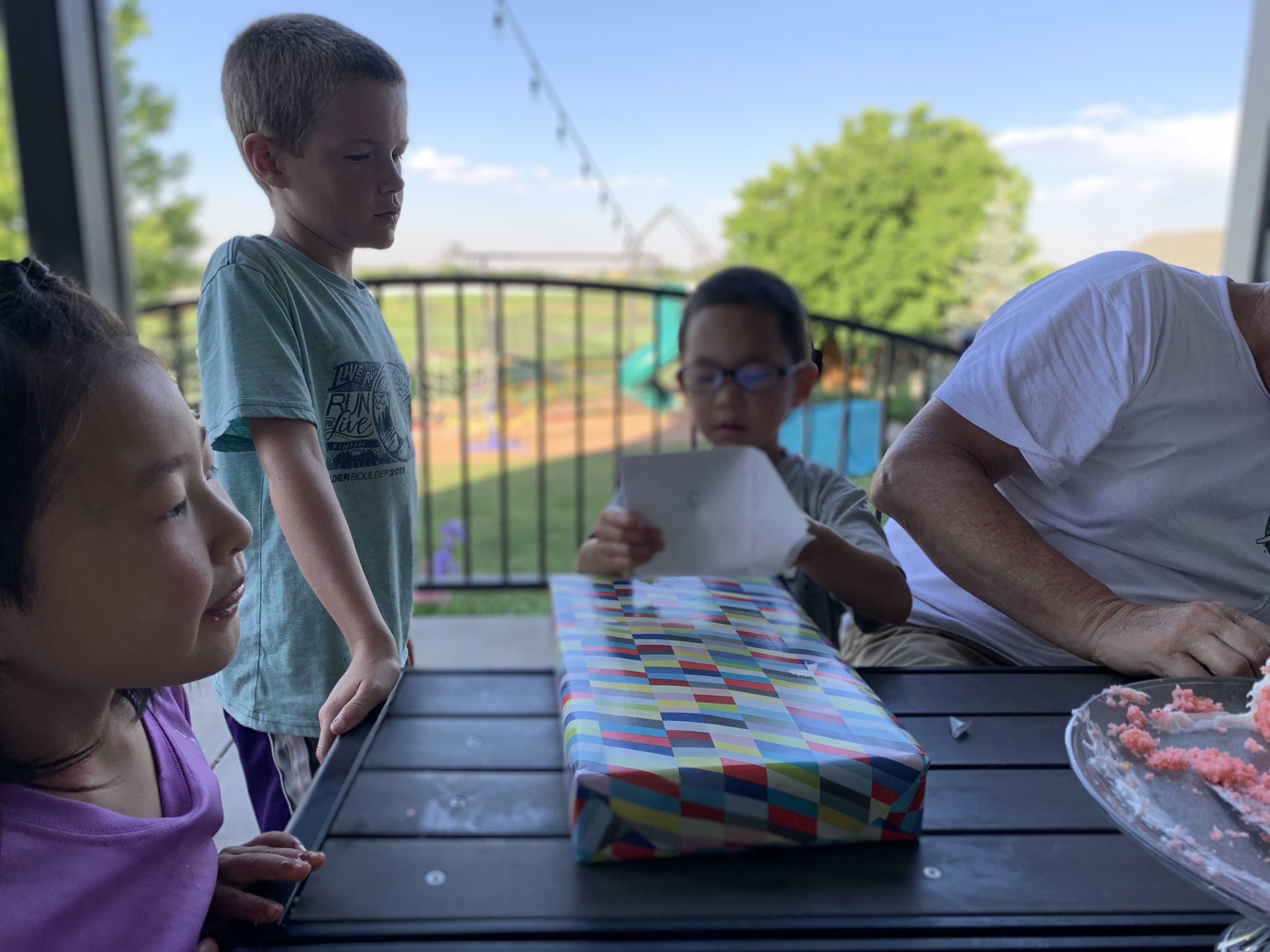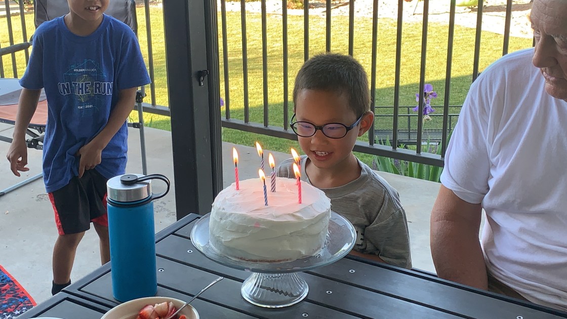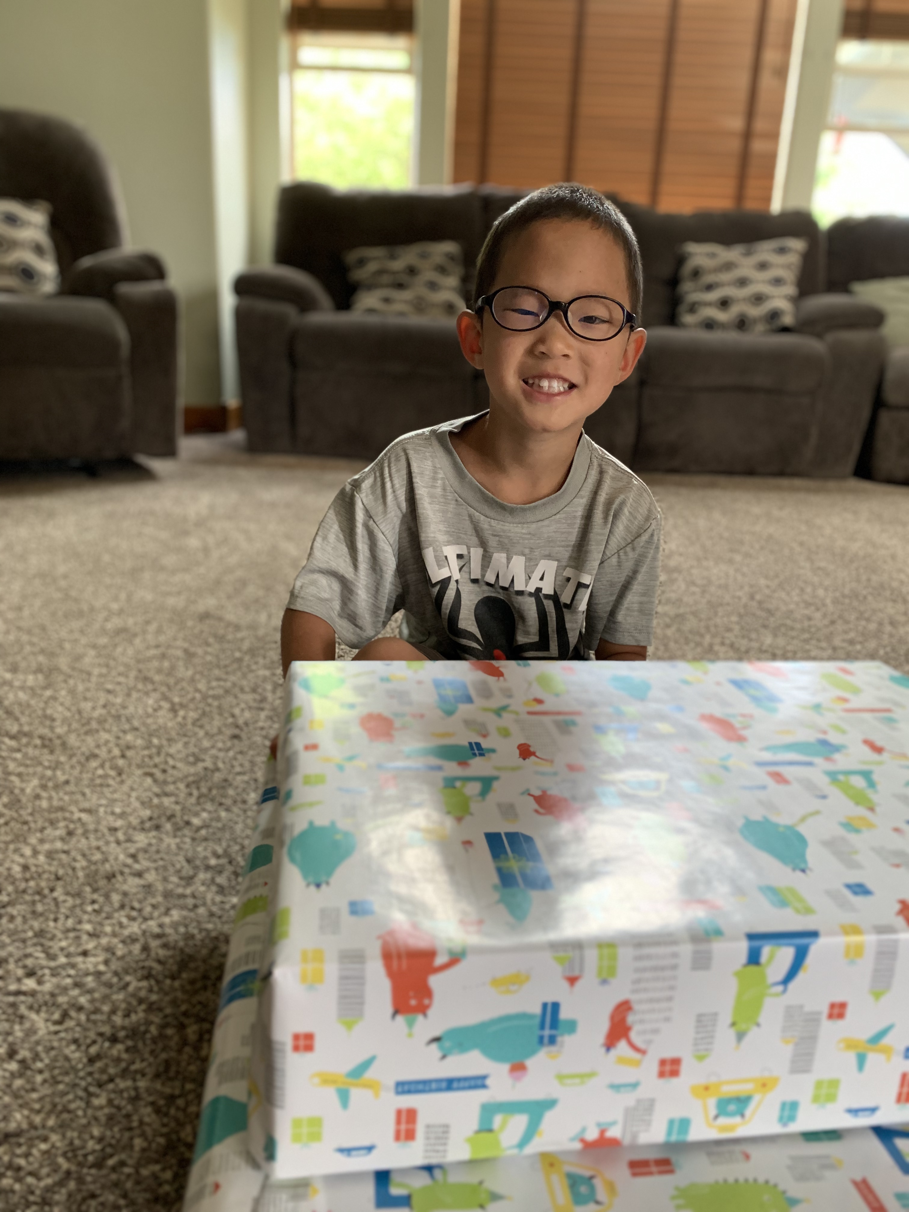 On Thursday Paxton turned 6. He was super excited about his birthday all week long and asked every day how many days until his birthday. He started the morning by opening the gifts from Clint and the kids and I and he got a fort building kit and a sand digger. We quickly went outside to put the fort together and the digger and he got to work on the sand box. He and I then worked on his cake, he wanted a strawberry cake so we made one which he was very excited about helping with. He had gymnastics that afternoon and I took popsicles into his practice at the end that he shared with his teammates and coach. He may only be half as tall as his teammates but he has had fun getting to know them and loves his coach Ryan as well. For dinner he asked for shrimp and gimbop which we had and then had his strawberry cake. My parents got him some more sand for the sandbox and a book to read that he is really excited about and has been taking to bed to read each night. Because of timing issues we didn’t get to talk to Clint’s parents that day but he talked to them and opened their gift of tractors to play with in the sand box on Saturday. He had a great day and is such a sweet boy and we are so glad we get to celebrate him!