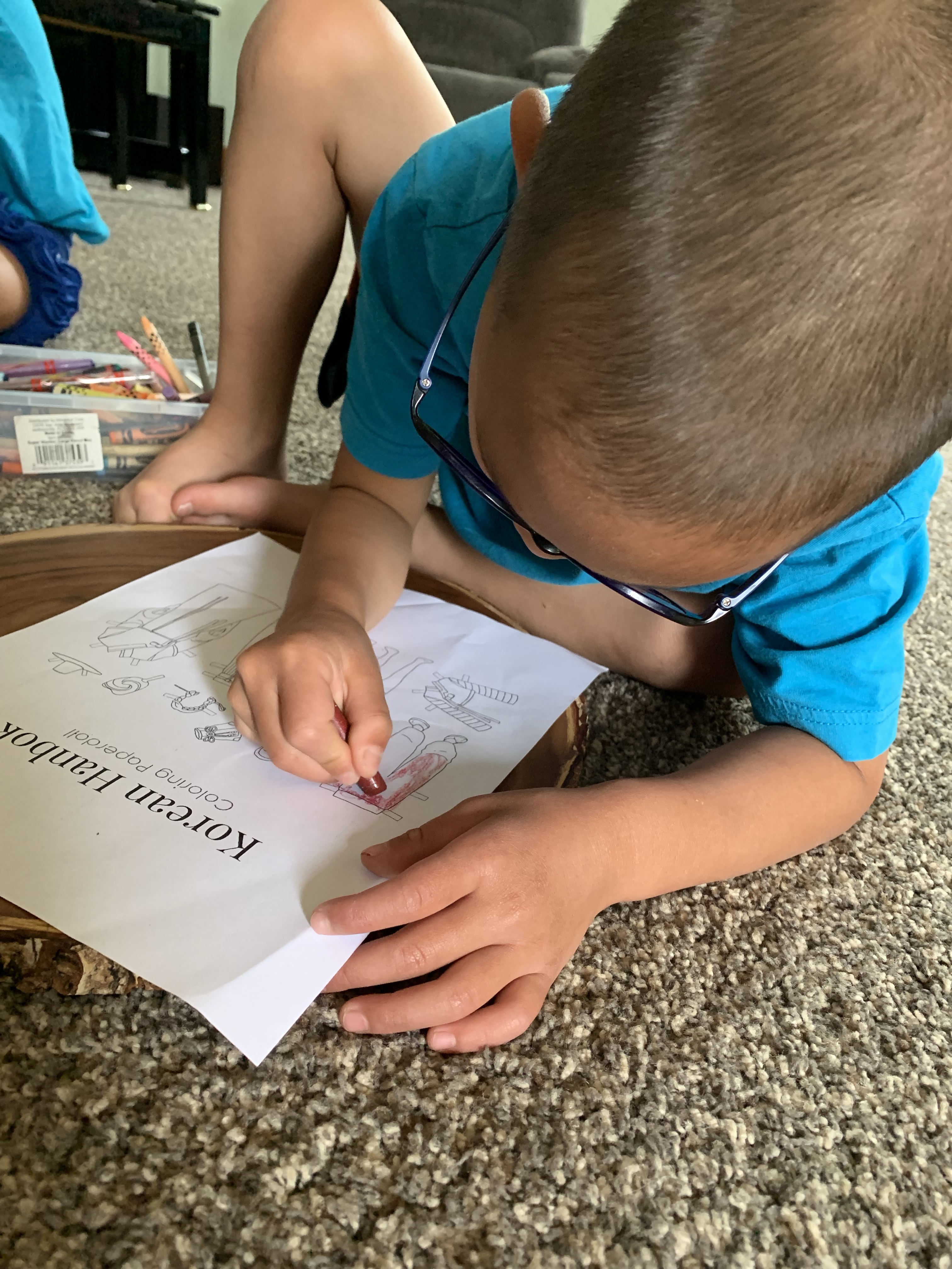 We did virtual Korea Camp this past weekend. With all things COVID it didn’t make sense to have camp in person this year but I know that we are all looking forward to having it in person next year. Friday night was opening ceremonies and the kids were all excited to wear their handboks. Edric is quickly outgrowing his so I will need to track down another one. Saturday morning started with the two littles doing a session on hanboks with some great puppets my friend Lori made. The session was taught by a Korean School teacher and she did a great job and the kids had fun. They had some hanboks to color and make paper dolls with as well. The older kids did Tae Kwon Do and then a year of the ox craft. Leighton had all sorts of activities with the middle school group. In the afternoon there were a couple of parent sessions which are always good and we finished the day out with an epic dance party. It was a great camp but we are all looking forward to being back in person next summerj!