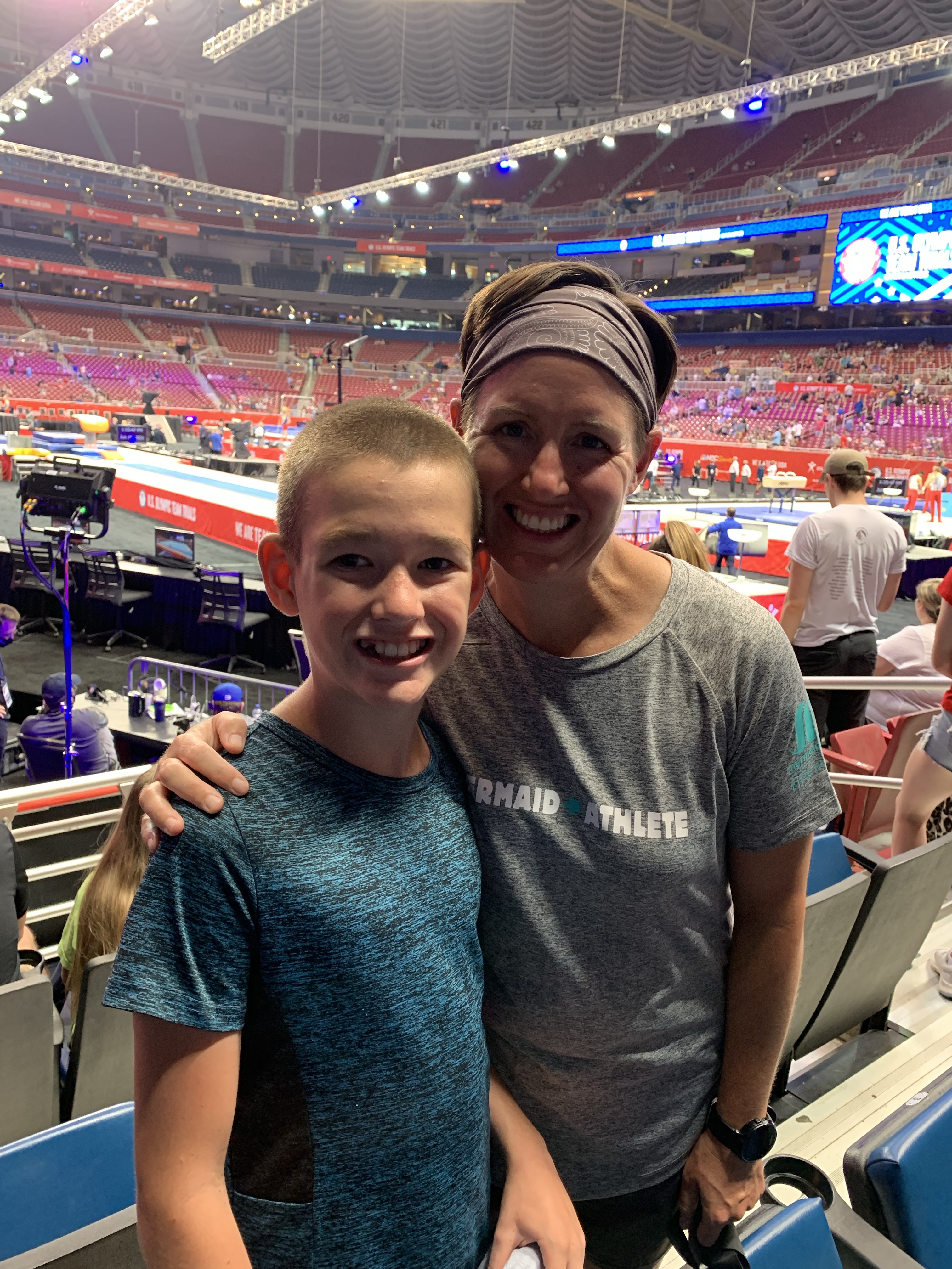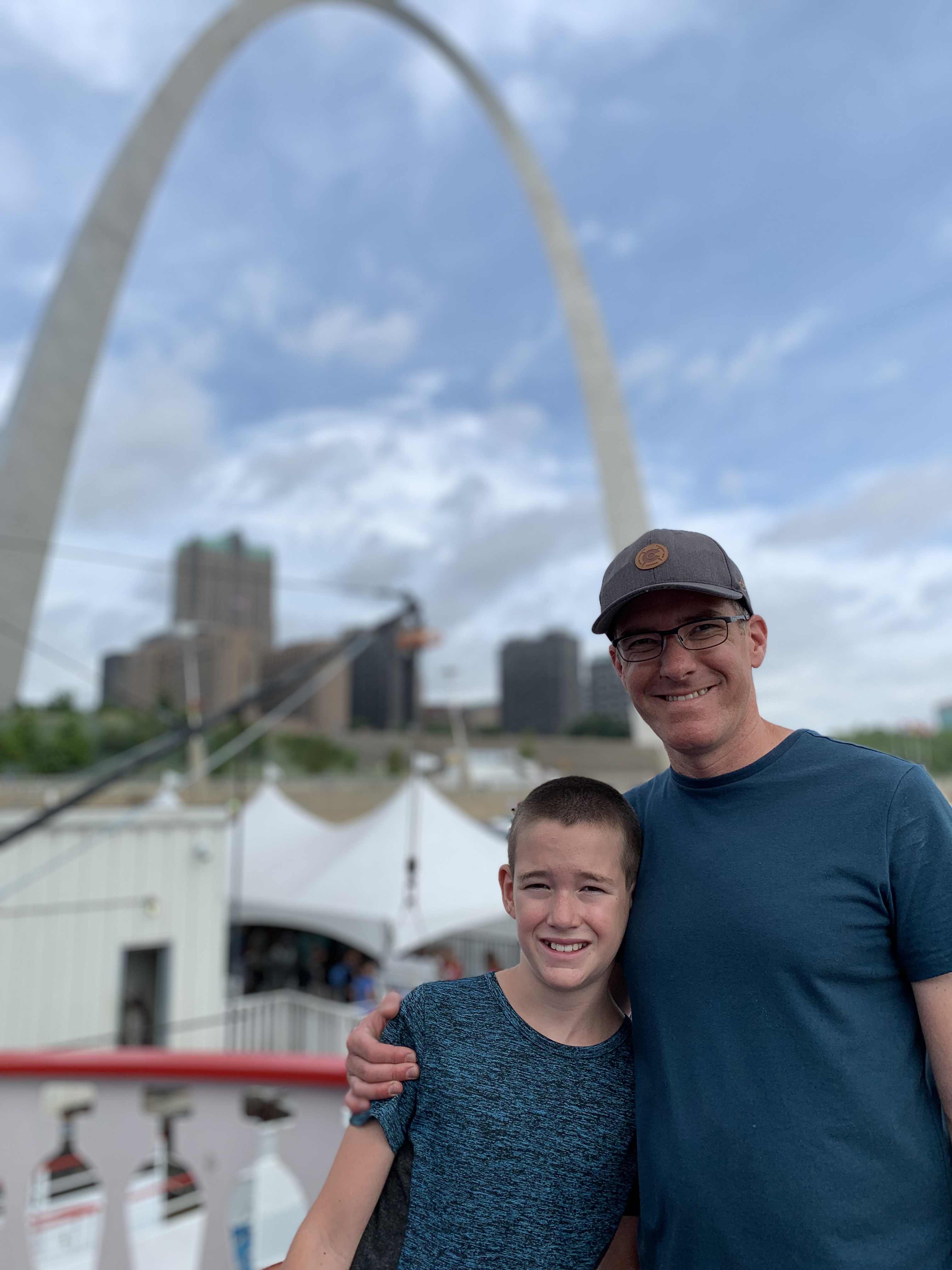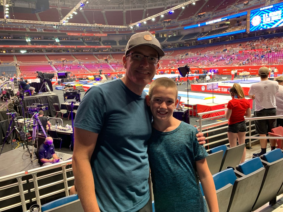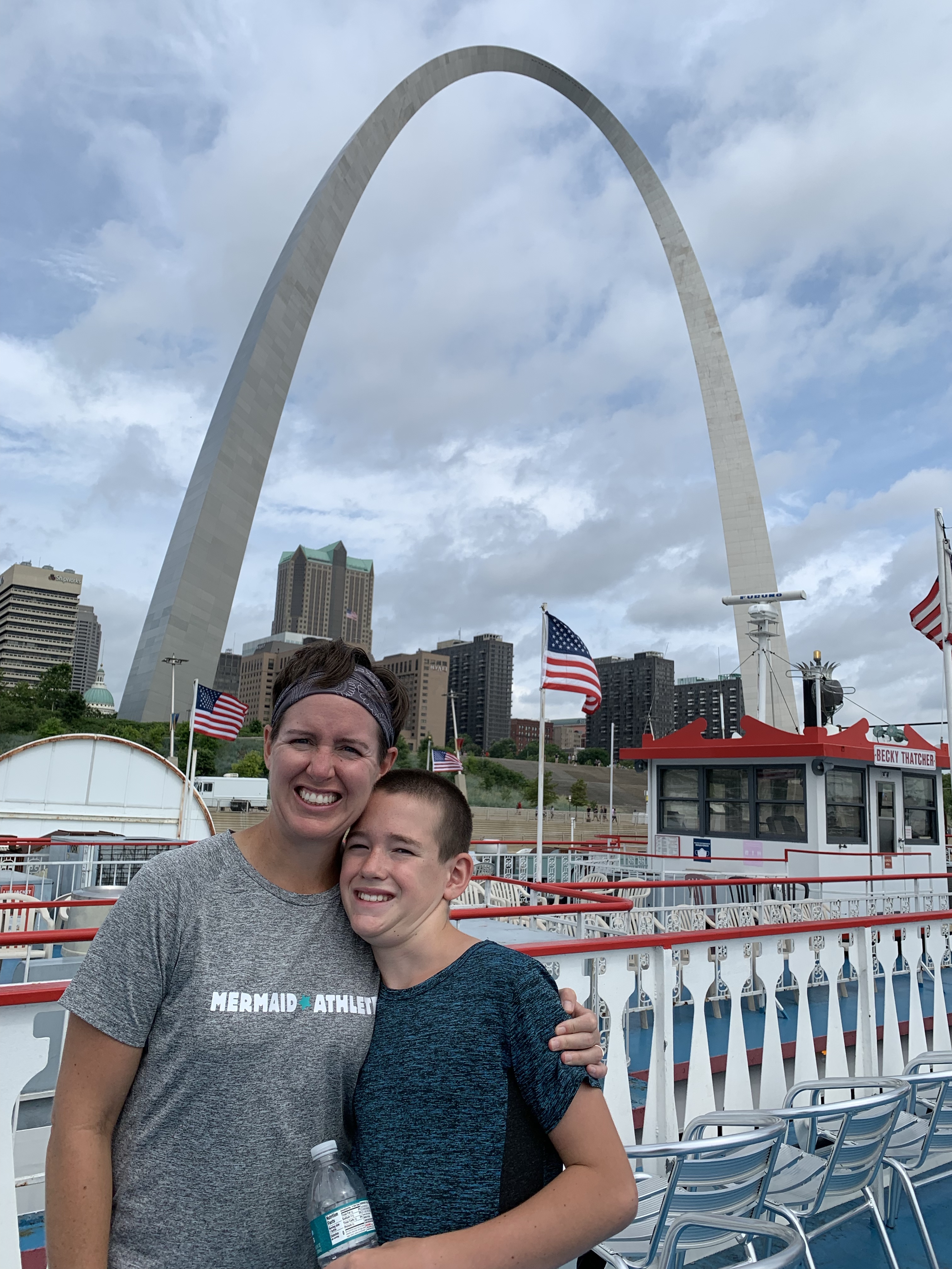 On Saturday we headed downtown fairly early after a short run/walk through the park. We explored the Gateway Arch National Park in more details and went through the museum that they have set up about the west and explorations. It was a great museum with lots of interactive displays and I think we all learned something. Due to all things COVID the tickets for the tram to the top of the arch that I attempted to get weeks ago were sold out, but they were also limiting people to only 10 minutes at the top which didn’t seem like it would be long enough. So instead we booked tickets to ride a riverboat up and down the Mississippi River which was very relaxing. Afterwards we headed down to grab sandwiches and then to stand in line for the meet. There were a lot more people in the audience for the second meet, we again had great seats though. We were located in the 3rd row right behind the start for the vault and could see the whole floor. The meet was again fascinating. At the end of the meet there was a pause so the selection committee could decide who would be on the Olympic Team. It felt tense because we knew that many of the guys would not see their dreams come true. We moved over for a better view of the floor where they were going to announce the team. Leighton had picked who he thought would be on the team weeks ago and when they made the final announcement he was so excited that he had guessed right on all of them. He tried to get signatures again after the conclusion but there were many many people also trying and unfortunately after waiting 45 minutes the security guards and those in charge sent everyone out of the building. Leighton was pretty disappointed, but really enjoyed the meet nonetheless. We walked back to the arch to buy our coffee mug to add to our collection of national park mugs and it started raining. By the time we finished buying it it was pouring rain and we made a quick jog to the subway station. We ended up jogging most of the 1.6 miles from the subway station to our condo that we were renting because it was still raining but we had a good time. It was an amazing trip and super great to spend some really focused time with Leighton.