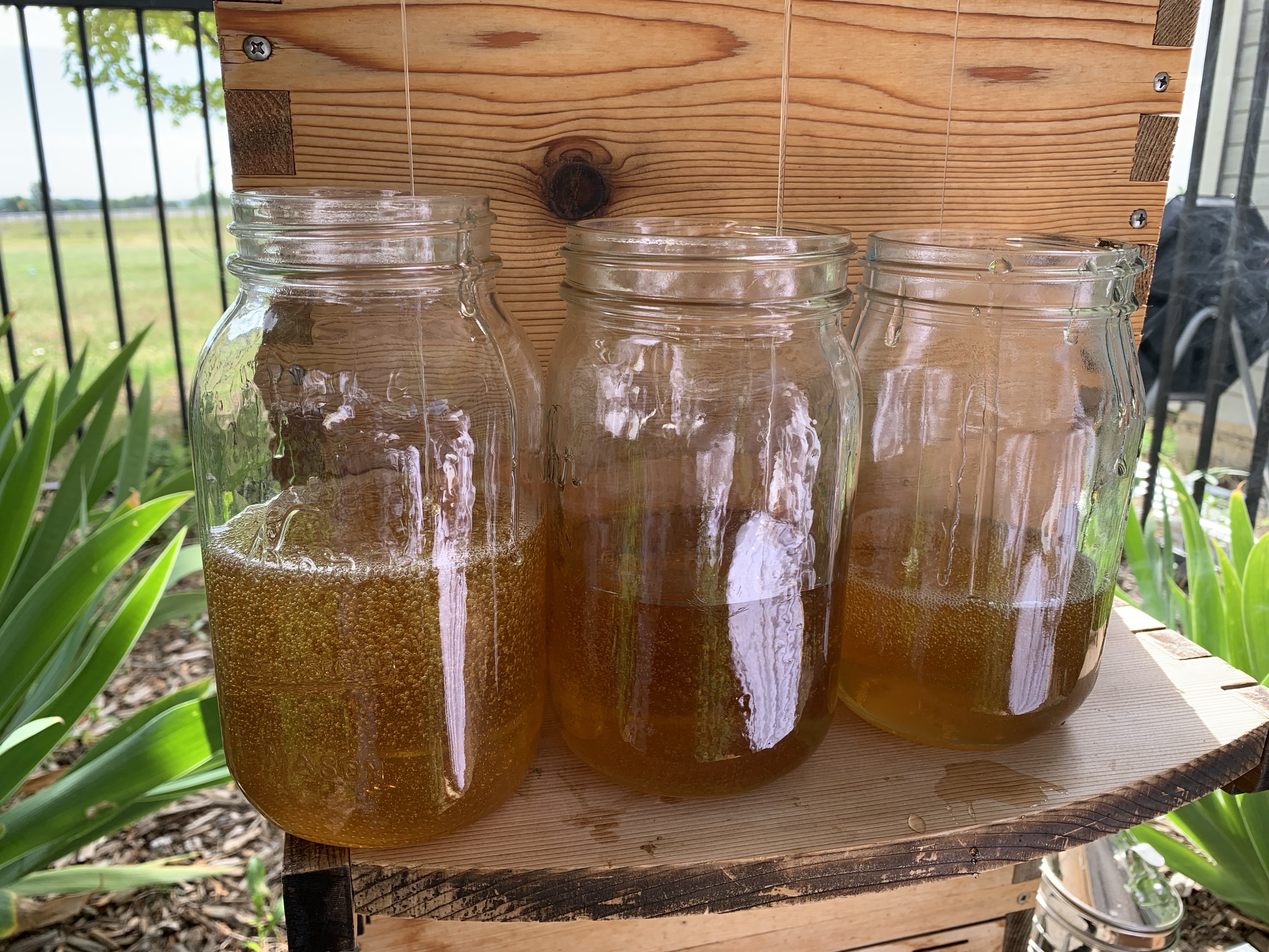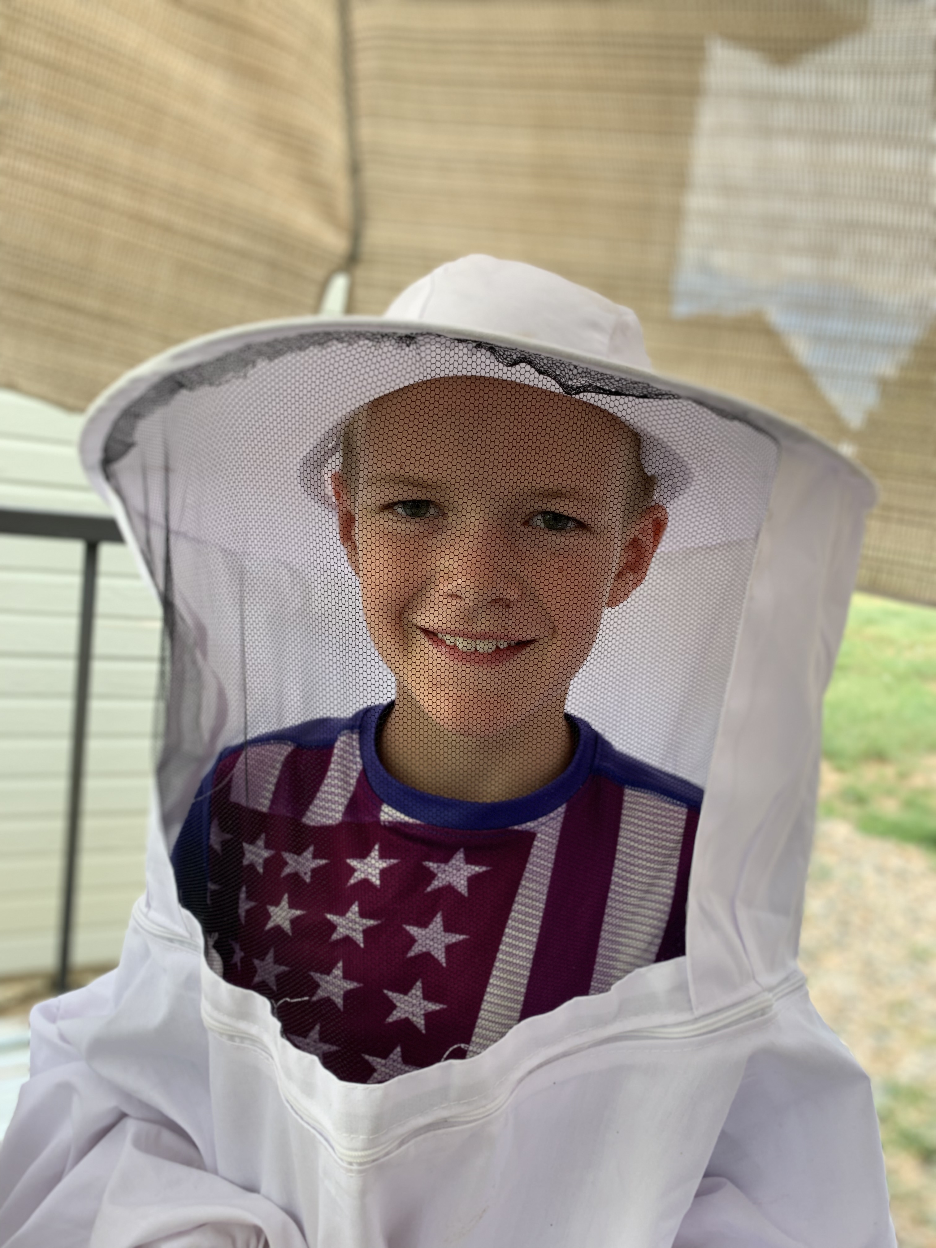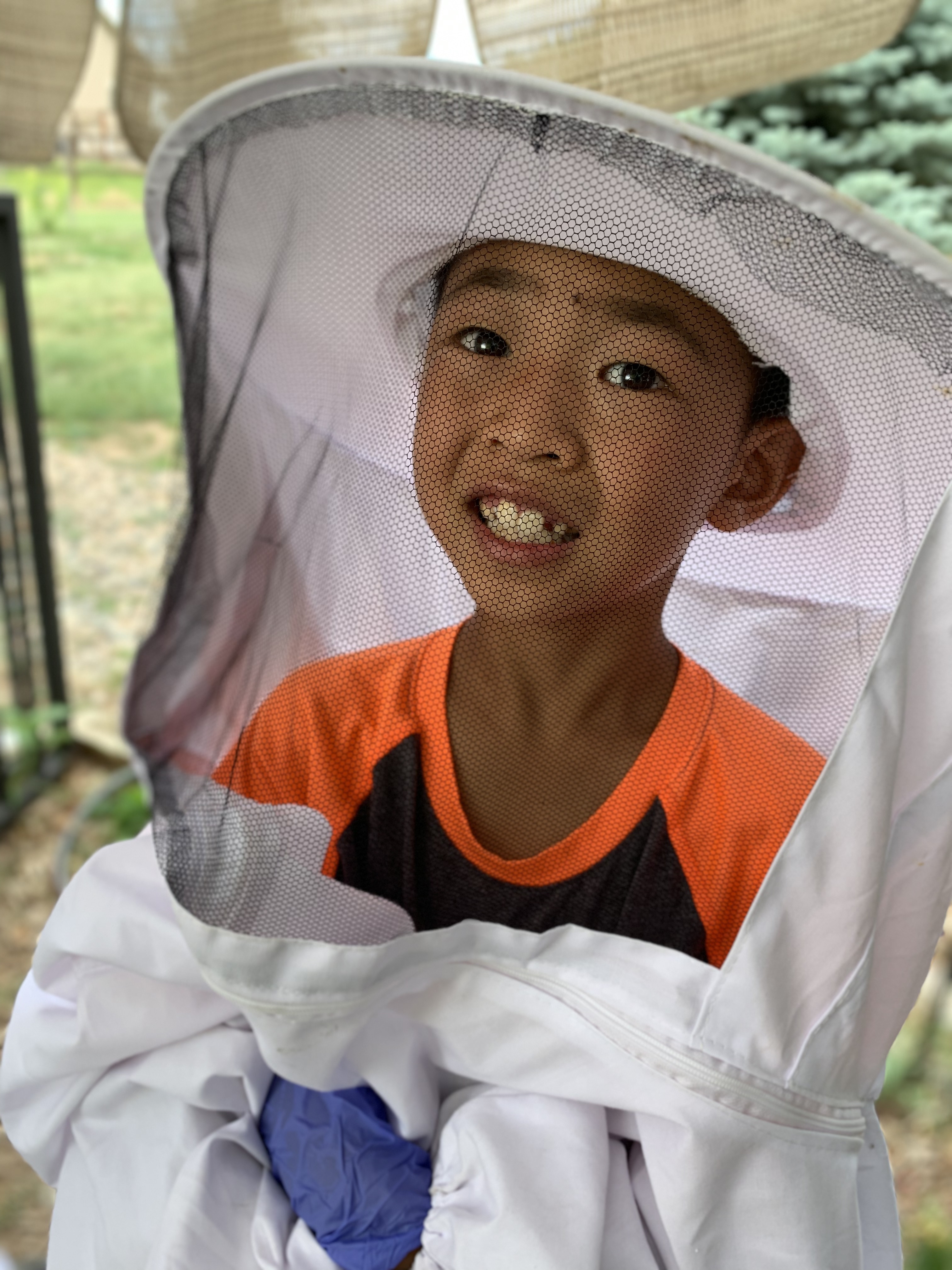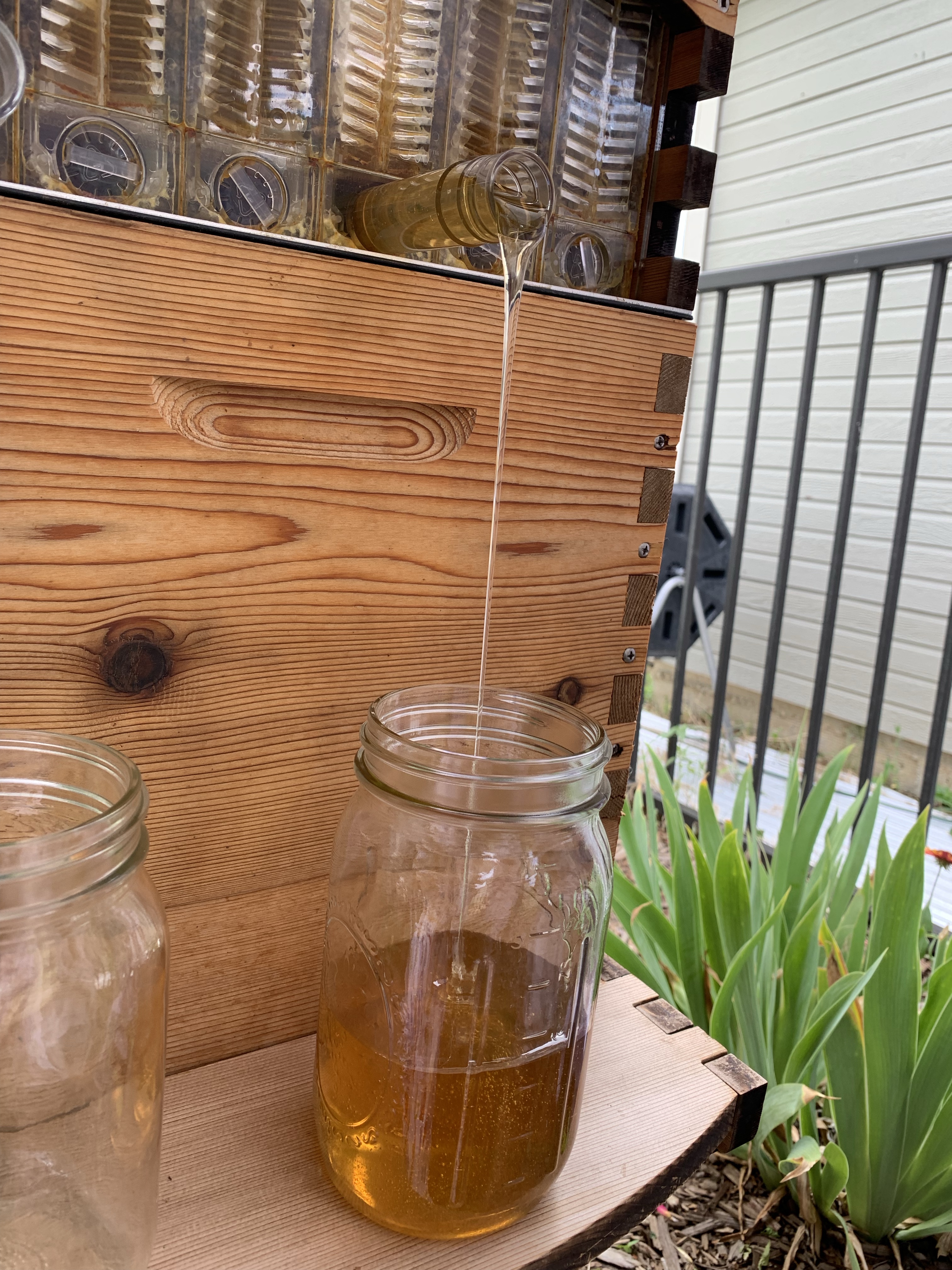 Last Thursday morning I got to harvest my honey for the first time this summer. My bees have been busy working. My hive makes it super easy to harvest without causing any harm to the bees. They have been a little testy lately because of the heat so we were extra cautious when we harvested and wore our bee suits which we didn’t need. Edric was my big helper, but Paxton and Caedmon were my helpers early on as well, they just got tired after a bit and ran off to play. Edric stuck with me and we ended up harvesting nearly 400 ounces of honey. And it is good honey, we have enjoyed eating it and also sharing it with others. Hopefully we can get one more harvest before the end of the summer when they bees have to start storing up their winter supplies. We are loving having the bees and watching them do their thing and be a part of our garden and yard.